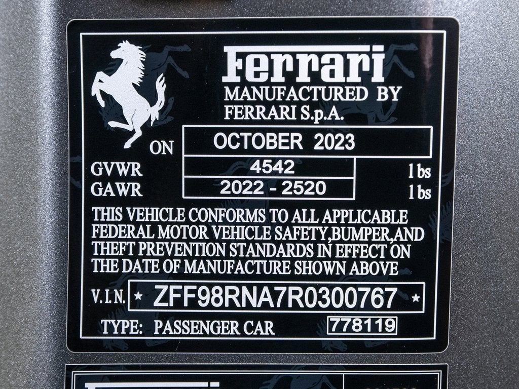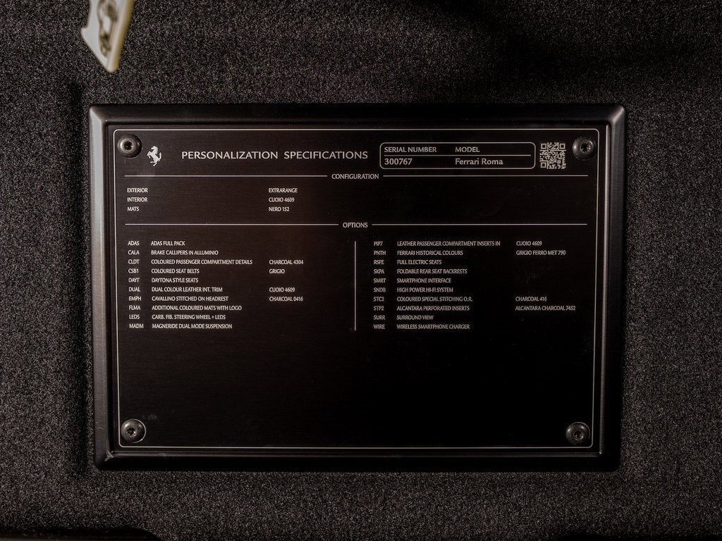 rancing Horse of Nashville is pleased to present you this beautiful, Ferrari Approved, Certified Pre-Owned 2024 Ferrari Roma in Grigio Ferro on Cuoio with Complimentary 2 Year Ferrari Bumper to Bumper Factory Warranty Extension and Pre-Paid Maintenance through 03/01/2031 The Ferrari Roma is characterized by finesse and refinement, representing the pinnacle of performance in its category. This highly-optioned Roma comes some of the most desirable features and sought-after equipment such as: Complete ADAS pack Connectivity for Smartphone Wireless Smartphone Charger Dual Mode MagneRide Suspension Folding Rear Seat Active Matrix Led Lights Surround View Daytona Seats Coloured Safety Belts Full-Electric Front Seats Horse Stitched on Headrest Carbon Fibre.