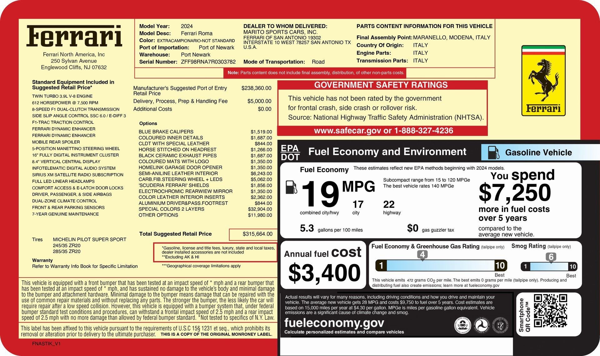 Ferrari of San Antonio, Texas is privileged to represent Ferrari Pre-Owned to our loyal clients and new enthusiasts. Our exceptional clients provide us with exceptional Ferrari Pre-Owned inventory! We are committed to Ferrari Approved and offering the best Ferrari Financial Services programs available.For comprehensive information on the vehicle listed above, please contact us online or call 210-477-3800. VEHICLE OPTIONS : EXTERNAL COLORS - AZZURRO LA PLATA