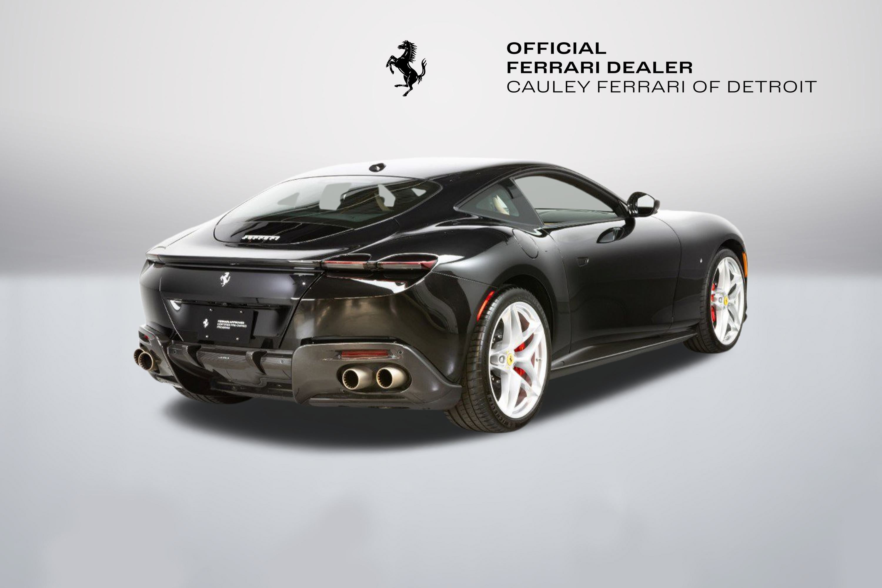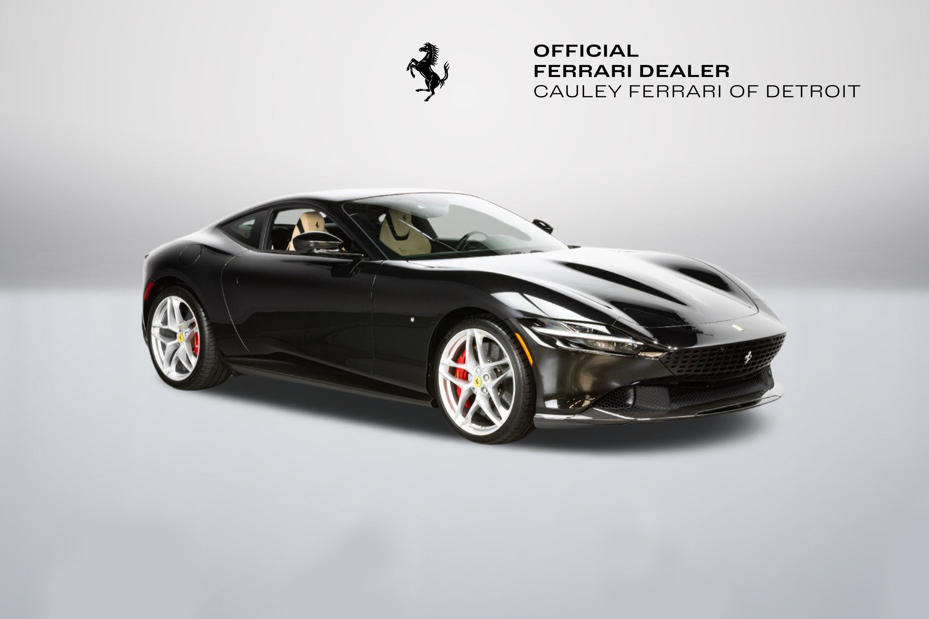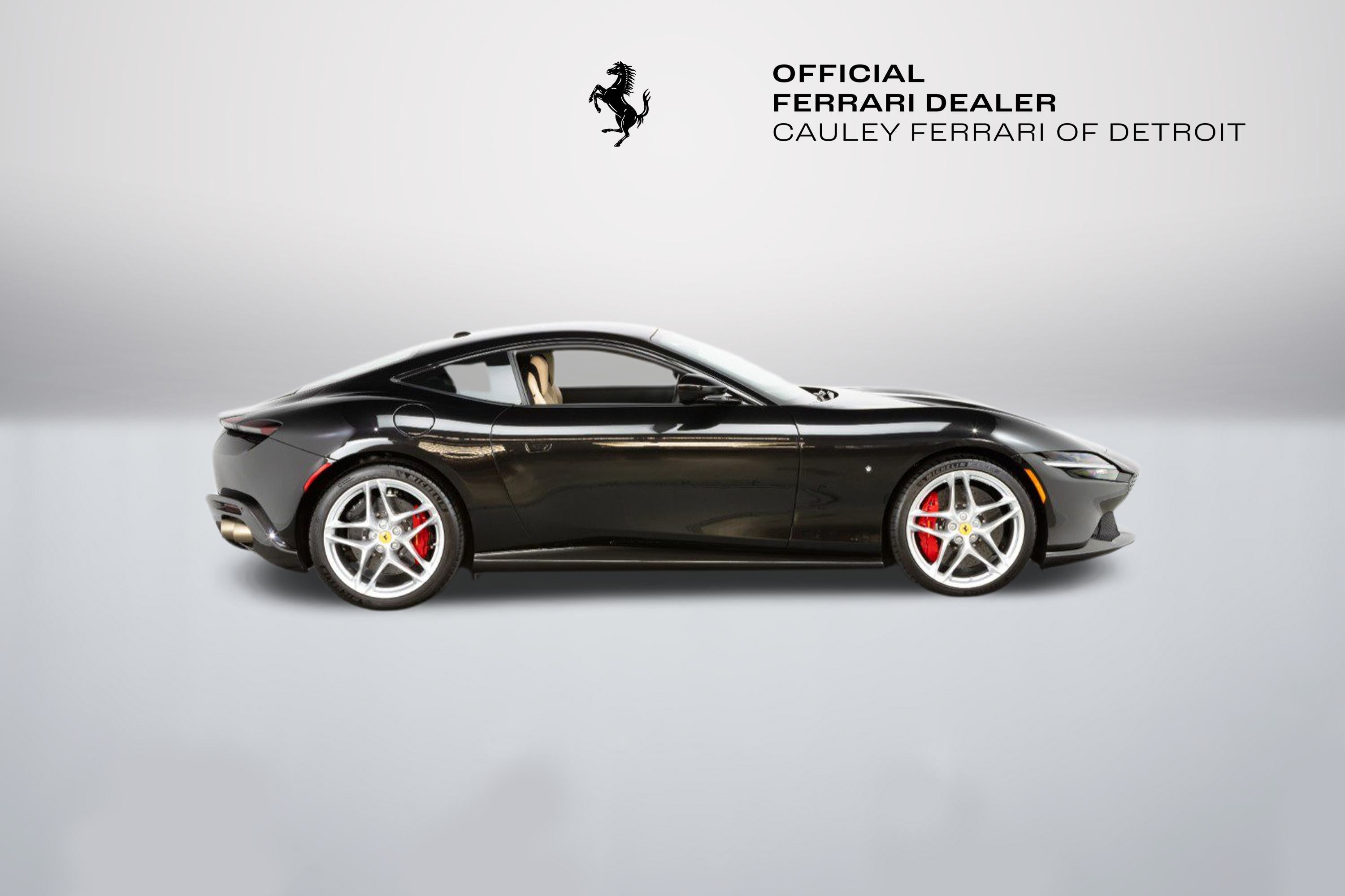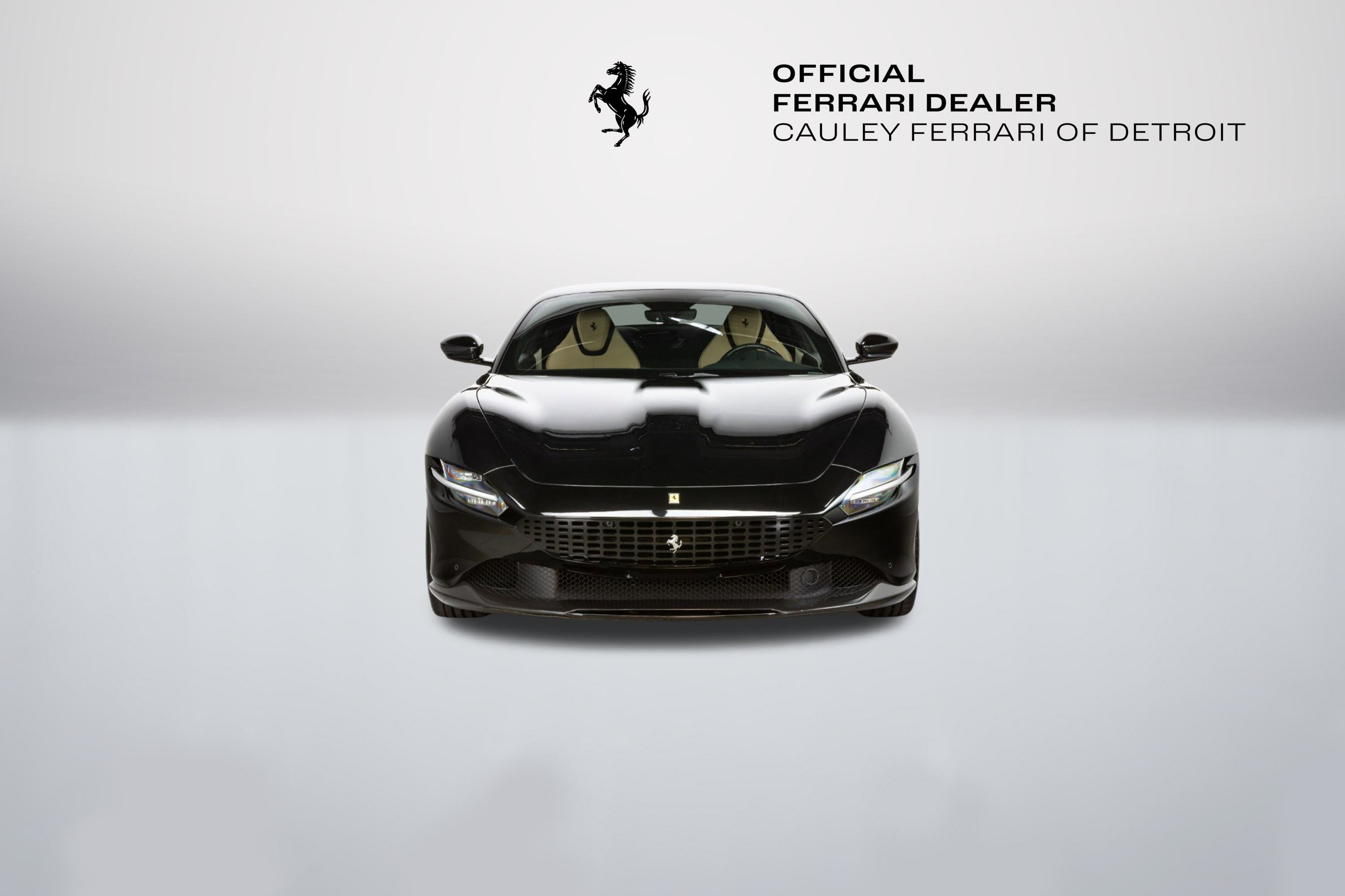 Cauley Ferrari of Detroit is excited to offer this gorgeous Roma finished in Nero Daytona over Sabbia. It comes well-equipped with such desirable options as Magneride Suspension, Chrome Wheels, a lot Carbon Fiber options inside and out, and much more. We are selling this as a Certified Pre-Owned Ferrari, and it will come with 2 years of factory bumper-to-bumper warranty. The seven-year free scheduled maintenance is good until 6/18/2028. Give us a call at 248-538-9600 to set up an appointment for a closer look or stop by our showroom in West Bloomfield, MI. Please ask us about our financing and leasing options available through Ferrari Financial Services (FFS). We can offer you monthly financing as far out as 84 months, Balloon financing up to 60 months, as well as Open-End Leasing scenarios. FFS is available on all new and pre-owned Ferrari models. These flexible payment options really make getting into a Ferrari easier than ever before. Let us show you how. Factory Options: - Red brake callipers - Rear diffuser in carbon fibre - Carbon fibre underdoor cover - Exterior sill kick in carbon - Carbon fibre upper centre console trim - Coloured safety belts: Sabbia - Dash inserts in carbon fibre - Cavallino stitched on headrest: Nero 4000 - Sport tailpipe tips - Carbon fibre front spoiler - Additional coloured mats with logo - Homelink - Carbon fibre steering wheel + LEDs - Magneride dual mode suspension - Electrochromic rear-view mirror - Passenger display - Leather passenger compartment inserts in Sabbia 4310 - Aluminium driver & passenger footrest - Chrome painted standard wheels - Ventilated full electric seats - Coloured special stitching O.R.: Nero 4000 - Michelin tyres