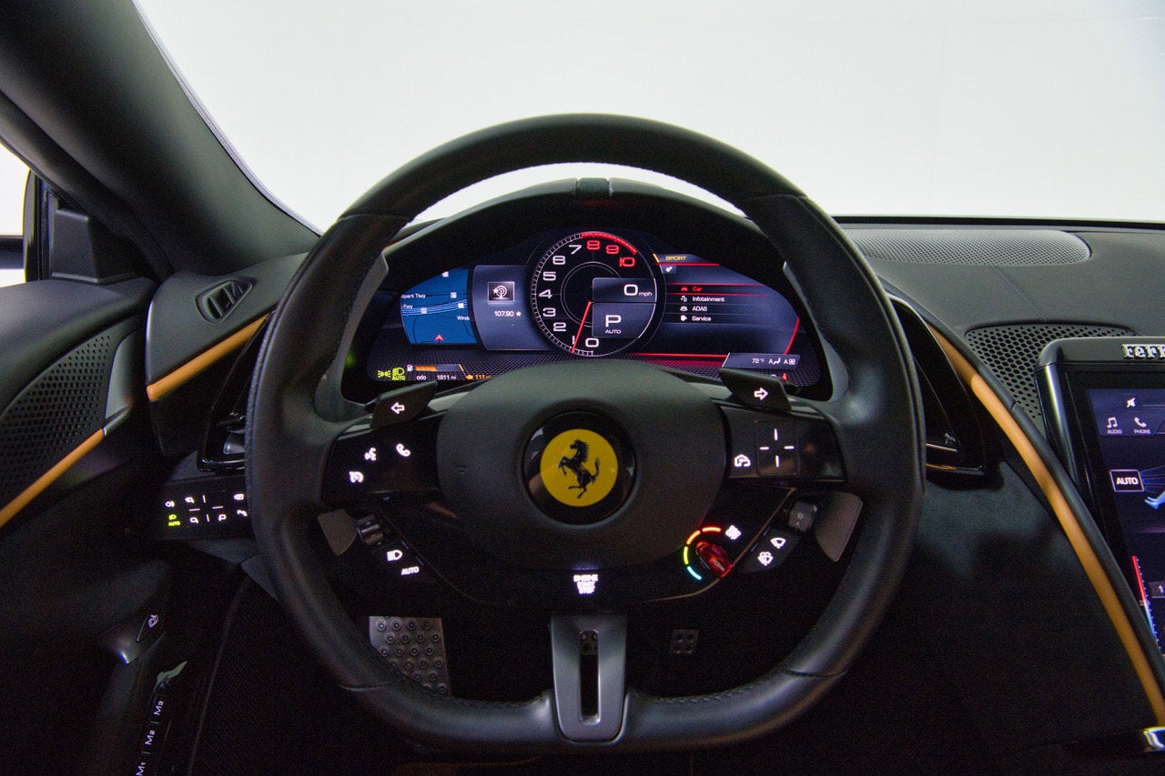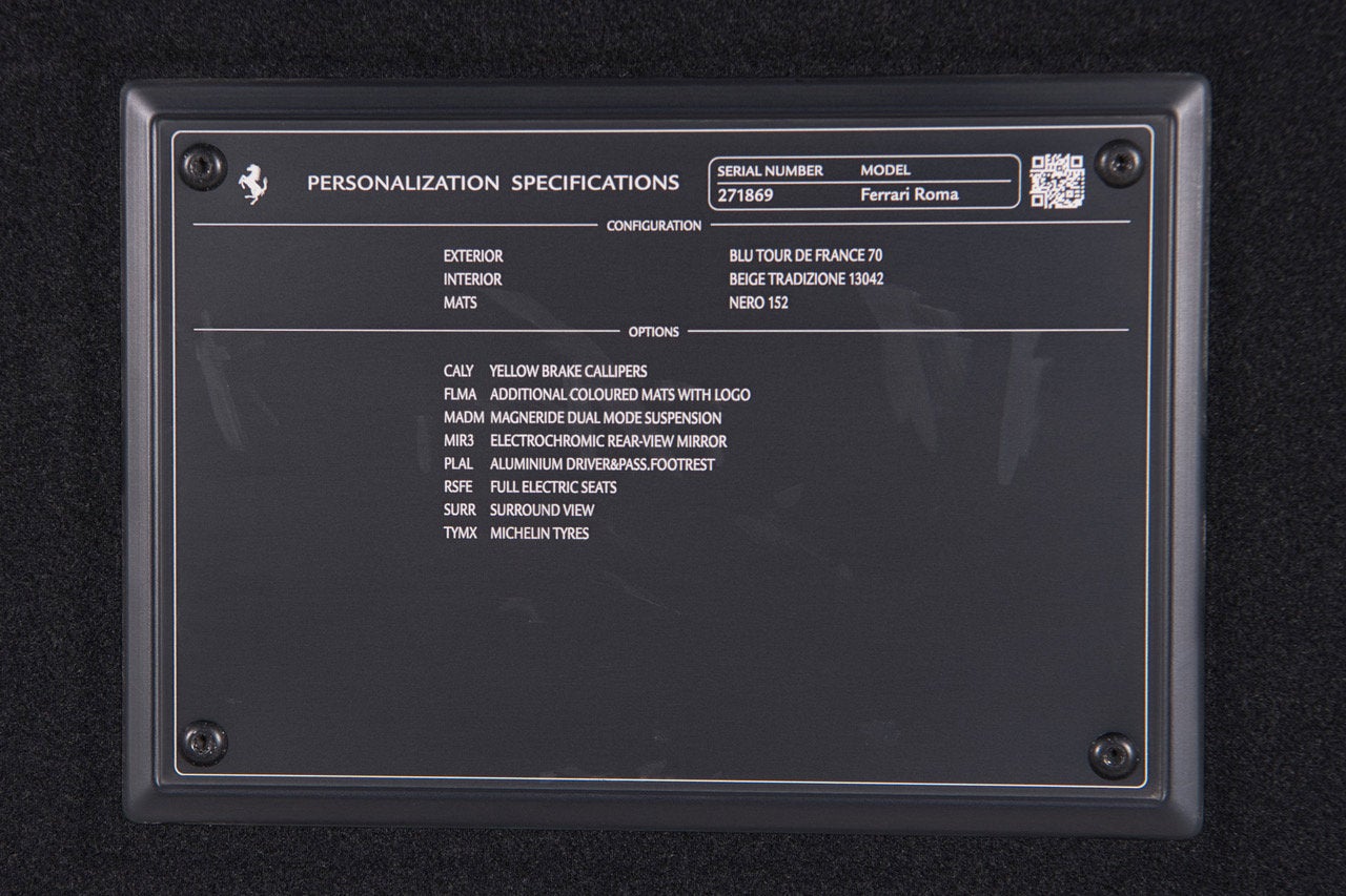 The Ferrari Roma is a stunning and luxurious grand tourer that boasts a sleek and timless design! We are proud to present this one-owner 2022 Roma that has covered only 1,805 miles and was originally sold new by Ferrari of Houston. It was tastefully ordered in elegant Blu Tour De France paint over Beige Tradizione leather. This Roma is of course Ferrari Approved, and has completed a comprehensive 101 Point Ferrari inspection, and has had all service, updates, recalls, and service bulletins performed. It is complete with all keys, books/manuals, car cover and battery charger. This Roma comes with Ferrari warranty until 12/22/2028, and no-cost annual maintenance until 12/22/2028. We offer a number of attractive financing programs through Ferrari Financial Services, including extended financing terms of up to 84 months, leasing, and balloon loan options that offer the flexibility of ownership with the affordable monthly obligation of a lease. Contact us today and let Ferrari of Houston structure a program for you. CALYYELLOW BRAKE CALIPERS CRPTCarpets colorsNERO 152 (BLACK) EXTCExternal colorsBLU TOUR DE FRANCE 70 FLMACOLOURED MATS WITH LOGO INTCInternal colorsBEIGE TRADIZIONE 13042 LANGUSER MANUAL BOOKLETLIBRETTI VETTURA IN INGLESE MADMMAGNERIDE DUAL MODE SUSPENSION MIR3ELECTROCHROMIC REARWIEW MIRROR PLALALUMINIUM DRIVER&PASS.