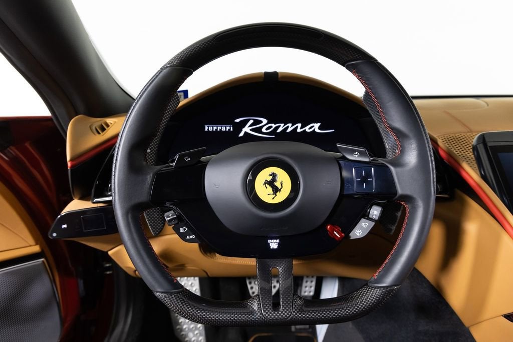 This 2022 Ferrari Roma has approximately $65,000 in additional factory customization. Most of the customization is in the interior; however, the most expensive addition is the Ferrari historical color, Rosso Fiorano, which is $12,487. This car also has additional Cuoio leather and special stitching. Clean CARFAX. A beautiful combination and build with just 3,600 miles. FERRARI HISTORICAL COLOURS ROSSO FIORANO CUOIO INTERIOR COLOR LEATHER INTERIOR INSERTS CUOIO BLACK BRAKE CALIPERS COLOURED INNER DETAILS ROSSO FERRARI DUAL COLOUR LEATHER INT. TRIM CUOIO HORSE STITCHED ON HEADREST ROSSO SPORT EXHAUST PIPES ADVANCED FRONT DRIVING CAMERA COLOURED MATS WITH LOGO CARBON FIBER STEERING WHEEL + LEDS SCUDERIA FERRARI SHIELDS MAGNERIDE DUAL MODE SUSPENSION ALUMINIUM DRIVER&PASS.FOOTREST 20 INCH FORGED DIAMOND RIMS FULL ELECTRIC SEATS FOLDABLE REAR SEATS BACKREST HIGH POWER HIFI SYSTEM COLOURED STANDARD STITCHING ROSSO VEHICLE PERSONALIZATION PLATE 2 KEYS MANUALS CAR COVER DUFFLE BAG BATTERY TENDER As one of the top-selling preowned Ferrari dealers in the nation, Ferrari Dallas takes tremendous pride in offering only the best late-model, low-mileage Ferraris available anywhere in North America. For specific details on the vehicle listed above, please contact any of our qualified sales consultants by calling 888-701-5761. We look forward to assisting you.