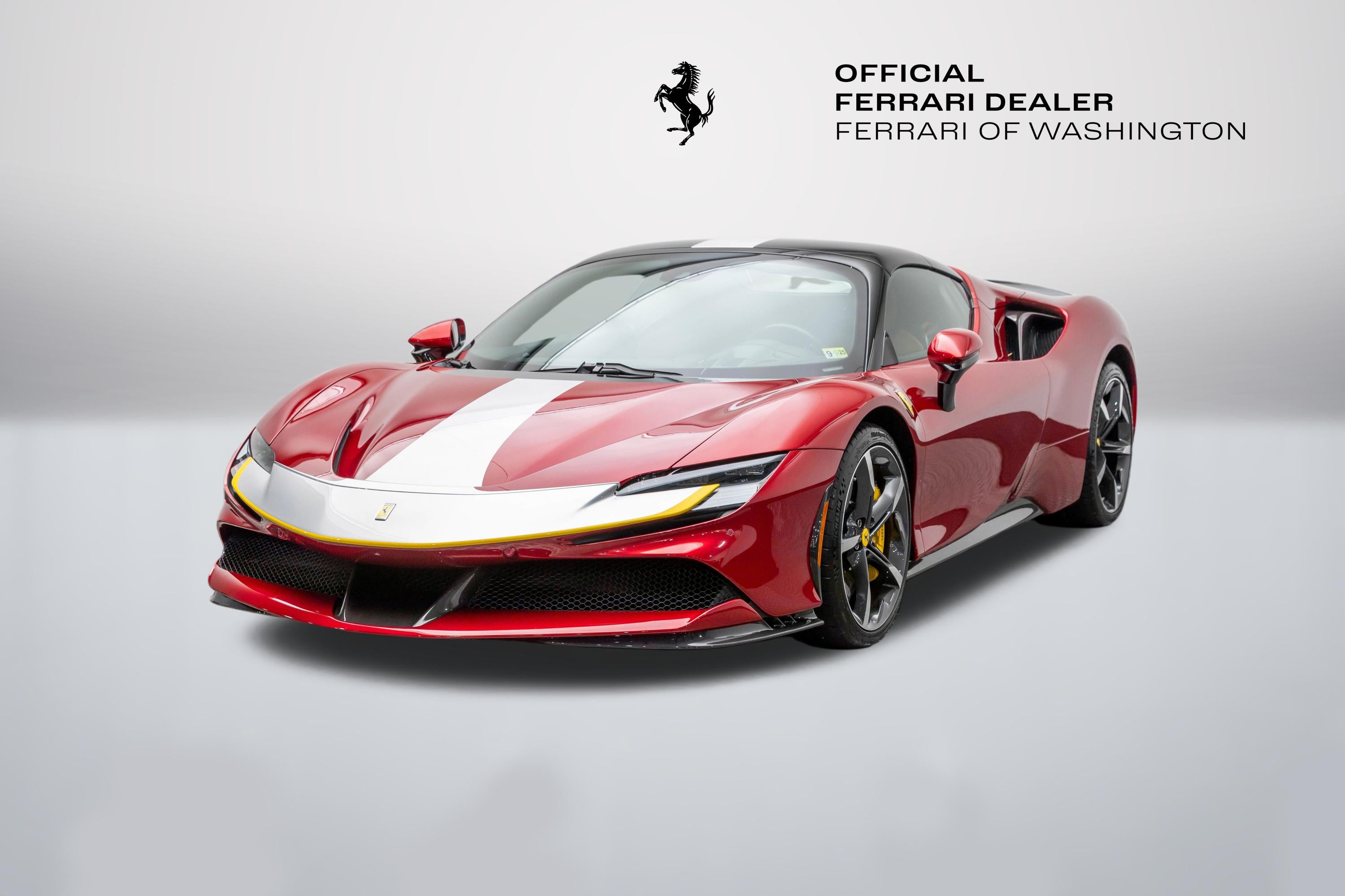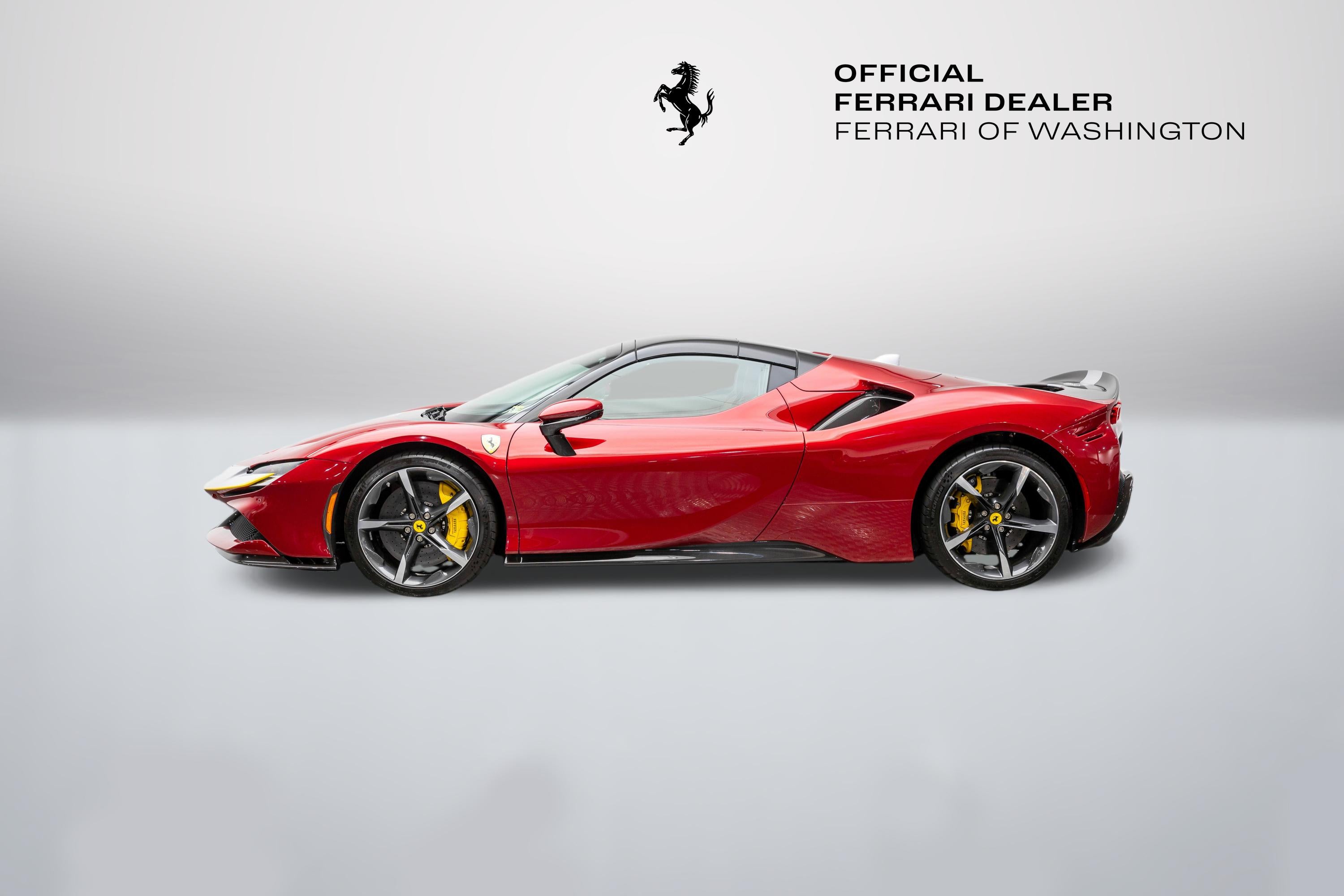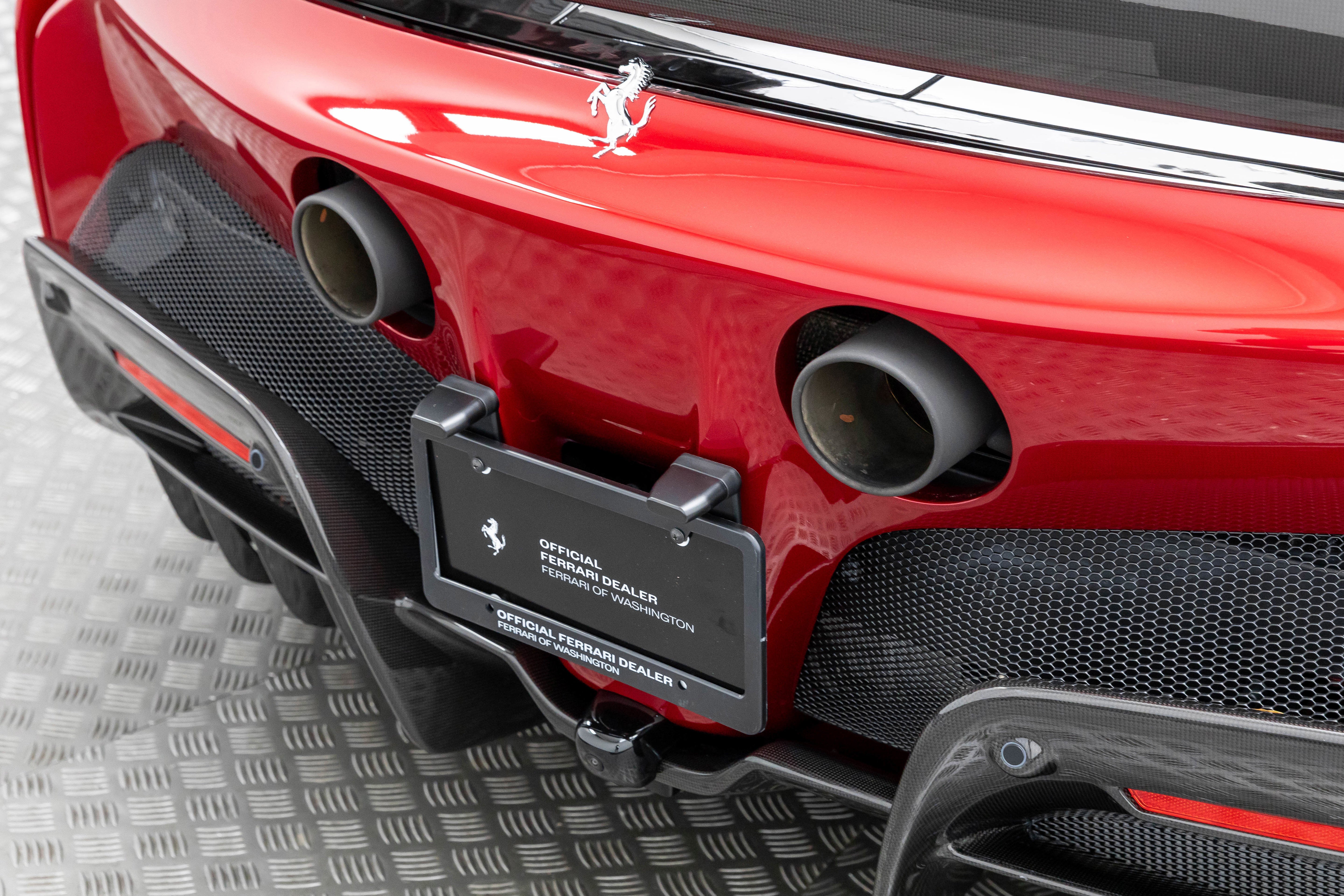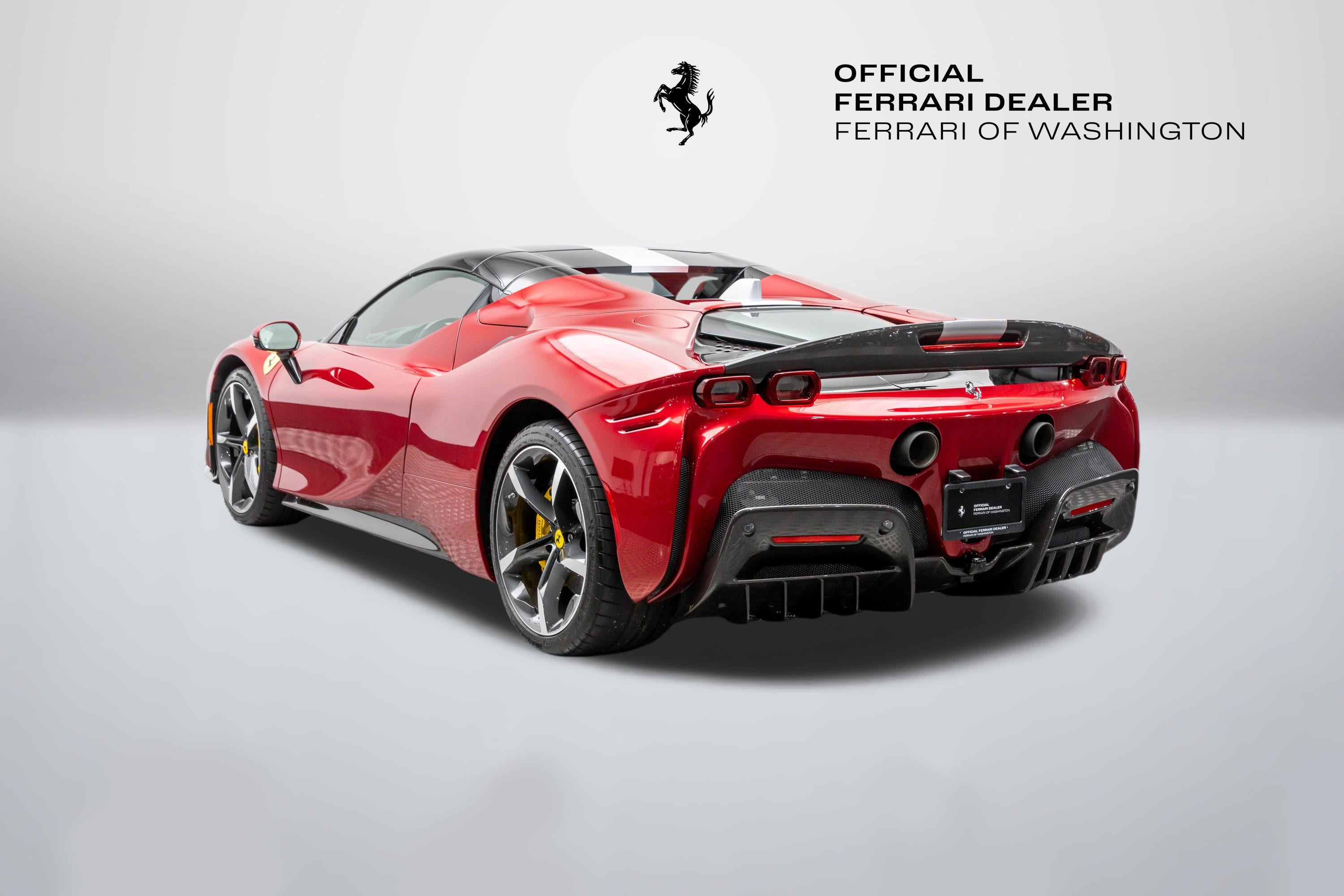 This single-owner 2024 Ferrari SF90 Spider, finished in the exceptionally rare Rosso Coburn, a deep, triple-layer metallic red from Ferrari's Tailor-Made program, first unveiled on the 458 Speciale, casts an aura of quiet enigma, its richer, darker tone shifting from shadow to firelight with a presence that commands without effort. Ferrari's pinnacle plug-in hybrid unleashes 986 horsepower from its twin-turbo V8 and three electric motors, surging to 60 mph in 2.5 seconds. The V8's feral symphony erupts amid instantaneous electric torque, while all-wheel drive and torque vectoring carve every curve with telepathic precision, every drive an intimate rush, amplified by the wind as the retractable hardtop retracts in silent invitation, wind blocker preserving serene composure. With a mere 165 miles, well below market average, this cherished single-owner exemplar remains untouched and immaculate, its garage-kept condition flawless. The coveted Assetto Fiorano package (extended) sharpens every aspect: Multimatic race-derived dampers and lightweight titanium exhaust for circuit-bred poise, extensive carbon fiber aero elements (front spoiler, active rear, door panels, tunnel) reducing weight while amplifying drama, diamond-polished forged wheels with gloss Technical Grey finish, yellow brake calipers signaling intent, and carbon fiber racing seats cradling the driver in focused luxury, all wrapped in elegant Cuoio leather with Nero accents. Ferrari equipped this Spider with an extensive selection of options: two-tone bodywork (Nero roof), gloss finish carbon fibre lateral engine air intakes, carbon fibre lateral rear screen accents, carbon diffuser, carbon fibre under-door trim, gloss finish carbon fibre front tunnel, black ceramic coated tailpipes, gloss finish carbon fiber lateral and front spoilers, Fiorano livery stripe, Argento Nürburgring accents in Giallo Modena, "Scuderia Ferrari" shields on fenders, titanium wheel studs, carbon fibre trim driver zone and LED shift indicators on steering wheel, leather seat piping (Nero), carpet color (Nero), gloss finish carbon fiber dashboard accents, embroidered Cavallino emblem on headrest (Nero), long and thin Italian flag stitched on headrest, special stitching (Nero), Apple CarPlay, blind spot detection and rear radar, advanced front driving camera, HW readiness My Ferrari Connect, electrochromic exterior rear view mirrors, front parking sensors. Delivered new and serviced exclusively by us at Ferrari of Washington, it benefits from Ferrari Approved certification and the 7-Year Genuine Maintenance program. Echoing Maranello's tradition of bespoke exclusivity, this SF90 Spider stands as a collector-grade masterpiece, ultra-rare in Rosso Coburn, flawlessly specified, and virtually unused. A singular opportunity for the discerning enthusiast; serious inquiries are invited to experience its captivating presence in person before it finds its next guardian. We are conveniently located just 6 miles from Dulles International Airport in beautiful Sterling, Virginia. Please call us today at (703) 478-3606 to speak with a member of our Sales Team, who is ready to assist you with this exceptional Ferrari.