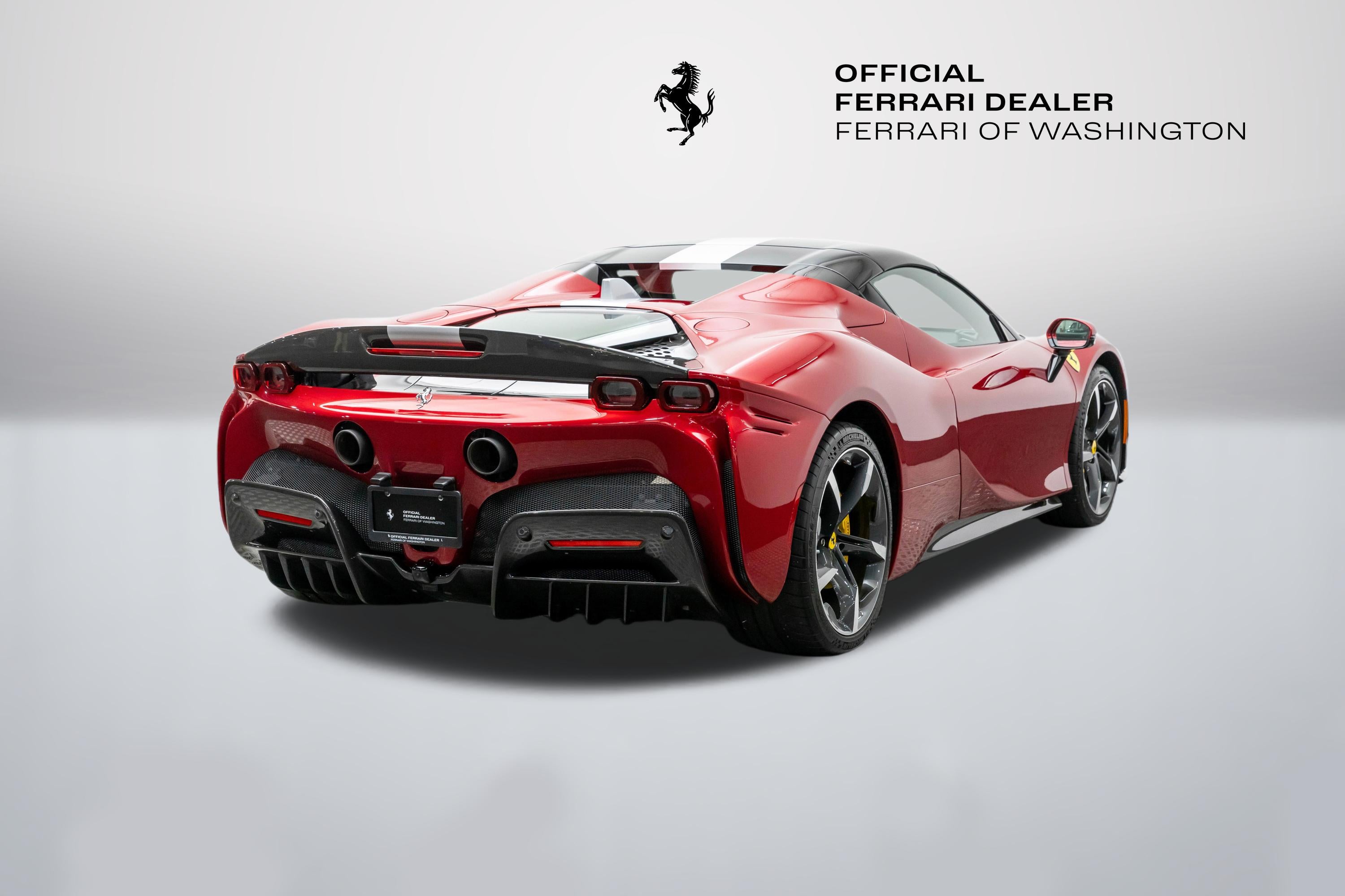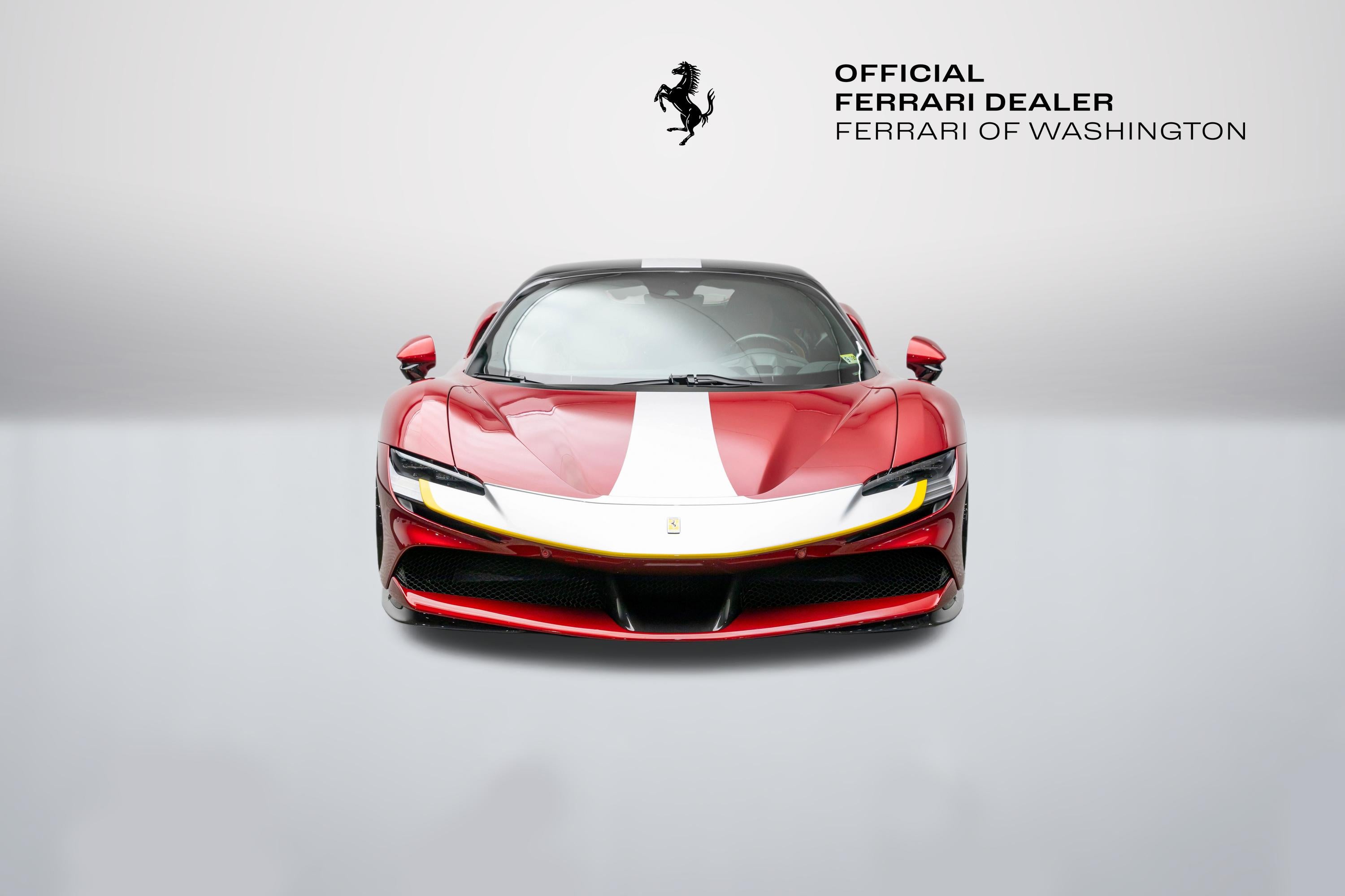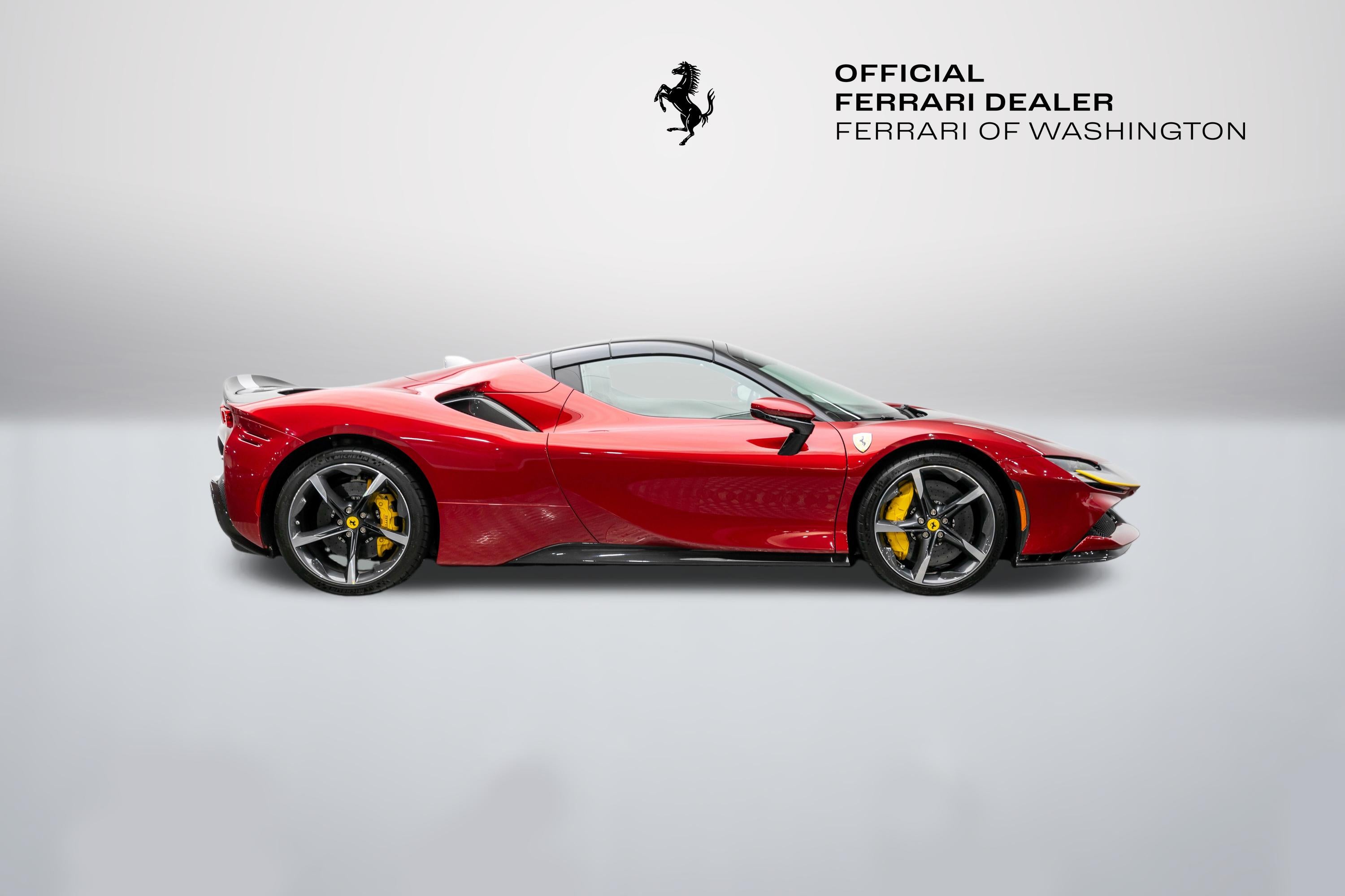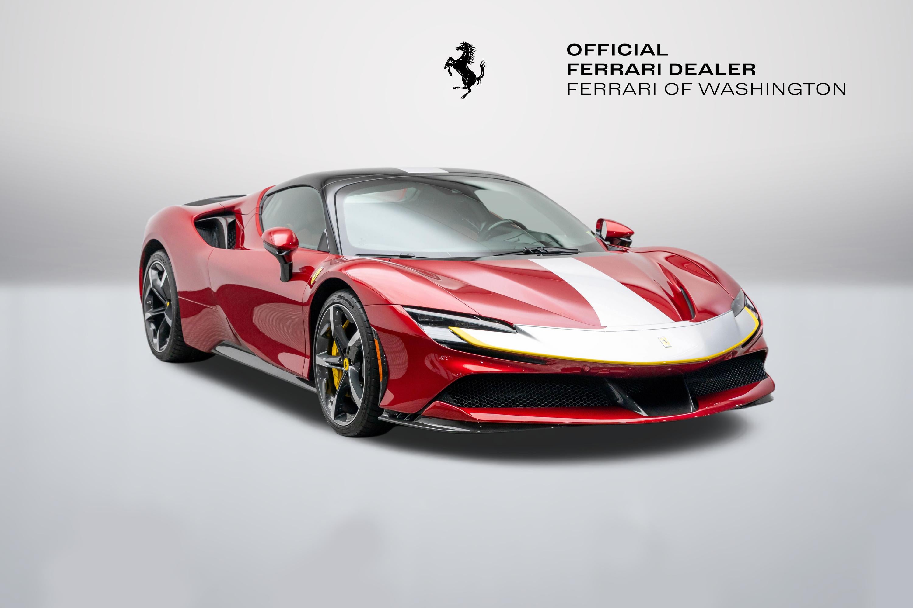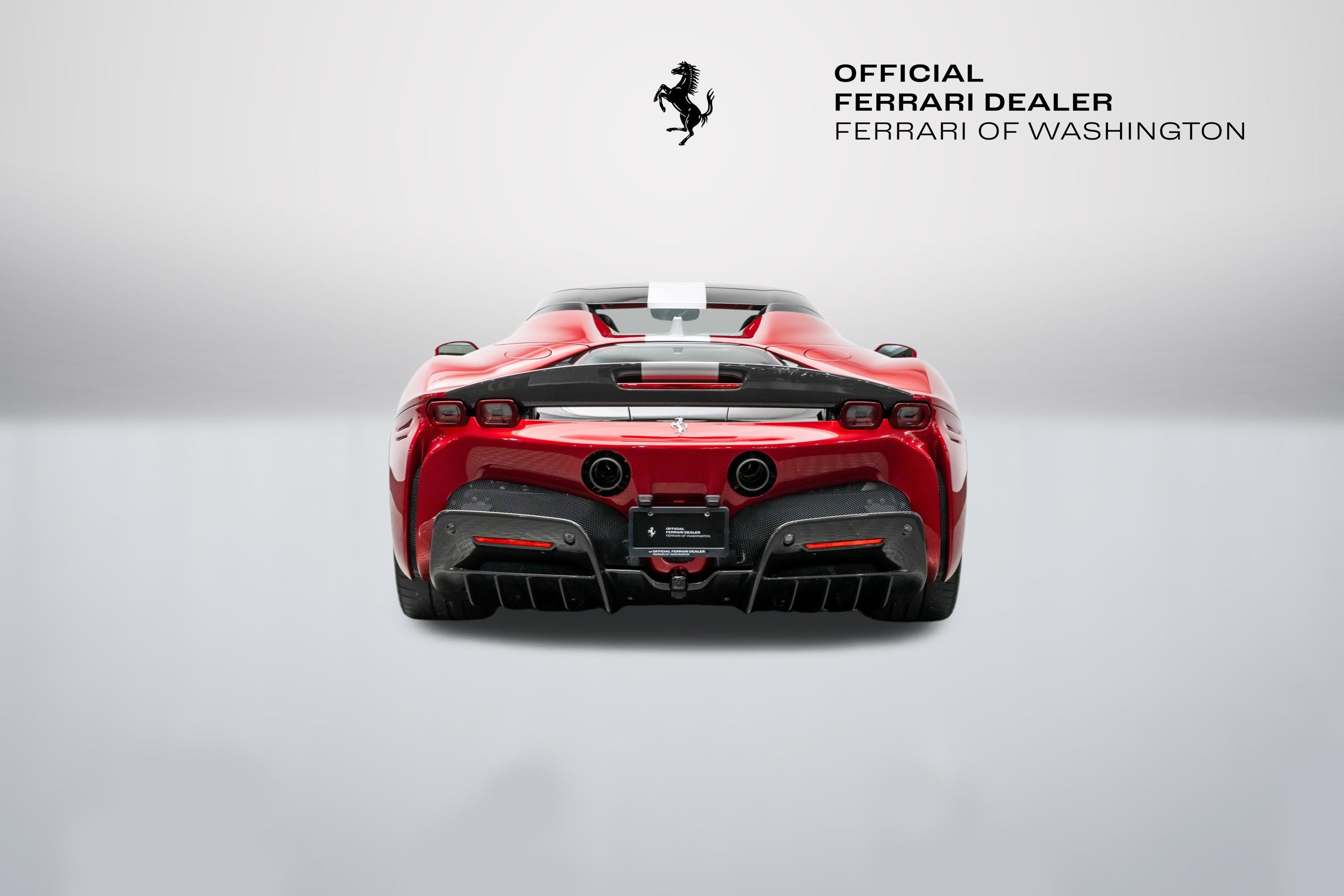 This single-owner 2024 Ferrari SF90 Spider, finished in the exceptionally rare Rosso Coburn, a deep, triple-layer metallic red from Ferrari's Tailor-Made program, first unveiled on the 458 Speciale, casts an aura of quiet enigma, its richer, darker tone shifting from shadow to firelight with a presence that commands without effort. Ferrari's pinnacle plug-in hybrid unleashes 986 horsepower from its twin-turbo V8 and three electric motors, surging to 60 mph in 2.5 seconds. The V8's feral symphony erupts amid instantaneous electric torque, while all-wheel drive and torque vectoring carve every curve with telepathic precision, every drive an intimate rush, amplified by the wind as the retractable hardtop retracts in silent invitation, wind blocker preserving serene composure. With a mere 165 miles, well below market average, this cherished single-owner exemplar remains untouched and immaculate, its garage-kept condition flawless. The coveted Assetto Fiorano package (extended) sharpens every aspect: Multimatic race-derived dampers and lightweight titanium exhaust for circuit-bred poise, extensive carbon fiber aero elements (front spoiler, active rear, door panels, tunnel) reducing weight while amplifying drama, diamond-polished forged wheels with gloss Technical Grey finish, yellow brake calipers signaling intent, and carbon fiber racing seats cradling the driver in focused luxury, all wrapped in elegant Cuoio leather with Nero accents. Ferrari equipped this Spider with an extensive selection of options: two-tone bodywork (Nero roof), gloss finish carbon fibre lateral engine air intakes, carbon fibre lateral rear screen accents, carbon diffuser, carbon fibre under-door trim, gloss finish carbon fibre front tunnel, black ceramic coated tailpipes, gloss finish carbon fiber lateral and front spoilers, Fiorano livery stripe, Argento Nürburgring accents in Giallo Modena, "Scuderia Ferrari" shields on fenders, titanium wheel studs, carbon fibre trim driver zone and LED shift indicators on steering wheel, leather seat piping (Nero), carpet color (Nero), gloss finish carbon fiber dashboard accents, embroidered Cavallino emblem on headrest (Nero), long and thin Italian flag stitched on headrest, special stitching (Nero), Apple CarPlay, blind spot detection and rear radar, advanced front driving camera, HW readiness My Ferrari Connect, electrochromic exterior rear view mirrors, front parking sensors. Delivered new and serviced exclusively by us at Ferrari of Washington, it benefits from Ferrari Approved certification and the 7-Year Genuine Maintenance program. Echoing Maranello's tradition of bespoke exclusivity, this SF90 Spider stands as a collector-grade masterpiece, ultra-rare in Rosso Coburn, flawlessly specified, and virtually unused. A singular opportunity for the discerning enthusiast; serious inquiries are invited to experience its captivating presence in person before it finds its next guardian. We are conveniently located just 6 miles from Dulles International Airport in beautiful Sterling, Virginia. Please call us today at (703) 478-3606 to speak with a member of our Sales Team, who is ready to assist you with this exceptional Ferrari.
