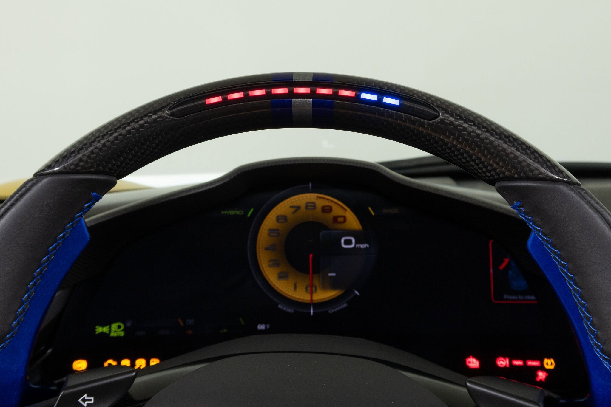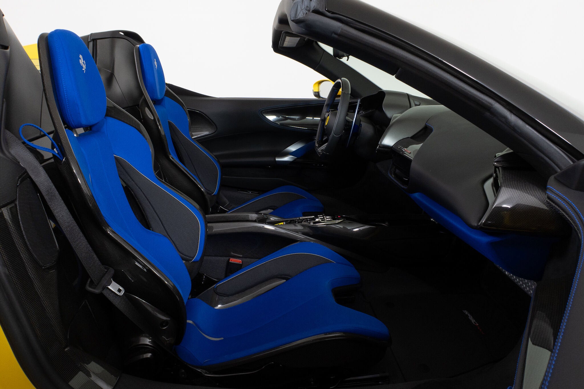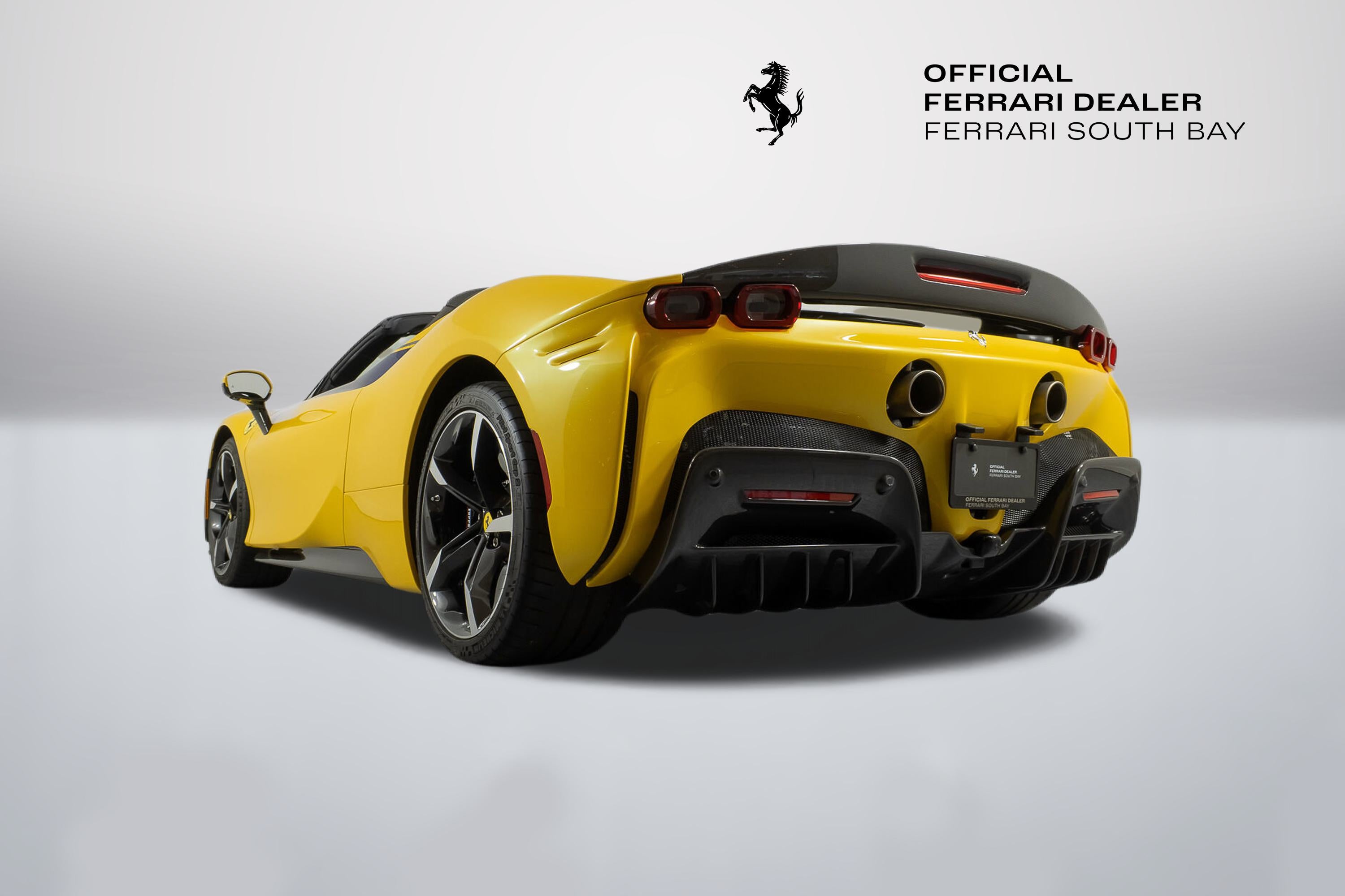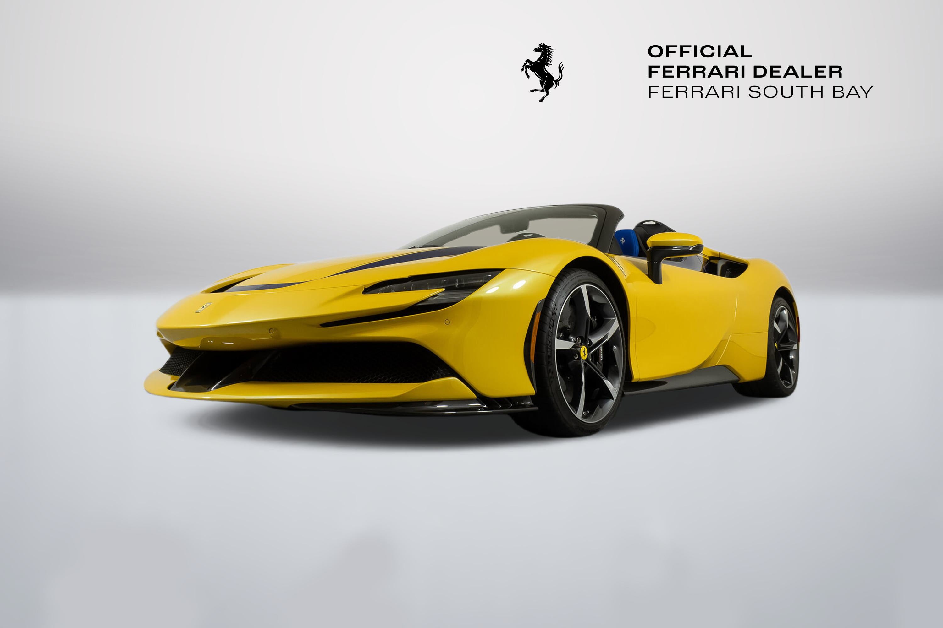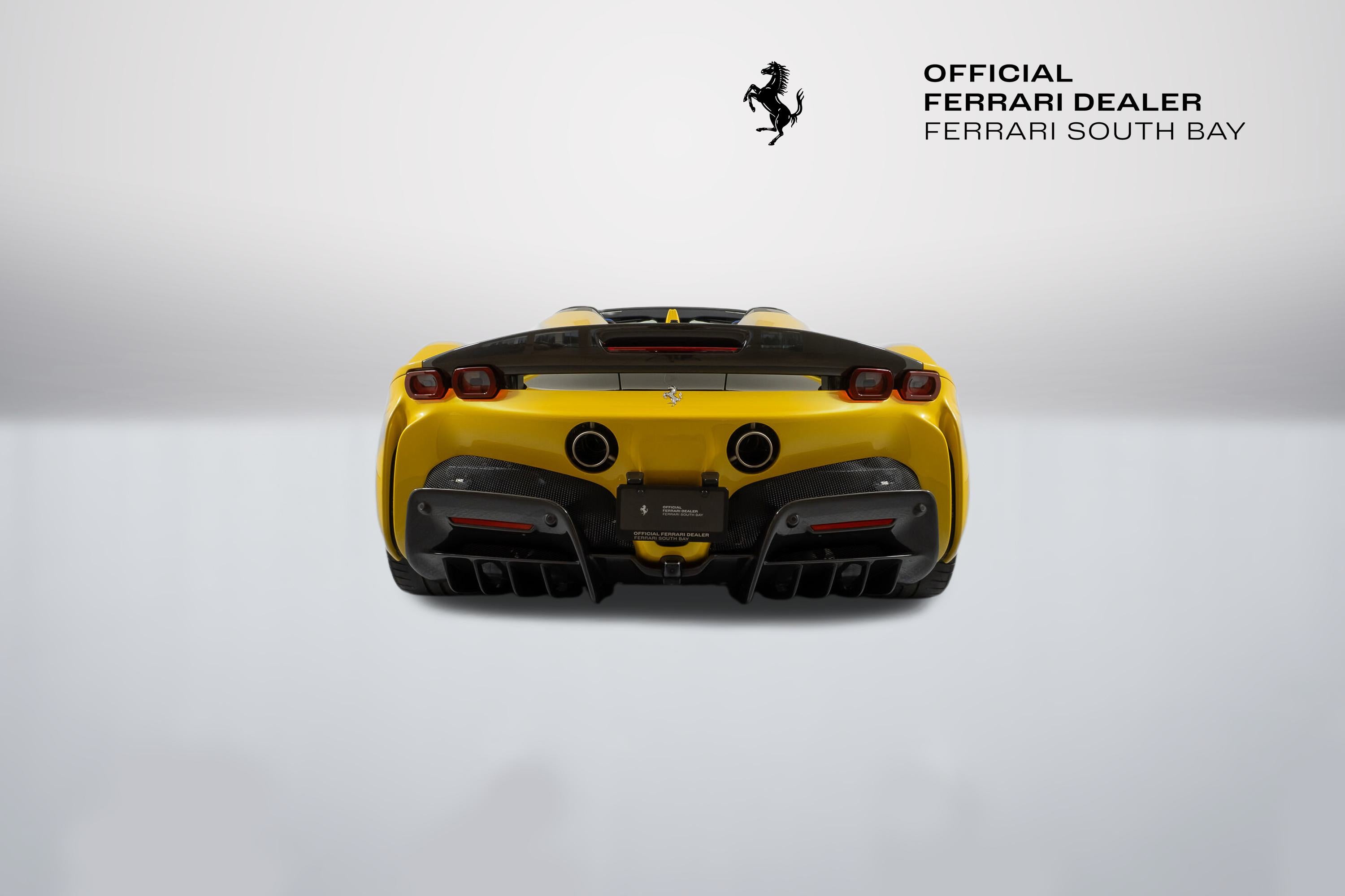 Ferrari South Bay is thrilled to offer this absolutely sensational Tailor Made SF90 Spider finished in stunning Two-Tone Giallo Sirius with Nero Roof and Blu Jeans Aunde Technical Fabric Interior. Packed with bespoke, one-of-a-kind details, this Spider is a total knockout, showcasing Ferrari's amazing personalization capabilities at the very top echelon of their Tailor Made program. There are so many unique aspects to this vehicle that no description can do the car justice - you have to see it to appreciate it! The exterior of this SF90 is finished in Special Four-Layer Giallo Sirius, and is accented with two-tone Dreamlines in Blu Torrice and Grigio Competizione. The body is two-tone, with a Nero roof to accentuate the feeling of a jet fighter cockpit, a design detail that harkens back to the legendary LaFerrari. 20 Forged Diamond Polished Wheels Ceramic Brakes with Black Calipers. Glossy Carbon Fiber is everywhere, covering the Side Air Splitters, Engine Covers, Rear Diffuser, Underdoor Covers and Central and Side Front Spoilers. Scuderia Ferrari Shields adorn the front fenders. Paint Protection Film covers the entire car, ensuring your investment will look terrific for years to come. The car is also fitted with Ferrari's Extended Fiorano Package which adds many pieces of Carbon Fiber which are unique to the package, including the Upper Shelf and the Rear Console. The Sill Kick, in Glossy Carbon Fiber, is adorned with the Assetto Fiorano logo in chrome. Special GT racing-derived Multimatic shock absorbers with Titanium Suspension Springs with track-optimized calibration ensure maximum capabilities on Road or Track. Weight is reduced by 8 kg from the standard version. The Assetto Fiorano package involves much more than simply replacing elements. Some components required that the standard basic structure of the car itself be redesigned to take advantage of the upgrades to the suspension. As bespoke as the exterior of this SF90 Spider is, the interior is a riot of custom touches. Nearly every interior finish has been individually specified. Blu Jeans Aunde Fabric with contrasting Silver Stitching throughout, including the Cavallinos embroidered on the headrests of the Carbon Fiber Racing Seats (which feature the Electric Lifter). Carbon Fiber finishes the Upper Part of the Center Console, Dashboard Air Vents and Inserts, Instrument Cover, Rear Shelf, Luggage Compartment, and the Steering Wheel (which is fitted with Ferrari's now-signature LED Shift Lights and features a Tricolore Dreamline on the Upper Arch). The F1 Shift Paddles are finished in Glossy Blu Torrice with Grigio Competizione Dreamlines (to match the exterior Dreamlines). Front and Rear Parking Sensors, Back Radar with Blind Spot Assist, and the Advanced Front Driving Camera assist with tight maneuvers. Apple CarPlay provides entertainment when traffic won't permit you to let the car's performance out of the bag. This Certified Pre-Owned SF90 Spider is offered with both original keys, books, tools, battery tender and car cover. The car covered by the Original Ferrari Factory Warranty through September 22, 2026 (and can easily be extended by up to two years at time of purchase). Ferrari Genuine Maintenance covers annual services through September 22, 2031. If you'd like to know more about this SF90 or set up a viewing, please reach out to one of our knowledgeable sales staff. Ferrari South Bay is proudly part of Holand Automotive Group, one of North America’s leading luxury automotive retailers. We offer nationwide shipping, trade-in opportunities, financing, client consignments, and world-class delivery service. Contact us today to explore ownership of this remarkable SF90 Spider. Please visit us at 23305 Hawthorne Blvd, Torrance, CA 90505, or call us at (888) 578-8767.