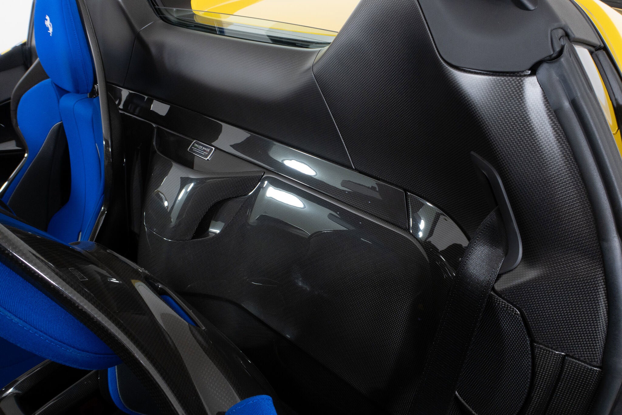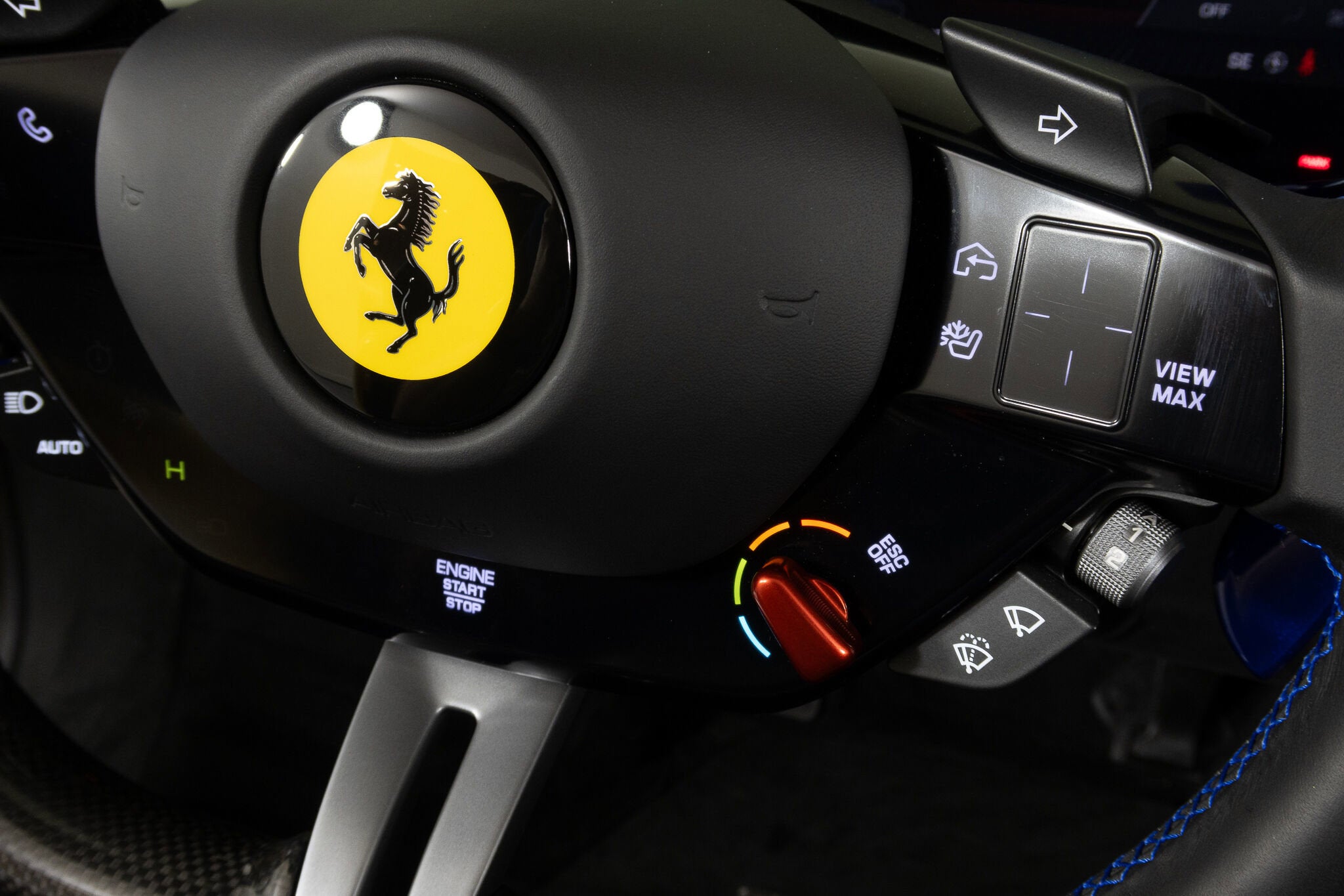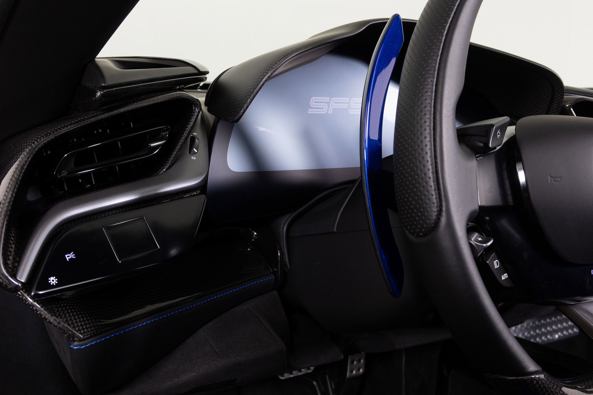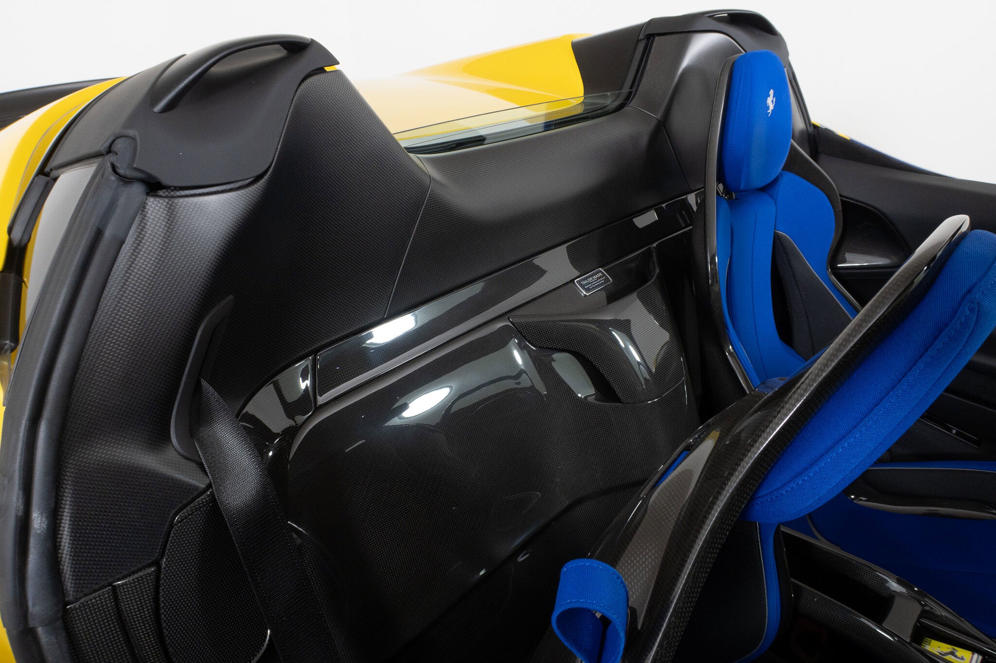 Ferrari South Bay is thrilled to offer this absolutely sensational Tailor Made SF90 Spider finished in stunning Two-Tone Giallo Sirius with Nero Roof and Blu Jeans Aunde Technical Fabric Interior. Packed with bespoke, one-of-a-kind details, this Spider is a total knockout, showcasing Ferrari's amazing personalization capabilities at the very top echelon of their Tailor Made program. There are so many unique aspects to this vehicle that no description can do the car justice - you have to see it to appreciate it! The exterior of this SF90 is finished in Special Four-Layer Giallo Sirius, and is accented with two-tone Dreamlines in Blu Torrice and Grigio Competizione. The body is two-tone, with a Nero roof to accentuate the feeling of a jet fighter cockpit, a design detail that harkens back to the legendary LaFerrari. 20 Forged Diamond Polished Wheels Ceramic Brakes with Black Calipers. Glossy Carbon Fiber is everywhere, covering the Side Air Splitters, Engine Covers, Rear Diffuser, Underdoor Covers and Central and Side Front Spoilers. Scuderia Ferrari Shields adorn the front fenders. Paint Protection Film covers the entire car, ensuring your investment will look terrific for years to come. The car is also fitted with Ferrari's Extended Fiorano Package which adds many pieces of Carbon Fiber which are unique to the package, including the Upper Shelf and the Rear Console. The Sill Kick, in Glossy Carbon Fiber, is adorned with the Assetto Fiorano logo in chrome. Special GT racing-derived Multimatic shock absorbers with Titanium Suspension Springs with track-optimized calibration ensure maximum capabilities on Road or Track. Weight is reduced by 8 kg from the standard version. The Assetto Fiorano package involves much more than simply replacing elements. Some components required that the standard basic structure of the car itself be redesigned to take advantage of the upgrades to the suspension. As bespoke as the exterior of this SF90 Spider is, the interior is a riot of custom touches. Nearly every interior finish has been individually specified. Blu Jeans Aunde Fabric with contrasting Silver Stitching throughout, including the Cavallinos embroidered on the headrests of the Carbon Fiber Racing Seats (which feature the Electric Lifter). Carbon Fiber finishes the Upper Part of the Center Console, Dashboard Air Vents and Inserts, Instrument Cover, Rear Shelf, Luggage Compartment, and the Steering Wheel (which is fitted with Ferrari's now-signature LED Shift Lights and features a Tricolore Dreamline on the Upper Arch). The F1 Shift Paddles are finished in Glossy Blu Torrice with Grigio Competizione Dreamlines (to match the exterior Dreamlines). Front and Rear Parking Sensors, Back Radar with Blind Spot Assist, and the Advanced Front Driving Camera assist with tight maneuvers. Apple CarPlay provides entertainment when traffic won't permit you to let the car's performance out of the bag. This Certified Pre-Owned SF90 Spider is offered with both original keys, books, tools, battery tender and car cover. The car covered by the Original Ferrari Factory Warranty through September 22, 2026 (and can easily be extended by up to two years at time of purchase). Ferrari Genuine Maintenance covers annual services through September 22, 2031. If you'd like to know more about this SF90 or set up a viewing, please reach out to one of our knowledgeable sales staff. Ferrari South Bay is proudly part of Holand Automotive Group, one of North America’s leading luxury automotive retailers. We offer nationwide shipping, trade-in opportunities, financing, client consignments, and world-class delivery service. Contact us today to explore ownership of this remarkable SF90 Spider. Please visit us at 23305 Hawthorne Blvd, Torrance, CA 90505, or call us at (888) 578-8767.