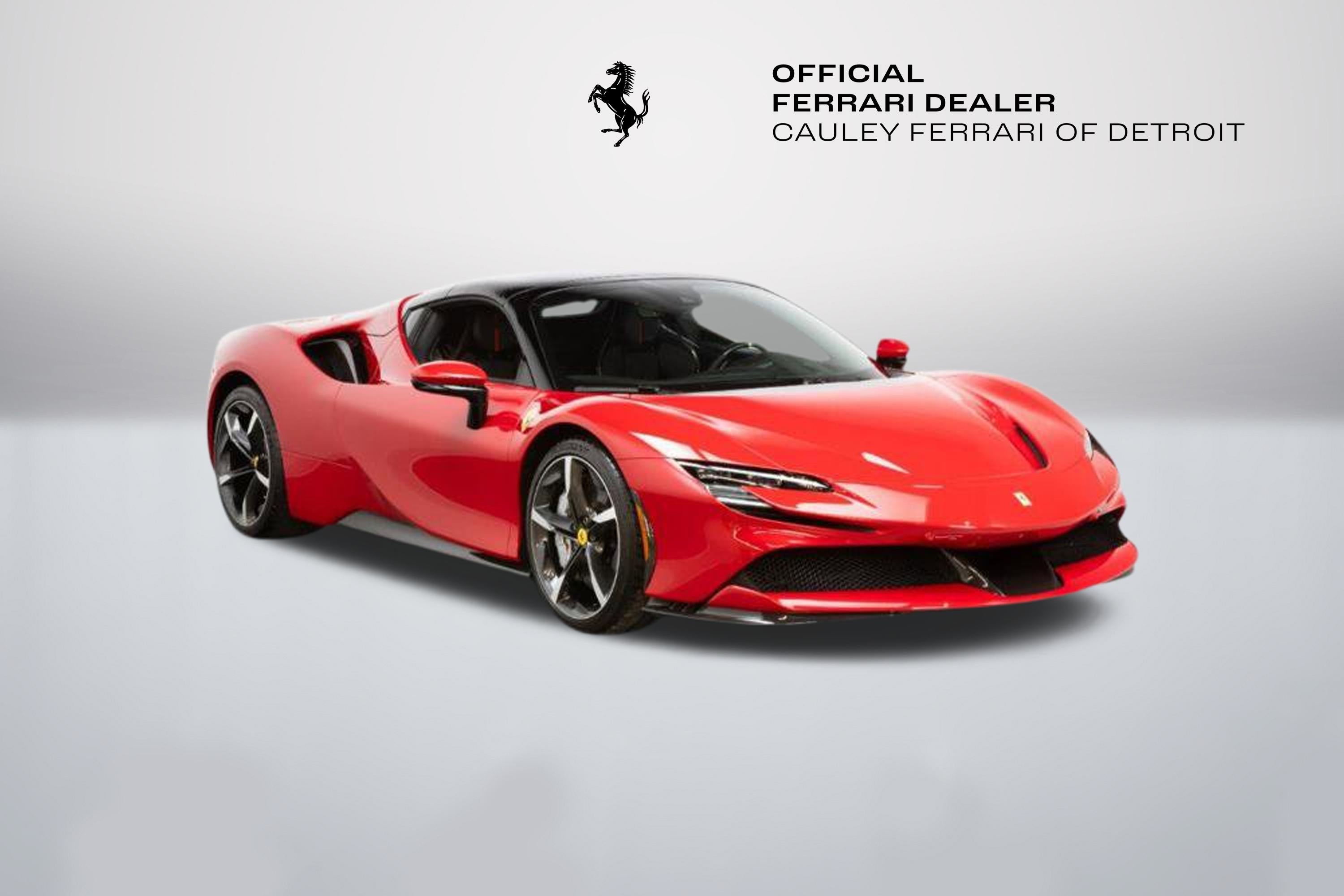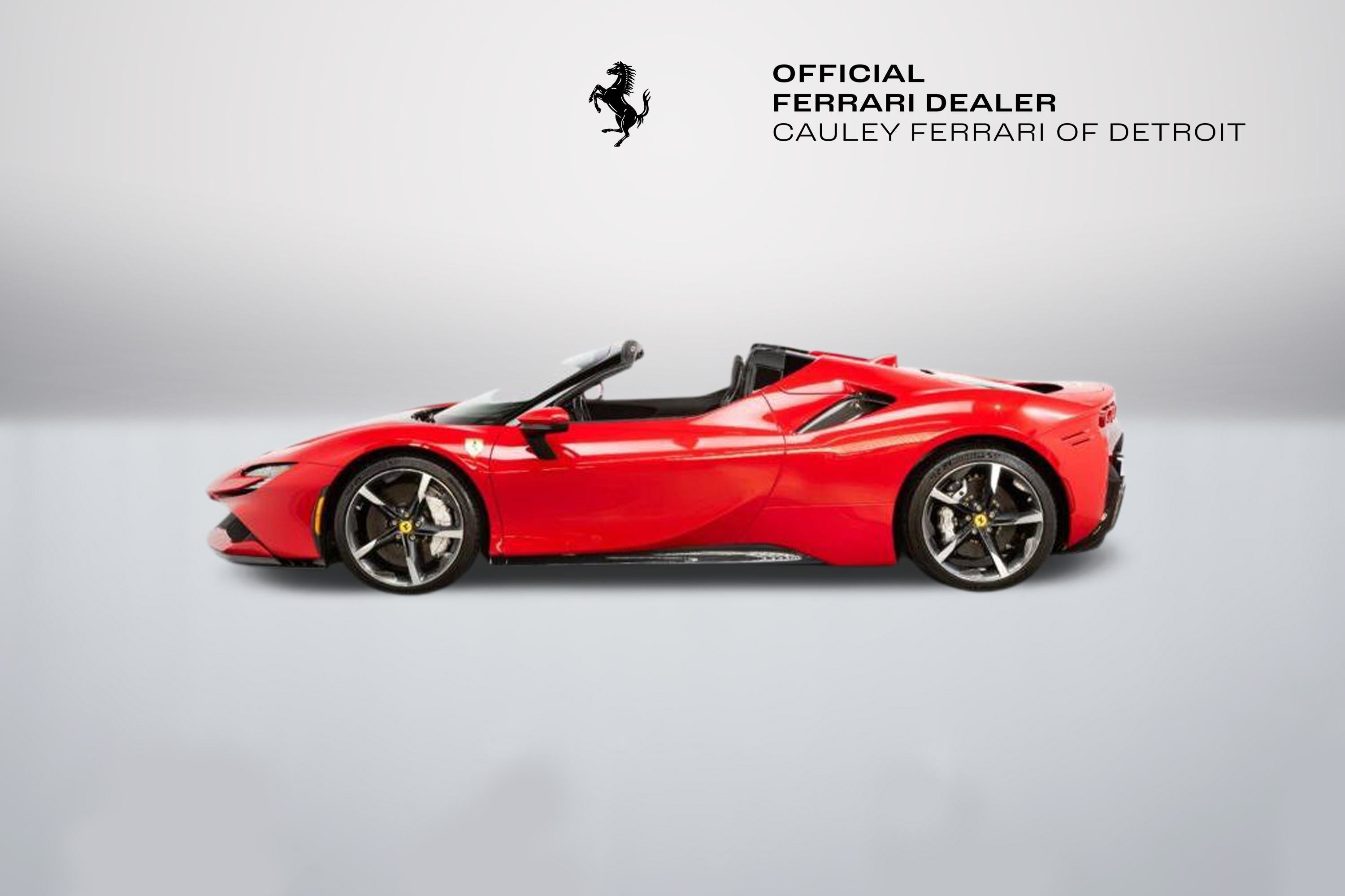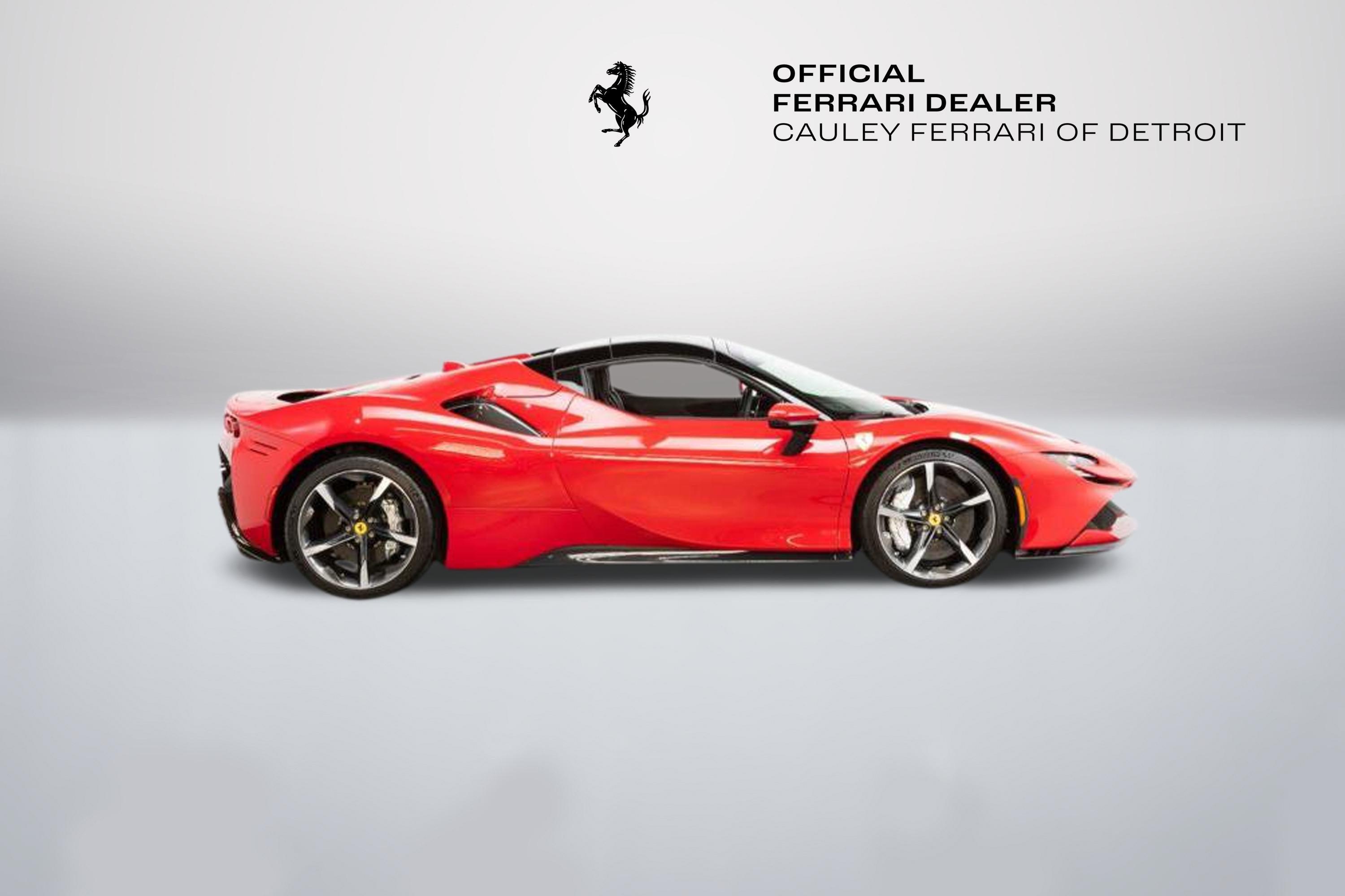 Cauley Ferrari of Detroit is excited to offer you this stunning SF90 Spider finished in the special 4-layer Rosso TRS paint with a Nero roof over a Nero interior with Rosso accents throughout. It is equipped with key options such as the Diamond Polished Forged Wheels, Premium Hi-Fi Sound, Front Lift, Scuderia Ferrari Shields, and several exterior Carbon Fiber Exterior and Interior options. The full options list can be seen below. This is being sold as a Ferrari Certified Pre-Owned vehicle. The remaining factory warranty runs through 9/1/26 and will be followed by 2 Additional years of factory bumper-to-bumper warranty through 9/1/28. The seven-year free scheduled maintenance is good until 9/1/2030. Give us a call or stop by to take a closer look at this stunning SF90 Spider. Please ask us about our financing and leasing options available through Ferrari Financial Services (FFS). We can offer you monthly financing as far out as 84 months, Balloon financing up to 60 months, as well as both Open-End Leasing scenarios. FFS is available on all new and pre-owned Ferrari models. These flexible payment options make getting into a Ferrari easier than ever before. Let us show you how. Give us a call at 248-538-9600 to set up an appointment for a closer look or stop by our showroom in West Bloomfield, MI. Factory Options: - Apple CarPlay - AFS System - Atelier New York - Two-Tone Bodywork - Back Radar - Brake Calipers in Alluminio - Carbon Fibre Side Air Splitter - Rear Diffuser in Carbon Fibre - Carbon Fibre Underdoor Cover - Carbon Fibre Driver Zone + LEDs - Exterior Sill Kick in Carbon - Coloured Inner Details Nero DS 1250 - Leather/Alcantara Mats Rosso Ferrari 130421 - Dash Inserts in Carbon Fibre - Dedication Plate in Silver - Suspension Lifter - Cavallino Stitched on Headrest Rosso 0504 - Black Tailpipe Tips - Advanced Front Driving Camera - Carbon Fibre Front Spoiler - Cavallino + Satin Ferrari Badge - Homelink - MyFerrari Connect Readiness HW - Steering Wheel with Tricolour Stitching - Tricolour Livery on Upper Rim of Steering Wheel - Scuderia Ferrari Shields - Electrochromic Rear-View Mirror - Front and Rear Parking Sensors - Special 4-Layer Colours ExtrRange - Carbon Fibre Racing Seats Large Size - Racing Seat Lifter - Diamond-Polished Forged Wheels - Premium Hi-Fi System - Special Equipment - Coloured Special Stitching O.R. Rosso 0504 - Wheel Stud Bolts in Titanium Special Equipment - Rosso TRS F/M
