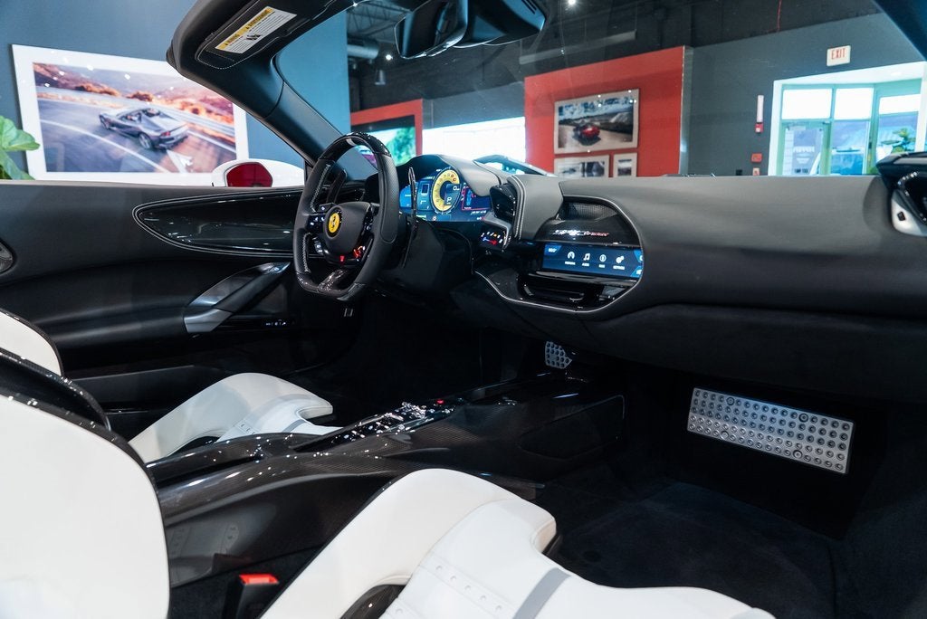 Ferrari of Lake Forest is Proud to Presen this Certified Pre Owned 2025 Ferrari SF90 Spider Finished in Special 4 Layer Bianco Mille Miglia over Nero Leather Interior. This Ferrari SF90 Spider is Optionally Equipped with: Two Tone Body Painting in Nero Glossy Black Brake Calipers Carbon Fiber Side Air Splitter Engine Covers in Carbon Fiber Carbon Fiber Rear Boot Trim Rear Diffuser in Carbon Fiber Carbon Fiber Under Door Cover Carbon Fiber Wheel Cups Black Tailpipes Carbon Fiber Front Spoiler Fiorano Package Extended Fiorano Package Scuderia Ferrari Shields Carbon Fiber Engine Manifolds Carbon Fiber Wheels Front and Rear Parking Sensors Titanium Wheel Bolts Surround View Camera Front Radar with ACC Apple CarPlay Central Part of Seats in Alcantara Carbon Fiber Driver Zone with LEDs Carbon Fiber Rear Shelf Upper Part of Center Console in Carbon Fiber Carbon Fiber Front Luggage Compartment Area Colored Passenger Compartment Details in Extra Range Grigio Corvara Dedication Plate Cavallino Stitched on Headrests in Extra Range Grigio Corvara Single Color Livery on Upper Steering Wheel Rim in Extra Range Bianco Mille Miglia Daytona Racing Seats in XL Racing Seat Lifter Leather Headliner in Nero Premium HiFi System Colored Special Stitching in Speciale Bianco Back Radar Advanced Front Driving Camera Front and Rear Parking Sensors The Ferrari SF90 Spider is what happens when Maranello decides physics is optional. With nearly a thousand horsepower from a twin-turbo V8 and three electric motors, it launches like its been fired from an aircraft carrier. Roof down, its part supercar, part sci-fi experiment, all drama. This isnt just a convertible Ferrari. Its a plug-in hypercar that laughs at traction and redefines what fast feels like. For more information on this Ferrari SF90 Spider call one of our Ferrari Specialists today at 847.295.6560