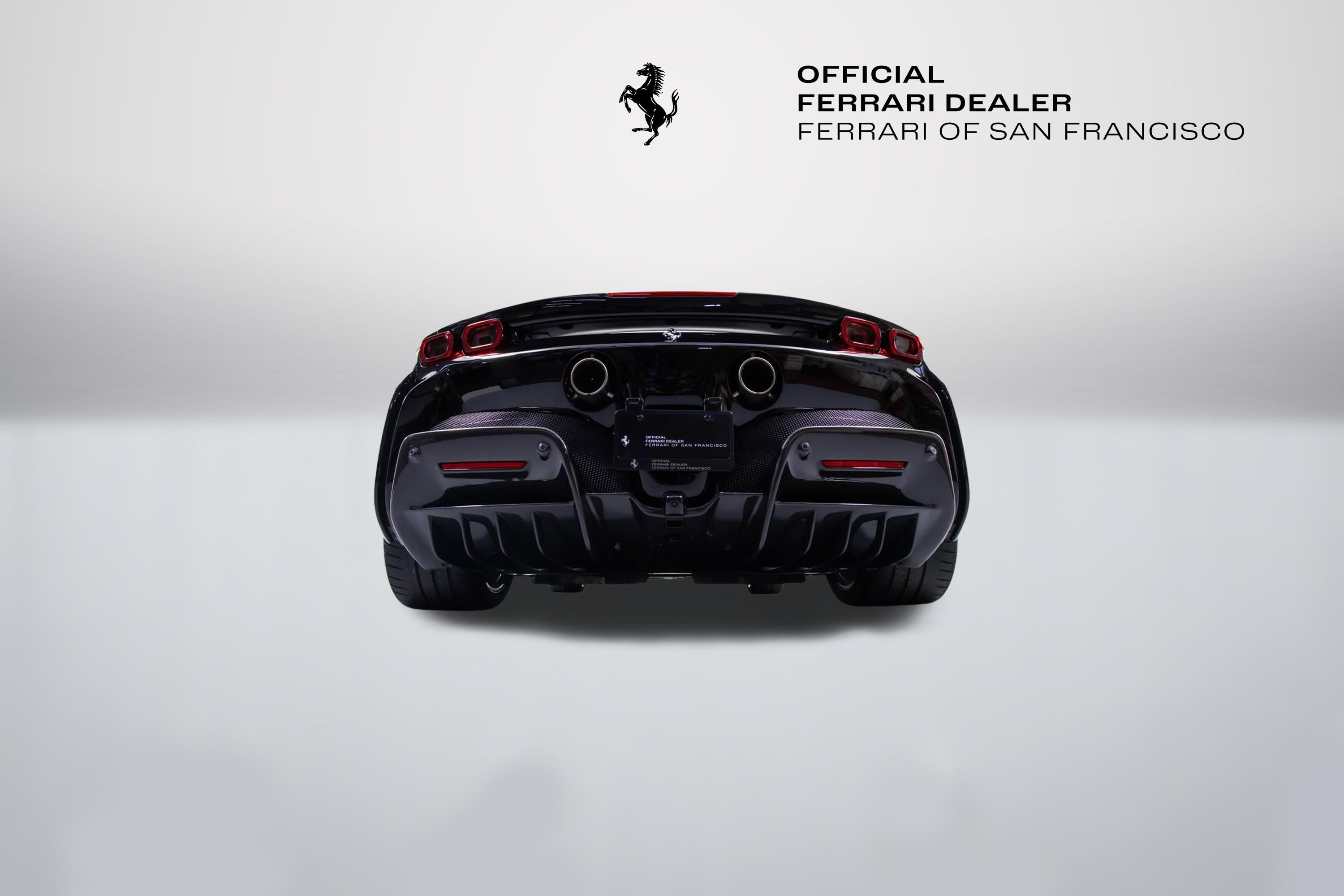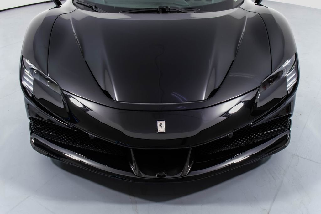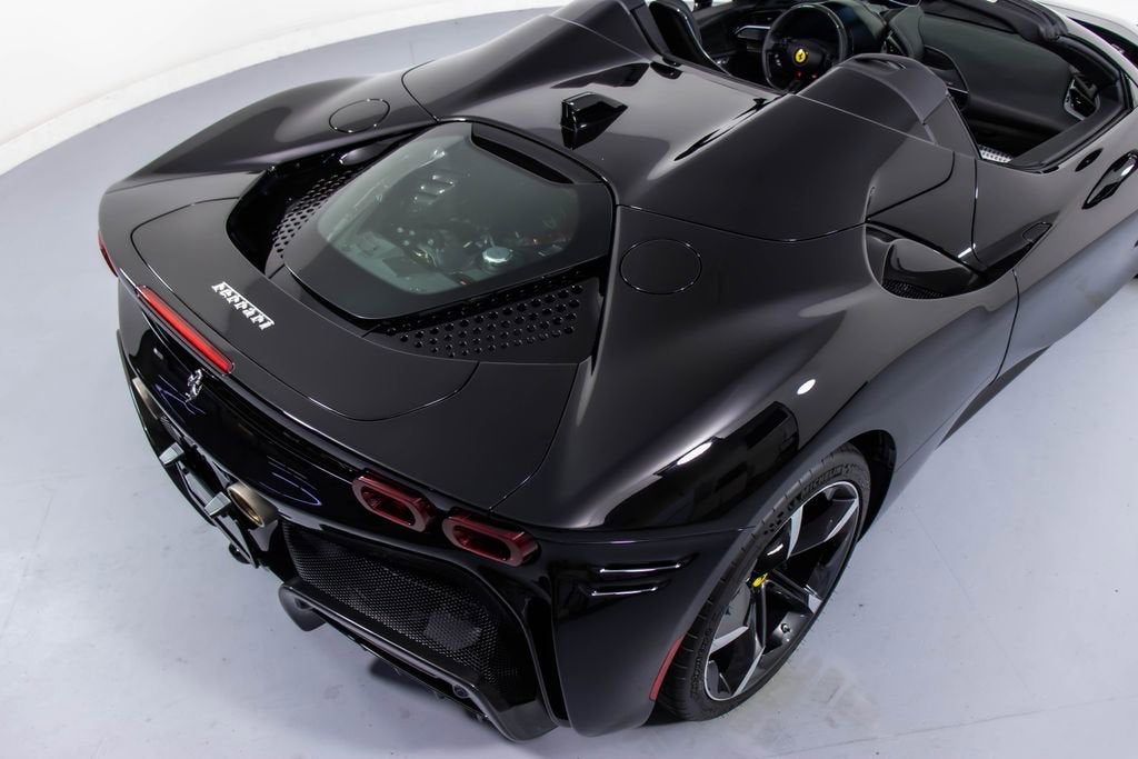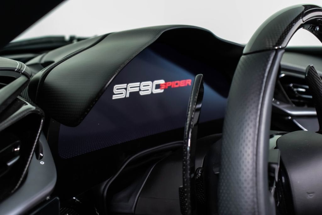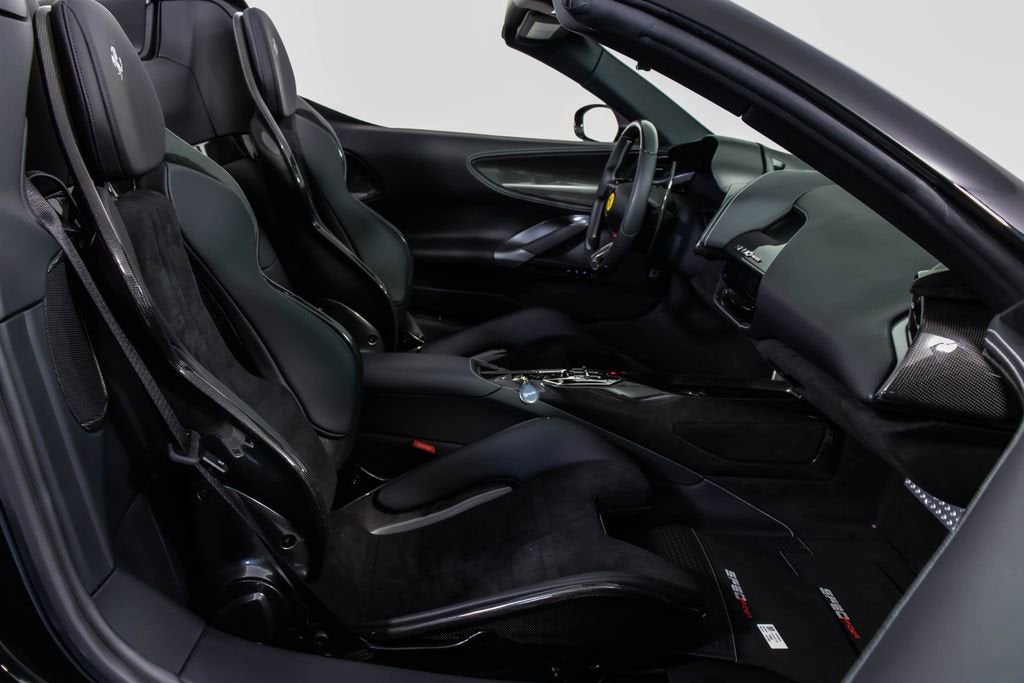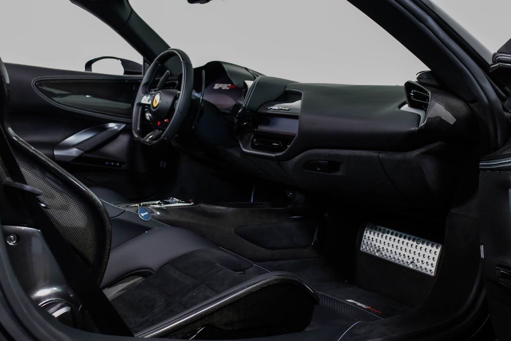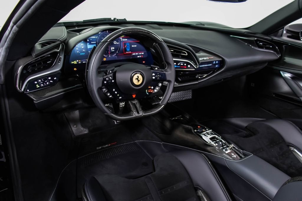 217571 Exterior: Nero Interior: Nero Mats: Nero 2025 Ferrari SF90 Spider Options: Apple CarPlay AFS System Central Part of Seats in INTC Alcantara Two-Tone Bodywork in Nero Back Radar Glossy Black Brake Calipers Carbon Fiber Side Air Splitter Engine Covers in Carbon Fiber Rear Diffuser in Carbon Fiber Carbon Fiber Under Door Cover Carbon Fiber Driver Zone + LEDS Carbon Fiber Door Panels Exterior Sill Kickplate in Carbon Upper Part of Center Console in Carbon Fiber Style1 Leather/Alcantara Mats Dashboard Inserts in Carbon Fiber Front Lift Cavallino Stitched on Headrest EMPH in Special Thread Grigio Corvara Titanium Exhaust Pipes Advanced Front Driving Camera Carbon Fiber Front Spoiler Extra Set of Additional Mats Additional Colored Mats with Logo Home Link MyFerrari Connect Readiness HW Carb. Fib. Steering Wheel + LEDS 'Scuderia Ferrari' Shields Electrochromic Rear-View Mirror Front and Rear Parking Sensors Daytona Racing Seats Racing Seat Lifter Diamond-Polished Forged Wheels Leather Headliner in Nero Premium Hi-Fi System Custom Specifications STC2 in Special Thread Grigio Corvara Colored Special Stitching O.R. Surround View Titanium Wheel Bolts MyFerrari Connect No Activated This 2025 Ferrari SF90 Spider is a stealthy and aggressively styled hybrid supercar, finished in an all-Nero specification that exudes pure sophistication and performance intent. The exteriors dark, menacing presence is enhanced by gloss black brake calipers, diamond-polished forged wheels, and an array of carbon fiber components including the side air splitters, front spoiler, rear diffuser, engine covers, door panels, and driver zone with LED steering wheel. Inside, the Nero cabin is elevated with Daytona racing seats featuring Alcantara inserts, Grigio Corvara special stitching, and a finely crafted leather headliner, creating a focused yet luxurious environment. Equipped with advanced technology such as Apple CarPlay, AFS system, front lift, surround view, advanced front driving camera, and front and rear parking sensors, it seamlessly blends everyday usability with extreme performance. Titanium exhaust pipes and titanium wheel bolts further emphasize its lightweight engineering, while the premium Hi-Fi system and MyFerrari Connect readiness ensure modern convenience. This SF90 Spider is a perfect fusion of cutting-edge hybrid power, bespoke craftsmanship, and unmistakable Ferrari design.