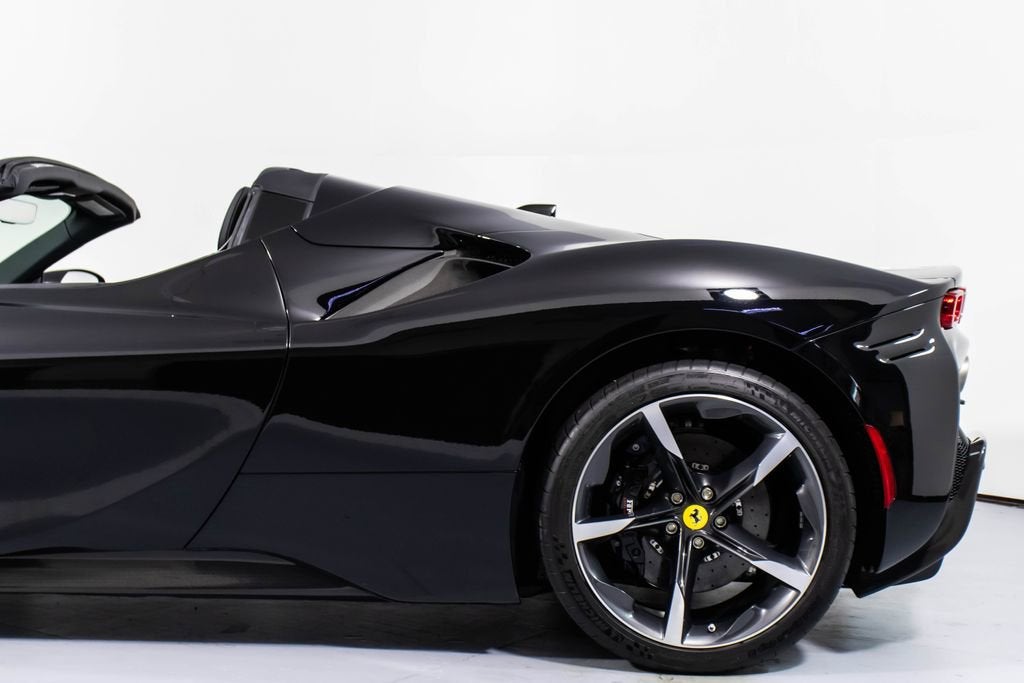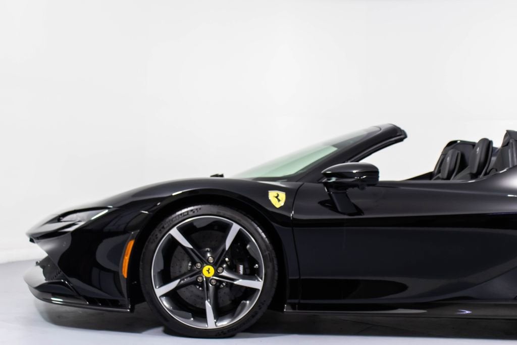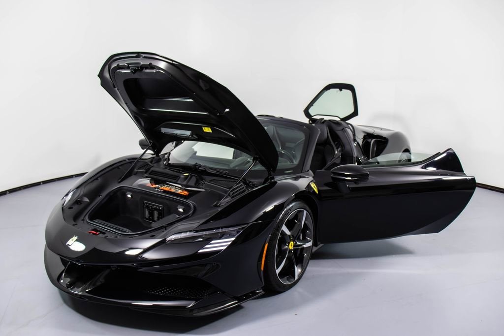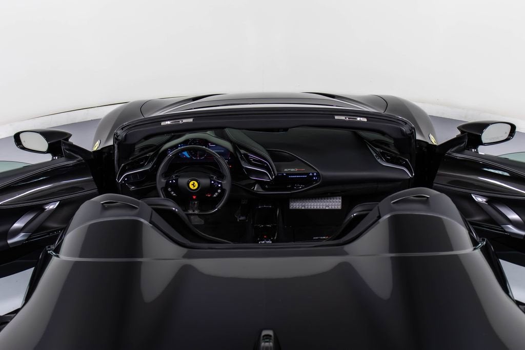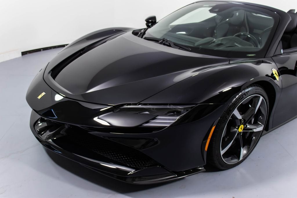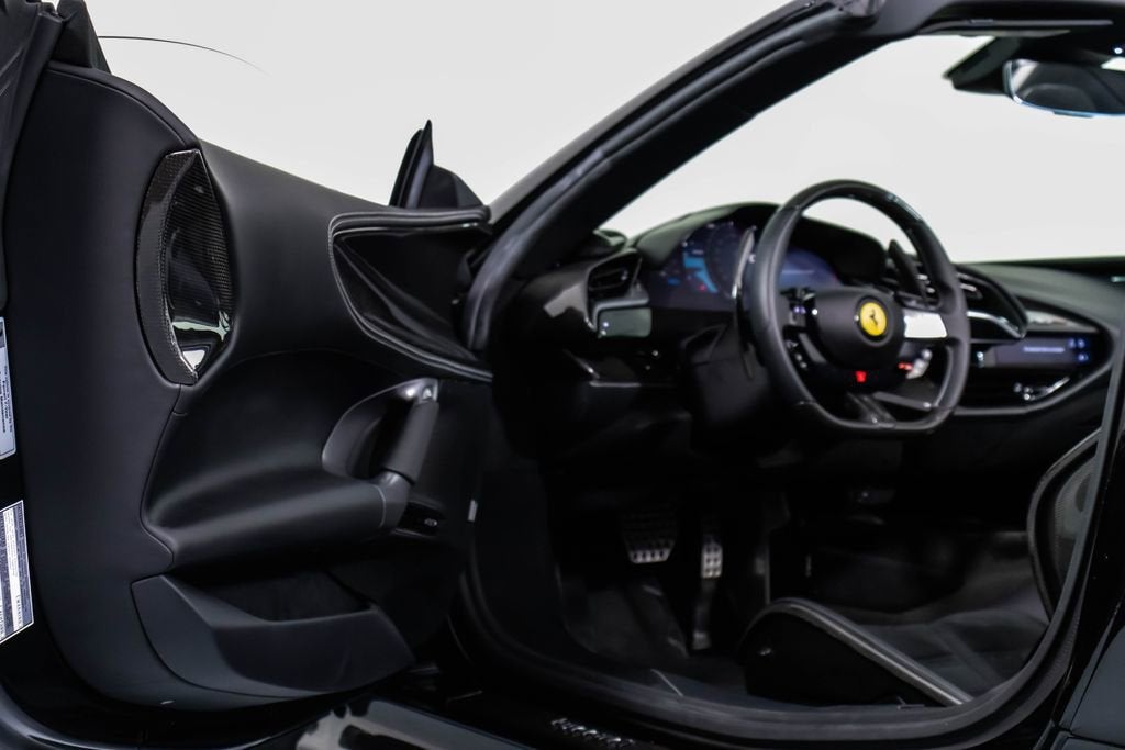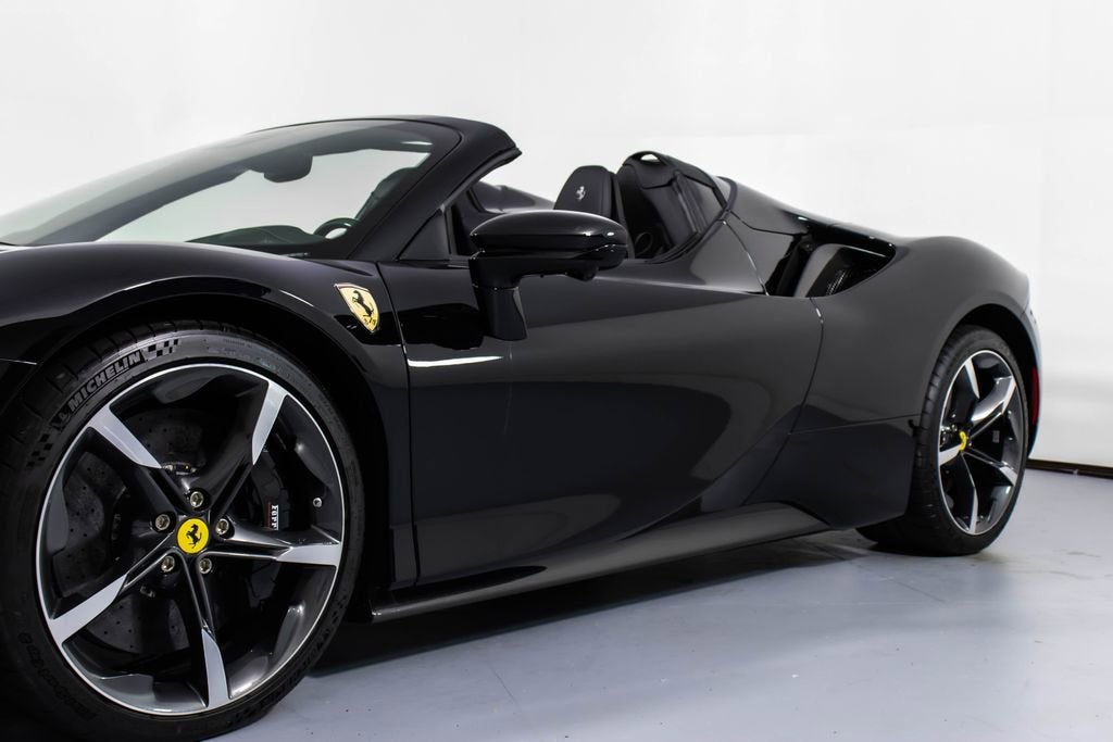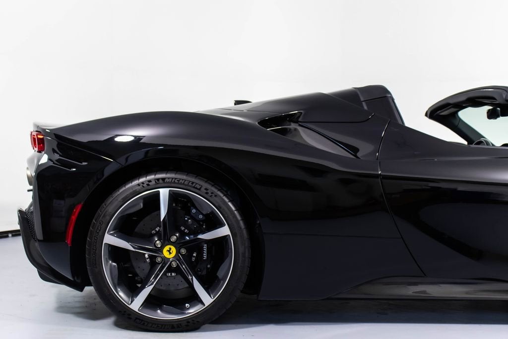 217571 Exterior: Nero Interior: Nero Mats: Nero 2025 Ferrari SF90 Spider Options: Apple CarPlay AFS System Central Part of Seats in INTC Alcantara Two-Tone Bodywork in Nero Back Radar Glossy Black Brake Calipers Carbon Fiber Side Air Splitter Engine Covers in Carbon Fiber Rear Diffuser in Carbon Fiber Carbon Fiber Under Door Cover Carbon Fiber Driver Zone + LEDS Carbon Fiber Door Panels Exterior Sill Kickplate in Carbon Upper Part of Center Console in Carbon Fiber Style1 Leather/Alcantara Mats Dashboard Inserts in Carbon Fiber Front Lift Cavallino Stitched on Headrest EMPH in Special Thread Grigio Corvara Titanium Exhaust Pipes Advanced Front Driving Camera Carbon Fiber Front Spoiler Extra Set of Additional Mats Additional Colored Mats with Logo Home Link MyFerrari Connect Readiness HW Carb. Fib. Steering Wheel + LEDS 'Scuderia Ferrari' Shields Electrochromic Rear-View Mirror Front and Rear Parking Sensors Daytona Racing Seats Racing Seat Lifter Diamond-Polished Forged Wheels Leather Headliner in Nero Premium Hi-Fi System Custom Specifications STC2 in Special Thread Grigio Corvara Colored Special Stitching O.R. Surround View Titanium Wheel Bolts MyFerrari Connect No Activated This 2025 Ferrari SF90 Spider is a stealthy and aggressively styled hybrid supercar, finished in an all-Nero specification that exudes pure sophistication and performance intent. The exteriors dark, menacing presence is enhanced by gloss black brake calipers, diamond-polished forged wheels, and an array of carbon fiber components including the side air splitters, front spoiler, rear diffuser, engine covers, door panels, and driver zone with LED steering wheel. Inside, the Nero cabin is elevated with Daytona racing seats featuring Alcantara inserts, Grigio Corvara special stitching, and a finely crafted leather headliner, creating a focused yet luxurious environment. Equipped with advanced technology such as Apple CarPlay, AFS system, front lift, surround view, advanced front driving camera, and front and rear parking sensors, it seamlessly blends everyday usability with extreme performance. Titanium exhaust pipes and titanium wheel bolts further emphasize its lightweight engineering, while the premium Hi-Fi system and MyFerrari Connect readiness ensure modern convenience. This SF90 Spider is a perfect fusion of cutting-edge hybrid power, bespoke craftsmanship, and unmistakable Ferrari design.