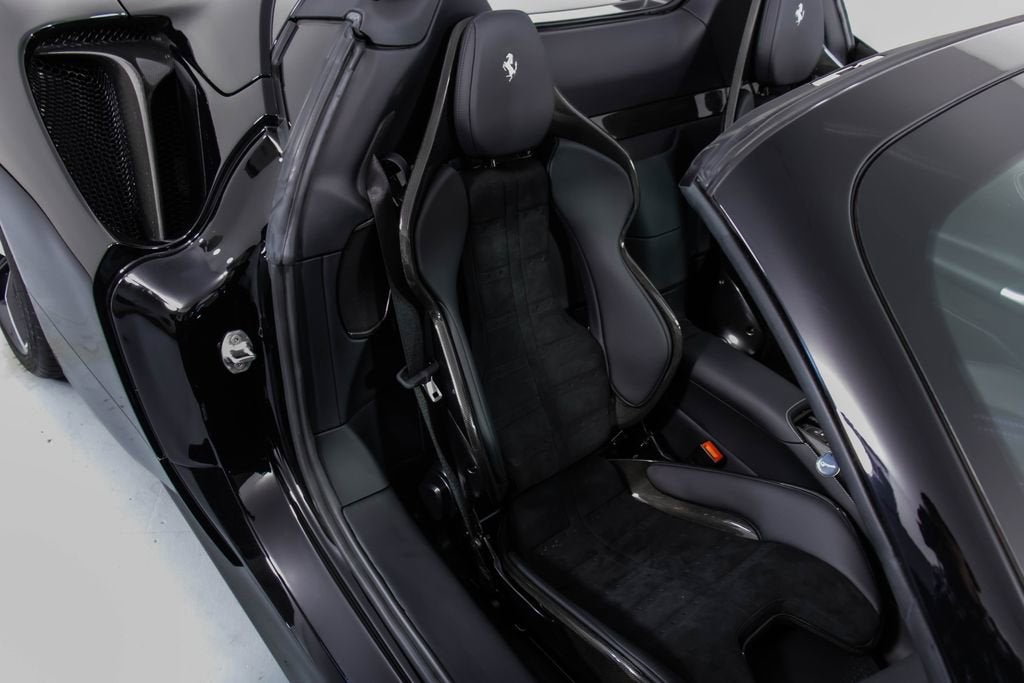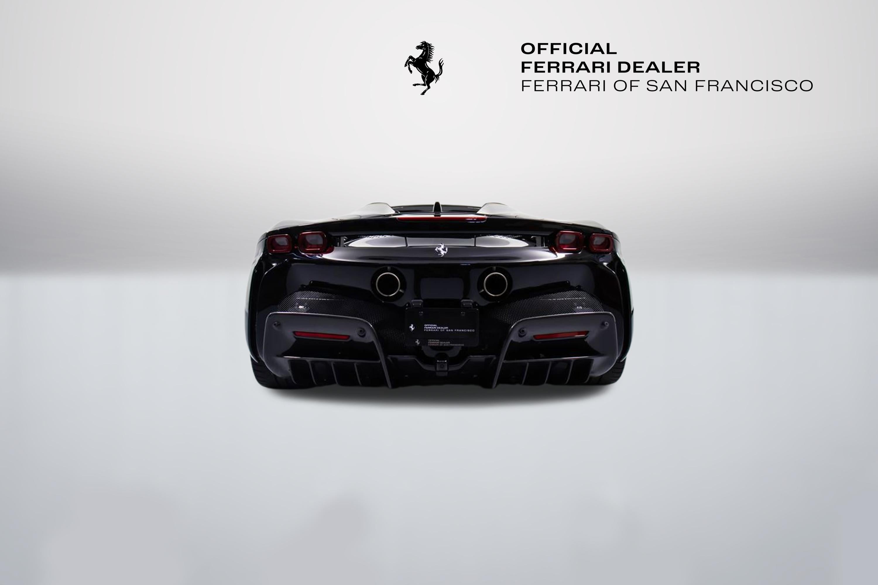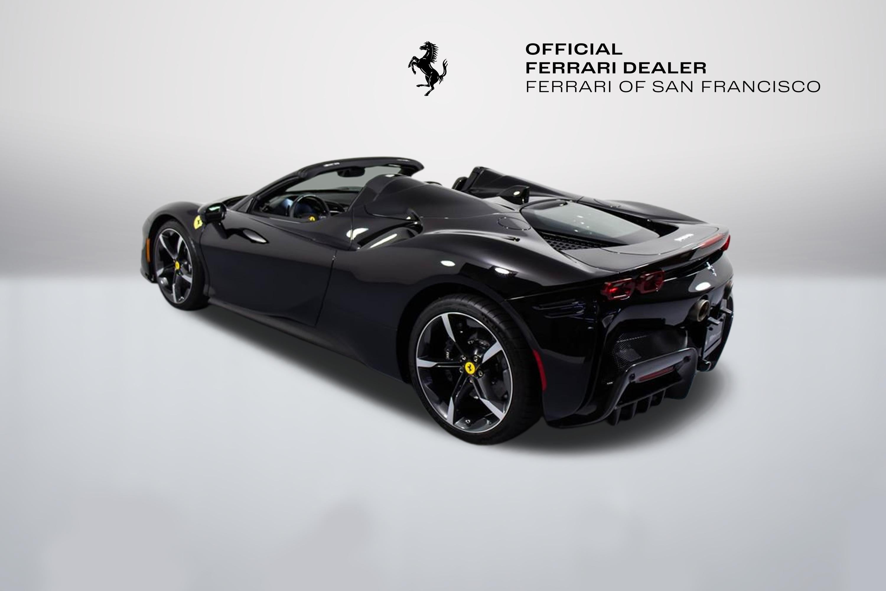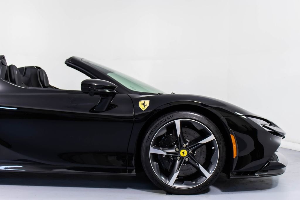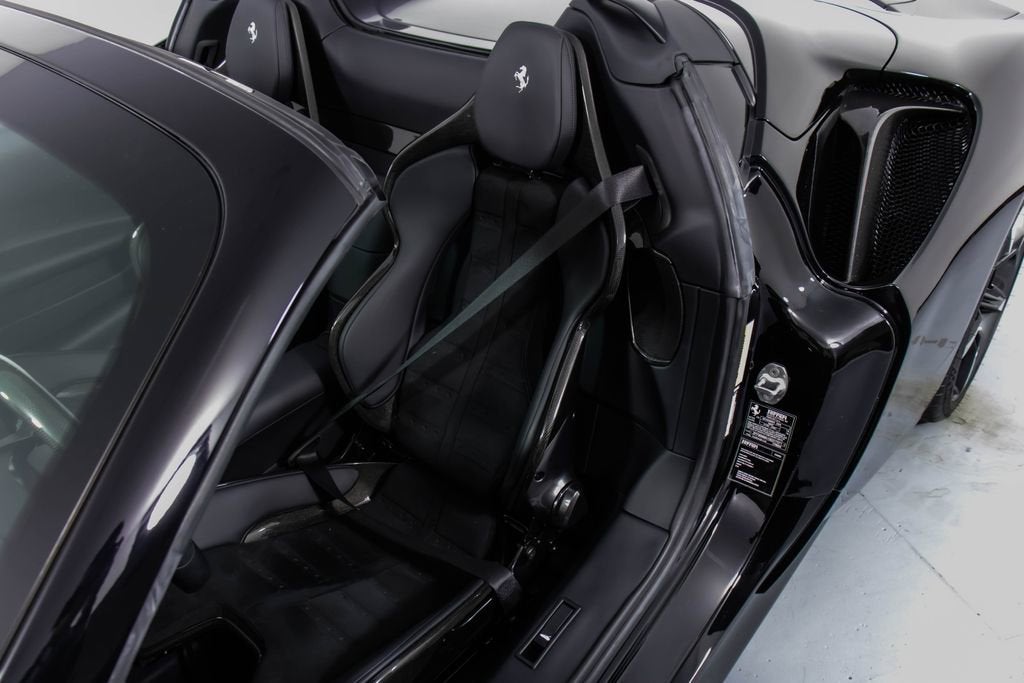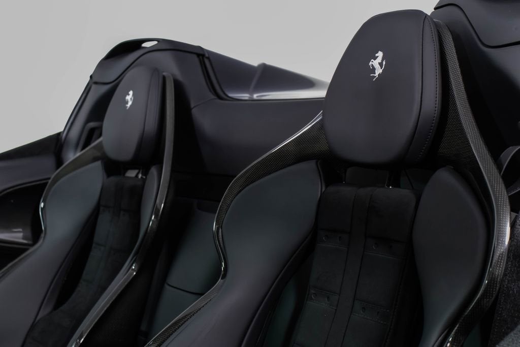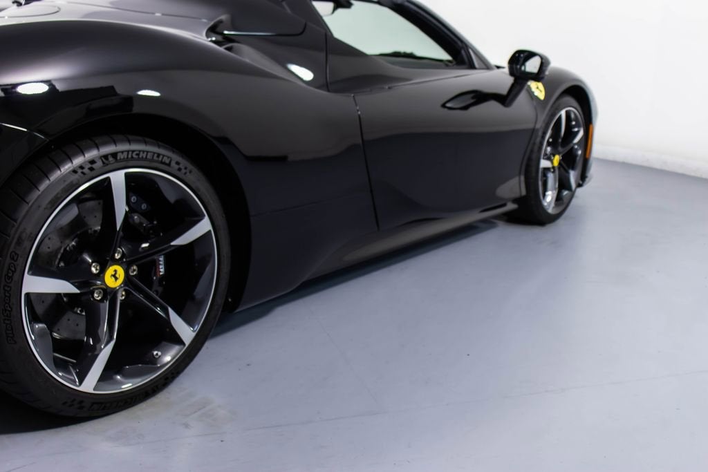 217571 Exterior: Nero Interior: Nero Mats: Nero 2025 Ferrari SF90 Spider Options: Apple CarPlay AFS System Central Part of Seats in INTC Alcantara Two-Tone Bodywork in Nero Back Radar Glossy Black Brake Calipers Carbon Fiber Side Air Splitter Engine Covers in Carbon Fiber Rear Diffuser in Carbon Fiber Carbon Fiber Under Door Cover Carbon Fiber Driver Zone + LEDS Carbon Fiber Door Panels Exterior Sill Kickplate in Carbon Upper Part of Center Console in Carbon Fiber Style1 Leather/Alcantara Mats Dashboard Inserts in Carbon Fiber Front Lift Cavallino Stitched on Headrest EMPH in Special Thread Grigio Corvara Titanium Exhaust Pipes Advanced Front Driving Camera Carbon Fiber Front Spoiler Extra Set of Additional Mats Additional Colored Mats with Logo Home Link MyFerrari Connect Readiness HW Carb. Fib. Steering Wheel + LEDS 'Scuderia Ferrari' Shields Electrochromic Rear-View Mirror Front and Rear Parking Sensors Daytona Racing Seats Racing Seat Lifter Diamond-Polished Forged Wheels Leather Headliner in Nero Premium Hi-Fi System Custom Specifications STC2 in Special Thread Grigio Corvara Colored Special Stitching O.R. Surround View Titanium Wheel Bolts MyFerrari Connect No Activated This 2025 Ferrari SF90 Spider is a stealthy and aggressively styled hybrid supercar, finished in an all-Nero specification that exudes pure sophistication and performance intent. The exteriors dark, menacing presence is enhanced by gloss black brake calipers, diamond-polished forged wheels, and an array of carbon fiber components including the side air splitters, front spoiler, rear diffuser, engine covers, door panels, and driver zone with LED steering wheel. Inside, the Nero cabin is elevated with Daytona racing seats featuring Alcantara inserts, Grigio Corvara special stitching, and a finely crafted leather headliner, creating a focused yet luxurious environment. Equipped with advanced technology such as Apple CarPlay, AFS system, front lift, surround view, advanced front driving camera, and front and rear parking sensors, it seamlessly blends everyday usability with extreme performance. Titanium exhaust pipes and titanium wheel bolts further emphasize its lightweight engineering, while the premium Hi-Fi system and MyFerrari Connect readiness ensure modern convenience. This SF90 Spider is a perfect fusion of cutting-edge hybrid power, bespoke craftsmanship, and unmistakable Ferrari design.