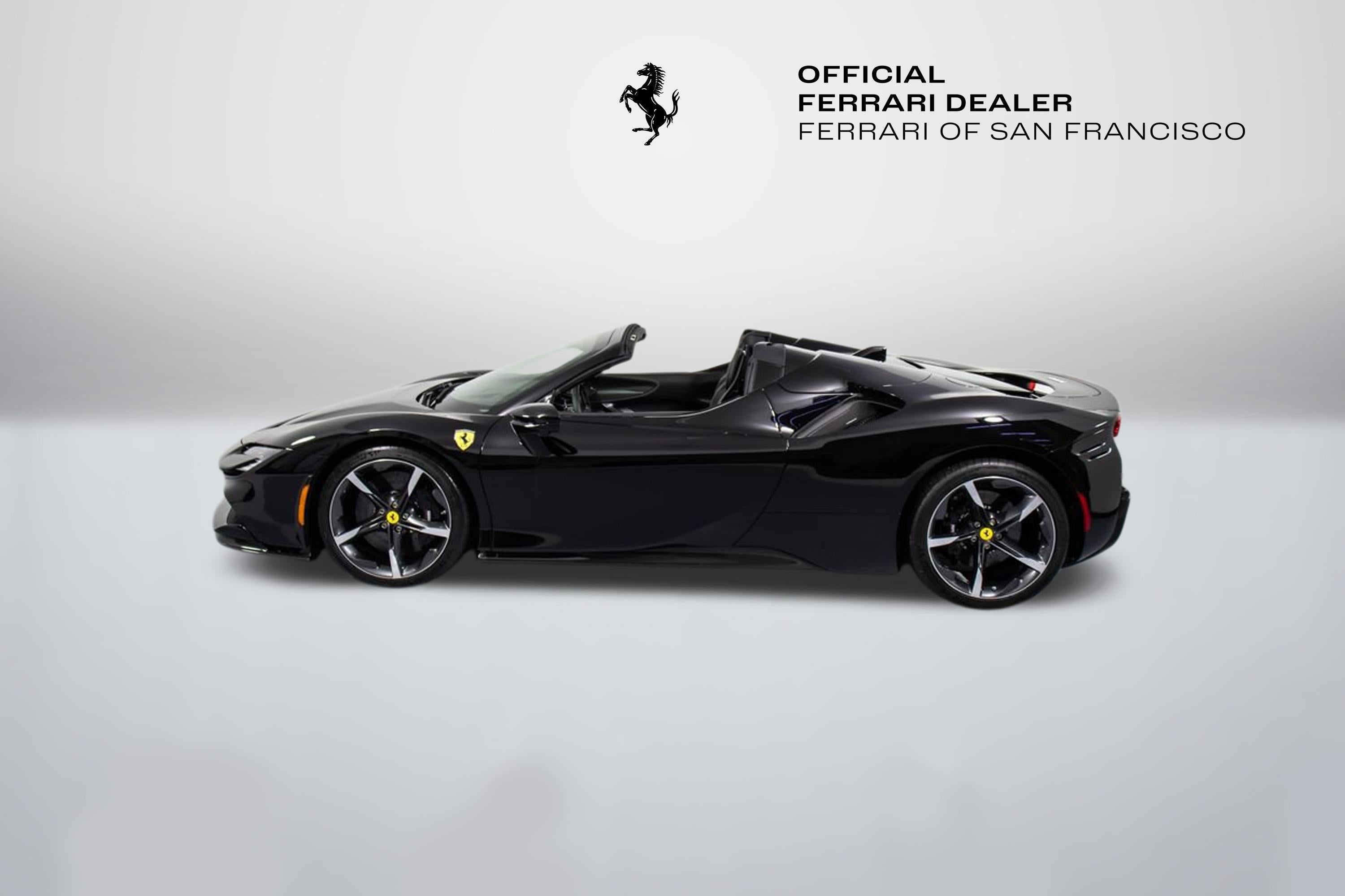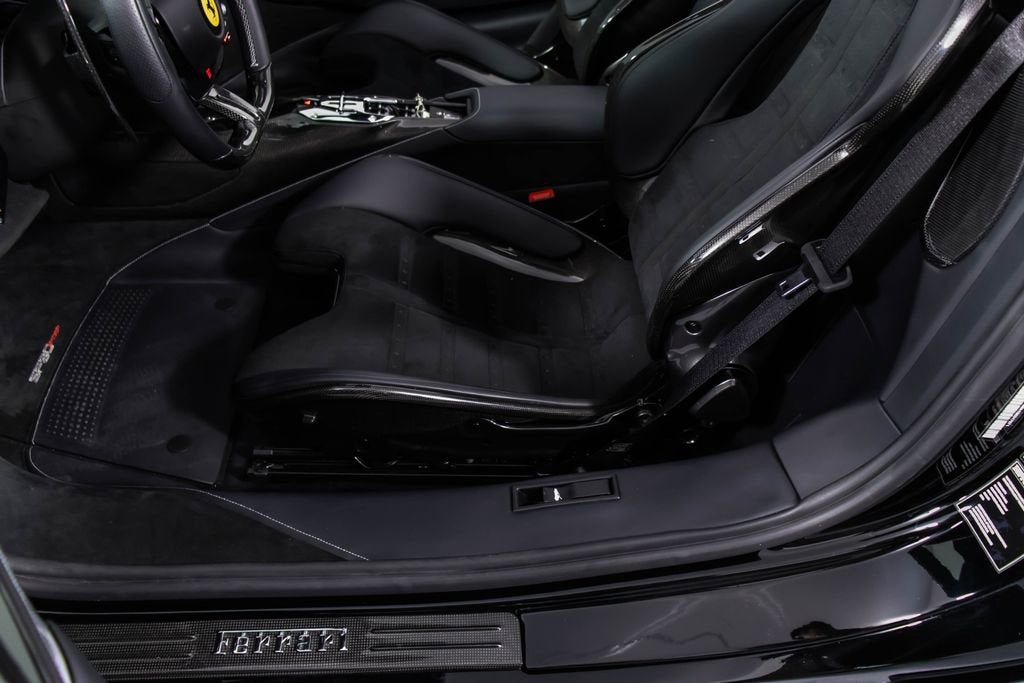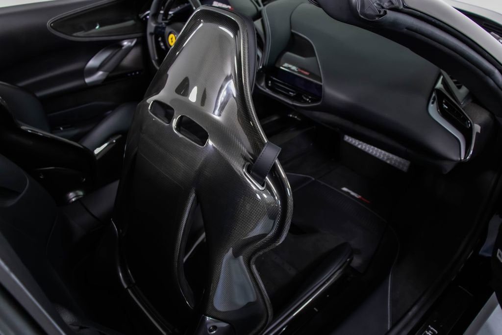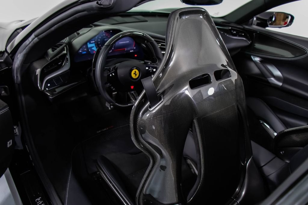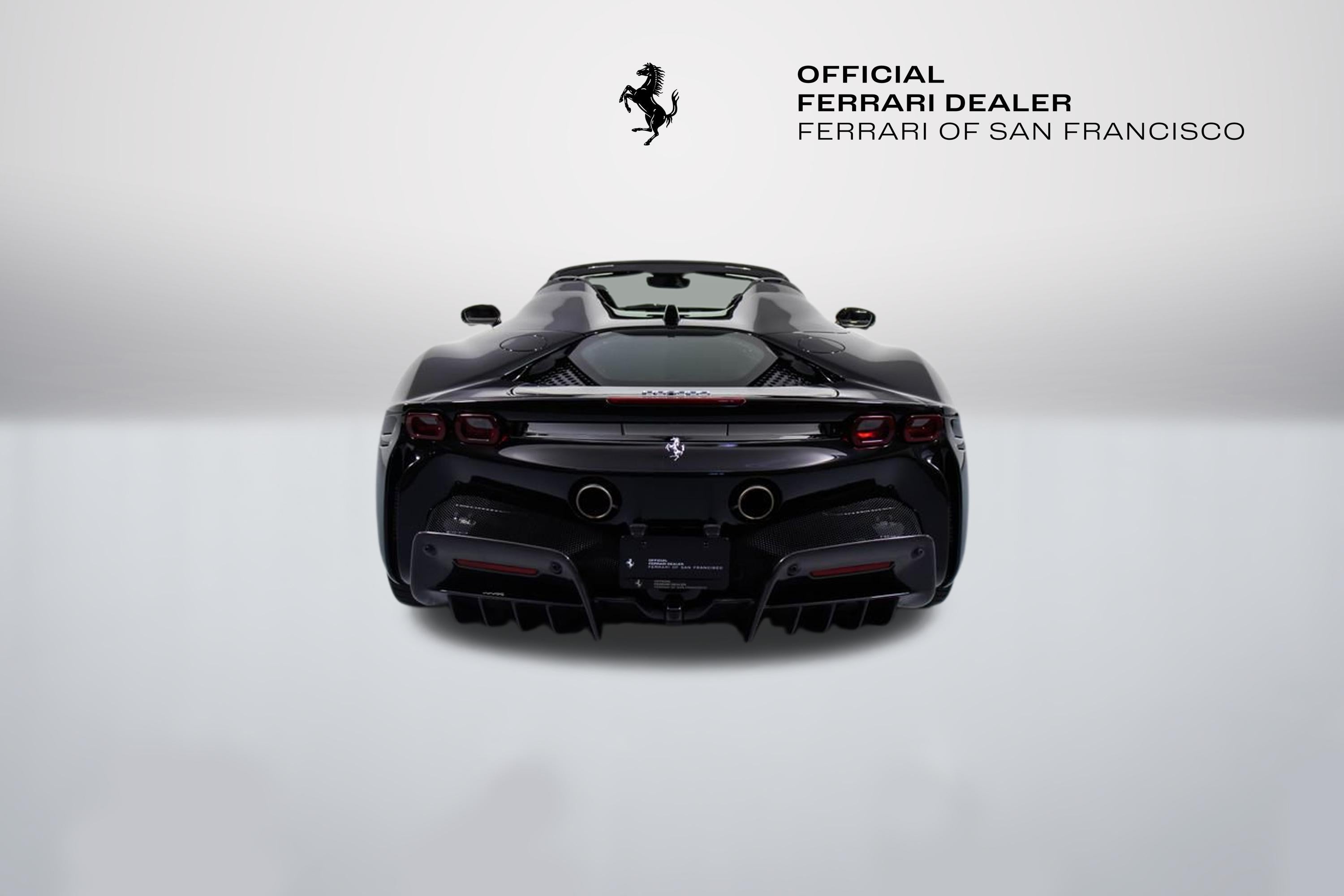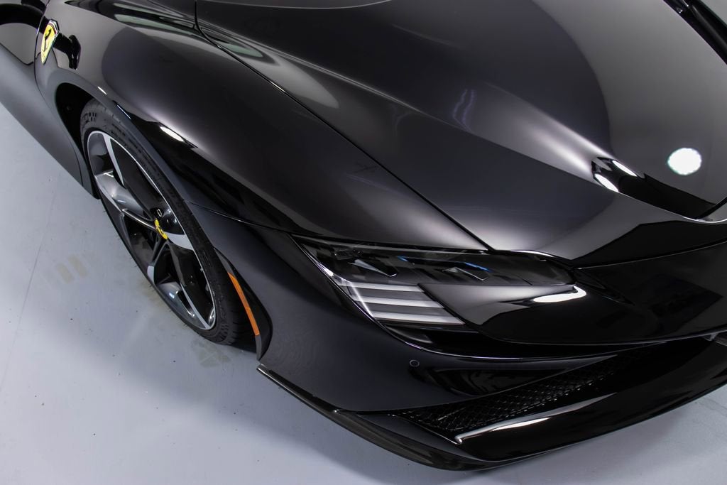 217571 Exterior: Nero Interior: Nero Mats: Nero 2025 Ferrari SF90 Spider Options: Apple CarPlay AFS System Central Part of Seats in INTC Alcantara Two-Tone Bodywork in Nero Back Radar Glossy Black Brake Calipers Carbon Fiber Side Air Splitter Engine Covers in Carbon Fiber Rear Diffuser in Carbon Fiber Carbon Fiber Under Door Cover Carbon Fiber Driver Zone + LEDS Carbon Fiber Door Panels Exterior Sill Kickplate in Carbon Upper Part of Center Console in Carbon Fiber Style1 Leather/Alcantara Mats Dashboard Inserts in Carbon Fiber Front Lift Cavallino Stitched on Headrest EMPH in Special Thread Grigio Corvara Titanium Exhaust Pipes Advanced Front Driving Camera Carbon Fiber Front Spoiler Extra Set of Additional Mats Additional Colored Mats with Logo Home Link MyFerrari Connect Readiness HW Carb. Fib. Steering Wheel + LEDS 'Scuderia Ferrari' Shields Electrochromic Rear-View Mirror Front and Rear Parking Sensors Daytona Racing Seats Racing Seat Lifter Diamond-Polished Forged Wheels Leather Headliner in Nero Premium Hi-Fi System Custom Specifications STC2 in Special Thread Grigio Corvara Colored Special Stitching O.R. Surround View Titanium Wheel Bolts MyFerrari Connect No Activated This 2025 Ferrari SF90 Spider is a stealthy and aggressively styled hybrid supercar, finished in an all-Nero specification that exudes pure sophistication and performance intent. The exteriors dark, menacing presence is enhanced by gloss black brake calipers, diamond-polished forged wheels, and an array of carbon fiber components including the side air splitters, front spoiler, rear diffuser, engine covers, door panels, and driver zone with LED steering wheel. Inside, the Nero cabin is elevated with Daytona racing seats featuring Alcantara inserts, Grigio Corvara special stitching, and a finely crafted leather headliner, creating a focused yet luxurious environment. Equipped with advanced technology such as Apple CarPlay, AFS system, front lift, surround view, advanced front driving camera, and front and rear parking sensors, it seamlessly blends everyday usability with extreme performance. Titanium exhaust pipes and titanium wheel bolts further emphasize its lightweight engineering, while the premium Hi-Fi system and MyFerrari Connect readiness ensure modern convenience. This SF90 Spider is a perfect fusion of cutting-edge hybrid power, bespoke craftsmanship, and unmistakable Ferrari design.