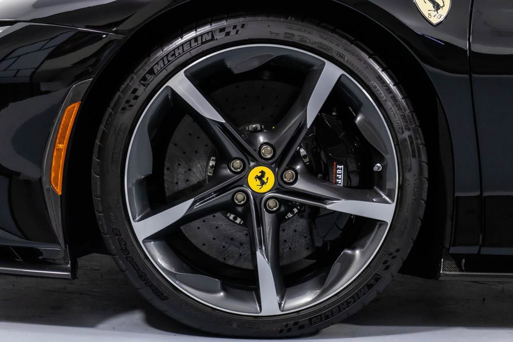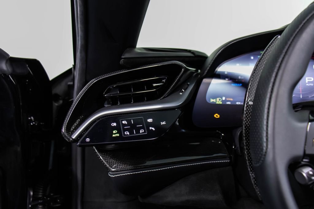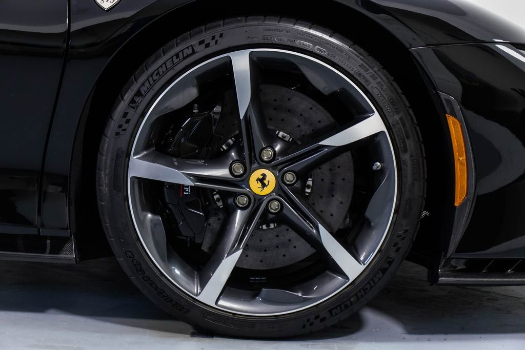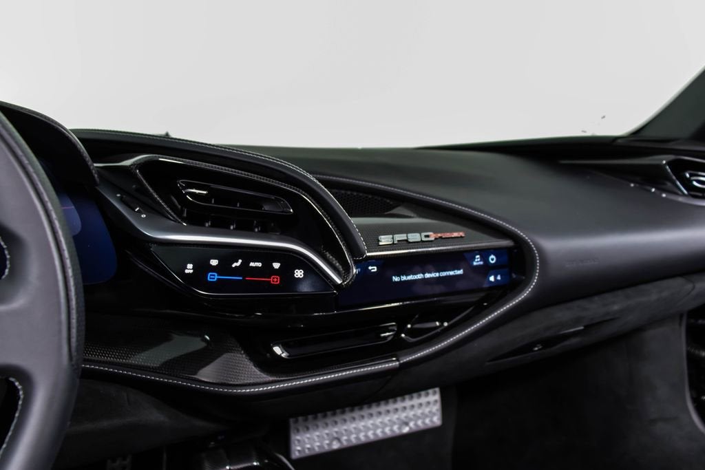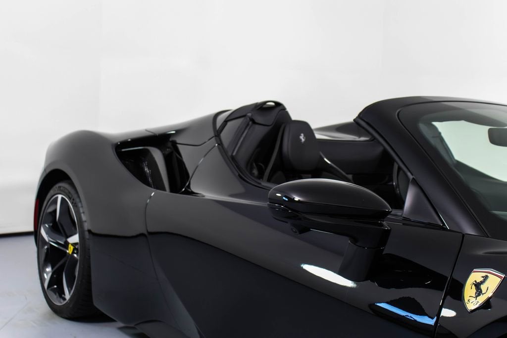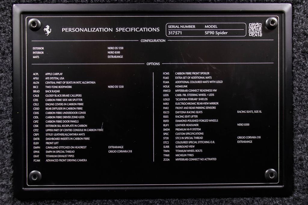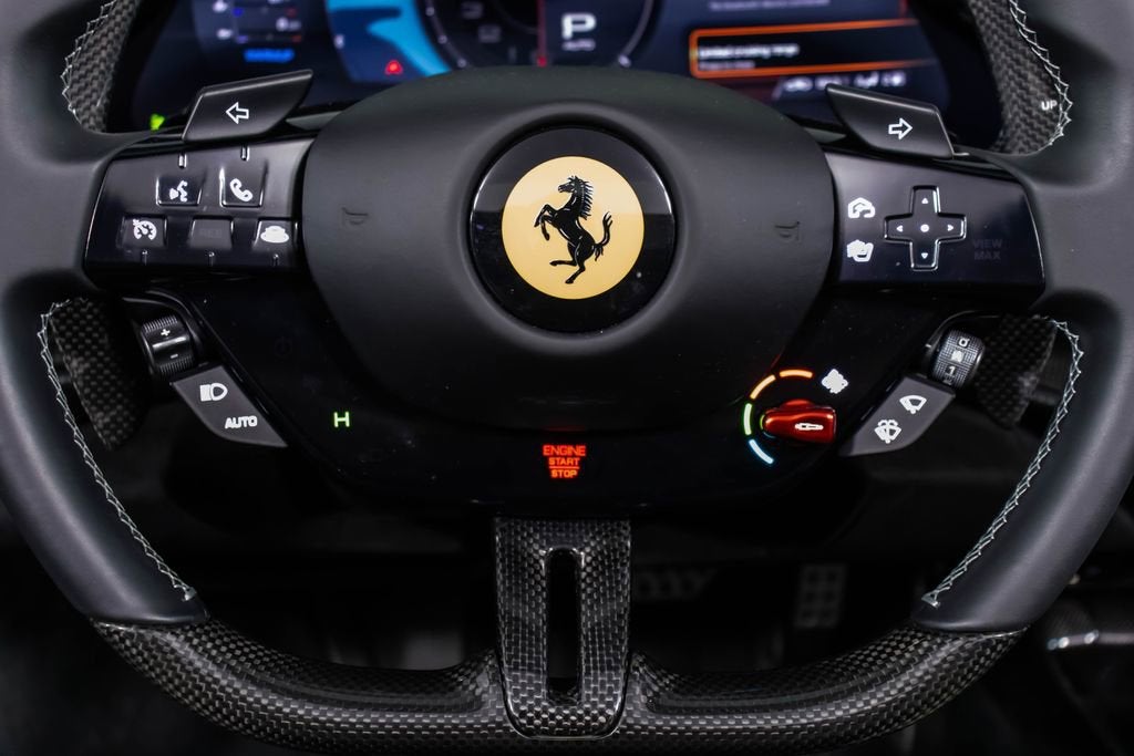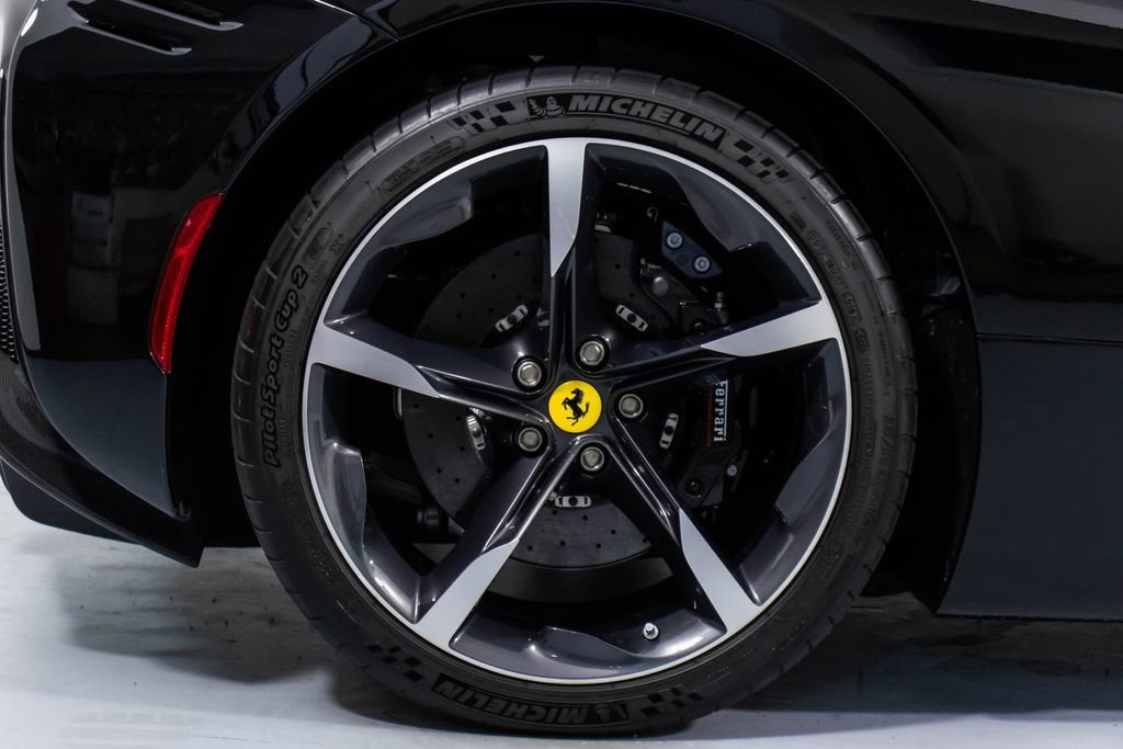217571 Exterior: Nero Interior: Nero Mats: Nero 2025 Ferrari SF90 Spider Options: Apple CarPlay AFS System Central Part of Seats in INTC Alcantara Two-Tone Bodywork in Nero Back Radar Glossy Black Brake Calipers Carbon Fiber Side Air Splitter Engine Covers in Carbon Fiber Rear Diffuser in Carbon Fiber Carbon Fiber Under Door Cover Carbon Fiber Driver Zone + LEDS Carbon Fiber Door Panels Exterior Sill Kickplate in Carbon Upper Part of Center Console in Carbon Fiber Style1 Leather/Alcantara Mats Dashboard Inserts in Carbon Fiber Front Lift Cavallino Stitched on Headrest EMPH in Special Thread Grigio Corvara Titanium Exhaust Pipes Advanced Front Driving Camera Carbon Fiber Front Spoiler Extra Set of Additional Mats Additional Colored Mats with Logo Home Link MyFerrari Connect Readiness HW Carb. Fib. Steering Wheel + LEDS 'Scuderia Ferrari' Shields Electrochromic Rear-View Mirror Front and Rear Parking Sensors Daytona Racing Seats Racing Seat Lifter Diamond-Polished Forged Wheels Leather Headliner in Nero Premium Hi-Fi System Custom Specifications STC2 in Special Thread Grigio Corvara Colored Special Stitching O.R. Surround View Titanium Wheel Bolts MyFerrari Connect No Activated This 2025 Ferrari SF90 Spider is a stealthy and aggressively styled hybrid supercar, finished in an all-Nero specification that exudes pure sophistication and performance intent. The exteriors dark, menacing presence is enhanced by gloss black brake calipers, diamond-polished forged wheels, and an array of carbon fiber components including the side air splitters, front spoiler, rear diffuser, engine covers, door panels, and driver zone with LED steering wheel. Inside, the Nero cabin is elevated with Daytona racing seats featuring Alcantara inserts, Grigio Corvara special stitching, and a finely crafted leather headliner, creating a focused yet luxurious environment. Equipped with advanced technology such as Apple CarPlay, AFS system, front lift, surround view, advanced front driving camera, and front and rear parking sensors, it seamlessly blends everyday usability with extreme performance. Titanium exhaust pipes and titanium wheel bolts further emphasize its lightweight engineering, while the premium Hi-Fi system and MyFerrari Connect readiness ensure modern convenience. This SF90 Spider is a perfect fusion of cutting-edge hybrid power, bespoke craftsmanship, and unmistakable Ferrari design.