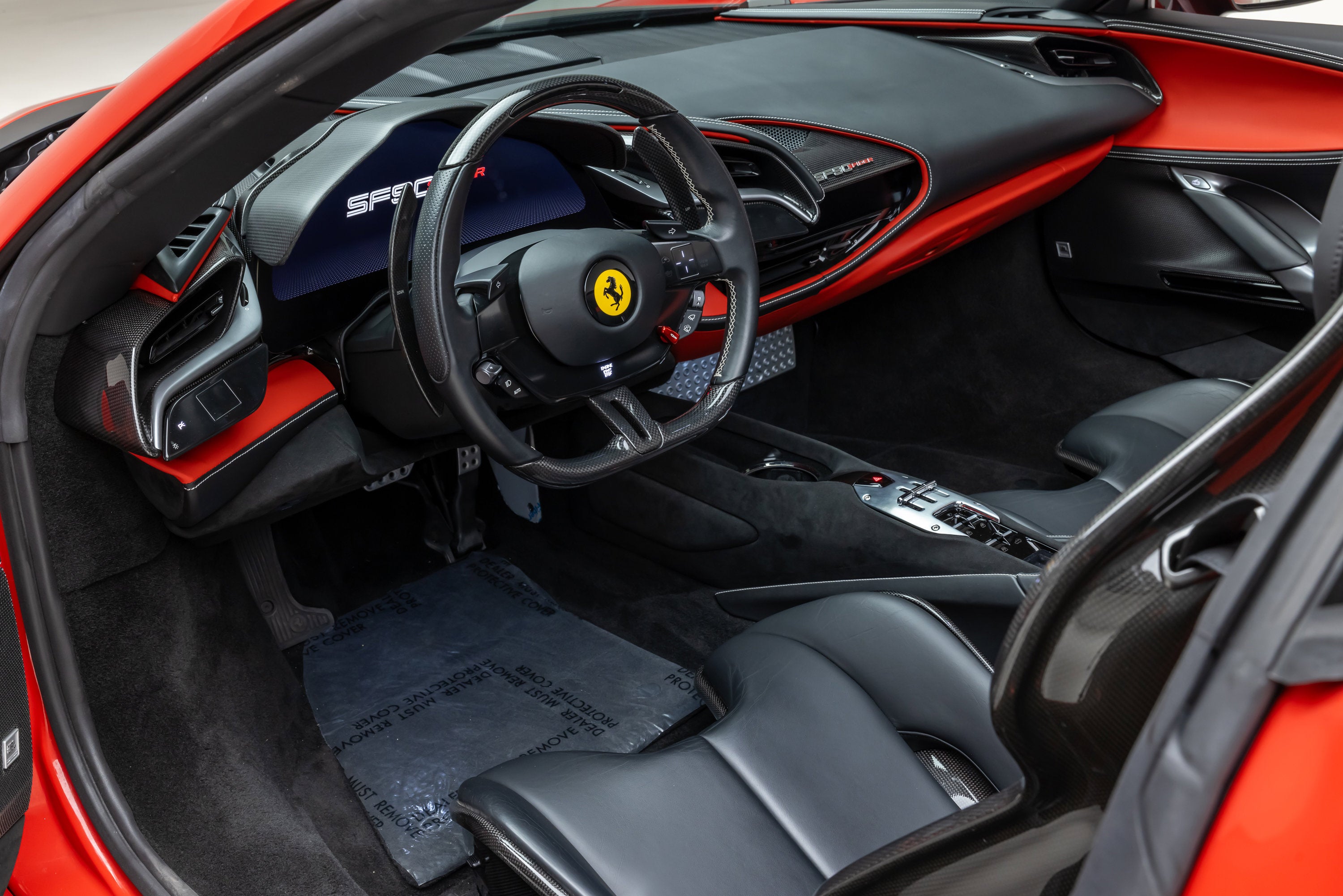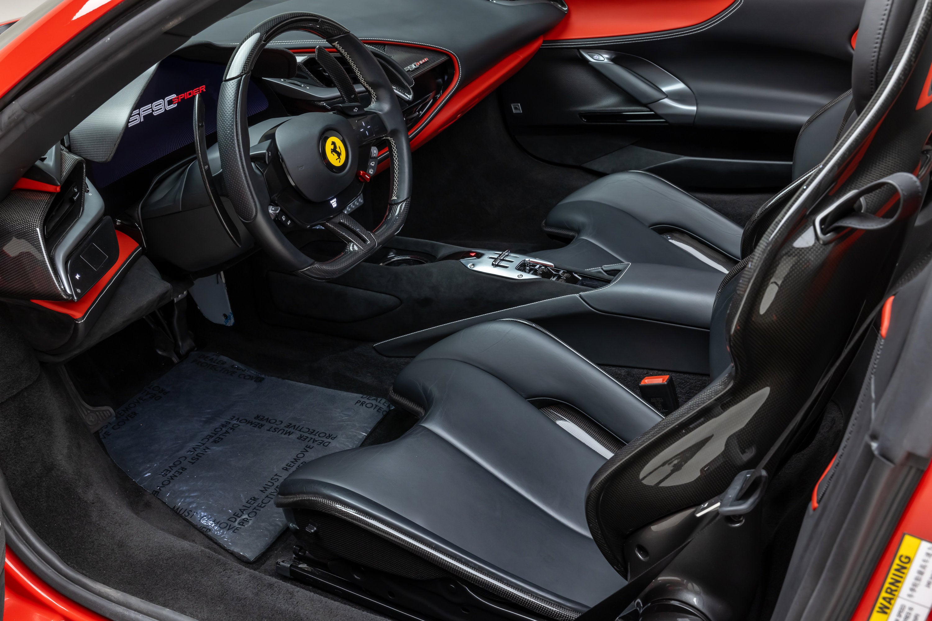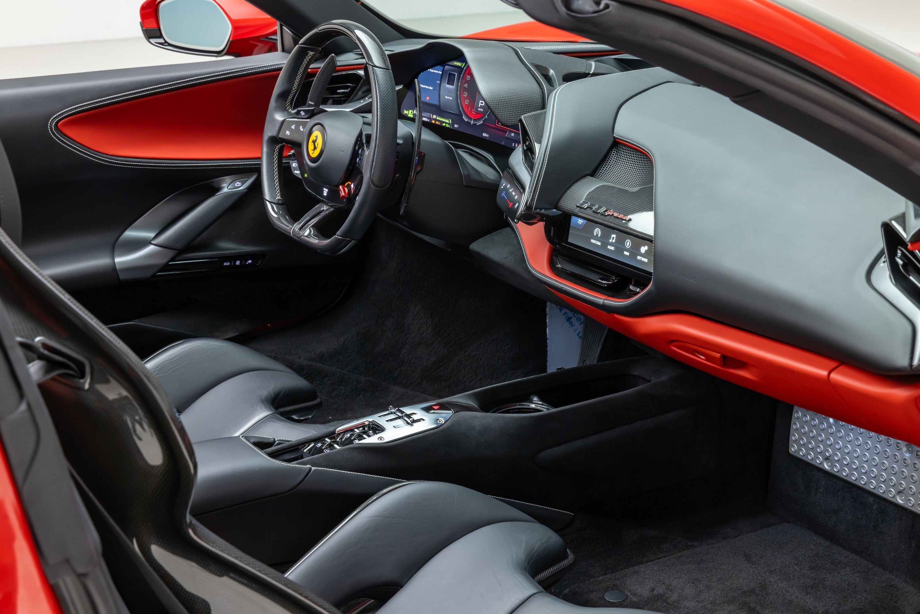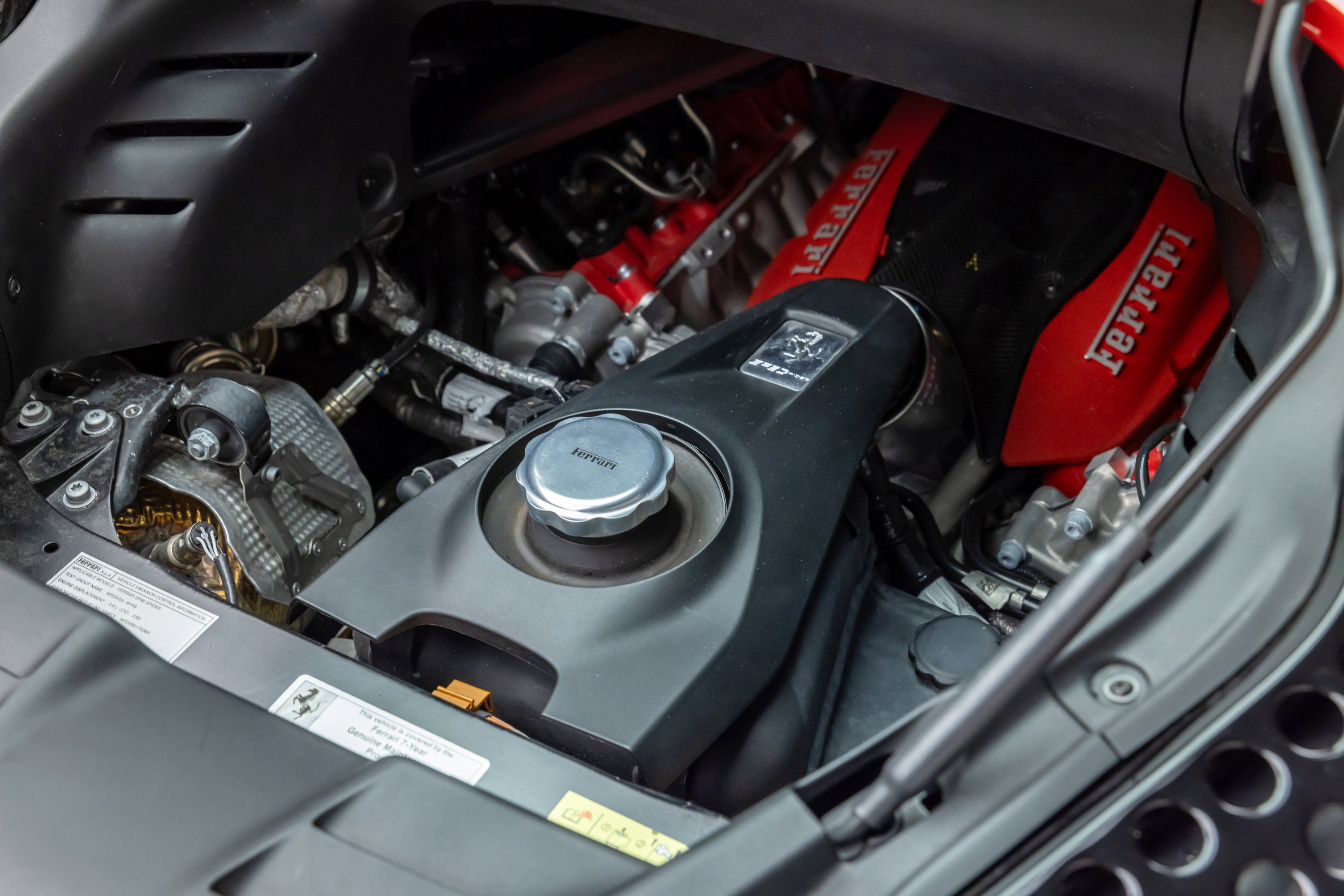 ===== 2022 Ferrari SF90 Spider ===== Rosso Corsa over Nero 2,849 Miles | VIN: ZFF96NMA2N0269857 Finished in Rosso Corsa over Nero, this 2022 Ferrari SF90 Spider presents a highly desirable and performance-focused specification with just 2,849 miles. Combining Ferrari's flagship hybrid technology with open-top driving, this example is equipped with extensive carbon fiber options and key driver-focused features that enhance both performance and visual presence. The cabin is trimmed in Nero leather, complemented by carbon fiber driver zone elements and racing seats, creating a purposeful and driver-centric interior environment. ==== Factory Options & Highlights (from window sticker) ==== * Carbon Fiber Racing Seats * Carbon Fiber Driver Zone with LEDs * Carbon Fiber Dashboard Inserts * Suspension Lifter Additional features include: