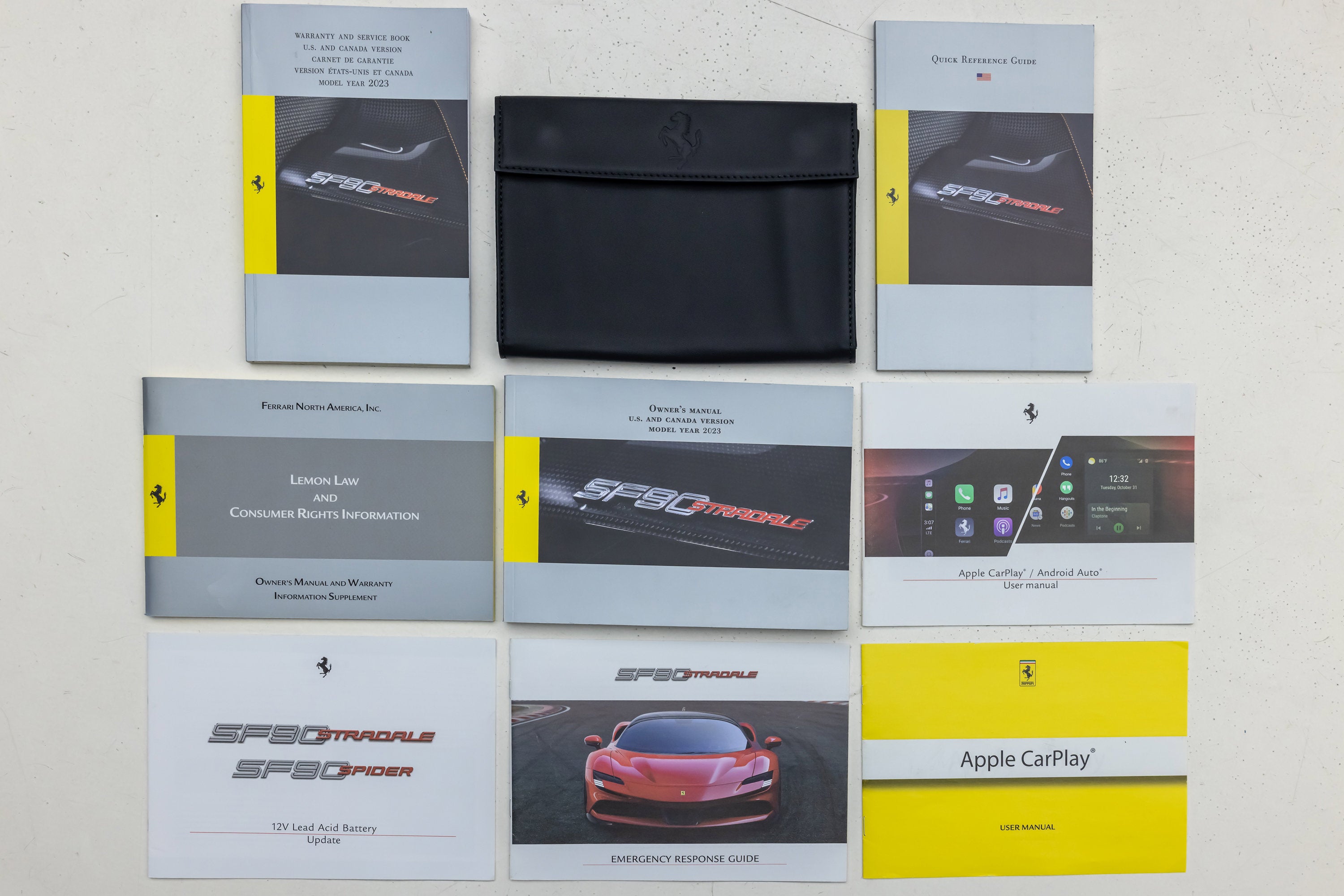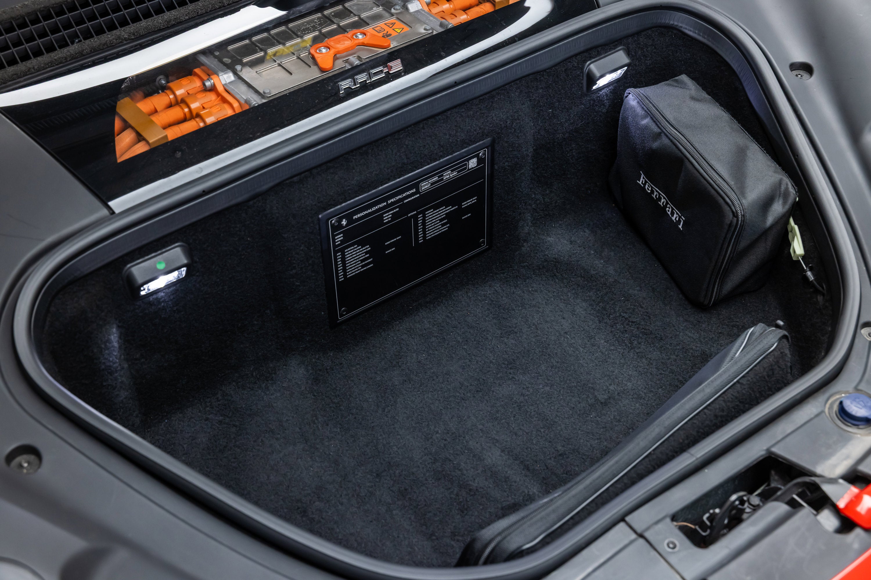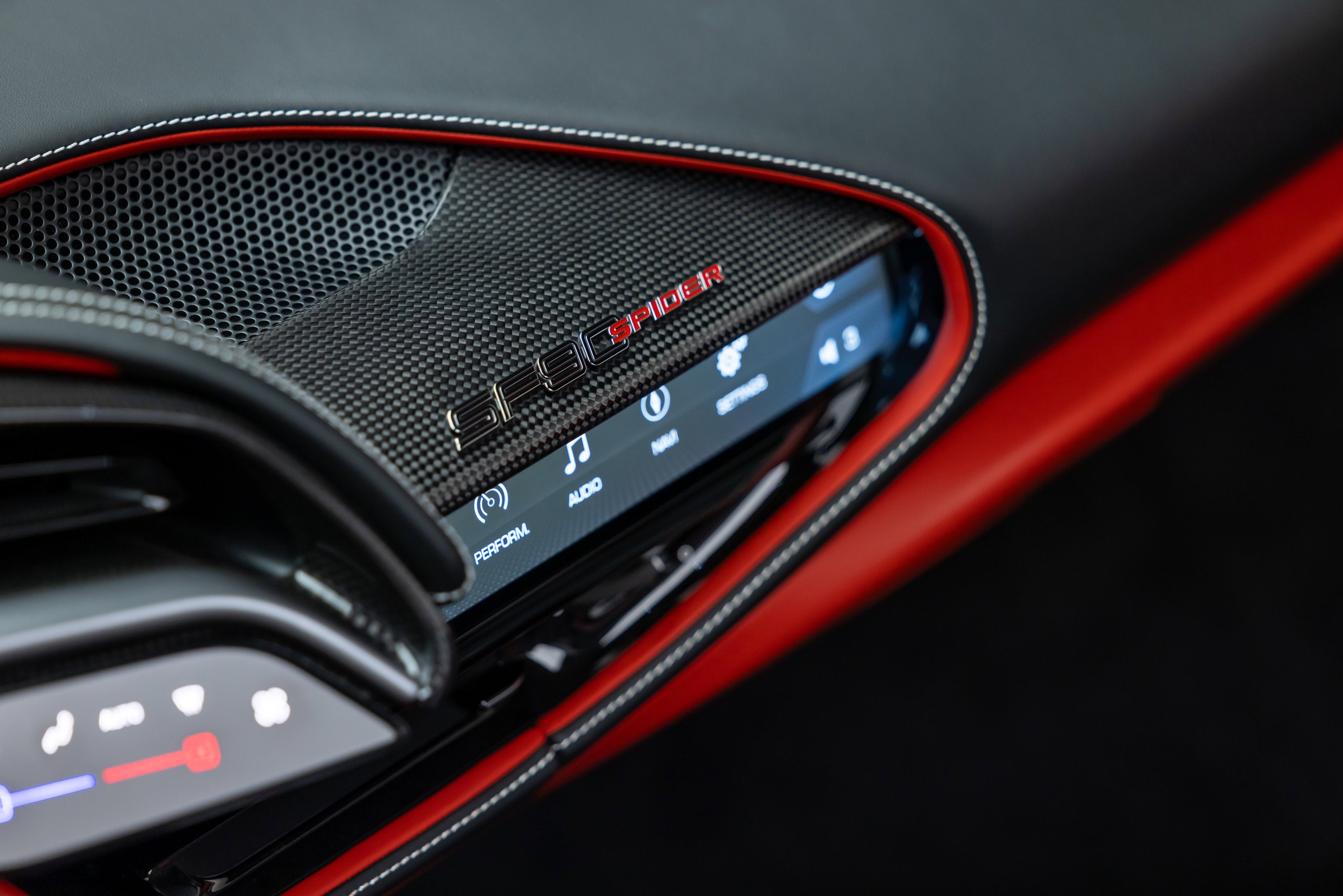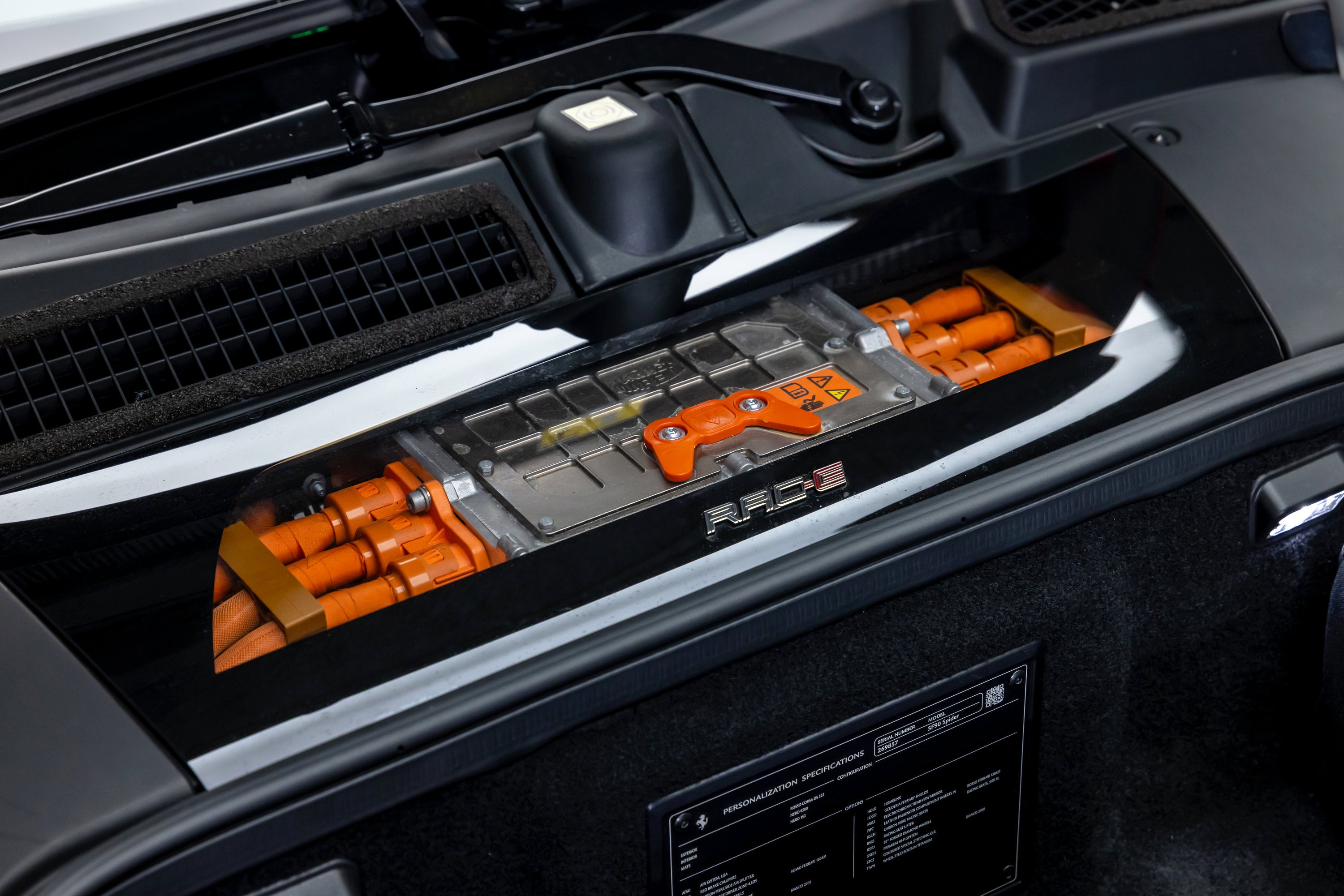 ===== 2022 Ferrari SF90 Spider ===== Rosso Corsa over Nero 2,849 Miles | VIN: ZFF96NMA2N0269857 Finished in Rosso Corsa over Nero, this 2022 Ferrari SF90 Spider presents a highly desirable and performance-focused specification with just 2,849 miles. Combining Ferrari's flagship hybrid technology with open-top driving, this example is equipped with extensive carbon fiber options and key driver-focused features that enhance both performance and visual presence. The cabin is trimmed in Nero leather, complemented by carbon fiber driver zone elements and racing seats, creating a purposeful and driver-centric interior environment. ==== Factory Options & Highlights (from window sticker) ==== * Carbon Fiber Racing Seats * Carbon Fiber Driver Zone with LEDs * Carbon Fiber Dashboard Inserts * Suspension Lifter Additional features include:
