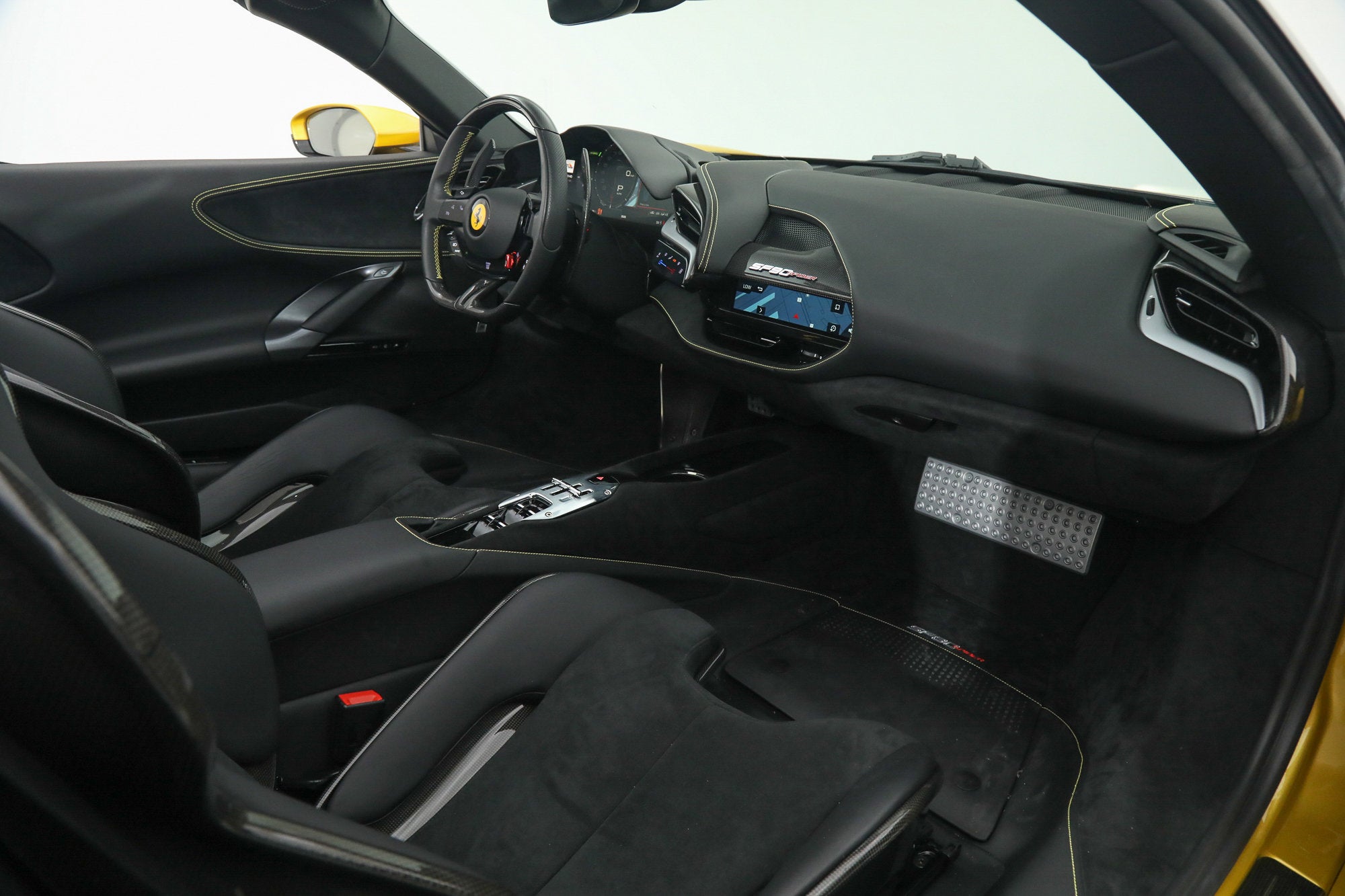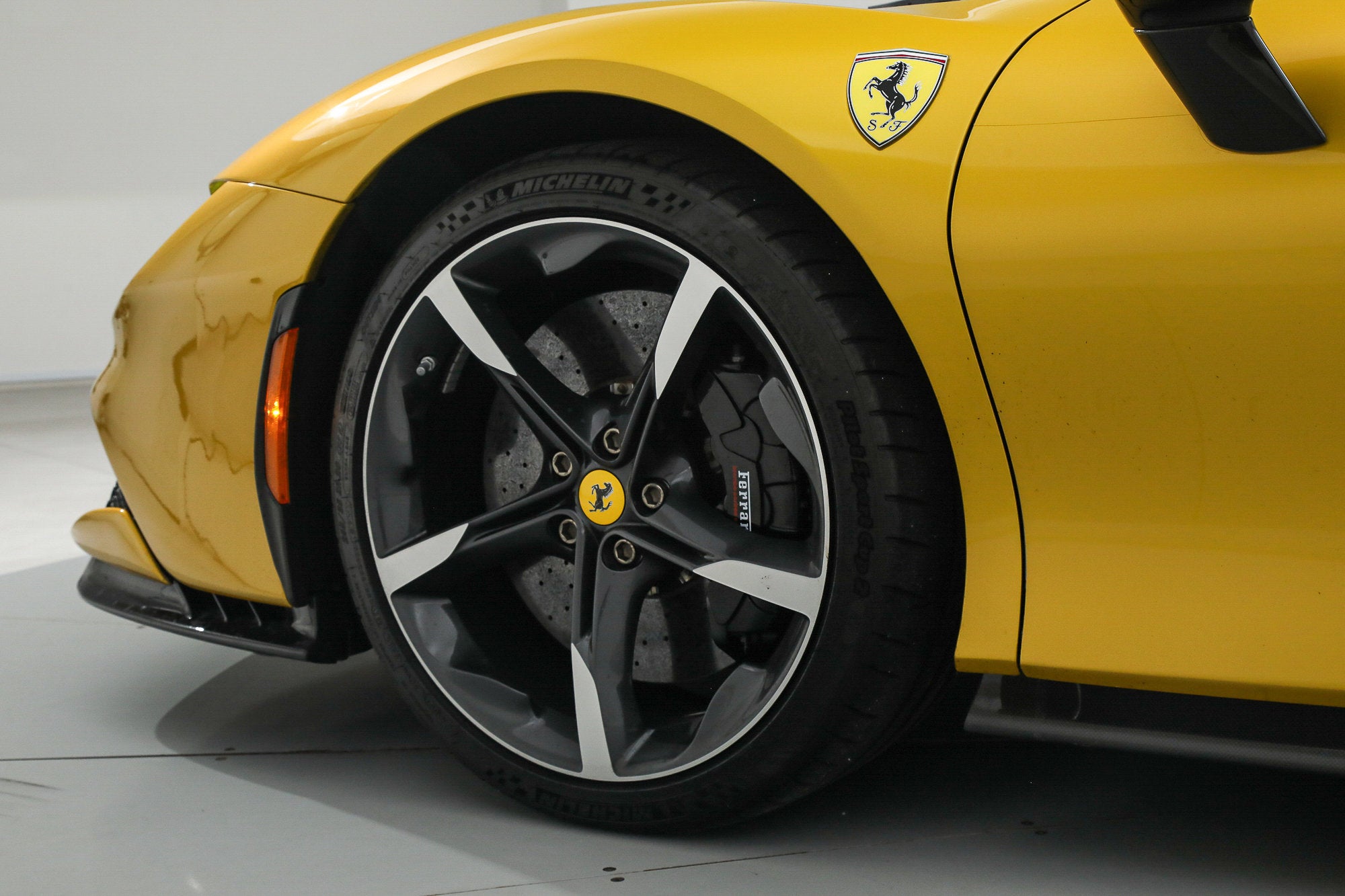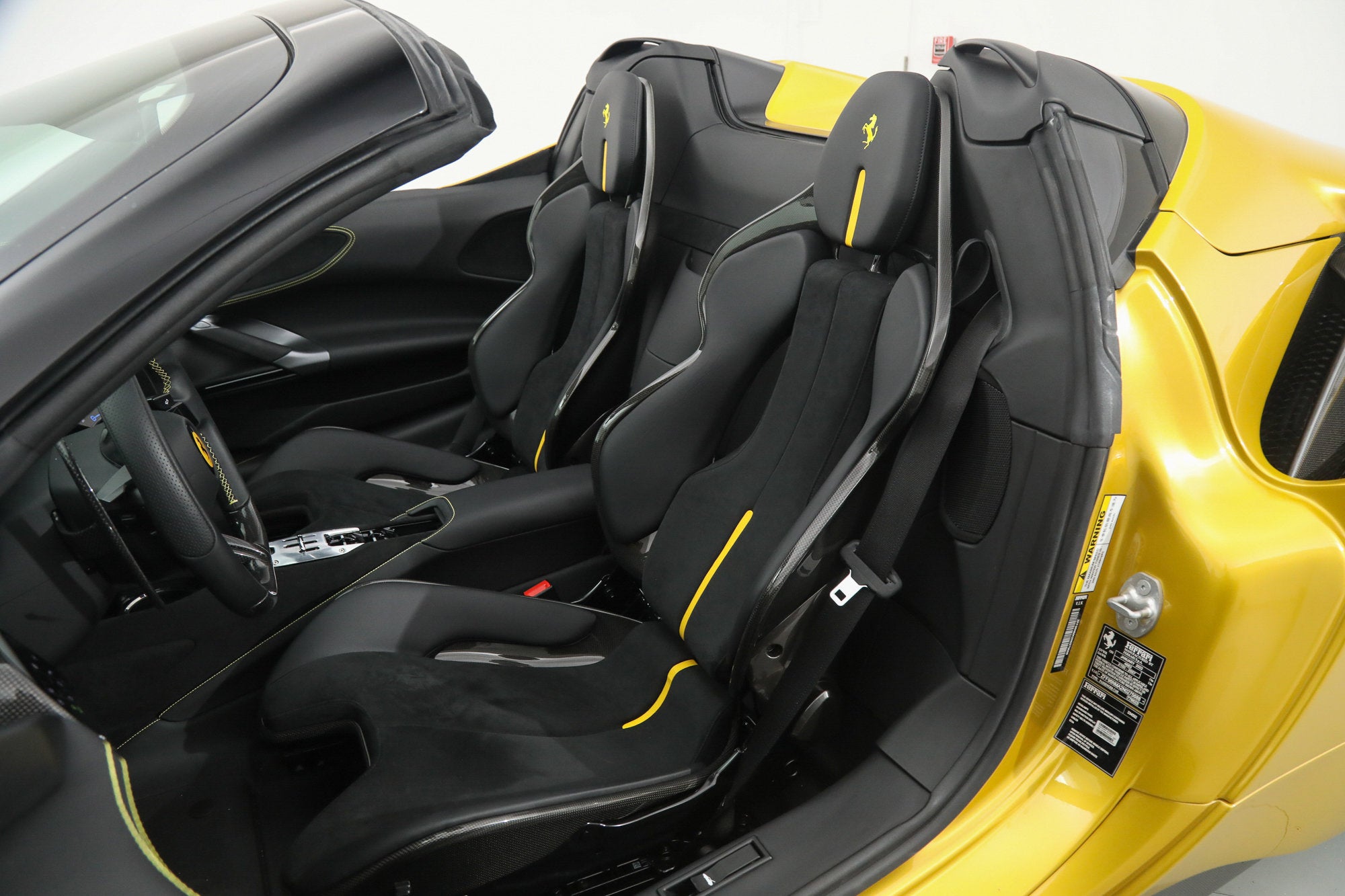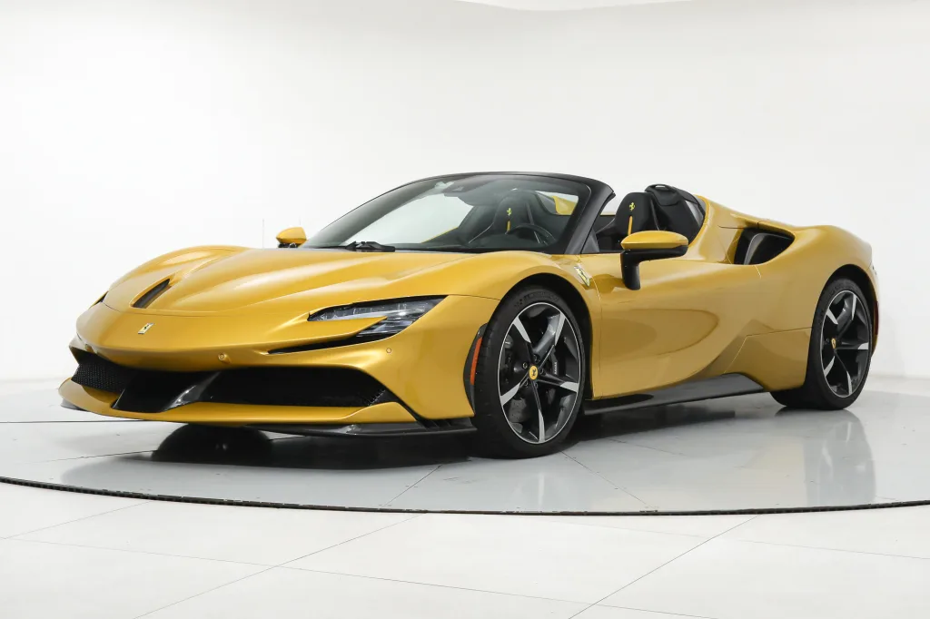 Ferrari SF90 Spider - FERRARI CERTIFIED PRE-OWNED - AVAILABLE EXTENDED FERRARI WARRANTY - - RARE Giallo Montecarlo over Nero - ONE OWNER - Very Low Miles - Pristine Condition - Many Fine Options - Sold as New by Our Dealership - Expertly Maintained by Our Factory Trained Technicians - Available Extended Ferrari Warranty - Complimentary Ferrari Genuine Maintenance Service to 4/27/29 - Factory Options: - Special Three-Layer Paint - Two-Tone Body Painting - Carbon Fiber Front Bumper Insert - Carbon Fiber Underdoor Covers - Carbon Fiber Side Air Splitters - Carbon Fiber Driver Zone with LED Steering Wheel - Carbon Fiber Dashboard Inserts - Carbon Fiber Sill Kicks - Forged Wheels in Grigio Corsa Diamond - Black Brake Calipers - Titanium Wheel Bolts - Suspension Lifter - Specific Design Racing Seats - Racing Seat Lifter - Alcantara Seat Centers - Cavallino Stitched to Headrests in Giallo - Special Stitching in Giallo - Leather Seat Stripes in Giallo - Front Parking Sensors - Scuderia Ferrari Shields - Black Ceramic Exhaust Pipes - Electrochromic Exterior Mirrors - Advanced Front Driving Camera - Leather and Alcantara Carpets in Nero - Embroidered Mats with Logo - Premium HiFi Sound System - Advanced Frontlight System (AFS) - Tire Pressure Management System This Ferrari has passed a multi-point inspection performed by our factory trained technicians, and has been enrolled in the Ferrari Approved Certified Pre-Owned Program. The Certified program makes available up to two years of additional Ferrari Power Approved Warranty coverage. Please see dealer for more details.