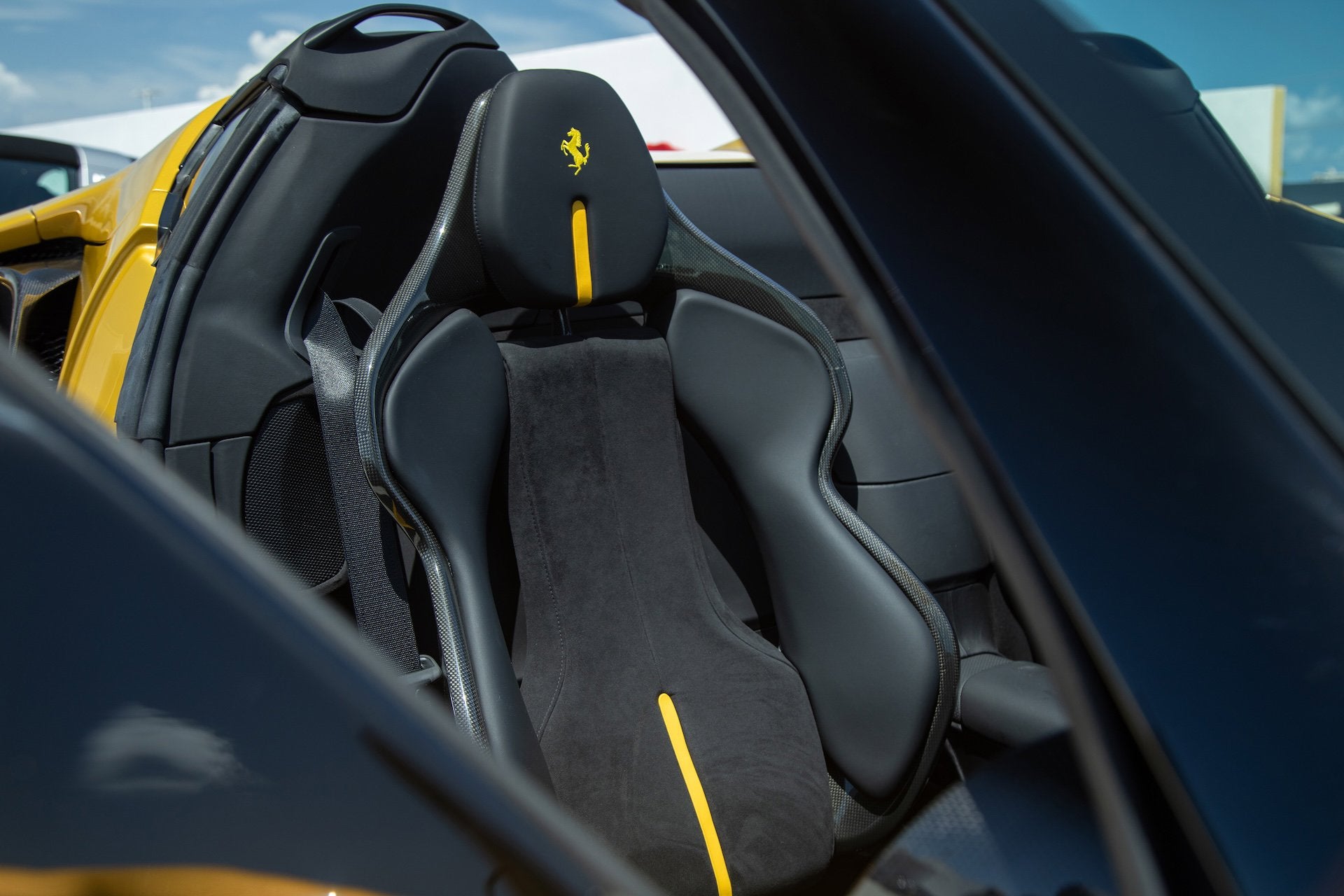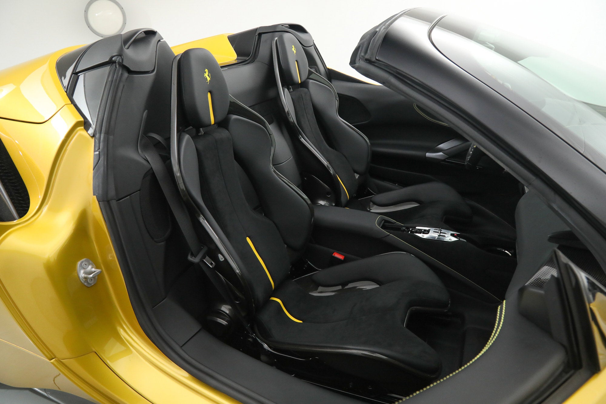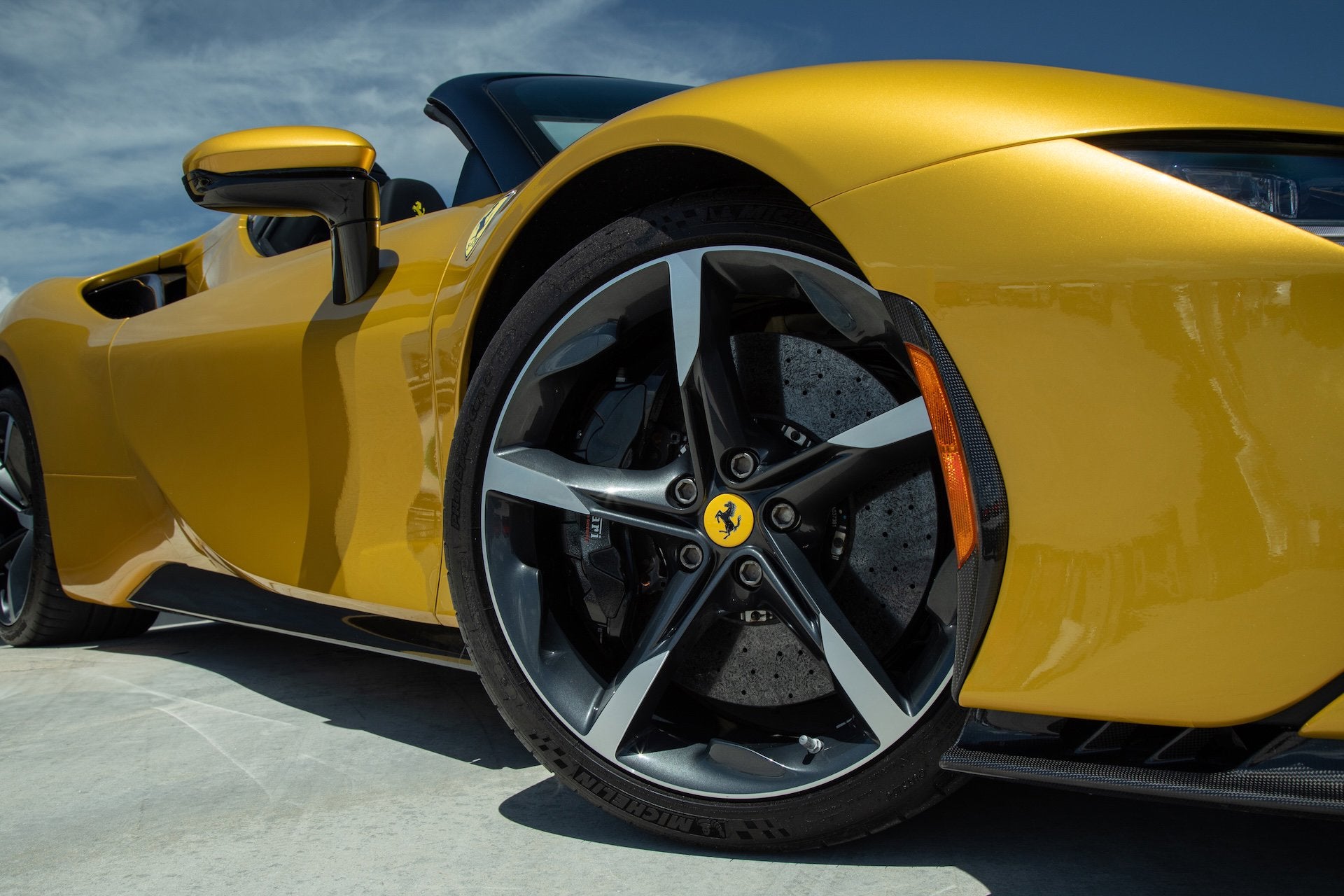 Ferrari SF90 Spider - FERRARI CERTIFIED PRE-OWNED - AVAILABLE EXTENDED FERRARI WARRANTY - - RARE Giallo Montecarlo over Nero - ONE OWNER - Very Low Miles - Pristine Condition - Many Fine Options - Sold as New by Our Dealership - Expertly Maintained by Our Factory Trained Technicians - Available Extended Ferrari Warranty - Complimentary Ferrari Genuine Maintenance Service to 4/27/29 - Factory Options: - Special Three-Layer Paint - Two-Tone Body Painting - Carbon Fiber Front Bumper Insert - Carbon Fiber Underdoor Covers - Carbon Fiber Side Air Splitters - Carbon Fiber Driver Zone with LED Steering Wheel - Carbon Fiber Dashboard Inserts - Carbon Fiber Sill Kicks - Forged Wheels in Grigio Corsa Diamond - Black Brake Calipers - Titanium Wheel Bolts - Suspension Lifter - Specific Design Racing Seats - Racing Seat Lifter - Alcantara Seat Centers - Cavallino Stitched to Headrests in Giallo - Special Stitching in Giallo - Leather Seat Stripes in Giallo - Front Parking Sensors - Scuderia Ferrari Shields - Black Ceramic Exhaust Pipes - Electrochromic Exterior Mirrors - Advanced Front Driving Camera - Leather and Alcantara Carpets in Nero - Embroidered Mats with Logo - Premium HiFi Sound System - Advanced Frontlight System (AFS) - Tire Pressure Management System This Ferrari has passed a multi-point inspection performed by our factory trained technicians, and has been enrolled in the Ferrari Approved Certified Pre-Owned Program. The Certified program makes available up to two years of additional Ferrari Power Approved Warranty coverage. Please see dealer for more details.