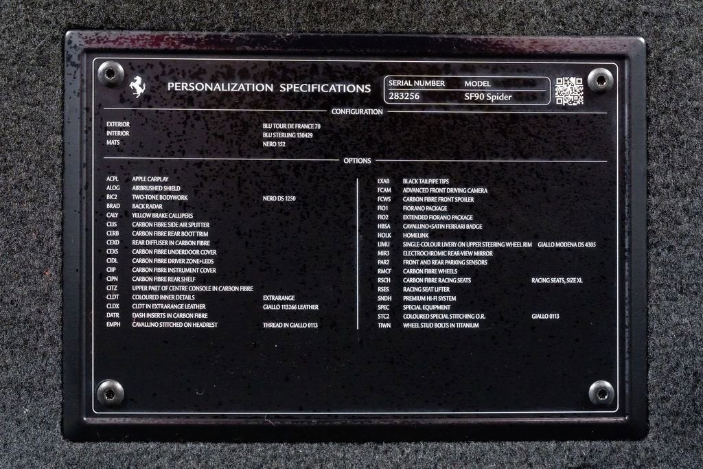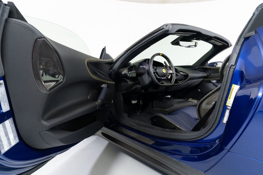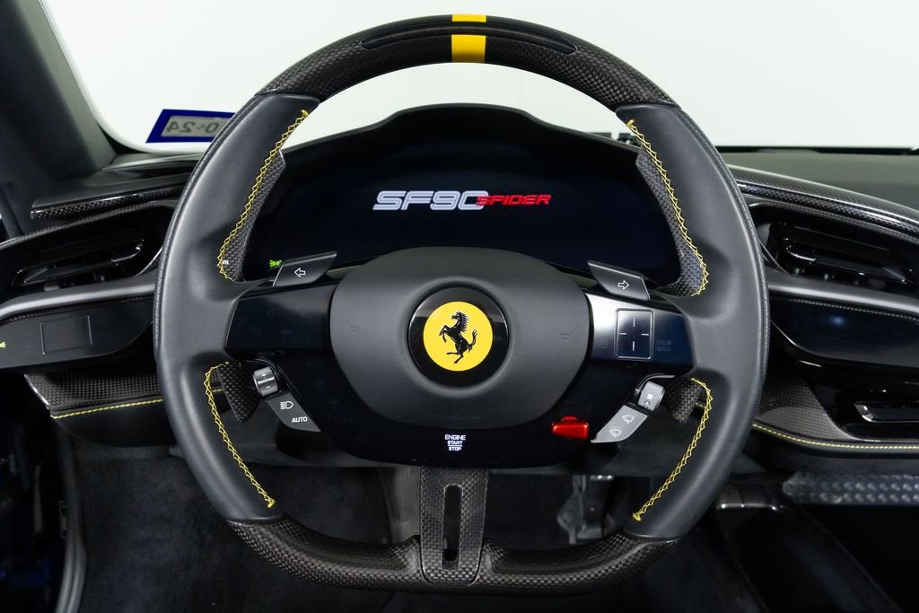 Experience the pure exhilaration of the 2022 Ferrari SF90 Spider Base. This stunning sports car is a masterpiece of Italian engineering, combining breathtaking performance with unparalleled style and sophistication. Boasting a 4.0L V8 engine and an 8-speed manual transmission, the SF90 Spider delivers an adrenaline-fueled driving experience like no other. Its all-wheel-drive system ensures exceptional traction and control, while the adaptive suspension provides a smooth and responsive ride, no matter the road conditions. AIRBRUSHED LOGO BACK RADAR YELLOW BRAKE CALIPERS CARBON FIBRE SIDE AIR SPLITTER CARBON FIBRE REAR BOOT TRIM REAR DIFFUSER IN CARBON FIBRE CARBON FIBRE UNDERDOOR COVER CARBON FIBRE DRIVER ZONE+LEDS CARBON FIBRE INSTRUM. CLUSTER CARBON FIBRE REAR SHELF CARBON FIBRE UPPER TUNNEL TRIM SPECIAL LEATHER CARBON FIBRE DASHBOARD INSERTS OTHER OPTIONS $128,713.00 The SF90 Spider is a true work of art, with its striking Blue TDF paint and sleek, aerodynamic design. The convertible hardtop seamlessly integrates with the body, allowing you to experience the thrill of open-air driving at the push of a button. With its exceptional performance, stunning design, and advanced features, the 2022 Ferrari SF90 Spider Base is the ultimate expression of Italian automotive excellence. This is a rare opportunity to own a true masterpiece of automotive engineering. As one of the top-selling pre-owned Ferrari dealers in the nation, Ferrari Dallas takes tremendous pride in offering only the best late-model, low-mileage Ferraris available anywhere in North America. For specific details on the vehicle listed above, please contact any of our qualified sales consultants by calling 888-701-5761. We look forward to assisting you.