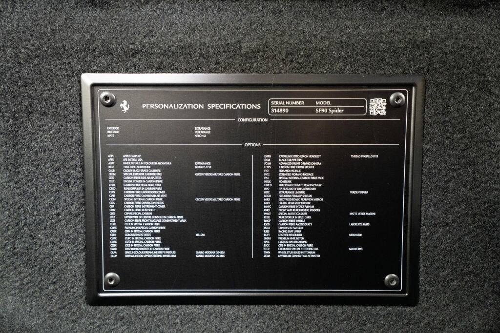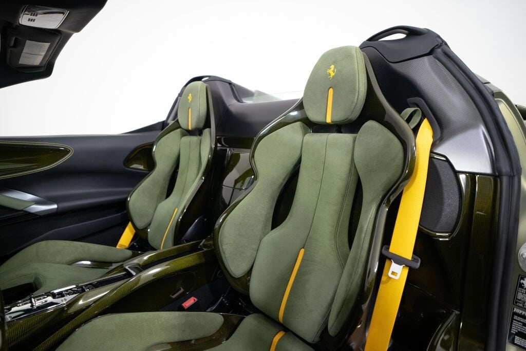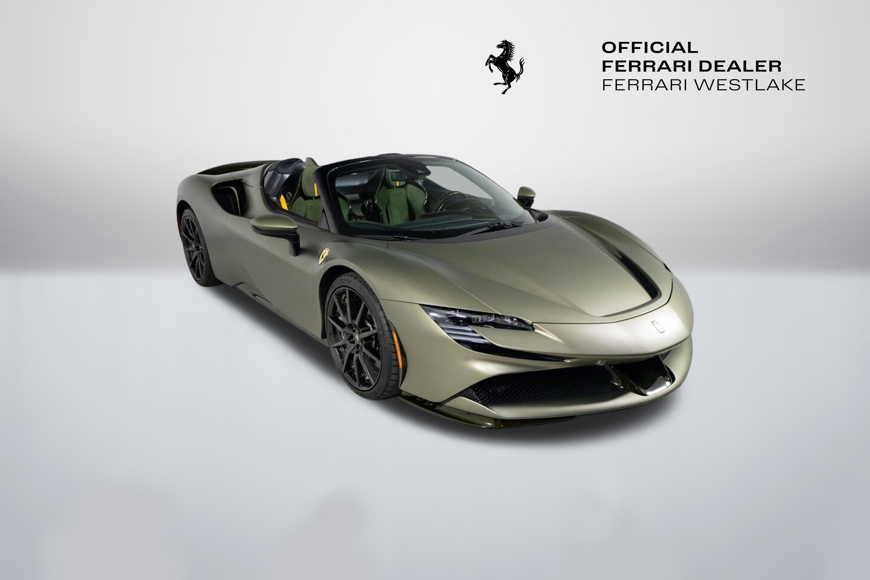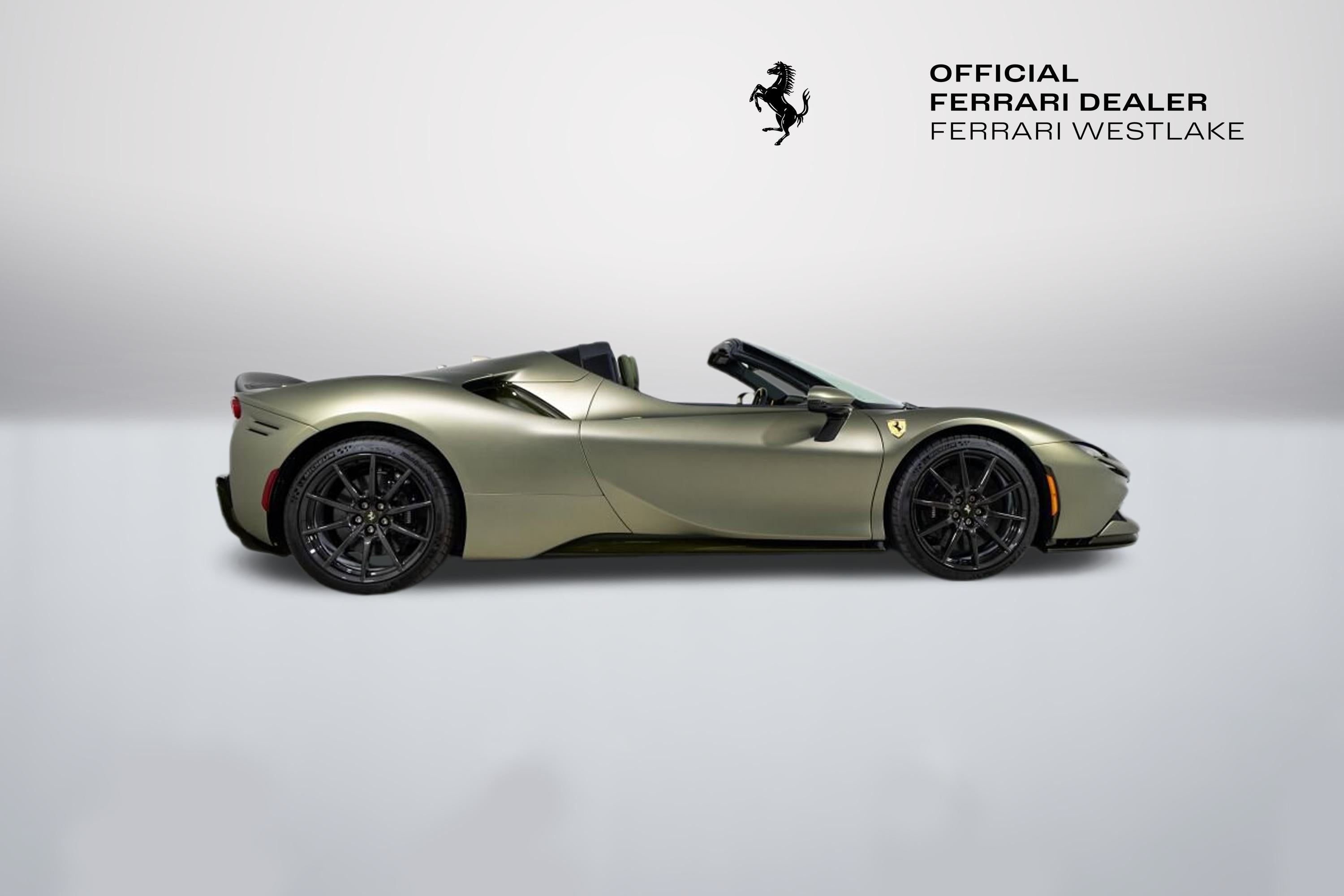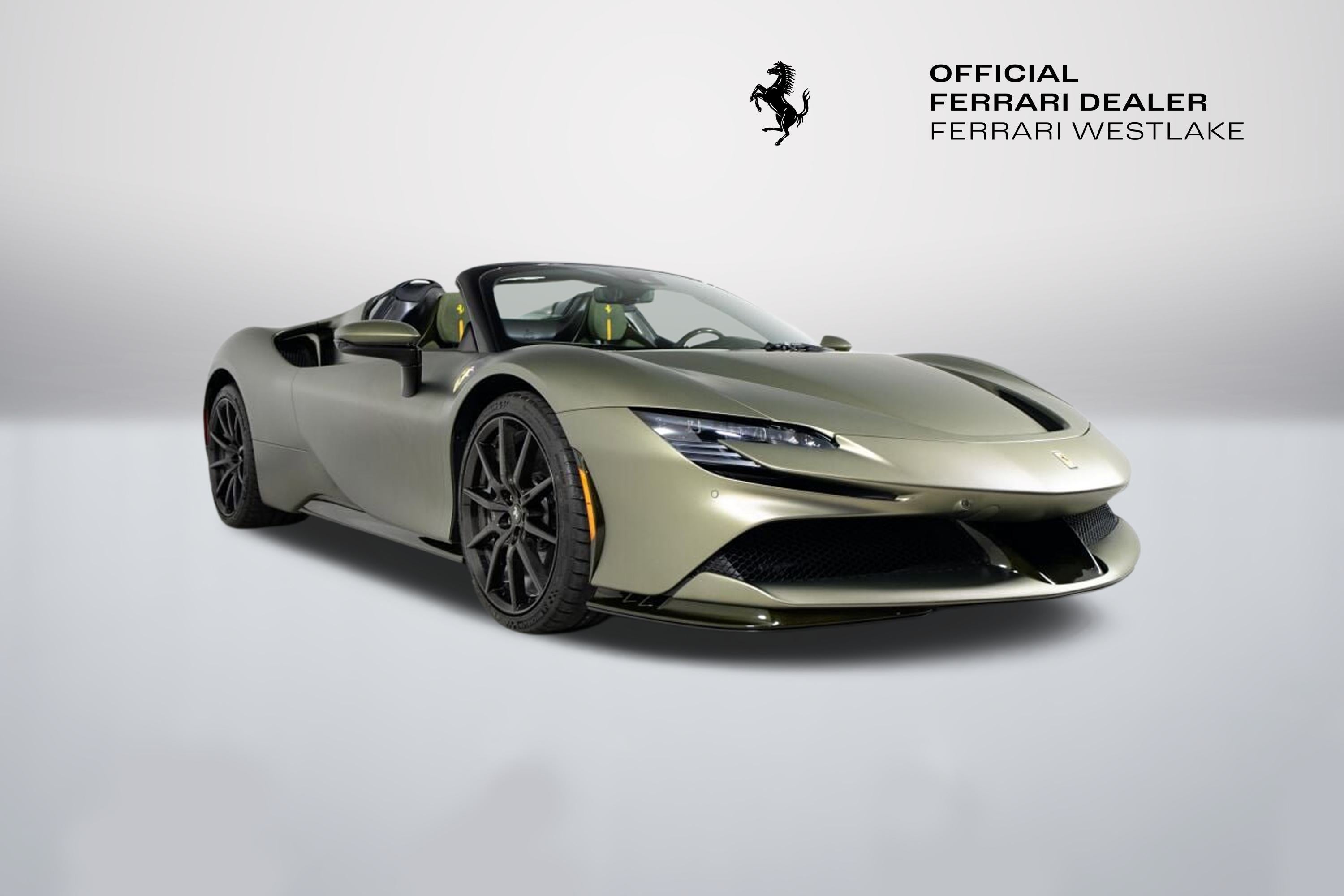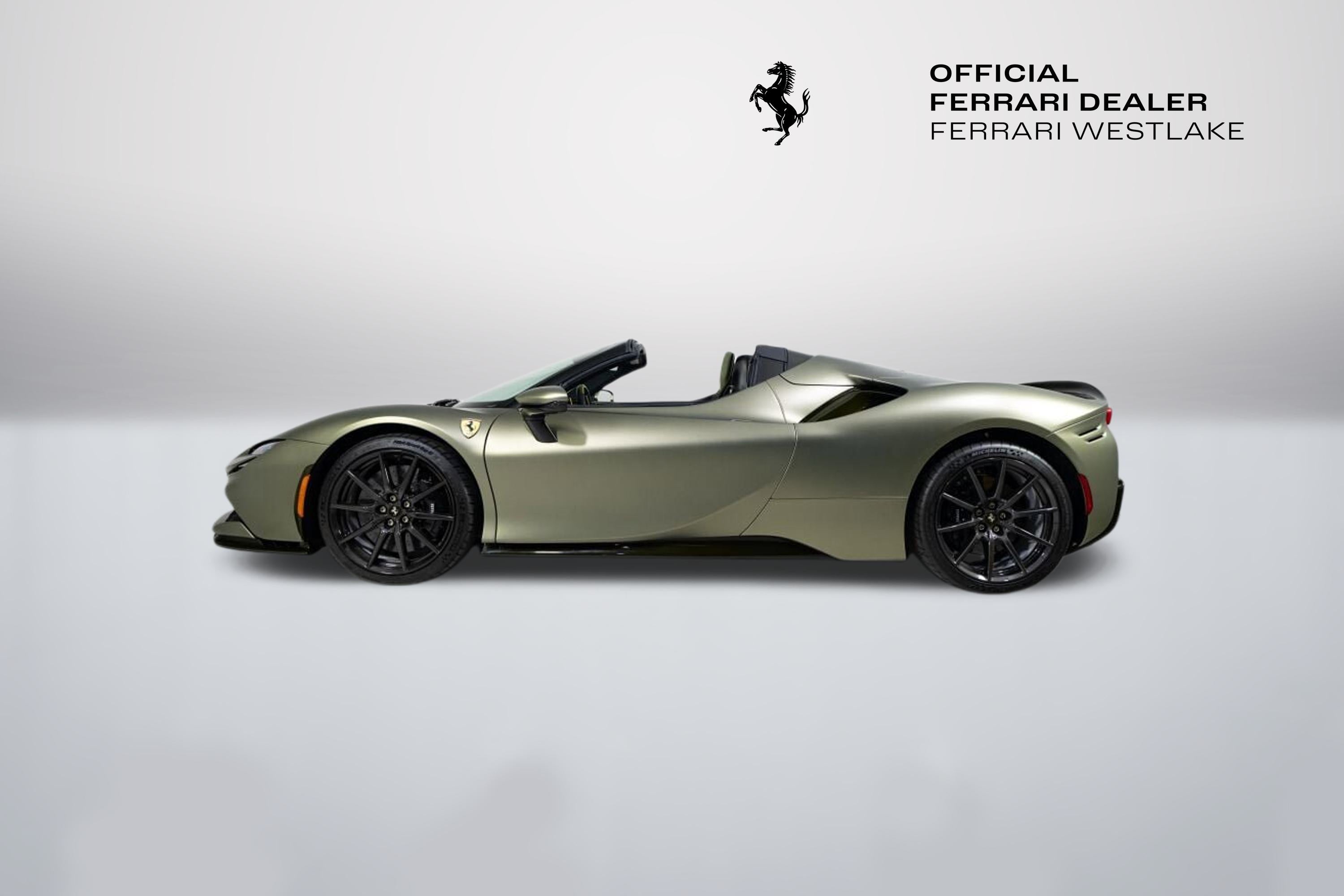 Ferrari Westlake is proud to present the availability of this one-owner, 2025 Ferrari SF90 Spider outfitted with the Assetto Fiorano Package. This SF90 Spider is finished in a Matte Special Paint from Ferrari, Verde Masoni Opaco, a finish that truly captures the essence and lines of this track focused machine. The exterior and interior are further elevated by glossy Verde Militare carbon fiber accents throughout, creating a cohesive and unmistakably bespoke aesthetic. This SF90 Spider represents a pure and uncompromising interpretation of the Prancing Horse’s first production plug-in hybrid Spider, blending Formula 1 derived technology with open-air exhilaration. The SF90 Spider has plug-in hybrid architecture in which the internal combustion engine is integrated with two electric motors at the front, which comprise the RAC-e (Cornering Angle Regulator, Electric) system, and one at the rear derived from and named after a Prancing Horse Formula 1 innovation, the MGUK (Motor Generator Unit, Kinetic). Power is sent to all four wheels, making this the first mid-engine Ferrari with all-wheel drive. The 4.0-liter twin-turbocharged V-8 generates a mighty 769 horsepower on its own, and the trio of electric motors provide an additional 217 horsepower. The synergy between the internal combustion engine and the electric motors unleashes a net output of 986 horsepower and 590 lb-ft of torque. The SF90 Spider masterfully blends advanced hybrid technology with open-air excitement, maintaining its striking design and aerodynamic precision. As Ferrari’s first series-production PHEV Spider, it stands as a powerful expression of innovation, versatility, and authentic Ferrari emotion. Factory Exterior Options: Ferrari Paintwork in Verde Masoni Opaco EXTC/PNMT Two-tone Body Work in Nero BIC2 Exterior Special Glossy Carbon in Carbon Verde Militare CECM Assetto Fiorano & Fiorano Package Extended FIO1/FIO2 Special Carbon Fiber Lateral Front Spoilers FCWS/FCWX Special Carbon Fiber Under-Door Trim CEXS/CEXX Special Carbon Fiber Lateral Rear Screen Accents CERB/CBTX Special Carbon Fiber Lateral Engine Air Intake CEIS/SSCX Carbon Fiber Intake Manifold Cover MNFC Special Carbon Fiber Rear Diffuser CEXD/CEDX Special Carbon Fiber Engine Compartment Shield CEL2/CL2X Plenums Special Carbon Fiber CMFX Sport Tailpipe Tips with Black Finish EXAB Nero Brake Calipers CALB Scuderia Ferrari Shields LOGO Special Carbon Fiber Wheel Cap CUPC/CUPX Titanium Wheel Studs TIWN Front Parking Sensors PAR2 AFS System AFSU Advanced Front Driving Camera FCAM Factory Interior Options: Verde Venaria Special Interior INTC/INTX Carbon Fiber Racing Seats in Special Carbon RSCH/RSCX Racing Seat Lifter RSES Nero Carpets CRPT Special Stitching in Giallo STC2 Alcantara Seat Piping ALDT Leather Headliner in Nero RUF1 Inner Special Carbon Fiber in Glossy Carbon in Carbon Verde Militare CICM Special Carbon Upper Part of Dashboard (Matte Finish) CIIP/CIPX Gloss Finish Carbon Fiber Bench CIPN Special Carbon Matte Finish in Luggage Compartment CIZB/CZBX Special Gloss Carbon Fiber Dashboard Accents DATR/DATX Special Carbon Gloss Carbon Fiber Tunnel Insert CITZ/CUTX Special Carbon Fiber Steering Wheel with LEDs LEDS/CIDL/CLDX Carbon Fiber Dashboard Air Vent CIAD Embroidered Cavallino Emblem on Headrest EMPH Color Safety Belt in Giallo CSB1 Dreamline F1 Paddles in Giallo Modena DLPA Dreamline Upper Arch Steering Wheel in Giallo Modena DLUP Italian Flag Painted on Dashboard IFPD Special Features - SPEC HIFI Premium Sound System SNDH My Ferrari Connect HWCO Apple CarPlay ACPL HomeLink Home Access System HOLK Electrochromic Exterior Mirrors MIR3 Digital Rear View Mirror MIRT Ferrari Factory Warranty is in effect until 02/05/2028. Ferrari Genuine Maintenance 7 Year Program is in effect until 02/05/2032. Ferrari’s 4 Years Emission Warranty is in effect until 02/05/2032. If you would like additional information or wish to schedule a private viewing, we invite you to contact the Ferrari Westlake Sales team.