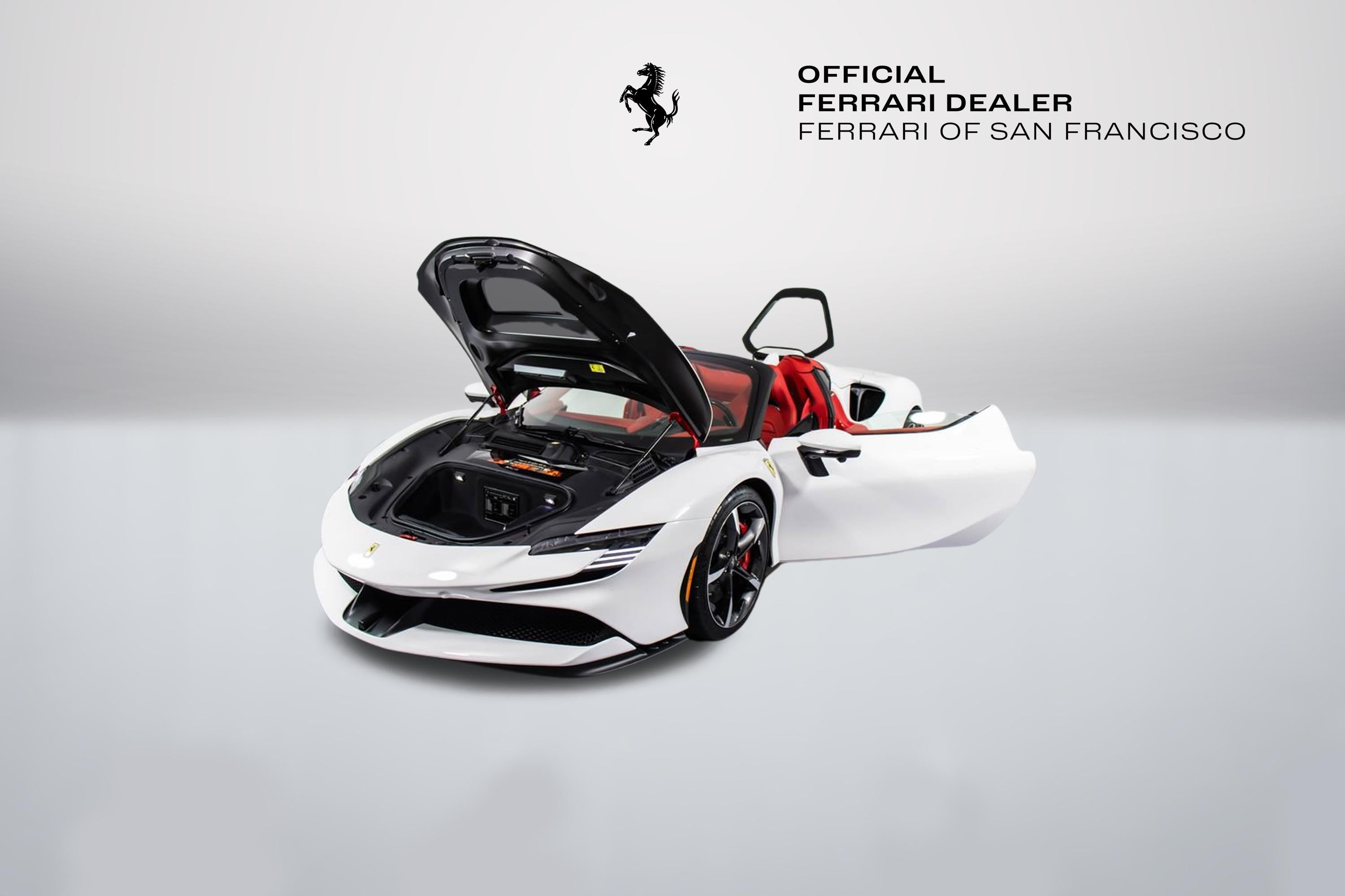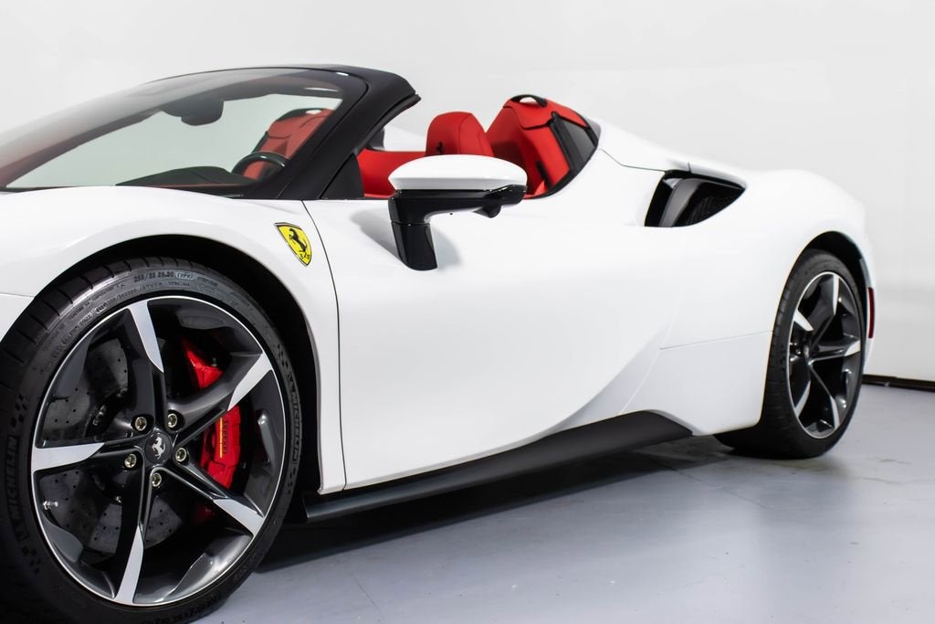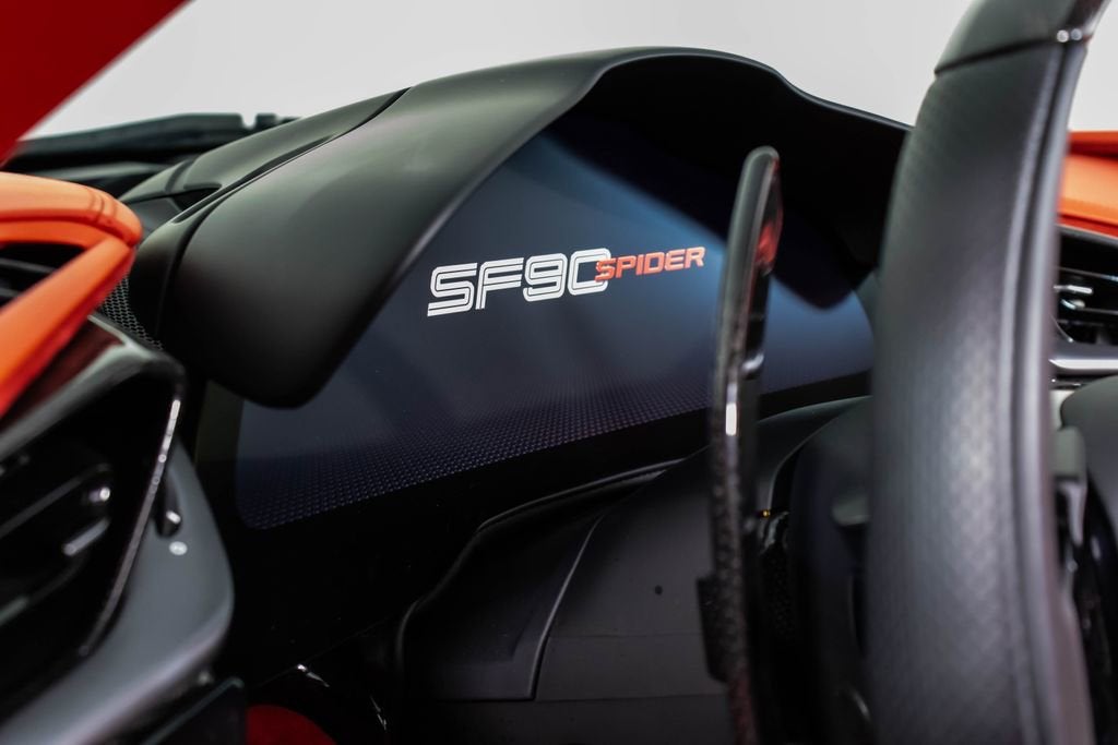 317174 Exterior: Rosso Corsa (Wrapped in White) Interior: Rosso Ferrari Mats: Rosso Ferrari 2025 Ferrari SF90 Spider Options: Apple CarPlay AFS System Vettura Atelier Atelier New York Two Tone Body Work in Nero Back Radar Caliper Freni Colore Rosso Carbon Fiber Wheel Cups Tappeti Pelle/Alcantara Stile3 Cinture Di Sicurezza Colorate in Rosso Inserti Plancia in Carbonio Sedili in Stile Daytona Targhetta Dedica in Argento Interni in Pelle Bicolore in Rosso Ferrari Sollevatore Di Disimpegno Cavall. Cuciti Su Poggiatesta in Nero Codini Di Scarico Neri INS. Paraurti Ant. Nero Opaco Advanced Front Driving Camera Sovratappeti Colorati Con Logo HW Readiness MyFerrari Connect Volante in Carbonio + LEDS Scudetti 'Scuderia Ferrari' Specchi Elettrocromici Esterni Sensori Parcheggio Ant.E Post Inserti Abitac. Alcantara Rosso Cerchi Forgiati Diamantati Sedile Full Electric Panchett Post Pelle Tinta INTC Sustema HiFi Premium Allestimenti Speciali Colore Cuciture Spec Su Rich in Rosso Surround View Colonette Ruota in Titanio MyFerrari Connect No Activated This 2025 Ferrari SF90 Spider is a bold and highly bespoke hybrid supercar, finished in classic Rosso Corsa and uniquely wrapped in white, creating a striking contrast that amplifies its futuristic design. The Rosso Ferrari interior continues the dramatic theme, featuring dual-tone leather, Daytona-style seats, Rosso Alcantara inserts, and special Rosso stitching throughout, while a Nero-stitched Cavallino on the headrests adds a refined signature touch. Crafted through the Atelier New York program, this example showcases extensive carbon fiber elements including the steering wheel with integrated LEDs, dashboard inserts, and wheel cups, emphasizing its race-inspired DNA. Equipped with a front lift system, adaptive front lighting, advanced front driving camera, surround view, and front and rear parking sensors, it delivers both cutting-edge performance and everyday usability. Diamond-forged wheels, titanium wheel bolts, red brake calipers, and black tailpipe tips complete the aggressive stance, while Apple CarPlay and a premium Hi-Fi system ensure modern connectivity. This SF90 Spider stands as a perfect fusion of electrified performance, bespoke luxury, and unmistakable Ferrari innovation.