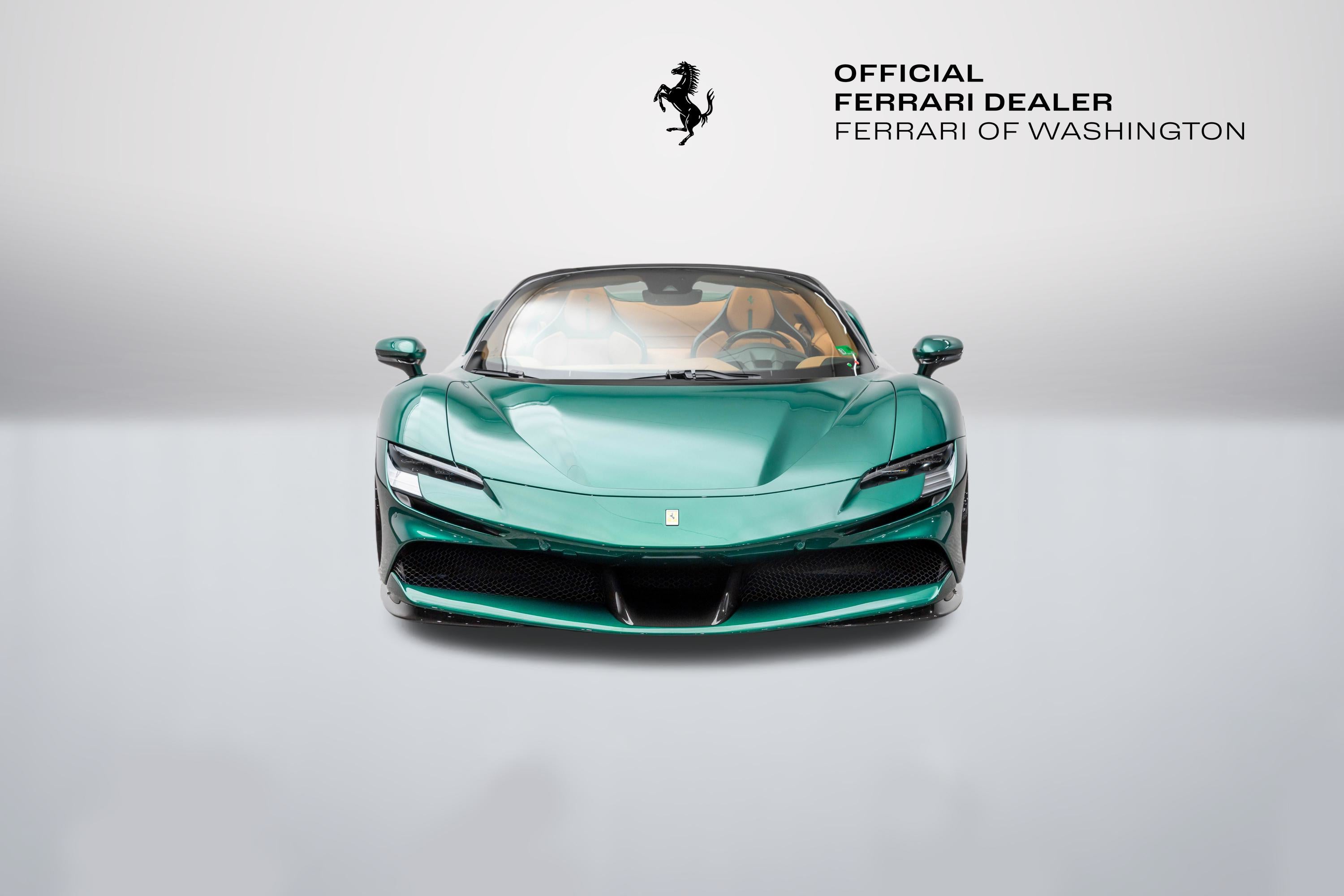Ferrari Maserati of Washington is pleased to offer you this Ferrari SF90 Spider . Our team strives to make each experience here at Ferrari Maserati of Washington the best possible, so here are a few key components of this vehicle. This SF90 Spider is covered in Verde Pino exterior paint with Cuoio interior. Ferrari equipped this SF90 Spider with many options including: Ferrari Approved Certified, ABS brakes, Alloy wheels, Compass, Electronic Stability Control, Heated door mirrors, Illuminated entry, Leather Seat Trim, Low tire pressure warning, Navigation System, Remote keyless entry, Traction control, 4-Wheel Disc Brakes, 6 Speakers, Adaptive suspension, Air Conditioning, AM/FM radio, AM/FM Stereo, Apple CarPlay, Automatic temperature control, Brake assist, Bumpers: body-color, Ceramic disc brakes: front and rear, Convertible HardTop, Convertible roof lining, Convertible roof wind blocker, Delay-off headlights, Driver door bin, Dual front impact airbags, Dual front side impact airbags, Exterior Parking Camera Rear, Four wheel independent suspension, Front anti-roll bar, Front Bucket Seats, Front Center Armrest, Front reading lights, Fully automatic headlights, Glass rear window, Heads-Up Display, Integrated roll-over protection, Leather steering wheel, Outside temperature display, Overhead console, Passenger cancellable airbag, Passenger door bin, Power convertible roof, Power door mirrors, Power driver seat, Power passenger seat, Power steering, Power windows, Radio data system, Rain sensing wipers, Rear anti-roll bar, Rear fog lights, Rear Parking Sensors, Rear window defroster, Security system, Speed control, Speed-sensing steering, Spoiler, Sport steering wheel, Standard Seats, Steering wheel mounted audio controls, Tachometer, Telescoping steering wheel, Tilt steering wheel, Trip computer, Variably intermittent wipers, Voltmeter, and Wheels: 20" x 9.5" Fr & 20" x 11.5" Rr. CARFAX One-Owner. We are conveniently located only 6 miles from Dulles International Airport in beautiful Sterling, VA.