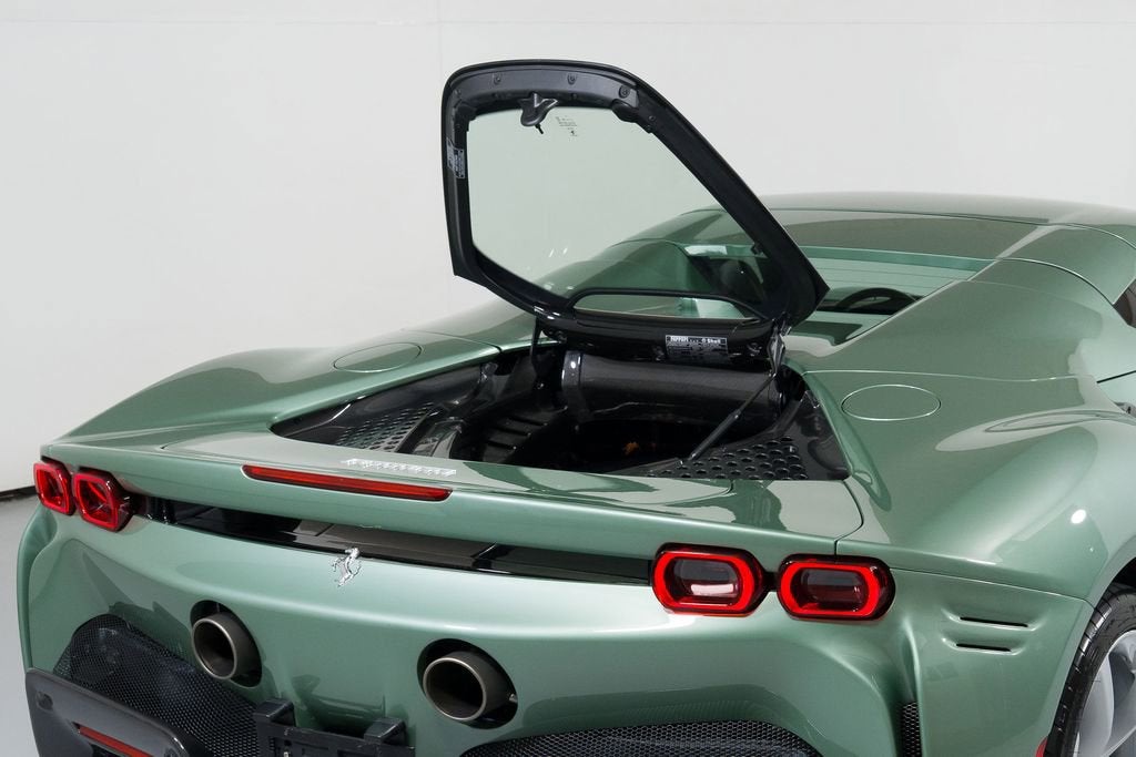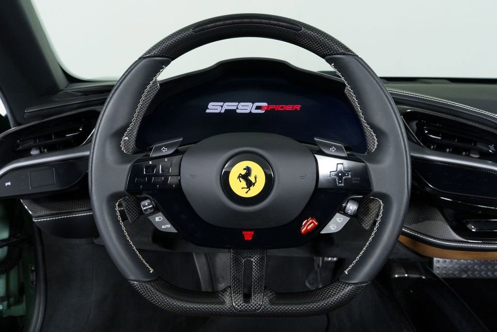 Elevate your driving experience with the stunning 2025 Ferrari SF90 Spider finished in Verde Francesca . This exceptional sports car blends unparalleled performance, exquisite design, and cutting-edge technology, making it the ultimate expression of automotive excellence. Boasting a powerful V8 engine and an advanced 8-speed manual all-wheel-drive system, the SF90 Spider delivers an unrivaled driving experience that will leave you breathless. Complementing its exceptional performance is a meticulously crafted exterior, featuring a striking green finish and a convertible hardtop that seamlessly integrates style and functionality. Carbon Rear Diffuser Carbon Driver Zone 6 Speakers Heads-Up Display Adaptive Suspension Ceramic Disc Brakes Rear Parking Sensors Apple CarPlay Leather Seat Trim 20" Alloy Wheels Rain Sensing Wipers Immerse yourself in the epitome of luxury and innovation with the Ferrari SF90 Spider. Indulge in the unparalleled comfort and convenience of features like the automatic climate control, power-adjustable seats, and the advanced infotainment system with Apple CarPlay integration. Elevate your driving experience with the cutting-edge technology that the SF90 Spider offers. The Heads-Up Display projects vital information directly into your line of sight, while the adaptive suspension and ceramic disc brakes provide uncompromising control and responsiveness. Crafted with the utmost attention to detail, the interior of the SF90 Spider exudes an unrivaled sense of luxury. The leather-wrapped steering wheel and seats, along with the premium audio system, create an environment that caters to your every desire. Owning the 2025 Ferrari SF90 Spider Base is more than just a privilege; it's a testament to your discerning taste and your passion for exceptional performance. Experience the thrill of the open road and the admiration of onlookers as you command the streets in this iconic sports car. We invite you to visit our showroom and witness the unparalleled craftsmanship and engineering that make the Ferrari SF90 Spider the ultimate expression of automotive excellence. Let us demonstrate how this remarkable vehicle can elevate your driving experience and exceed your expectations.