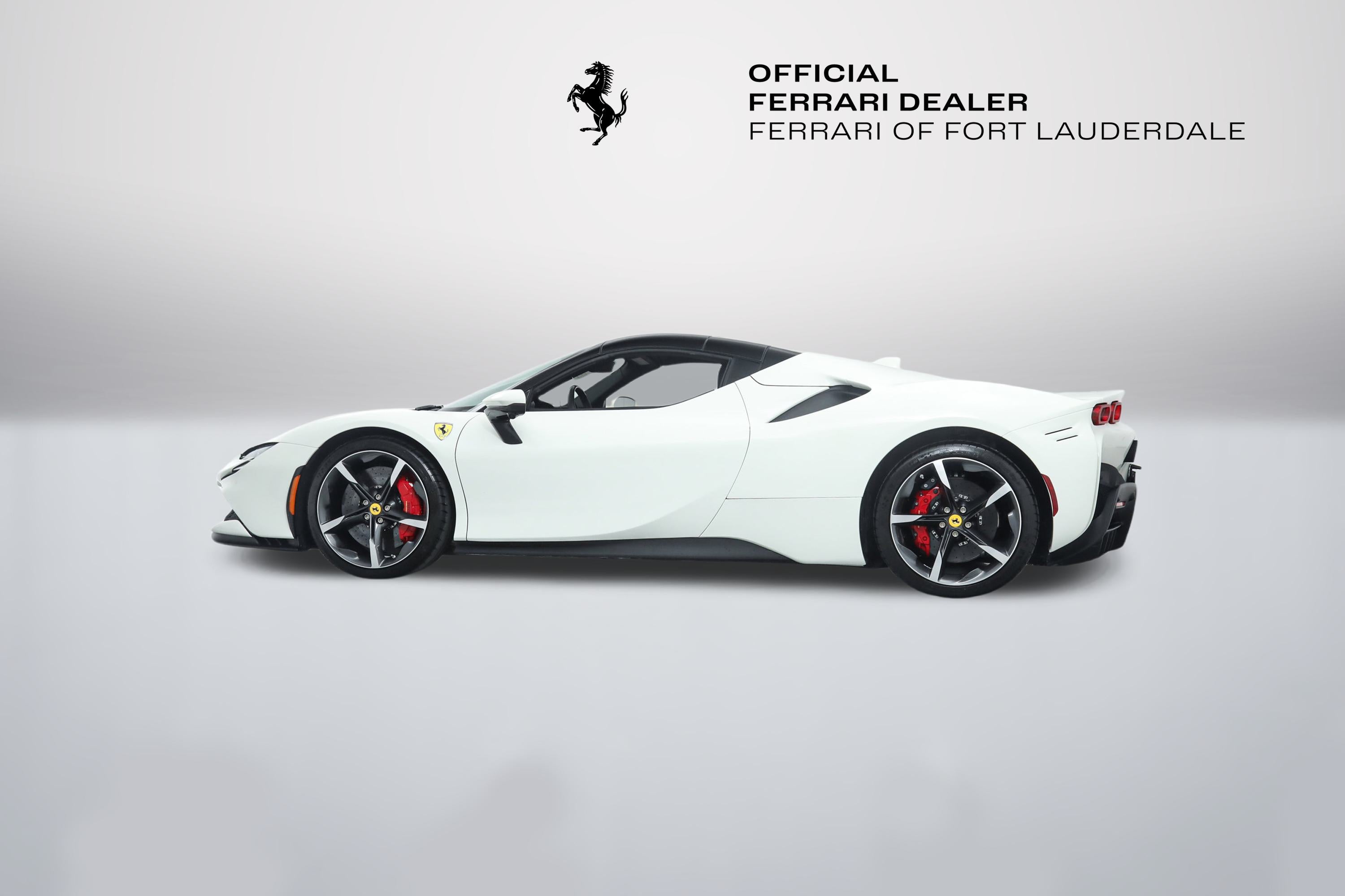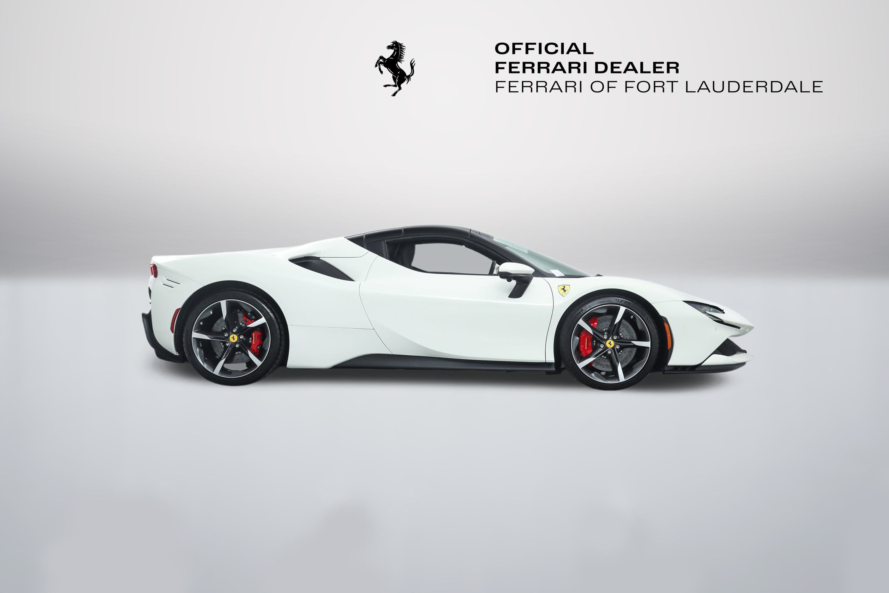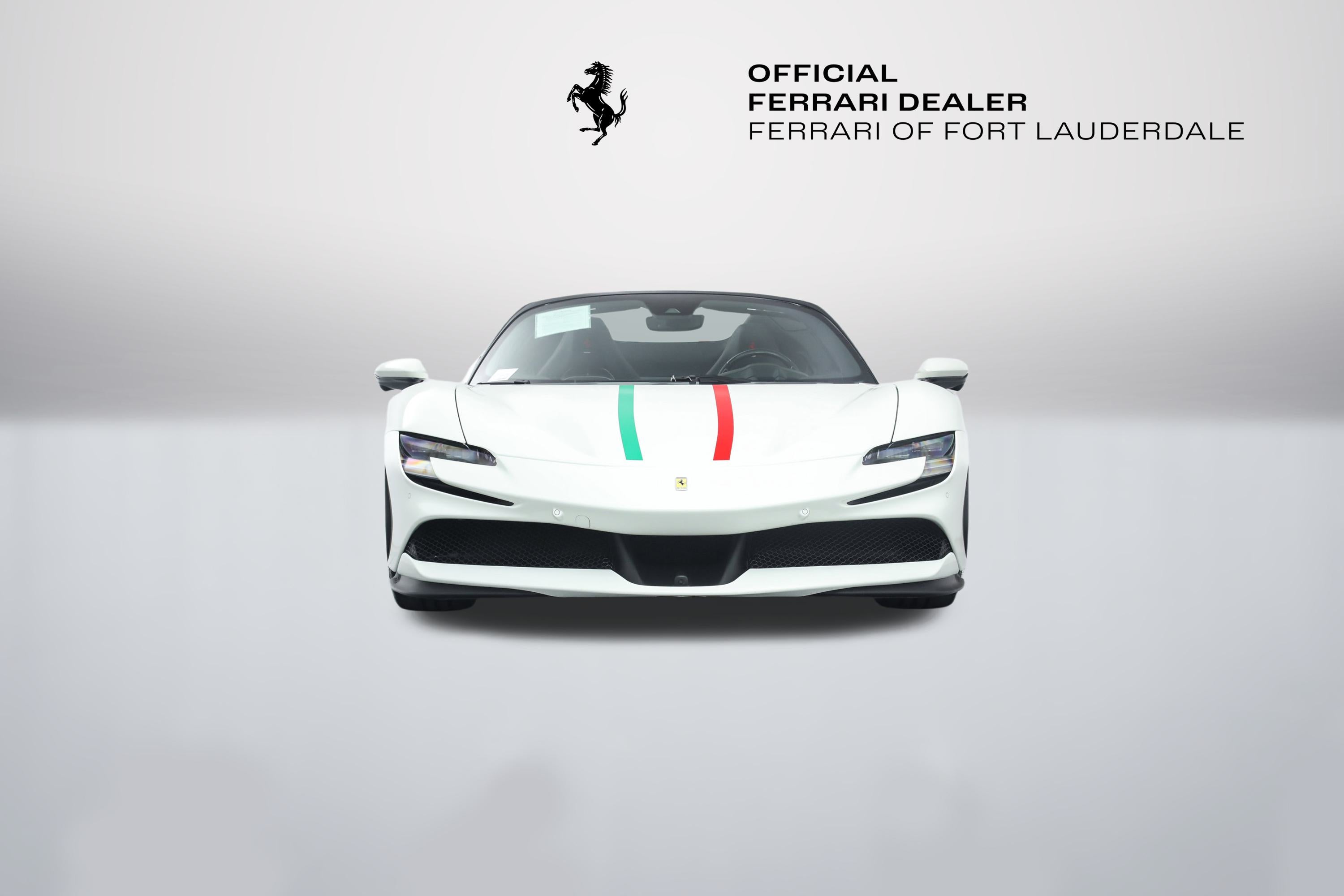 Ferrari SF90 Spider - FERRARI CERTIFIED PRE-OWNED - AVAILABLE EXTENDED FERRARI WARRANTY - - Bianco Avus over Nero - ONE OWNER - Low Miles - Pristine Condition - Many Fine Options - Sold as New by Our Dealership - Expertly Maintained by Our Factory Trained Technicians - Ferrari Factory Warranty to 3/13/28 - Complimentary Ferrari Genuine Maintenance Service to 3/13/32 - Factory Options: - Suspension Lifter - Two-Tone Bodywork - Carbon Fiber LED Steering Wheel - Carbon Fiber Dashboard Inserts - Carbon Fiber Upper Center Console - Carbon Fiber Door Panels - Carbon Fiber Door Sills - Diamond Polished Forged Wheels - Titanium Wheel Bolts - Red Brake Calipers - Scuderia Ferrari Shields - Ventilated Full Electric Seats - Daytona Style Seats - Italian Flag Stitched to Headrests - Cavallino Stitched to Headrests in Rosso - Stitching in Rosso - Premium HiFi Sound System - Apple CarPlay - Surround View - Advanced Frontlight System (AFS) - Advanced Front Driving Camera - Electrochromic Rearview Mirror - Front and Rear Parking Sensors - Leather and Alcantara Floor Mats - Black Tailpipe Tips - Front Bumper Insert in Matte Black This Ferrari has passed a multi-point inspection performed by our factory trained technicians, and has been enrolled in the Ferrari Approved Certified Pre-Owned Program. The Certified program makes available up to two years of additional Ferrari Power Approved Warranty coverage. Please see dealer for more details.