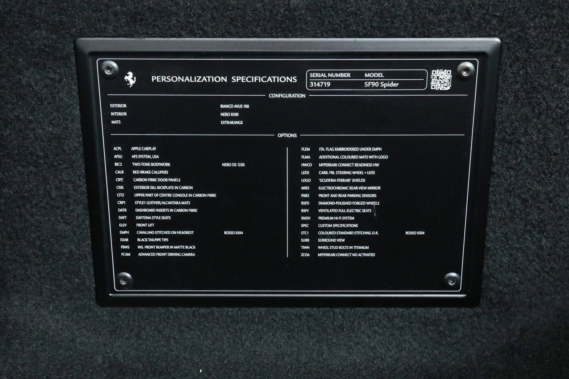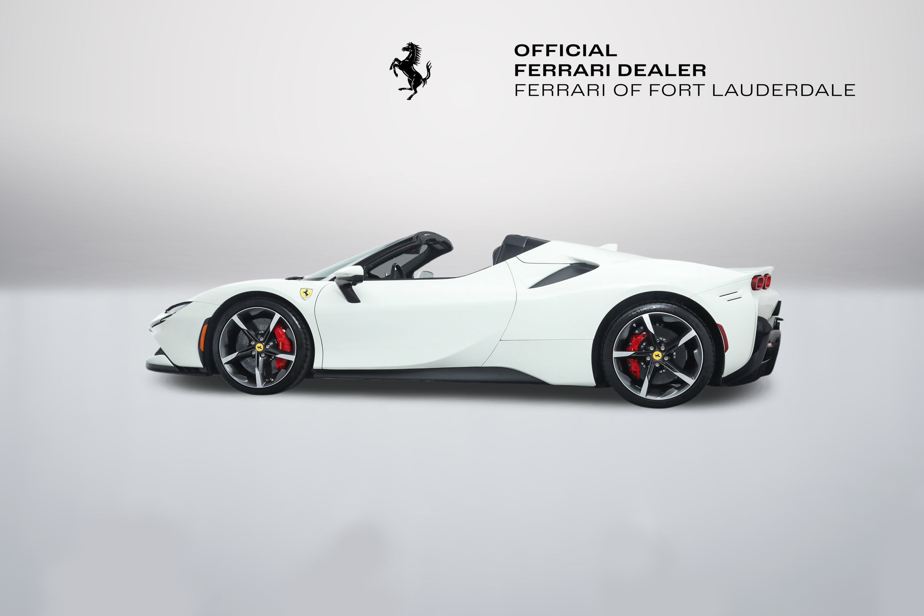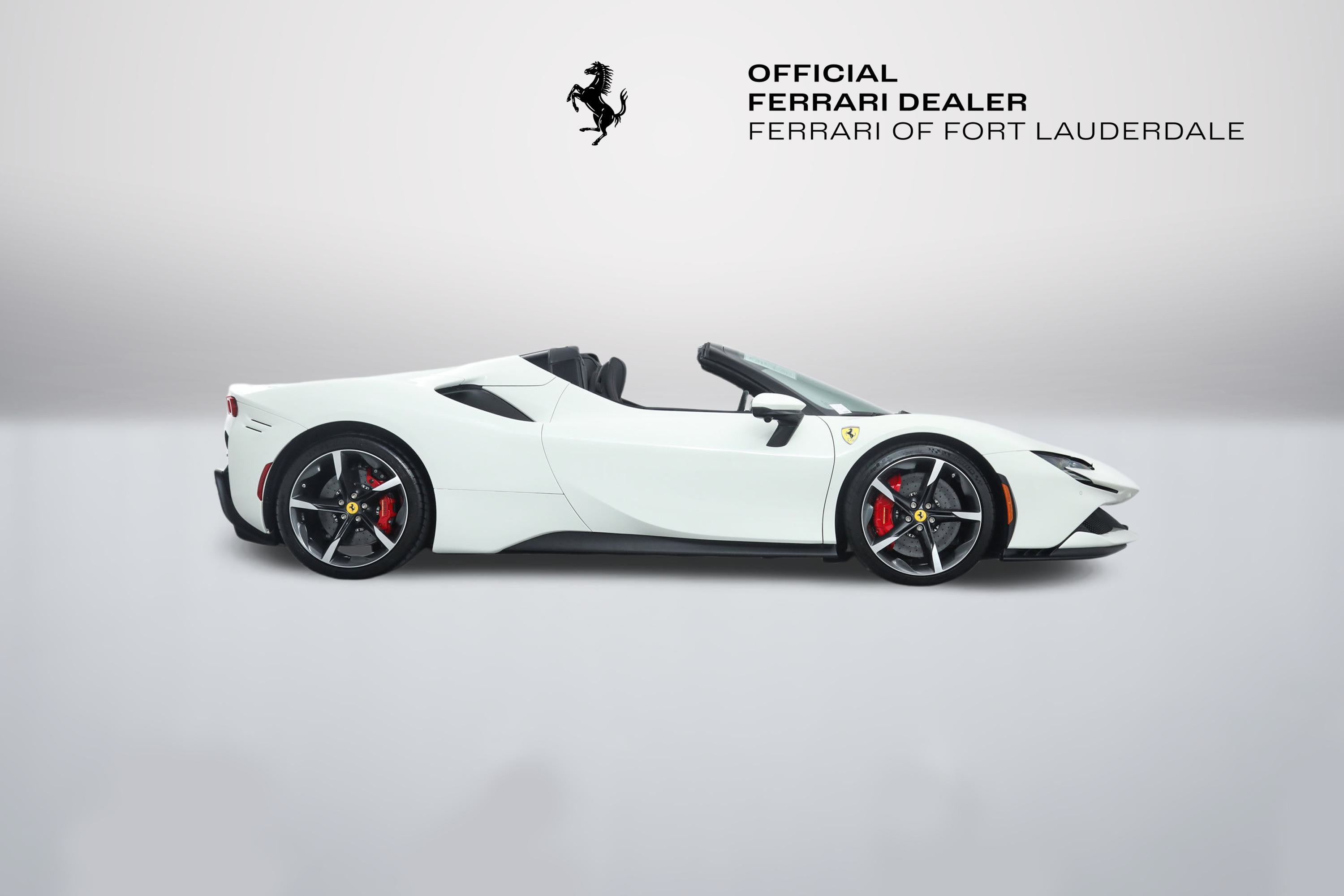 Ferrari SF90 Spider - FERRARI CERTIFIED PRE-OWNED - AVAILABLE EXTENDED FERRARI WARRANTY - - Bianco Avus over Nero - ONE OWNER - Low Miles - Pristine Condition - Many Fine Options - Sold as New by Our Dealership - Expertly Maintained by Our Factory Trained Technicians - Ferrari Factory Warranty to 3/13/28 - Complimentary Ferrari Genuine Maintenance Service to 3/13/32 - Factory Options: - Suspension Lifter - Two-Tone Bodywork - Carbon Fiber LED Steering Wheel - Carbon Fiber Dashboard Inserts - Carbon Fiber Upper Center Console - Carbon Fiber Door Panels - Carbon Fiber Door Sills - Diamond Polished Forged Wheels - Titanium Wheel Bolts - Red Brake Calipers - Scuderia Ferrari Shields - Ventilated Full Electric Seats - Daytona Style Seats - Italian Flag Stitched to Headrests - Cavallino Stitched to Headrests in Rosso - Stitching in Rosso - Premium HiFi Sound System - Apple CarPlay - Surround View - Advanced Frontlight System (AFS) - Advanced Front Driving Camera - Electrochromic Rearview Mirror - Front and Rear Parking Sensors - Leather and Alcantara Floor Mats - Black Tailpipe Tips - Front Bumper Insert in Matte Black This Ferrari has passed a multi-point inspection performed by our factory trained technicians, and has been enrolled in the Ferrari Approved Certified Pre-Owned Program. The Certified program makes available up to two years of additional Ferrari Power Approved Warranty coverage. Please see dealer for more details.