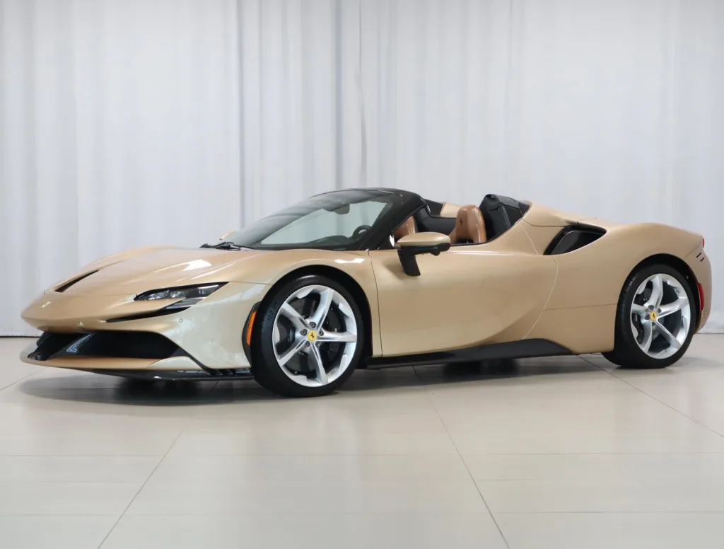 2022 Ferrari SF90 Spider - Tailor Made Inspiration SeriesOffered by Ferrari of AtlantaThis exceptional 2022 Ferrari SF90 Spider is a Tailor Made commission and part of Ferrari's exclusive Inspiration Series, designed to honor a 1978 Ferrari 308 GTS delivered in the same striking specification. Finished in Oro Chiaro Metallic over Ghianda Heritage leather, this one-of-one build masterfully blends heritage design with Ferrari's most advanced open-top platform.A one-owner car delivered new by Ferrari of Atlanta, it shows just 238 miles and features nearly every available exterior carbon fiber option. Other notable equipment includes the front suspension lifter, surround view camera, front and rear parking sensors, premium Hi-Fi sound system, and TDF-style seat inserts-all enhancing both usability and exclusivity.An extraordinary opportunity to own a modern Ferrari icon with timeless inspiration and bespoke execution.Contact Ferrari of Atlanta for details.