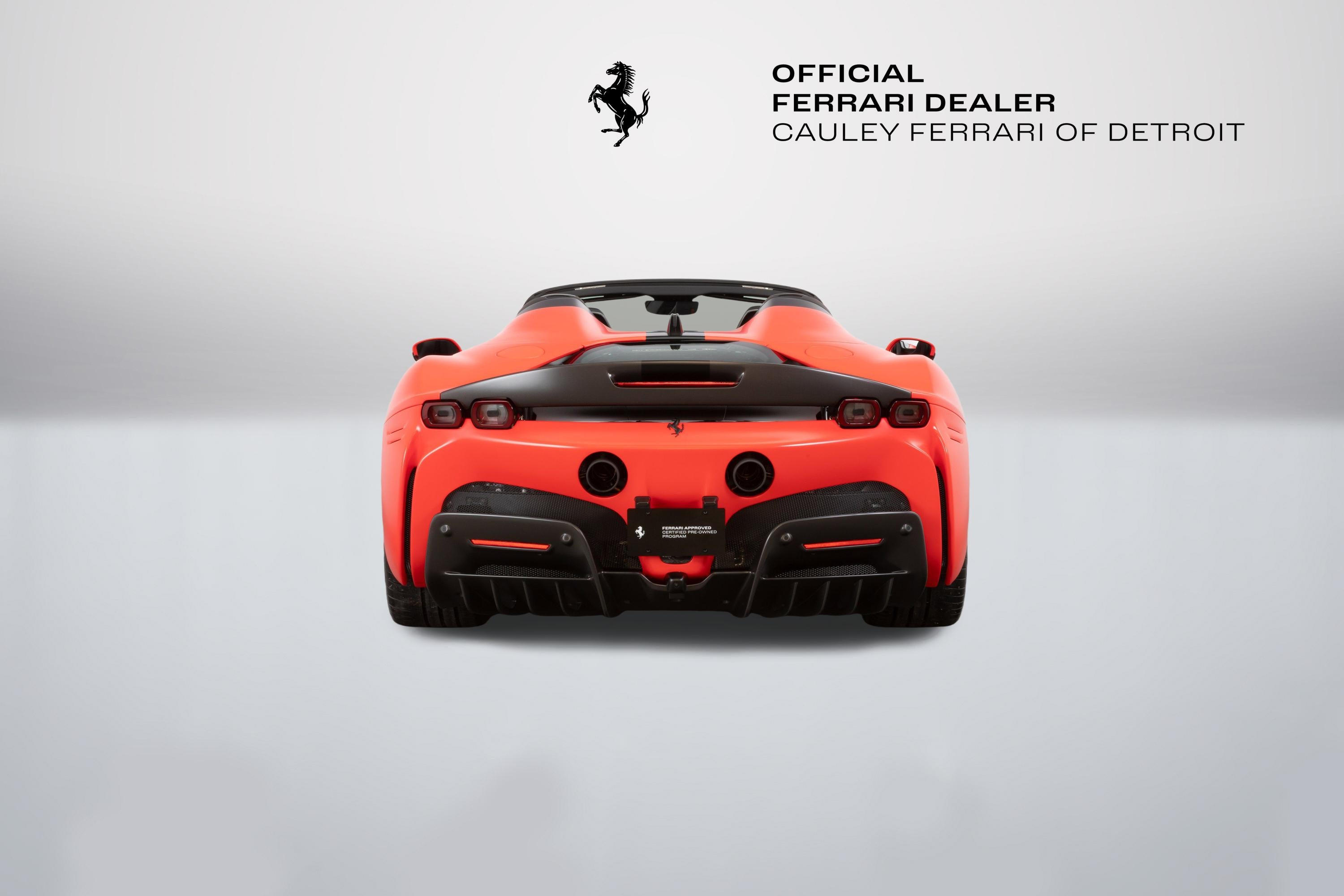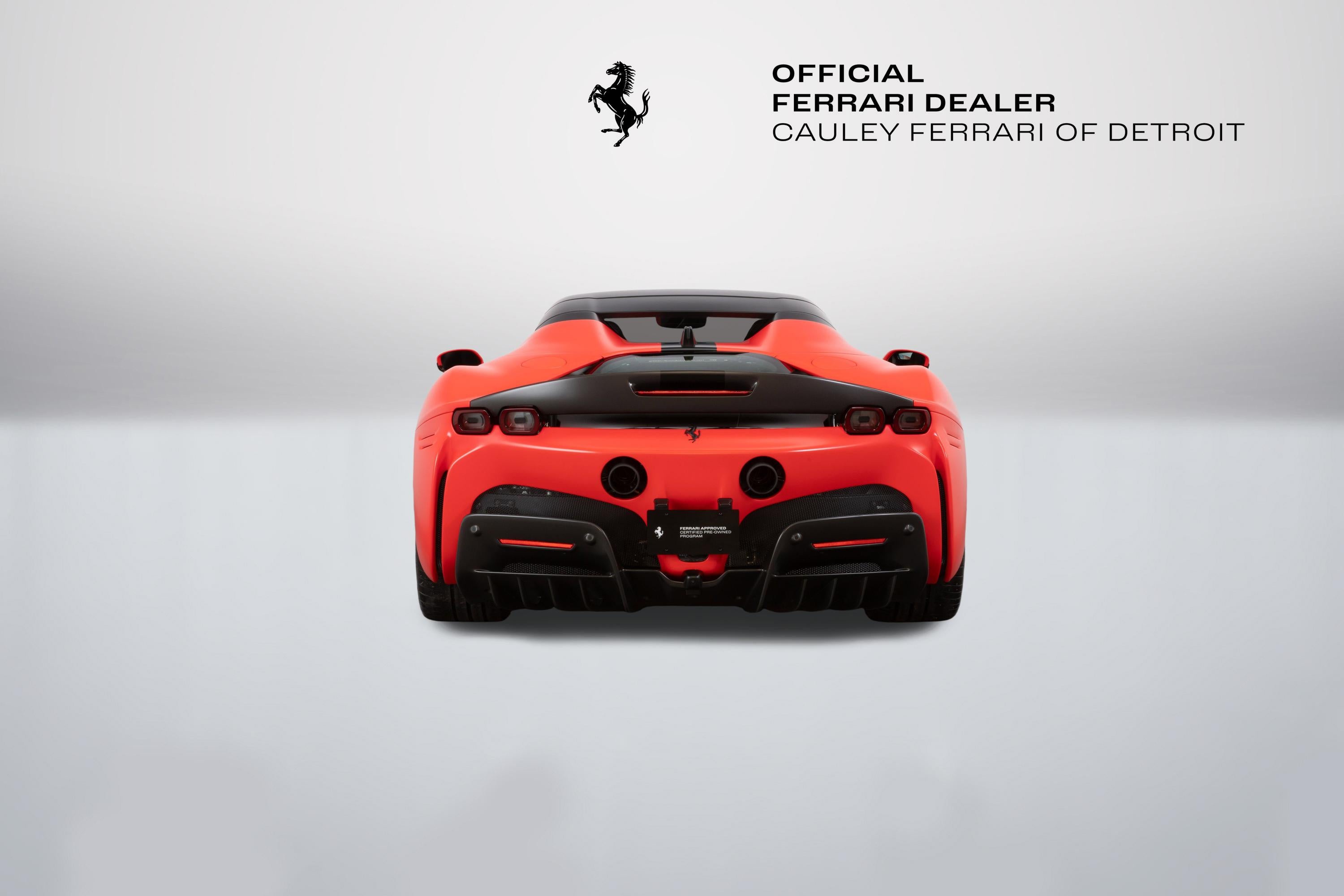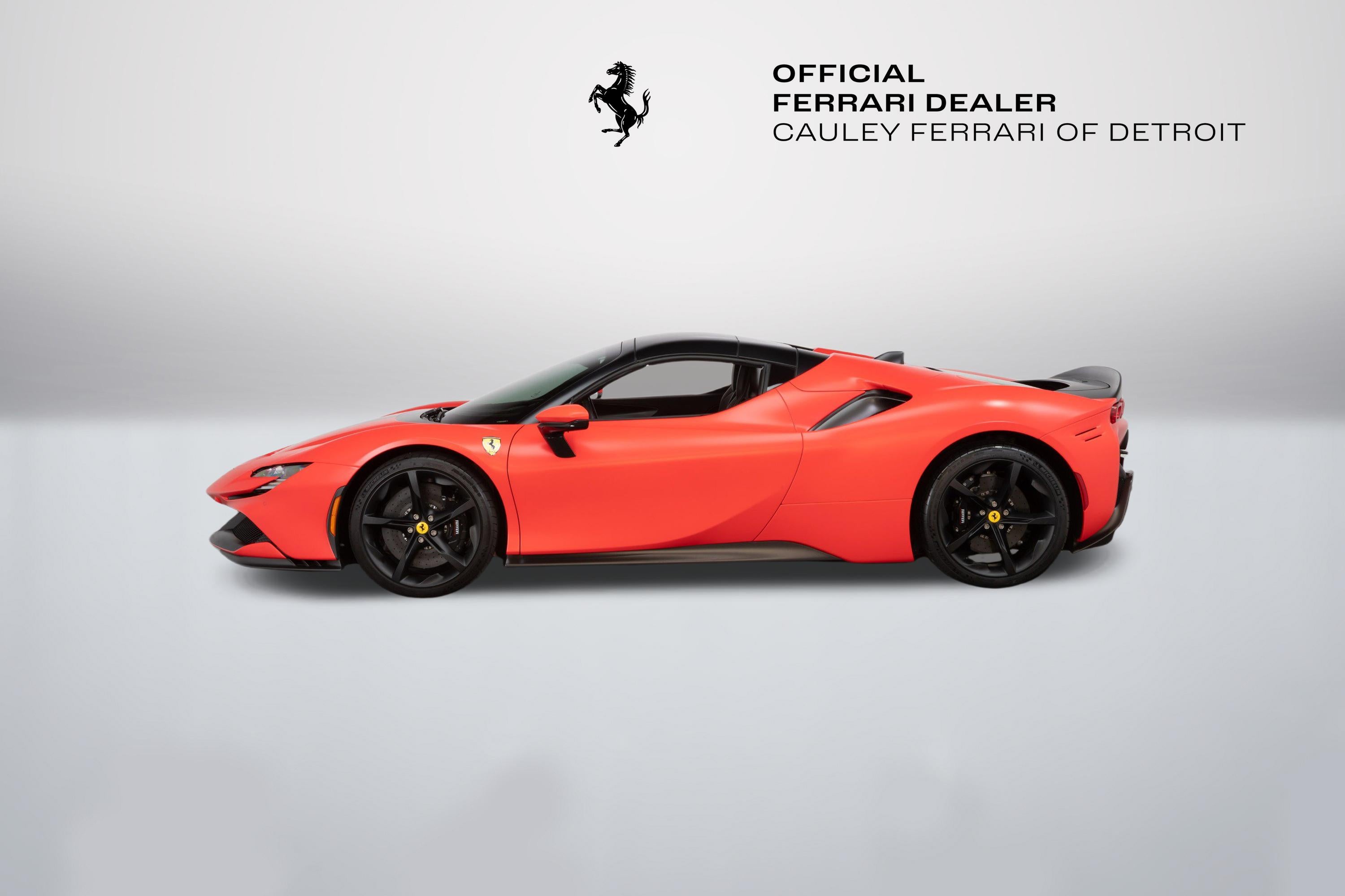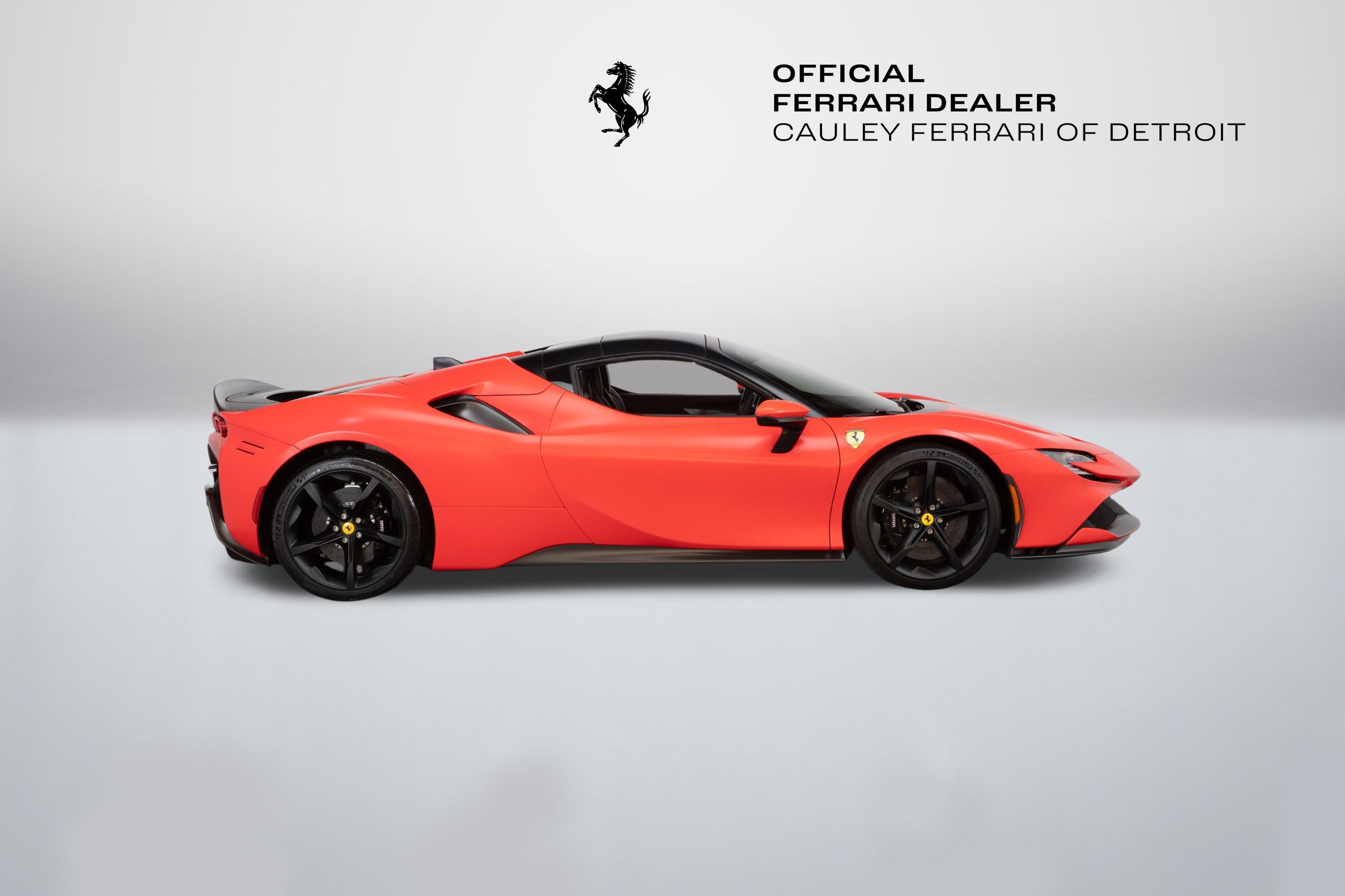 Cauley Ferrari of Detroit is thrilled to offer you this one-of-one Assetto Fiorano-equipped 2022 SF90 Spider finished in Matte Rosso Formula 1 2019 with Matte Nero Livery over a Nero interior with Rosso Accents. This example came with a very high MSRP of $899,998 and is loaded with all the most highly sought-after options such as the Adaptive Headlight System, Suspension Lifter, Matte Black Wheels, Shields, JBL Premium Sound System, several exterior and interior Carbon Fiber options, and much more. The full options list can be seen below. This is being sold as a Ferrari-Certified pre-owned vehicle. The remaining factory warranty runs through 2/3/2026, and we are including a bumper to bumper Ferrari Factory Warranty Extension through 2/3/2028 as well. The seven-year free scheduled maintenance is good until 2/3/2030. Give us a call or stop by to take a closer look at this gorgeous SF90 Spider. Please ask us about our financing and leasing options available through Ferrari Financial Services (FFS). We can offer you monthly financing as far out as 84 months, Balloon financing up to 60 months, as well as both Open-End Leasing scenarios. FFS is available on all new and pre-owned Ferrari models. These flexible payment options really make getting into a Ferrari easier than ever before. Let us show you how. Give us a call at 248-538-9600 to set up an appointment for a closer look or stop by our showroom in West Bloomfield, MI. Factory Options: - Apple CarPlay - Roof painted in Matte Black - Black Brake Calipers - Special Exterior Carbon in Matte finish - Carbon Fiber Side Air Splitter - Engine Covers in Carbon Fiber - Carbon Fiber Rear Boot Trim - Rear Diffuser in Carbon Fiber - Carbon Fiber Underdoor Cover - Special Internal Carbon Fiber in Matte Finish - Carbon Fiber Driver Zone + LEDs - Upper Part of Center Console in Carbon Fiber - Carbon Fiber Front Luggage Compartment Area - Colored Inner Details in Rosso Ferrari - CIPN in Special Carbon Fiber - Leather/Alcantara Nero Mats - Colored Safety Belts in Rosso - CLTX in Special Carbon Fiber - CIZB in Special Carbon Fiber - Dash Inserts in Carbon Fiber - Dedication Plate in Silver - Tricolore Dreamline on F1 Paddles - Cavallino Stitched on Headrests in Rosso - Black Tailpipe Tips - Handy Fire Extinguisher - Advanced Front Driving Sign Camera - Carbon Fiber Front Spoiler - Assetto Fiorano Package - Special Internal Carbon Fiber Pack - Additional Colored Mats with logo - Steering Wheel with Tricolore Stitching - Scuderia Ferrari Shields - Front and Rear Parking Sensors - Special Matte Color - Rear Spoiler in Special Carbon Fiber - 20" Dark Forge Wheels in Matte Black - Carbon Fiber Racing Seats - Size Large - Premium Hi-Fi JBL Sound System - Special Equipment - CEIS in Special Carbon Fiber - Colored Special Stitching in Rosso - Titanium Wheel Bolts Special Equipment: - Matte Rosso Formula 1 2019 with Matte Painted Roof and Livery Extras: - Basic PPF Kit - Front Clip of Car The SF90 Spider is an open-top variant of the SF90 Stradale equipped with a retractable hardtop. It is the first Ferrari plug-in hybrid car offered as an open-top variant. It is also the most powerful non-limited convertible car in the world, having a combined power of 1,000 PS. The previous record was held by the Ferrari 812 GTS. Performance is very similar to the closed-body variant and on par with the La Ferrari Aperta. The Assetto Fiorano is a racing modification pack for the SF90 Stradale or Spider. It uses racing-derived Multimatic shocks and lightweight carbon fiber parts embedded in the door panels and underbody. The Assetto Fiorano also employs a lightweight titanium exhaust system. These measures save 30 kg (66 lb) compared to the standard SF90 Stradale.