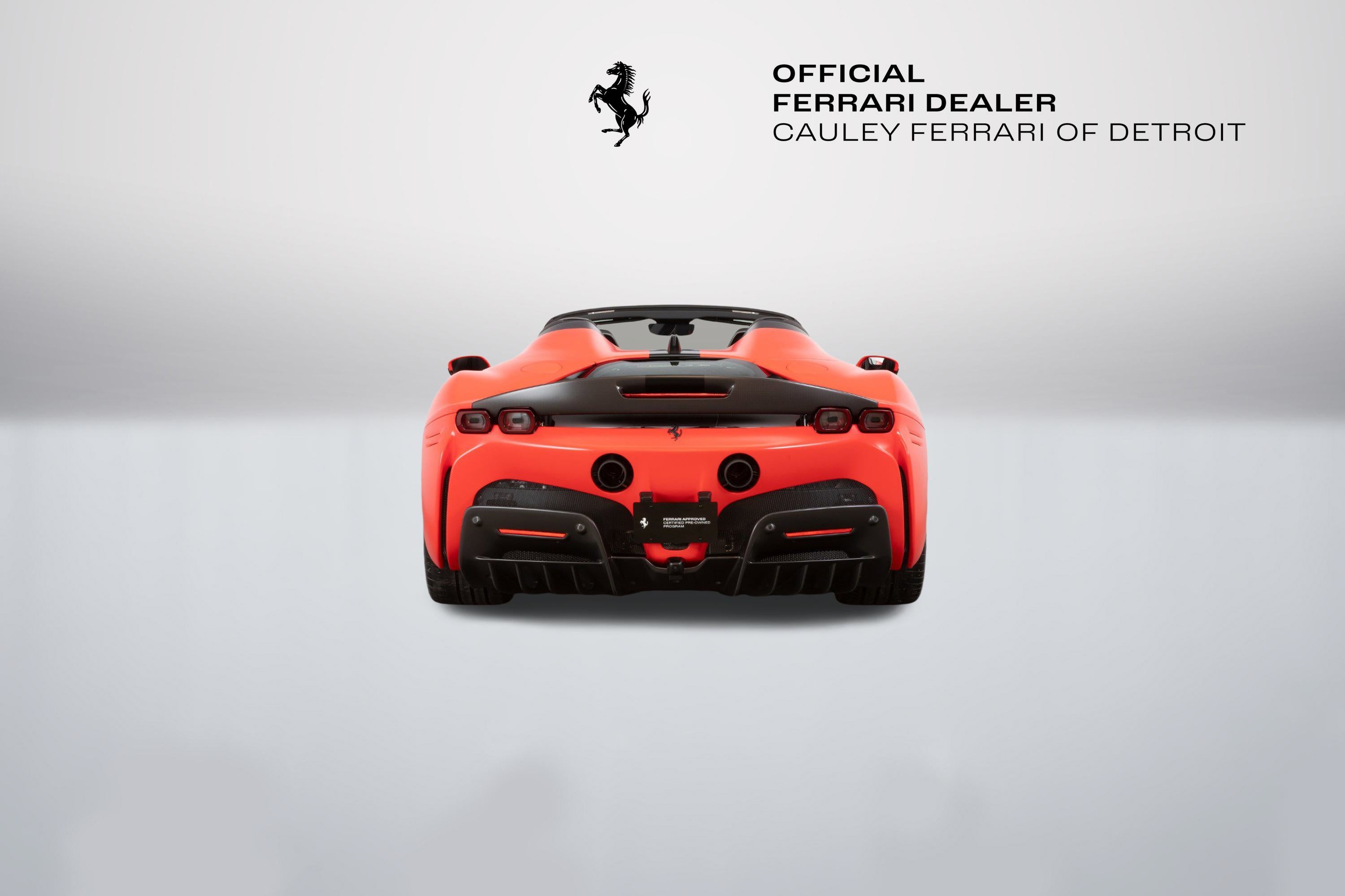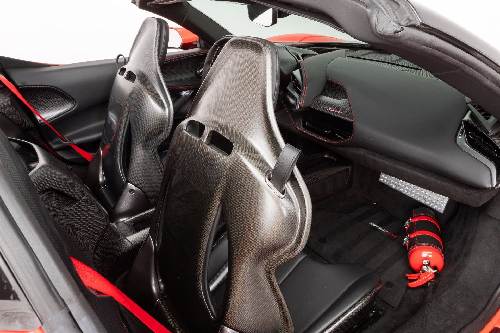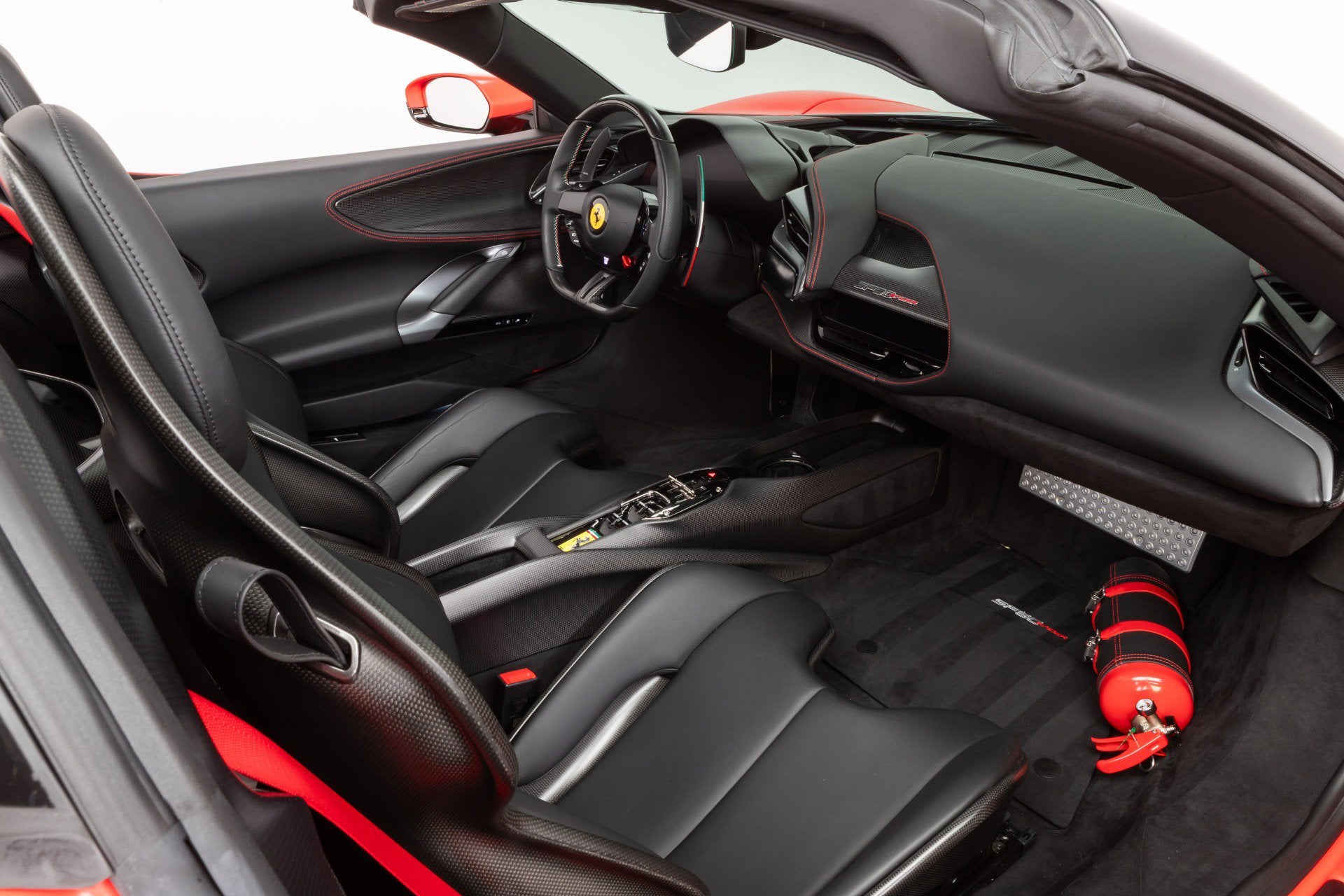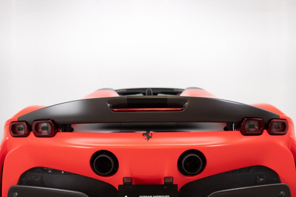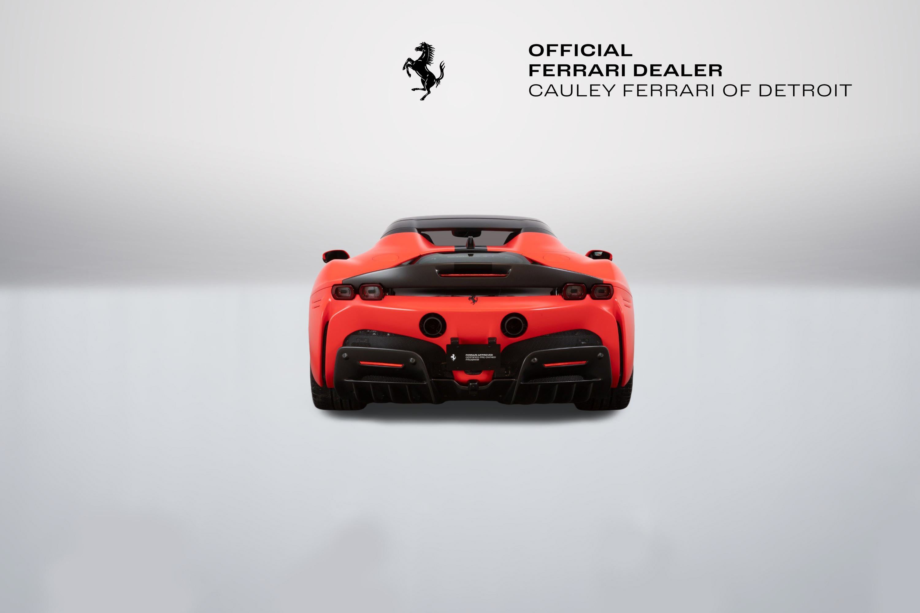 Cauley Ferrari of Detroit is thrilled to offer you this one-of-one Assetto Fiorano-equipped 2022 SF90 Spider finished in Matte Rosso Formula 1 2019 with Matte Nero Livery over a Nero interior with Rosso Accents. This example came with a very high MSRP of $899,998 and is loaded with all the most highly sought-after options such as the Adaptive Headlight System, Suspension Lifter, Matte Black Wheels, Shields, JBL Premium Sound System, several exterior and interior Carbon Fiber options, and much more. The full options list can be seen below. This is being sold as a Ferrari-Certified pre-owned vehicle. The remaining factory warranty runs through 2/3/2026, and we are including a bumper to bumper Ferrari Factory Warranty Extension through 2/3/2028 as well. The seven-year free scheduled maintenance is good until 2/3/2030. Give us a call or stop by to take a closer look at this gorgeous SF90 Spider. Please ask us about our financing and leasing options available through Ferrari Financial Services (FFS). We can offer you monthly financing as far out as 84 months, Balloon financing up to 60 months, as well as both Open-End Leasing scenarios. FFS is available on all new and pre-owned Ferrari models. These flexible payment options really make getting into a Ferrari easier than ever before. Let us show you how. Give us a call at 248-538-9600 to set up an appointment for a closer look or stop by our showroom in West Bloomfield, MI. Factory Options: - Apple CarPlay - Roof painted in Matte Black - Black Brake Calipers - Special Exterior Carbon in Matte finish - Carbon Fiber Side Air Splitter - Engine Covers in Carbon Fiber - Carbon Fiber Rear Boot Trim - Rear Diffuser in Carbon Fiber - Carbon Fiber Underdoor Cover - Special Internal Carbon Fiber in Matte Finish - Carbon Fiber Driver Zone + LEDs - Upper Part of Center Console in Carbon Fiber - Carbon Fiber Front Luggage Compartment Area - Colored Inner Details in Rosso Ferrari - CIPN in Special Carbon Fiber - Leather/Alcantara Nero Mats - Colored Safety Belts in Rosso - CLTX in Special Carbon Fiber - CIZB in Special Carbon Fiber - Dash Inserts in Carbon Fiber - Dedication Plate in Silver - Tricolore Dreamline on F1 Paddles - Cavallino Stitched on Headrests in Rosso - Black Tailpipe Tips - Handy Fire Extinguisher - Advanced Front Driving Sign Camera - Carbon Fiber Front Spoiler - Assetto Fiorano Package - Special Internal Carbon Fiber Pack - Additional Colored Mats with logo - Steering Wheel with Tricolore Stitching - Scuderia Ferrari Shields - Front and Rear Parking Sensors - Special Matte Color - Rear Spoiler in Special Carbon Fiber - 20" Dark Forge Wheels in Matte Black - Carbon Fiber Racing Seats - Size Large - Premium Hi-Fi JBL Sound System - Special Equipment - CEIS in Special Carbon Fiber - Colored Special Stitching in Rosso - Titanium Wheel Bolts Special Equipment: - Matte Rosso Formula 1 2019 with Matte Painted Roof and Livery Extras: - Basic PPF Kit - Front Clip of Car The SF90 Spider is an open-top variant of the SF90 Stradale equipped with a retractable hardtop. It is the first Ferrari plug-in hybrid car offered as an open-top variant. It is also the most powerful non-limited convertible car in the world, having a combined power of 1,000 PS. The previous record was held by the Ferrari 812 GTS. Performance is very similar to the closed-body variant and on par with the La Ferrari Aperta. The Assetto Fiorano is a racing modification pack for the SF90 Stradale or Spider. It uses racing-derived Multimatic shocks and lightweight carbon fiber parts embedded in the door panels and underbody. The Assetto Fiorano also employs a lightweight titanium exhaust system. These measures save 30 kg (66 lb) compared to the standard SF90 Stradale.