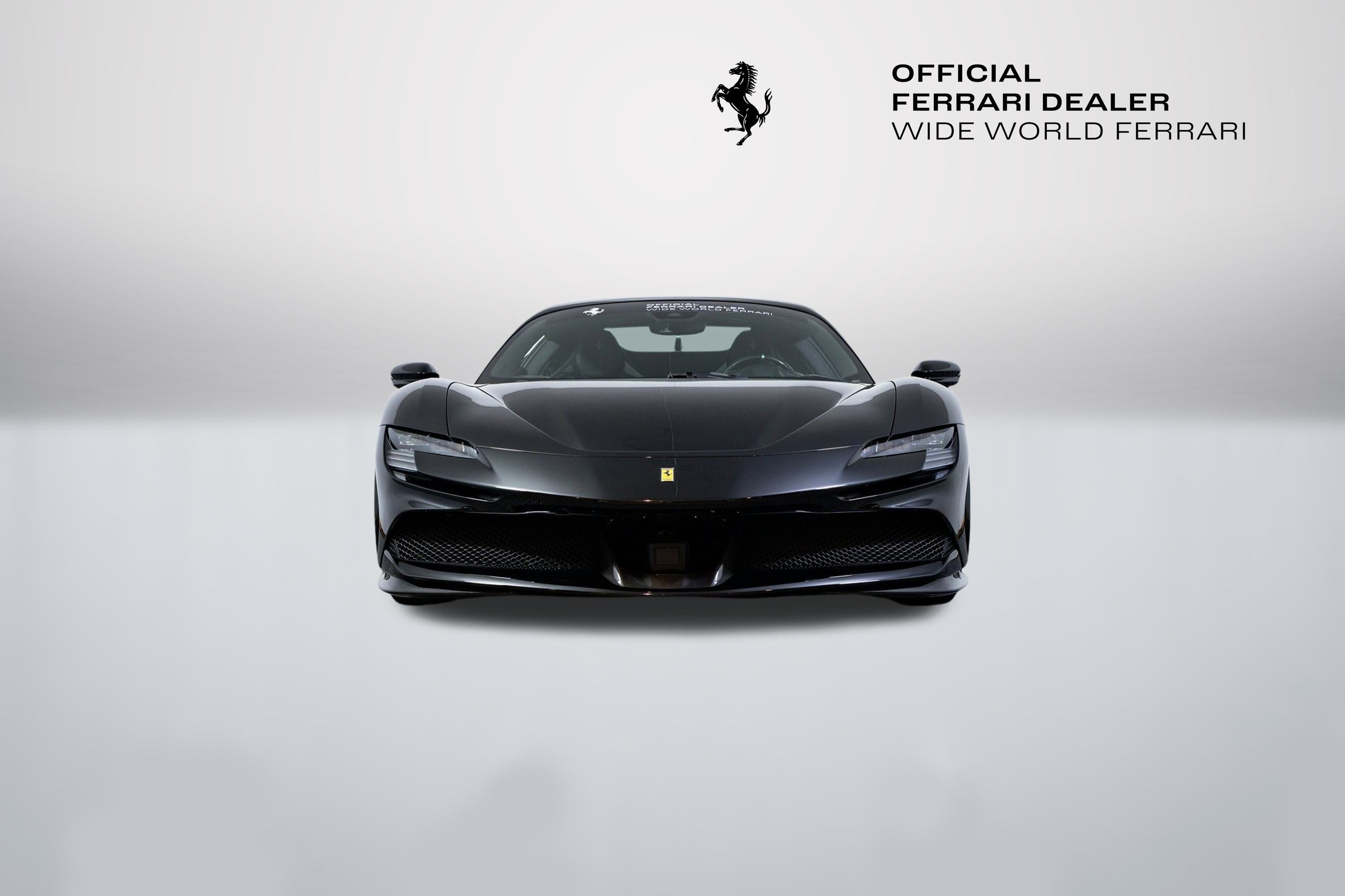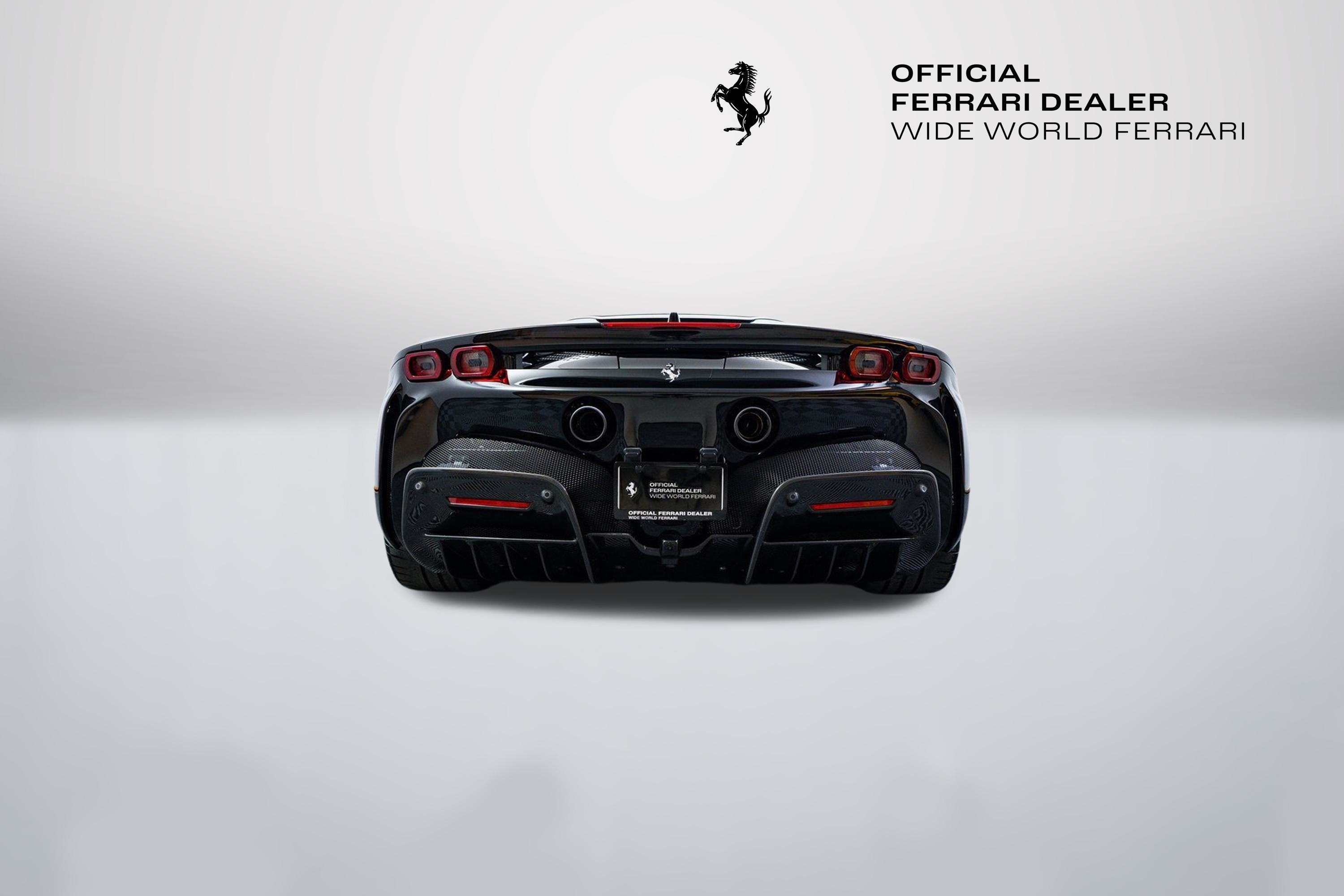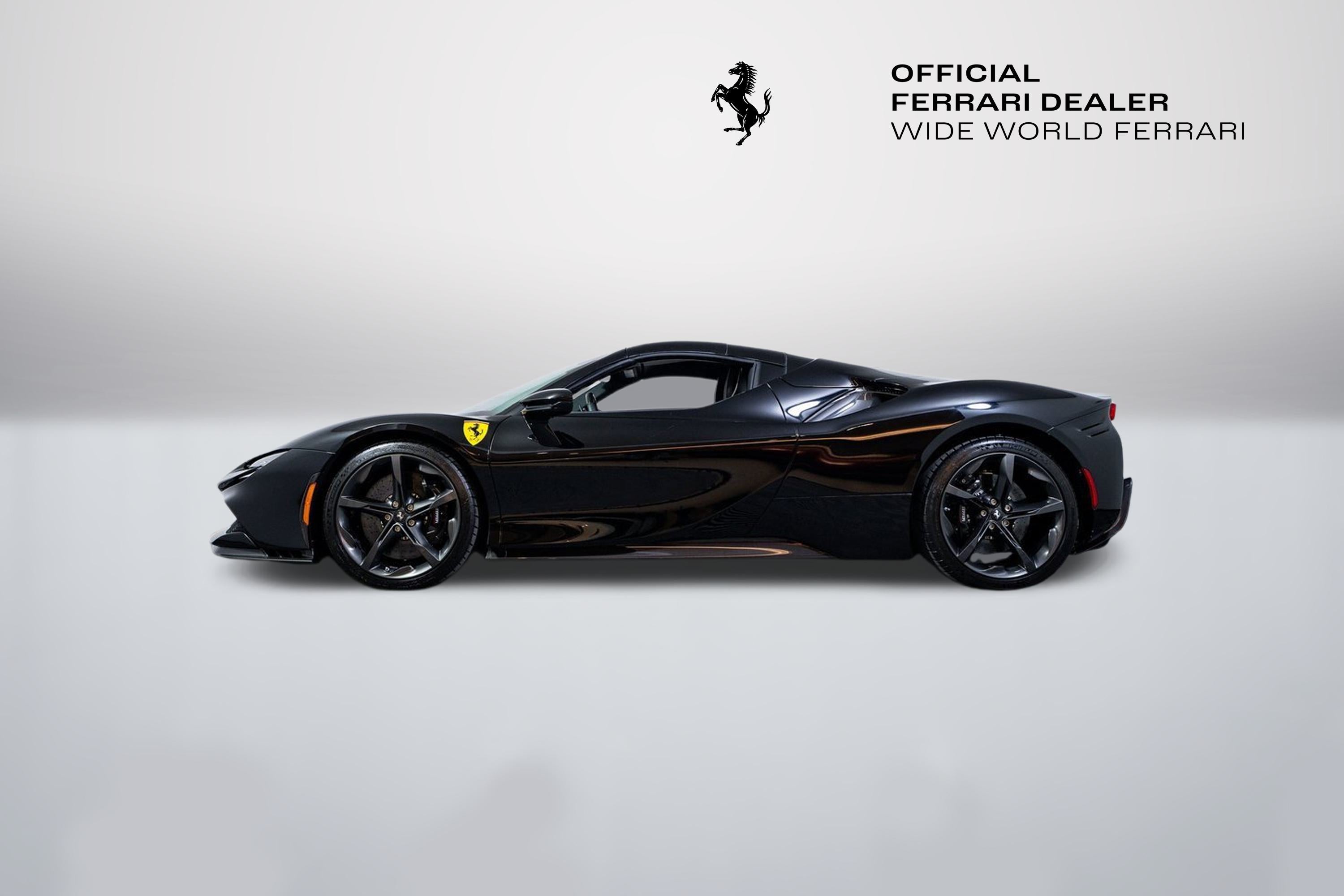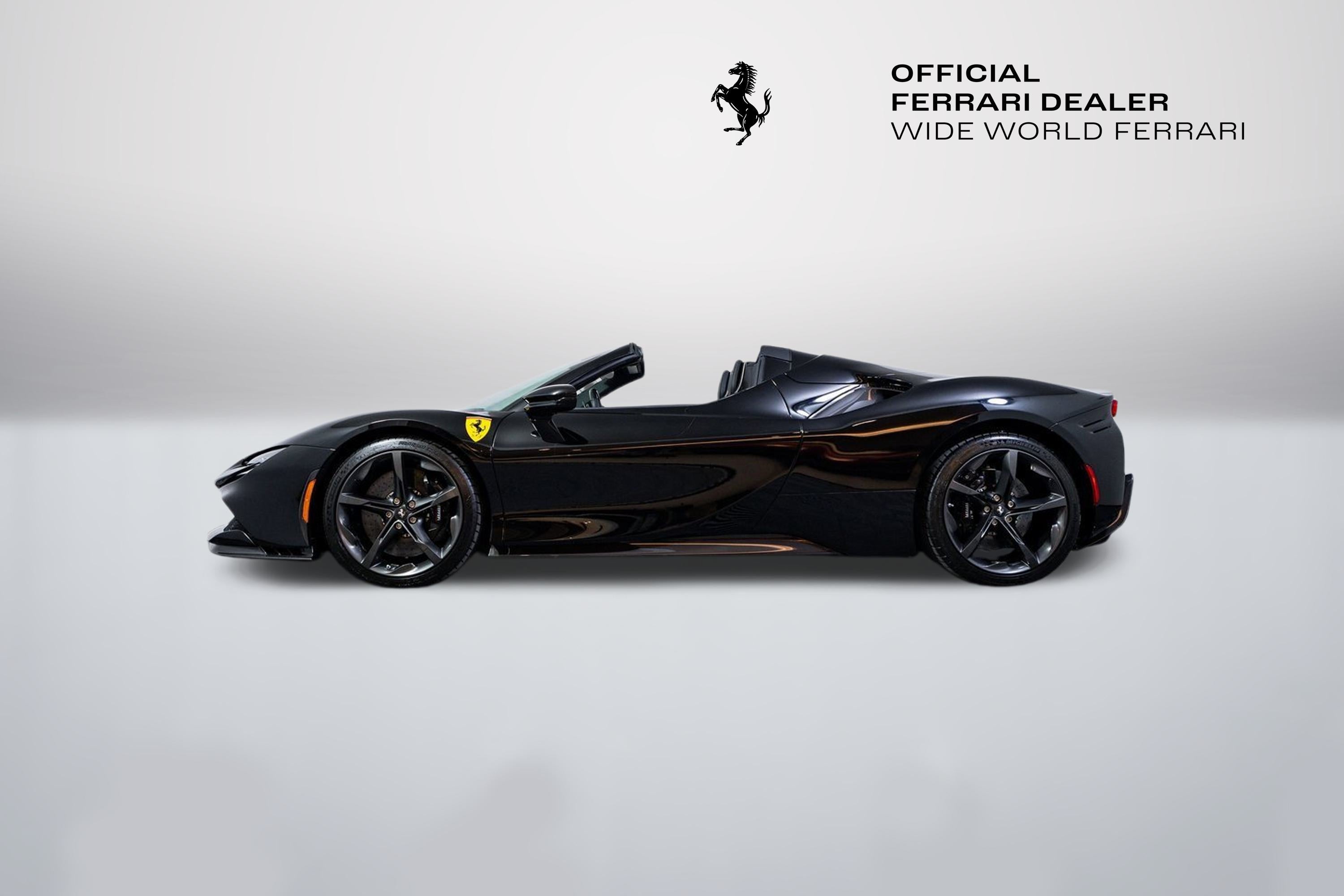 Wide World Ferrari is proud to present this virtually new 2024 Ferrari SF90 Spider, a breathtaking expression of Ferraris flagship open-top hybrid supercar. Showing just 134 miles, this one-owner example features a clean Carfax and an original MSRP of nearly $713,000, reflecting an exceptionally curated factory specification from Ferrari's Atelier studio in NYC. Finished in Nero, the exterior exudes stealth, sophistication, and unmistakable presence. The deep black finish is elevated by an extensive selection of gloss finish carbon fibre elements, including the lateral engine air intakes, front and lateral spoilers, exterior kickplates, under-door trim, and rear carbon fibre diffuser, all enhancing both aerodynamic performance and visual drama. Black ceramic coated tailpipes complement the darkened aesthetic, while 20 forged wheels in Canna di Fucile paired with titanium wheel studs deliver an aggressive, motorsport-inspired stance. Completing the exterior are carbon fibre wheel center caps and the iconic Scuderia Ferrari airbrushed shields, adding a bespoke Atelier-level touch. The cabin is a striking fusion of modern luxury and advanced performance design. Upholstered in Metallic Extrarange Leather Pelle Argento Metallizzato, the interior is contrasted beautifully by a Nero leather headliner, Argento Scuro special contrast stitching, and refined detailing throughout. Carbon fibre racing seats with seat height adjustment provide exceptional support while reinforcing the SF90s Formula 1inspired character. The driver-focused cockpit is finished with extensive carbon fibre, including gloss carbon dashboard accents and the carbon fibre steering wheel with integrated LED shift lights, placing race-bred technology directly at the drivers fingertips. This SF90 Spider is equipped with an impressive suite of advanced technology and driver-assistance features, including Adaptive Cruise Control with front radar, Blind Spot Detection with rear radar, Advanced Front Driving Camera, suspension lifter, electrochromic exterior mirrors, and Apple CarPlay, delivering everyday usability without compromising the cars extraordinary performance capabilities. Additionally, the car is Ferrari Approved and eligible for up to a 2-year Ferrari Certification warranty (available at an additional charge). This car benefits from an active warranty until Oct 2027 and complimentary maintenance until Oct 2031. As the only 4-Time Cavallino Winning Ferrari Center in the tri-state area and one of the first Ferrari Centers in North America, we pride ourselves on exceptional service. We assist with all aspects of your purchase, including trade-ins, shipping, registration, non-reported financing, and customizations. Conveniently located in Rockland County, just under 30 miles from Manhattan. For more information, email us at ferrarivip@newcountry.com or call 845-682-0129.