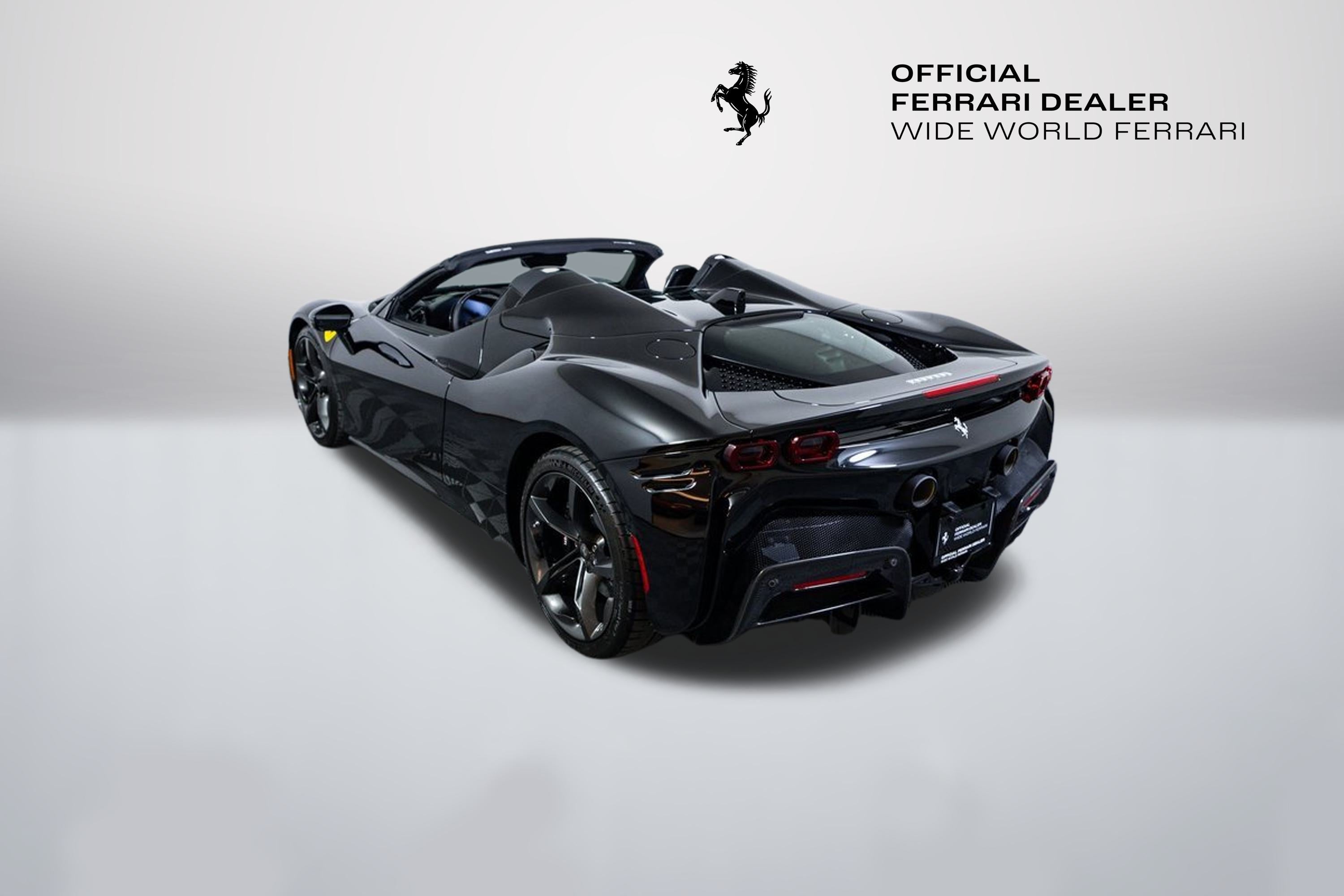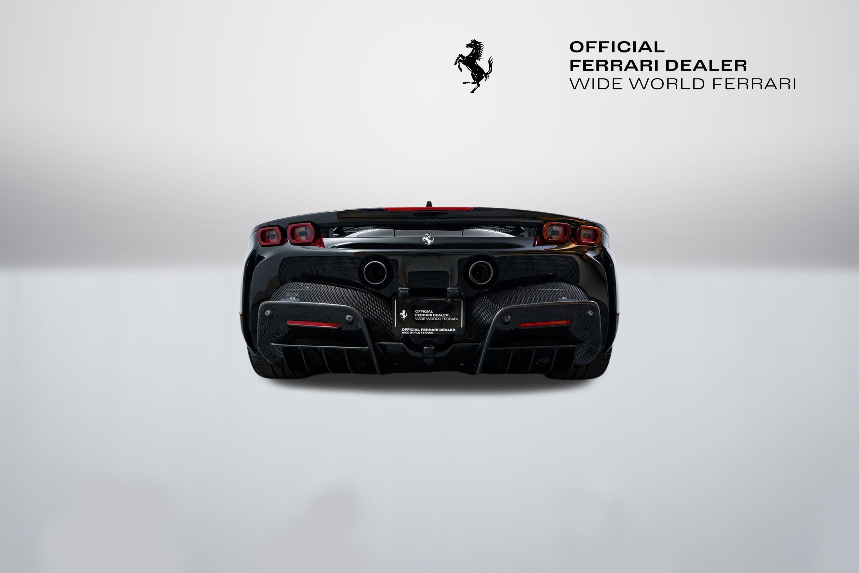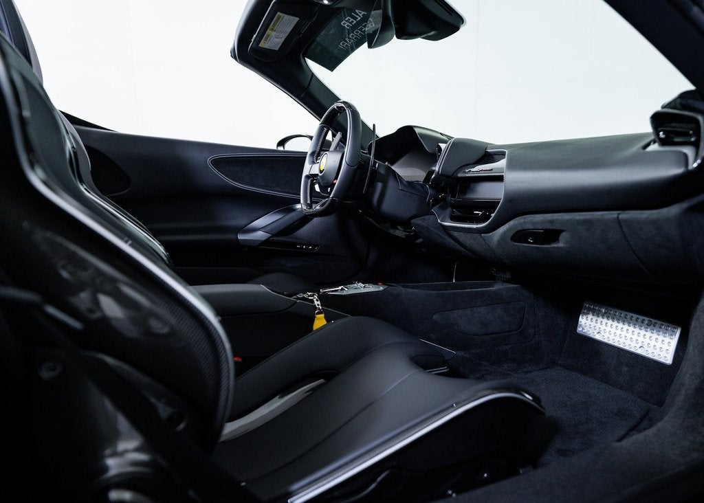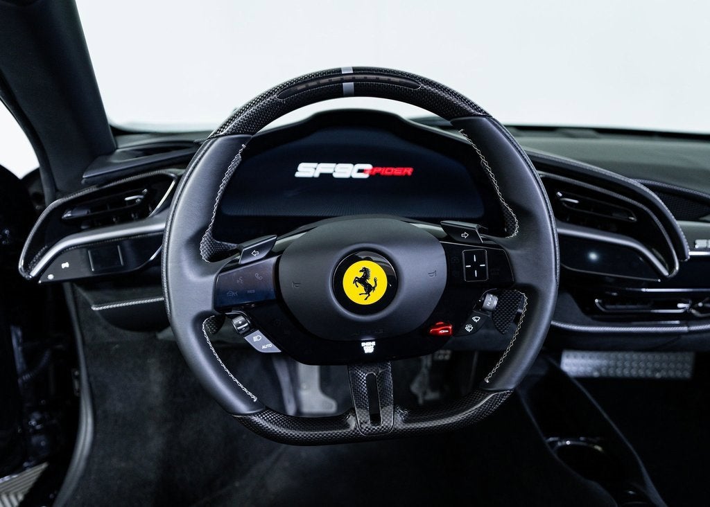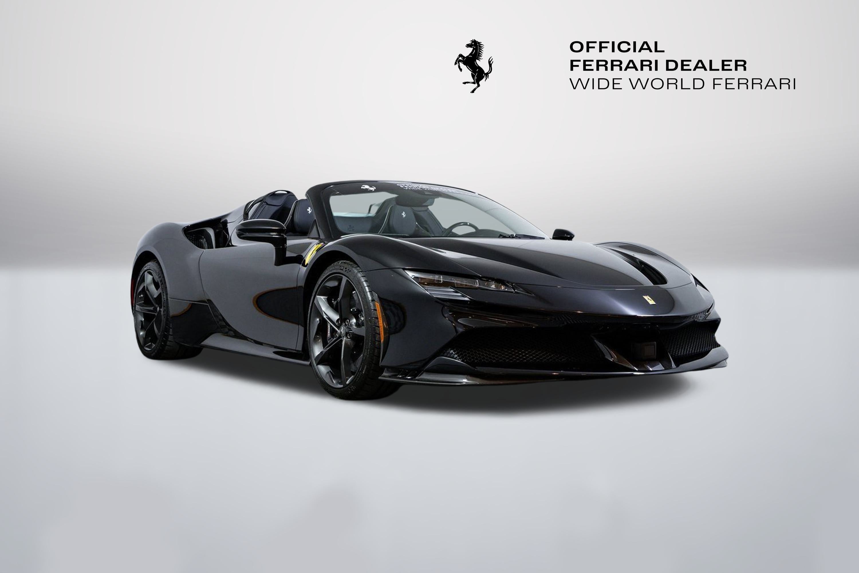 Wide World Ferrari is proud to present this virtually new 2024 Ferrari SF90 Spider, a breathtaking expression of Ferraris flagship open-top hybrid supercar. Showing just 134 miles, this one-owner example features a clean Carfax and an original MSRP of nearly $713,000, reflecting an exceptionally curated factory specification from Ferrari's Atelier studio in NYC. Finished in Nero, the exterior exudes stealth, sophistication, and unmistakable presence. The deep black finish is elevated by an extensive selection of gloss finish carbon fibre elements, including the lateral engine air intakes, front and lateral spoilers, exterior kickplates, under-door trim, and rear carbon fibre diffuser, all enhancing both aerodynamic performance and visual drama. Black ceramic coated tailpipes complement the darkened aesthetic, while 20 forged wheels in Canna di Fucile paired with titanium wheel studs deliver an aggressive, motorsport-inspired stance. Completing the exterior are carbon fibre wheel center caps and the iconic Scuderia Ferrari airbrushed shields, adding a bespoke Atelier-level touch. The cabin is a striking fusion of modern luxury and advanced performance design. Upholstered in Metallic Extrarange Leather Pelle Argento Metallizzato, the interior is contrasted beautifully by a Nero leather headliner, Argento Scuro special contrast stitching, and refined detailing throughout. Carbon fibre racing seats with seat height adjustment provide exceptional support while reinforcing the SF90s Formula 1inspired character. The driver-focused cockpit is finished with extensive carbon fibre, including gloss carbon dashboard accents and the carbon fibre steering wheel with integrated LED shift lights, placing race-bred technology directly at the drivers fingertips. This SF90 Spider is equipped with an impressive suite of advanced technology and driver-assistance features, including Adaptive Cruise Control with front radar, Blind Spot Detection with rear radar, Advanced Front Driving Camera, suspension lifter, electrochromic exterior mirrors, and Apple CarPlay, delivering everyday usability without compromising the cars extraordinary performance capabilities. Additionally, the car is Ferrari Approved and eligible for up to a 2-year Ferrari Certification warranty (available at an additional charge). This car benefits from an active warranty until Oct 2027 and complimentary maintenance until Oct 2031. As the only 4-Time Cavallino Winning Ferrari Center in the tri-state area and one of the first Ferrari Centers in North America, we pride ourselves on exceptional service. We assist with all aspects of your purchase, including trade-ins, shipping, registration, non-reported financing, and customizations. Conveniently located in Rockland County, just under 30 miles from Manhattan. For more information, email us at ferrarivip@newcountry.com or call 845-682-0129.