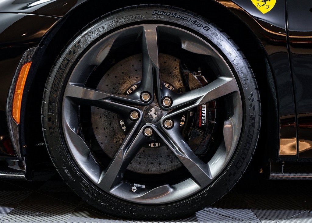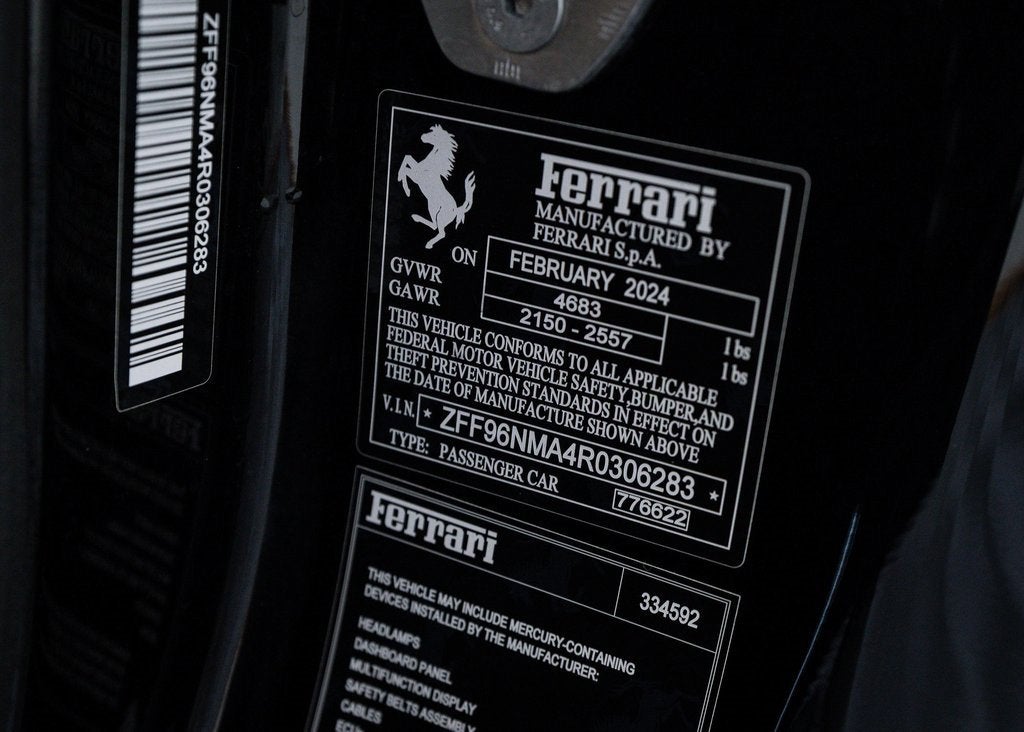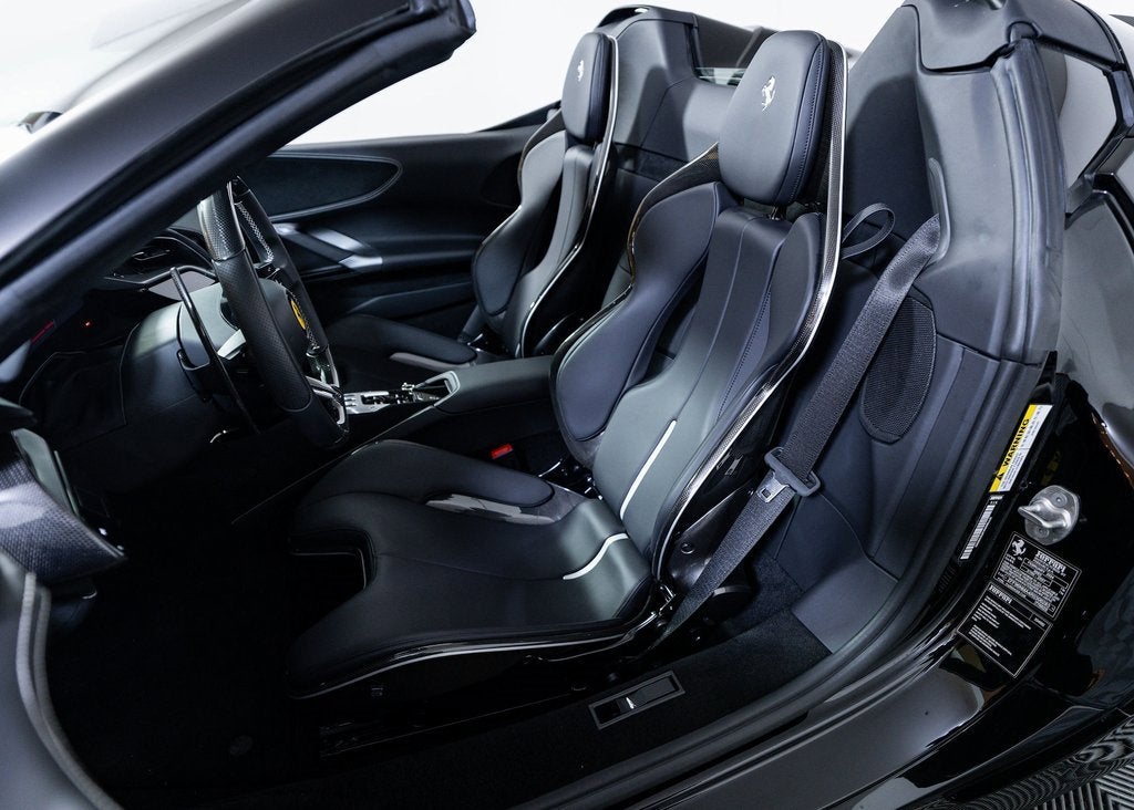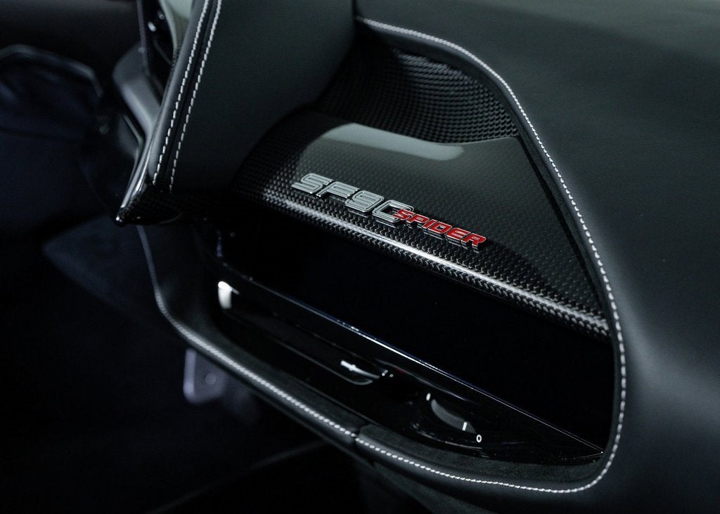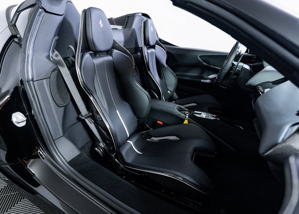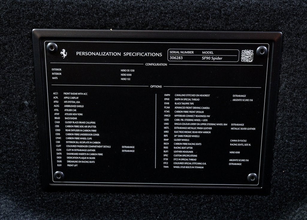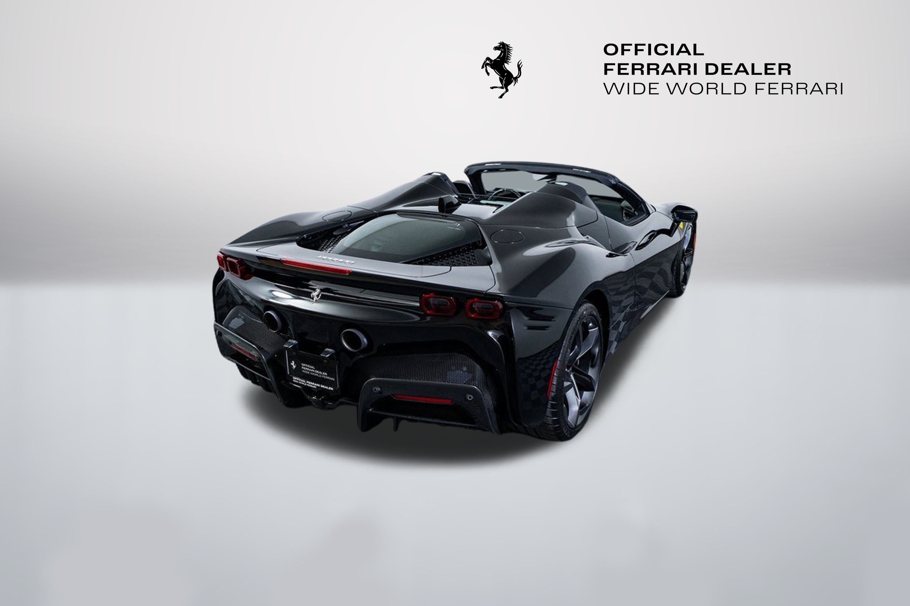 Wide World Ferrari is proud to present this virtually new 2024 Ferrari SF90 Spider, a breathtaking expression of Ferraris flagship open-top hybrid supercar. Showing just 134 miles, this one-owner example features a clean Carfax and an original MSRP of nearly $713,000, reflecting an exceptionally curated factory specification from Ferrari's Atelier studio in NYC. Finished in Nero, the exterior exudes stealth, sophistication, and unmistakable presence. The deep black finish is elevated by an extensive selection of gloss finish carbon fibre elements, including the lateral engine air intakes, front and lateral spoilers, exterior kickplates, under-door trim, and rear carbon fibre diffuser, all enhancing both aerodynamic performance and visual drama. Black ceramic coated tailpipes complement the darkened aesthetic, while 20 forged wheels in Canna di Fucile paired with titanium wheel studs deliver an aggressive, motorsport-inspired stance. Completing the exterior are carbon fibre wheel center caps and the iconic Scuderia Ferrari airbrushed shields, adding a bespoke Atelier-level touch. The cabin is a striking fusion of modern luxury and advanced performance design. Upholstered in Metallic Extrarange Leather Pelle Argento Metallizzato, the interior is contrasted beautifully by a Nero leather headliner, Argento Scuro special contrast stitching, and refined detailing throughout. Carbon fibre racing seats with seat height adjustment provide exceptional support while reinforcing the SF90s Formula 1inspired character. The driver-focused cockpit is finished with extensive carbon fibre, including gloss carbon dashboard accents and the carbon fibre steering wheel with integrated LED shift lights, placing race-bred technology directly at the drivers fingertips. This SF90 Spider is equipped with an impressive suite of advanced technology and driver-assistance features, including Adaptive Cruise Control with front radar, Blind Spot Detection with rear radar, Advanced Front Driving Camera, suspension lifter, electrochromic exterior mirrors, and Apple CarPlay, delivering everyday usability without compromising the cars extraordinary performance capabilities. Additionally, the car is Ferrari Approved and eligible for up to a 2-year Ferrari Certification warranty (available at an additional charge). This car benefits from an active warranty until Oct 2027 and complimentary maintenance until Oct 2031. As the only 4-Time Cavallino Winning Ferrari Center in the tri-state area and one of the first Ferrari Centers in North America, we pride ourselves on exceptional service. We assist with all aspects of your purchase, including trade-ins, shipping, registration, non-reported financing, and customizations. Conveniently located in Rockland County, just under 30 miles from Manhattan. For more information, email us at ferrarivip@newcountry.com or call 845-682-0129.