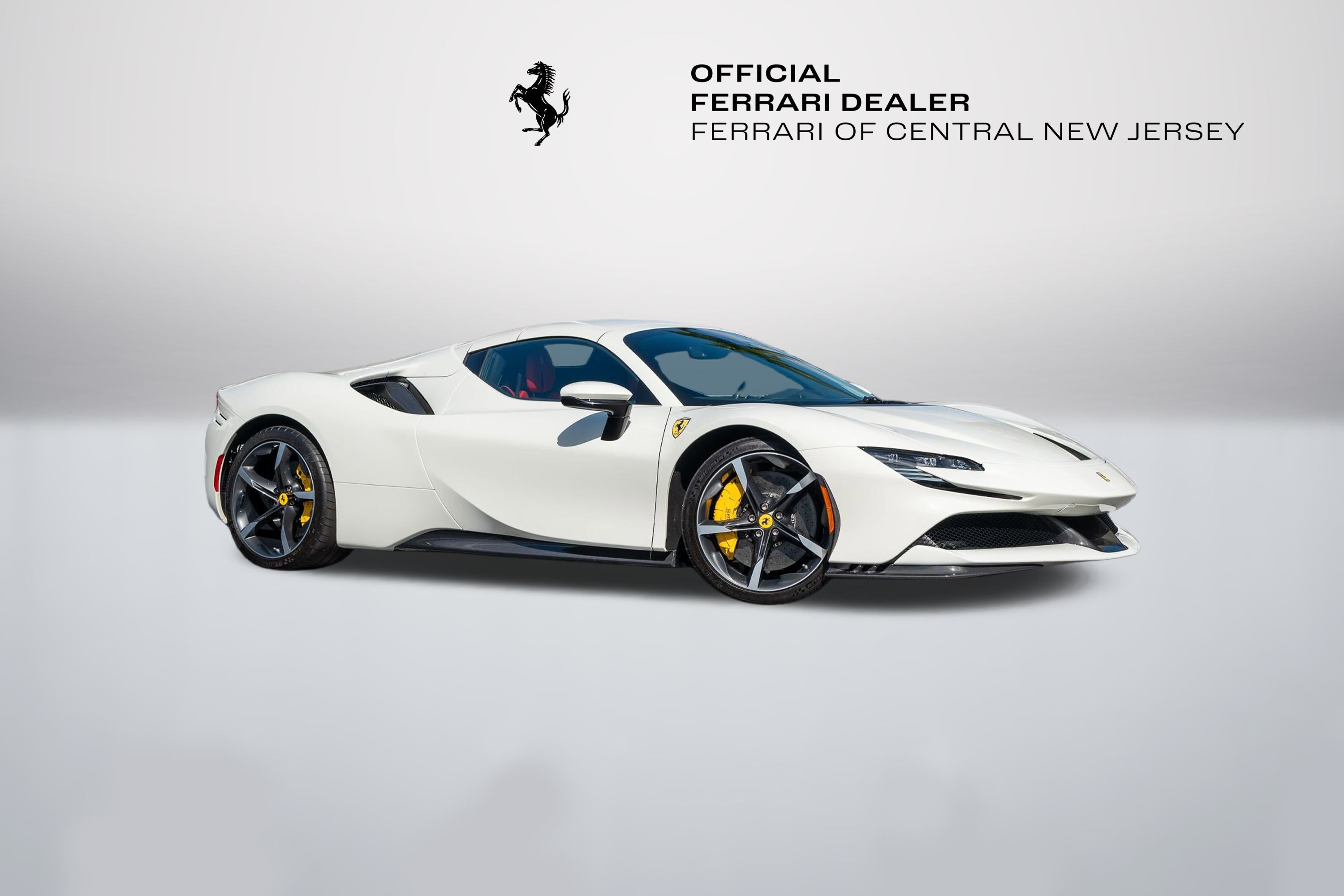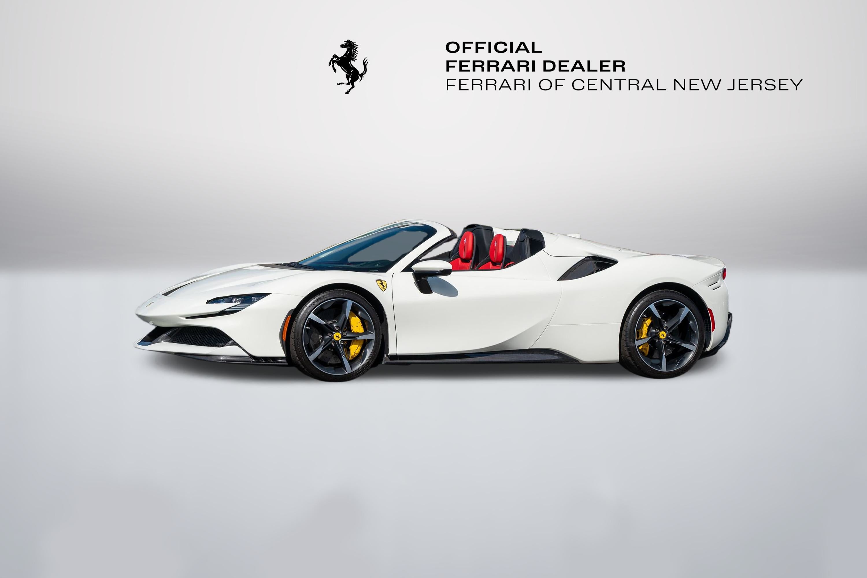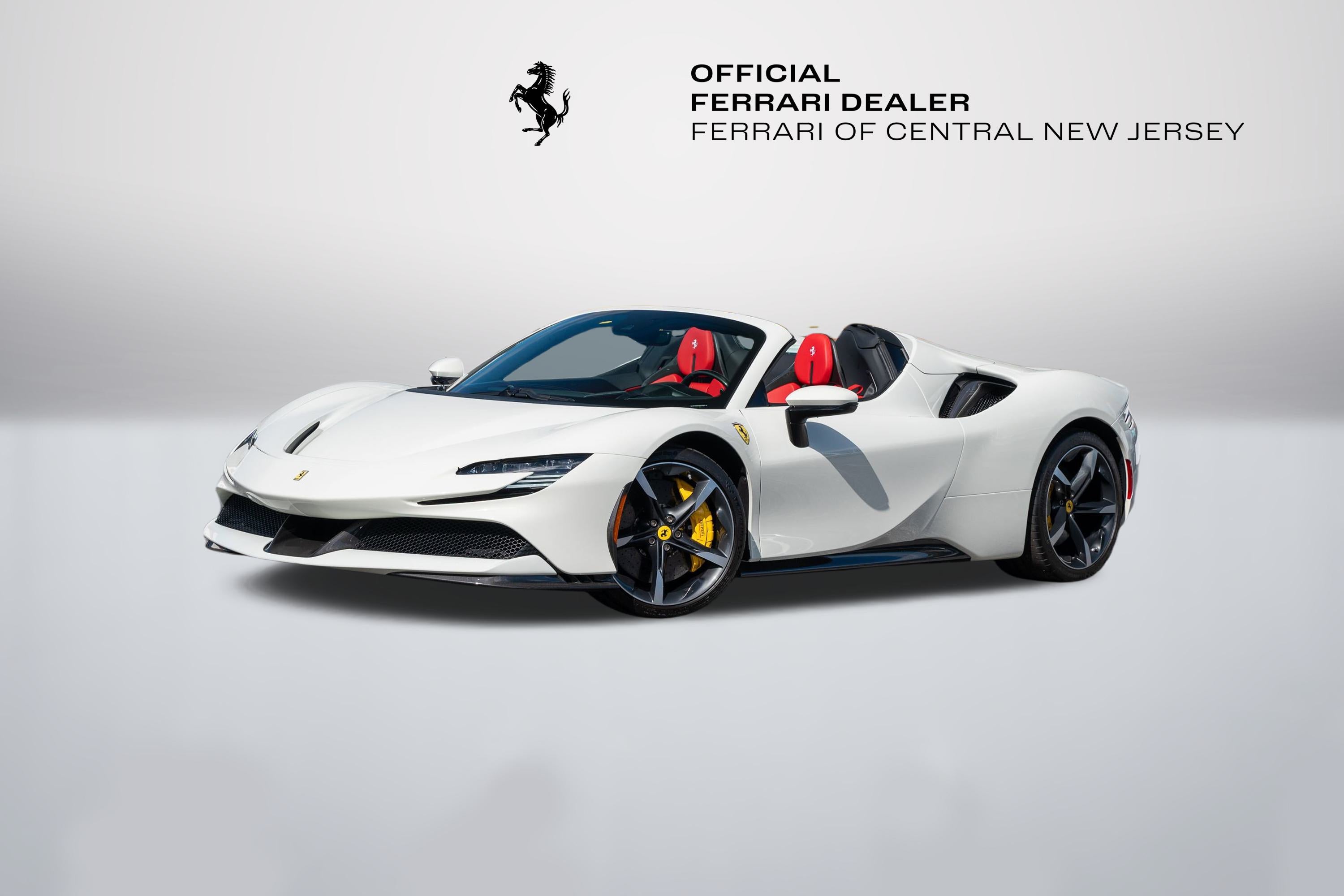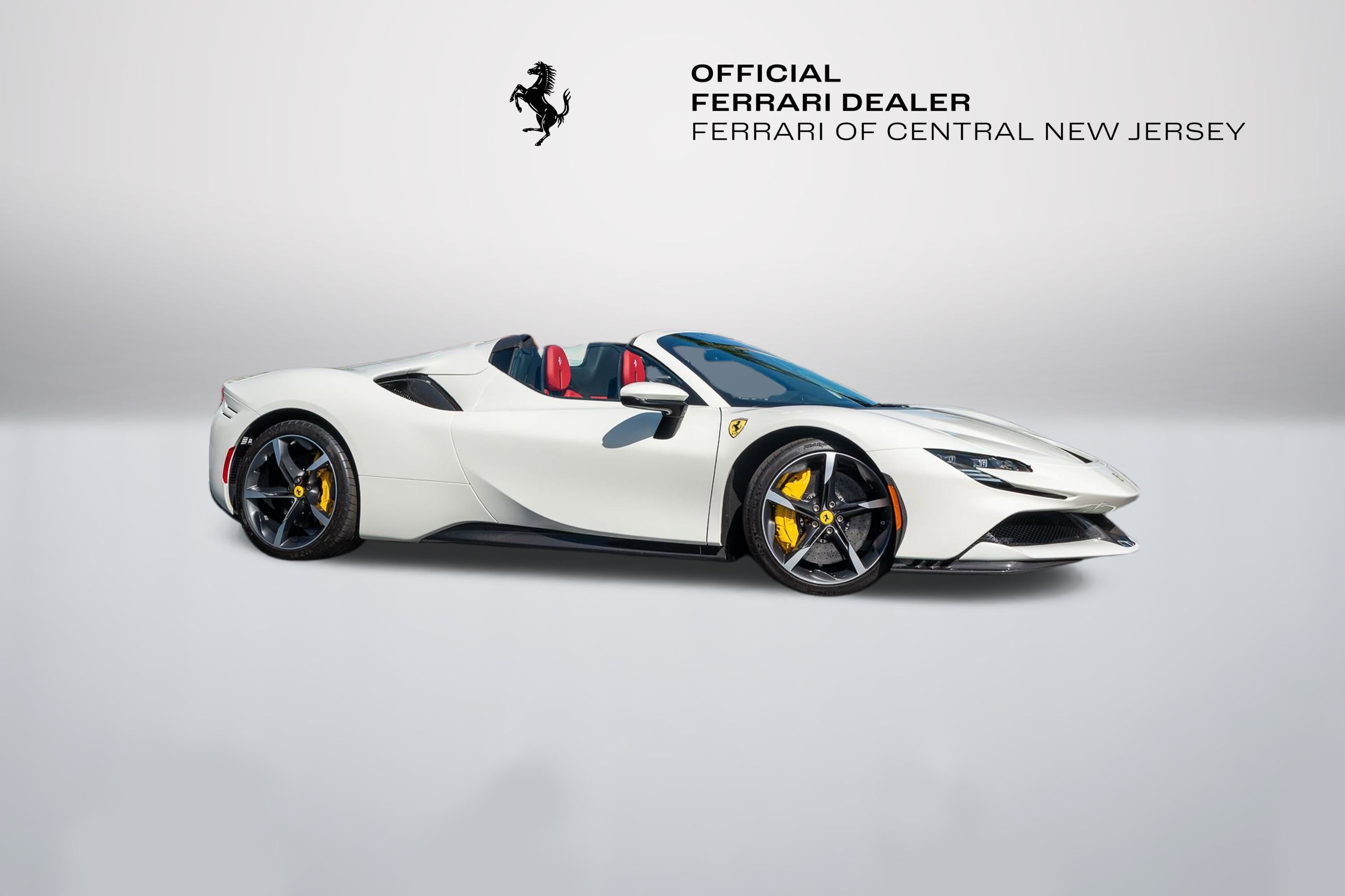 FERRARI OF CENTRAL NEW JERSEY IS PROUD TO PRESENT THIS BEAUTIFUL 2022 Ferrari SF90 Spider Bianco Avus with Rosso Ferrari Leather interior. Genuine Maintenance Service 7 years: 11/22/2028 36 months factory warranty: 11/22/2024 (Expired) Full Spec: External colors: BIANCO AVUS 100 Internal colors: ROSSO FERRARI 130421 Carpets colors: NERO 152 (BLACK) FORGED WHEELS GR.CORSA DIAMOND YELLOW BRAKE CALIPERS TITANIUM WHEEL BOLTS FRONT BUMPER INSERT CARBON FIB CARBON FIBRE UNDERDOOR COVER CARBON FIBRE SIDE AIR SPLITTER REAR DIFFUSER IN CARBON FIBRE SUSPENSION LIFTER 'SCUDERIA FERRARI' SHIELDS BLACK CERAMIC EXHAUST PIPES ADVANCED FRONT DRIVING CAMERA COLOURED SPECIAL STITCHING: FILO SPECIALE BIANCO 2000 COLOR LEATHER SEATS STRIPES: NERO 8500 (BLACK) SPECIFIC DESIGN RACING SEATS: SEDILI TAGLIA LARGE HORSE STITCHED ON HEADREST: BIANCO (WHITE) 2000 RACING SEAT LIFTER CARBON FIBRE DASHBOARD INSERTS CARBON FIBRE UPPER TUNNEL TRIM CARBON FIBRE DRIVER ZONE+LEDS USER MANUAL BOOKLET: LIBRETTI VETTURA IN INGLESE AFS SYSTEM AMERICA MERCATO Welcome to Ferrari of Central New Jersey, where the essence of Ferrari's spirit and excellence is at the heart of everything we do. As the official Ferrari dealership in New Jersey, we are dedicated to providing an unmatched automotive experience to our valued clients throughout the NYC metro area and beyond. Whether you visit our showroom in person or explore our offerings virtually, you'll discover a diverse inventory that includes the latest Ferrari models, timeless classics, and a curated selection of high-end vehicles from other prestigious automakers. Our state-of-the-art, authorized service facility is designed to keep your Ferrari in peak condition, ensuring an optimal driving experience for years to come. We offer the convenience of complimentary vehicle pick-up and drop-off in a fully enclosed trailer, making your service experience as seamless as possible. While you're here, visit our boutique to browse a range of genuine Ferrari accessories, shop the latest Ferrari styles for gifts and apparel, and enjoy an espresso or refreshment. Our knowledgeable sales consultants are eager to guide you through the Ferrari culture, sharing insights about exclusive upcoming events and Ferrari activations. Take a tour of the Atelier, our dedicated design studio, where you can personalize every detail of your new Ferrari on order. Explore an endless array of paint colors and interior options to create a vehicle that is uniquely yours. We look forward to welcoming you and guiding you through an immersive experience in the Ferrari lifestyle and of this legendary brand. For any inquiries, please contact us at Ferrarisales@ferraricnj.com or call 732-248-9100.