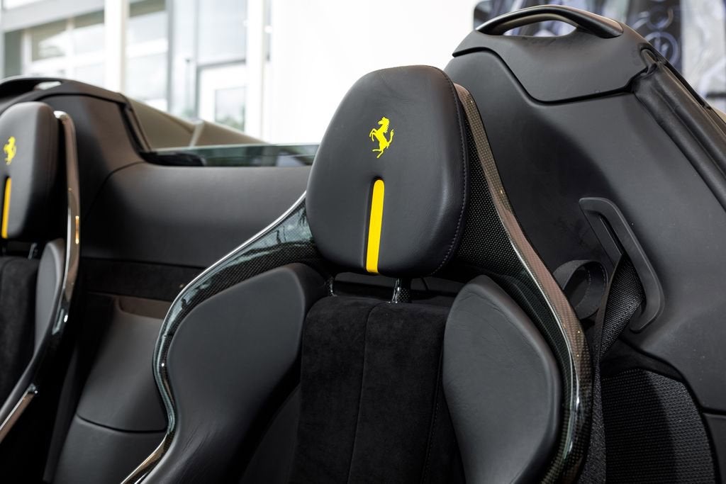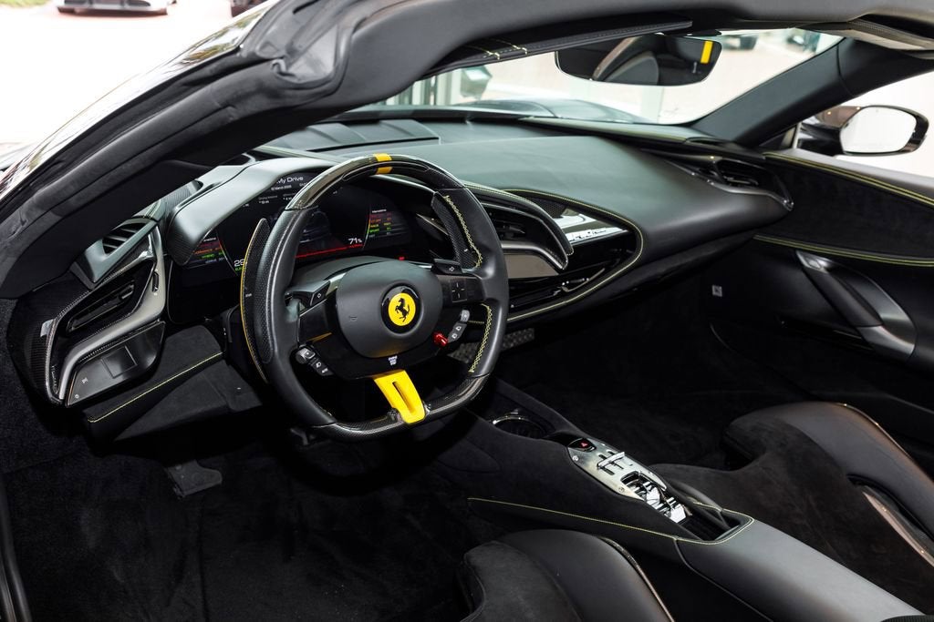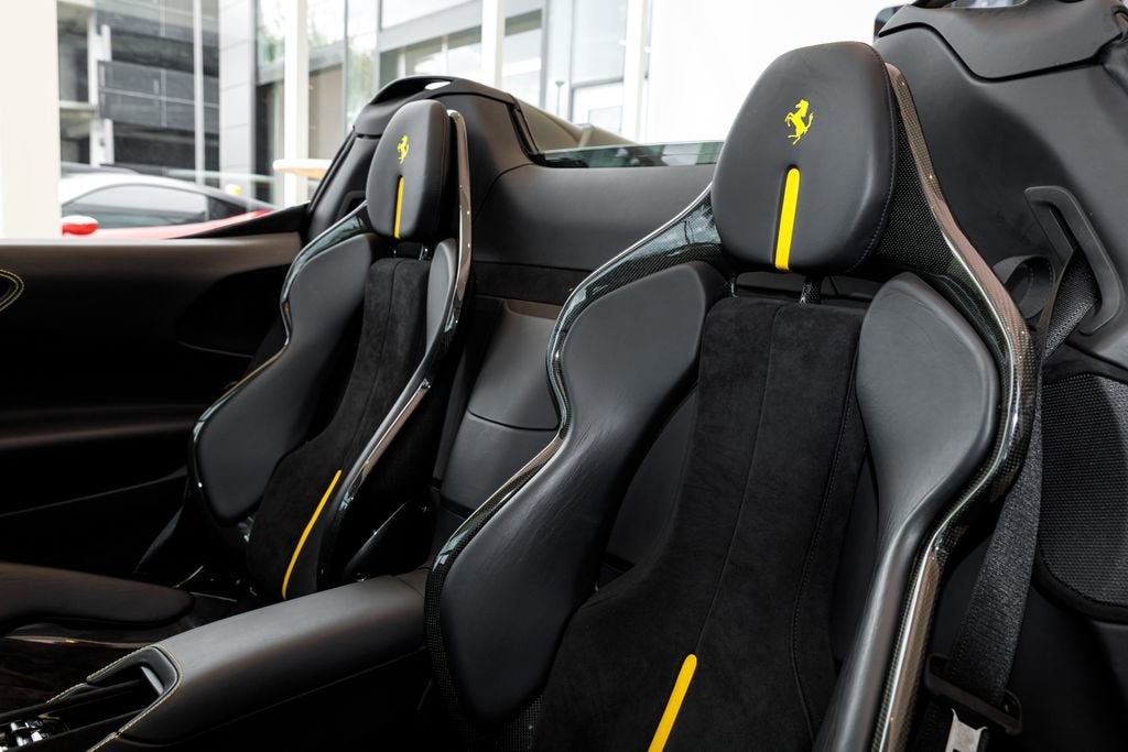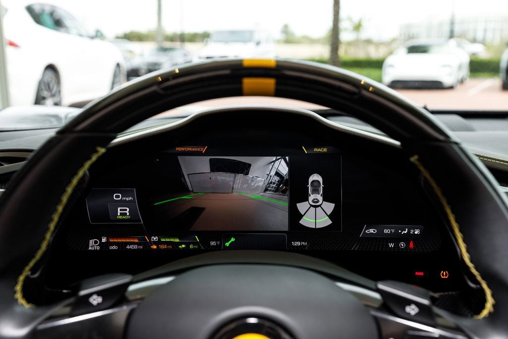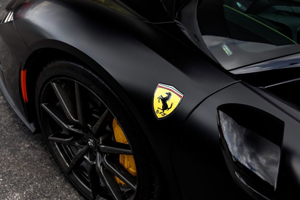 Factory options: Exterior color - Nero Interior color - Nero Carpet color - Nero -Front and rear suspension lift -Giallo Modena brake calipers -Gloss finish carbon fibre lateral engine air intakes -Gloss finish carbon fibre exterior kickplate -Carbon fibre wheel centre cap -Black Ceramic Coated Tailpipes -"Scuderia Ferrari" shields on fenders -Titanium wheel studs -Leather seat piping -Centre part of seat in color-matched Alcantara -Carbon fibre trim driver zone and LED shift indicators on steering wheel -Interior details in special colored trim -Gloss finish carbon fibre dashboard accents -Dream line F1 Paddles - 1 Color -Embroidered Cavallino emblem on headrest -1 Color Livry Up Arch Steering Wheel + Low Trim Painted -Carbon fibre racing seats -Manual ratchet seat height adjustment mechanism -Special stitching in color of customer's choice -Apple CarPlay -Advanced Front Driving Camera -Premium Hi-Fi system For more information or to schedule a test drive, contact us today!