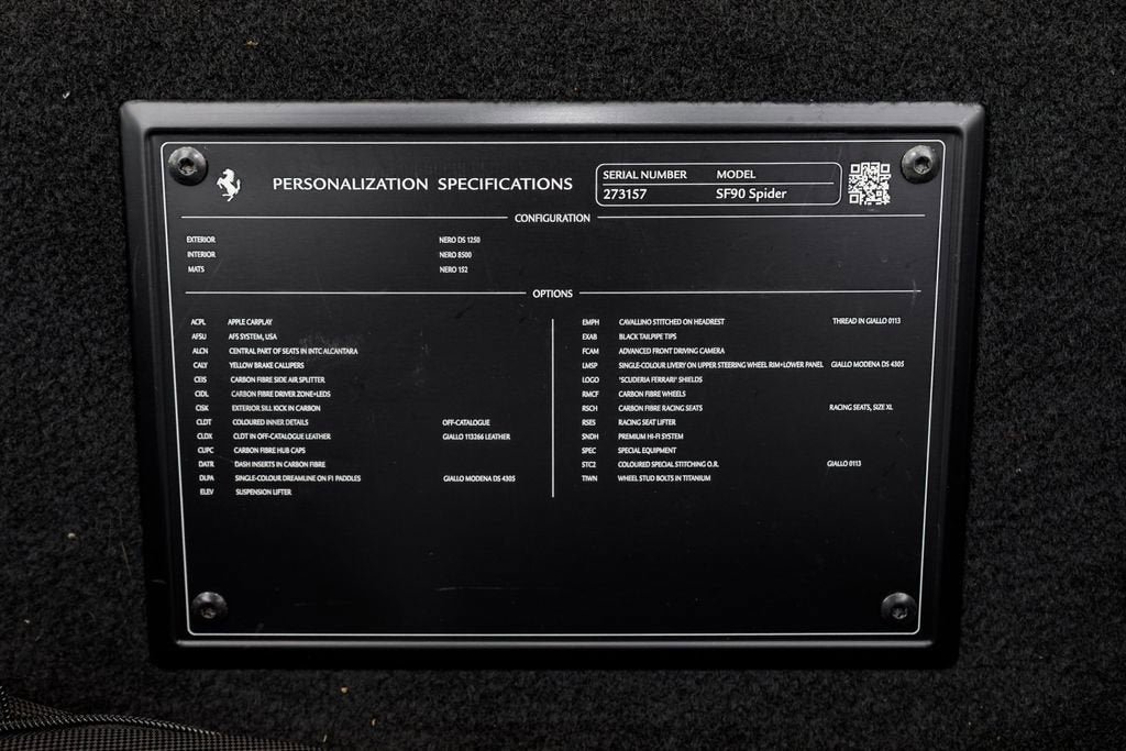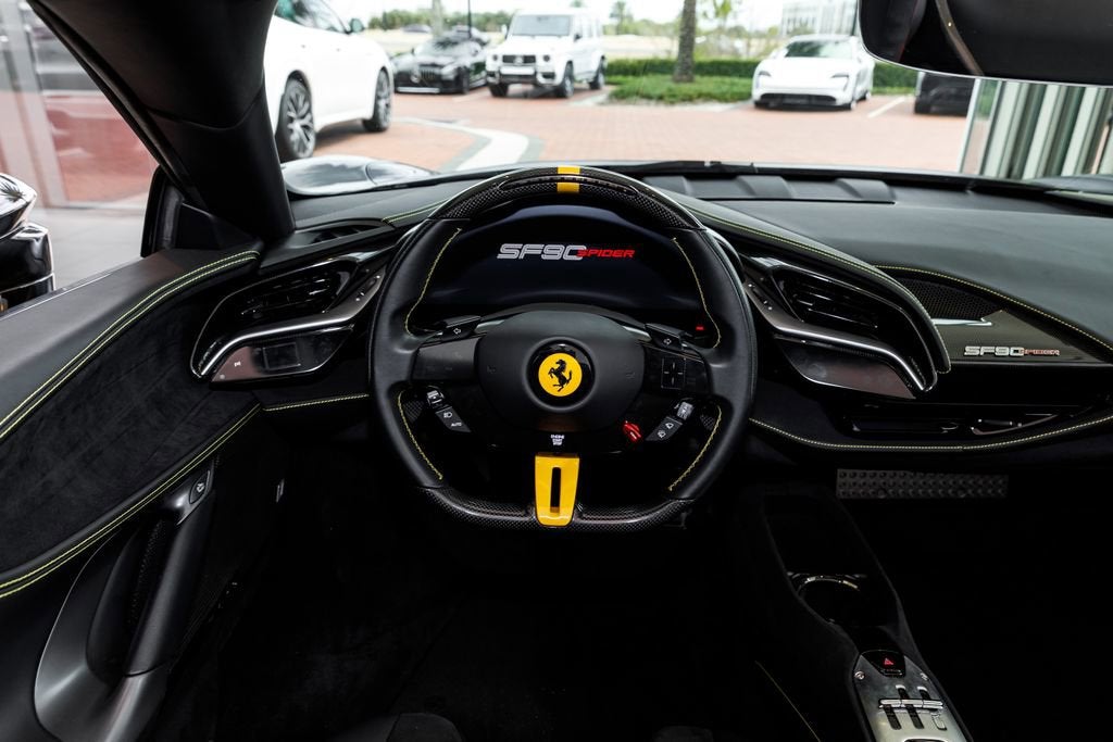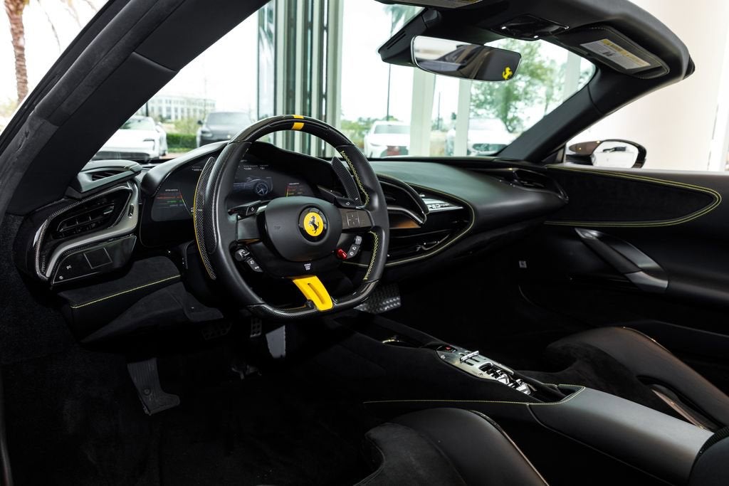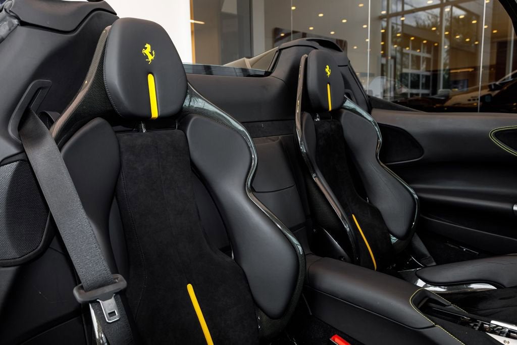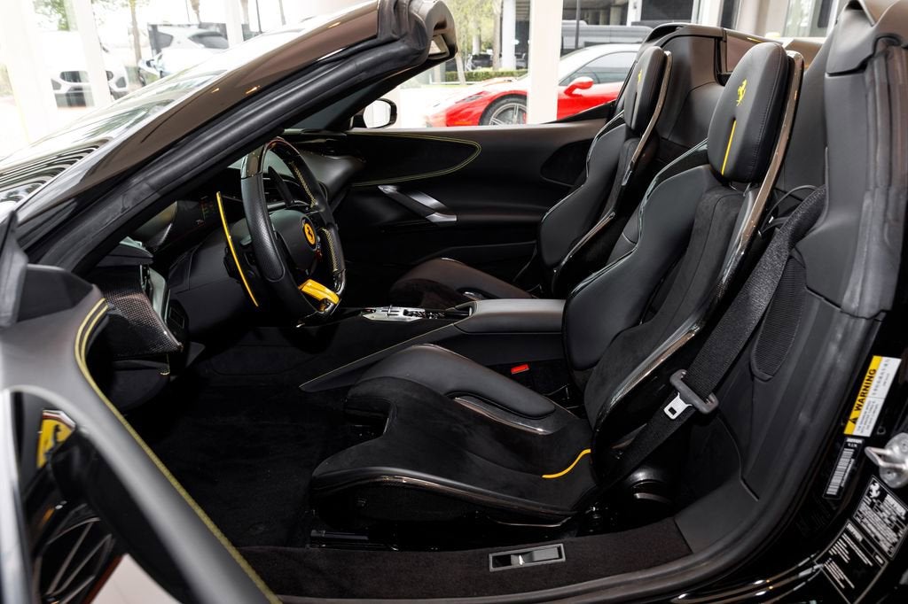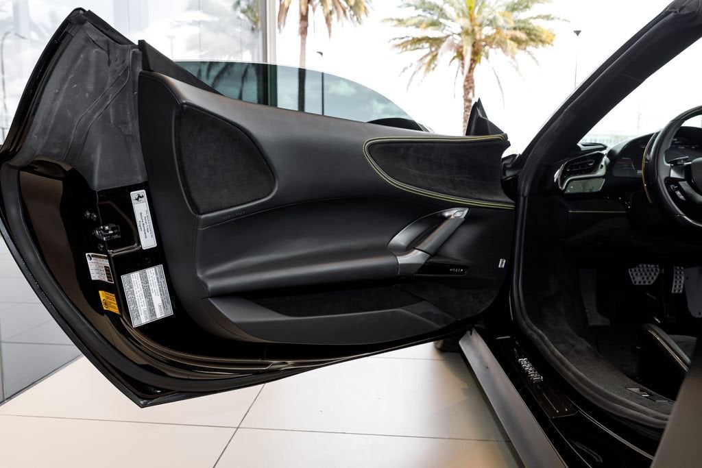 Factory options: Exterior color - Nero Interior color - Nero Carpet color - Nero -Front and rear suspension lift -Giallo Modena brake calipers -Gloss finish carbon fibre lateral engine air intakes -Gloss finish carbon fibre exterior kickplate -Carbon fibre wheel centre cap -Black Ceramic Coated Tailpipes -"Scuderia Ferrari" shields on fenders -Titanium wheel studs -Leather seat piping -Centre part of seat in color-matched Alcantara -Carbon fibre trim driver zone and LED shift indicators on steering wheel -Interior details in special colored trim -Gloss finish carbon fibre dashboard accents -Dream line F1 Paddles - 1 Color -Embroidered Cavallino emblem on headrest -1 Color Livry Up Arch Steering Wheel + Low Trim Painted -Carbon fibre racing seats -Manual ratchet seat height adjustment mechanism -Special stitching in color of customer's choice -Apple CarPlay -Advanced Front Driving Camera -Premium Hi-Fi system For more information or to schedule a test drive, contact us today!