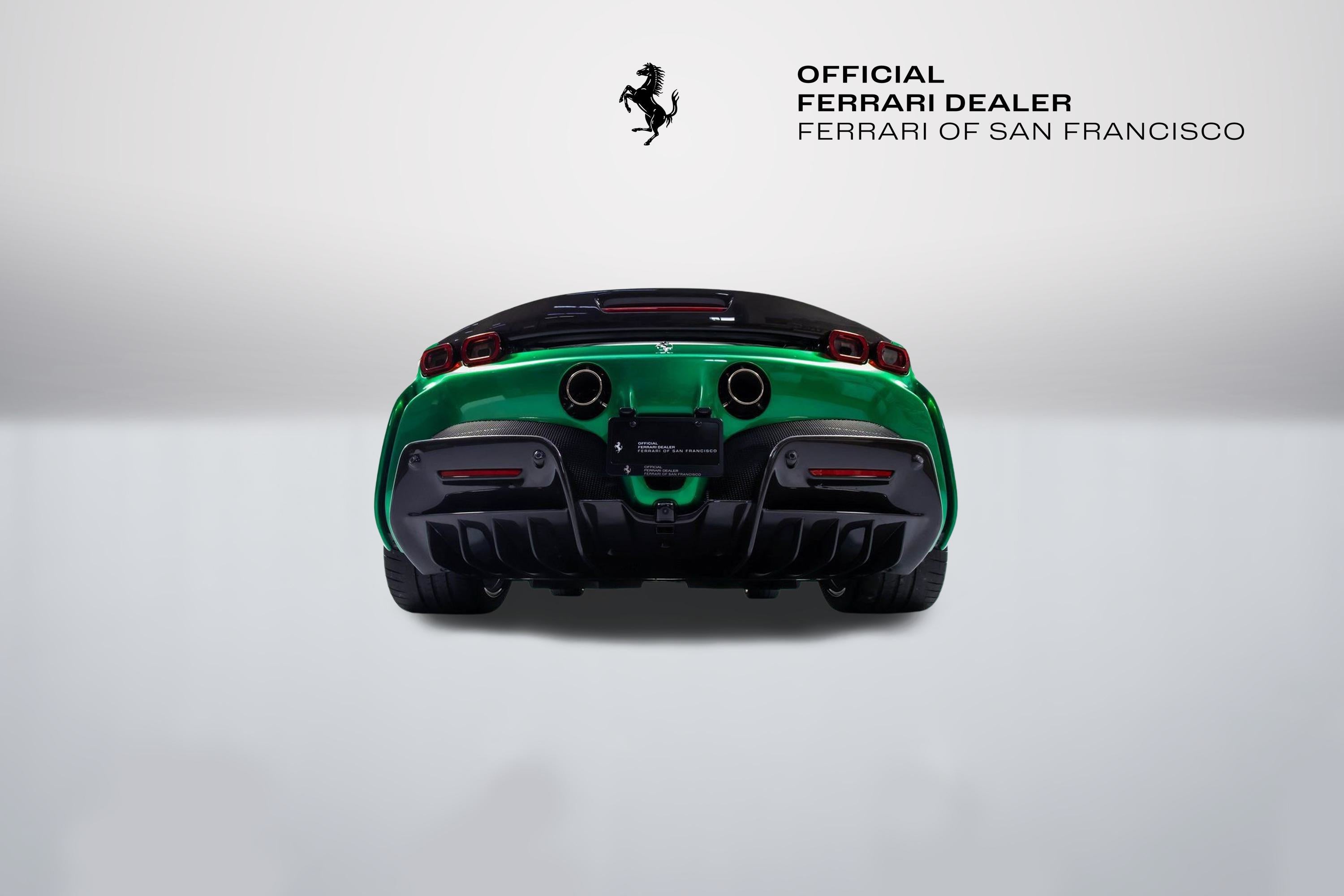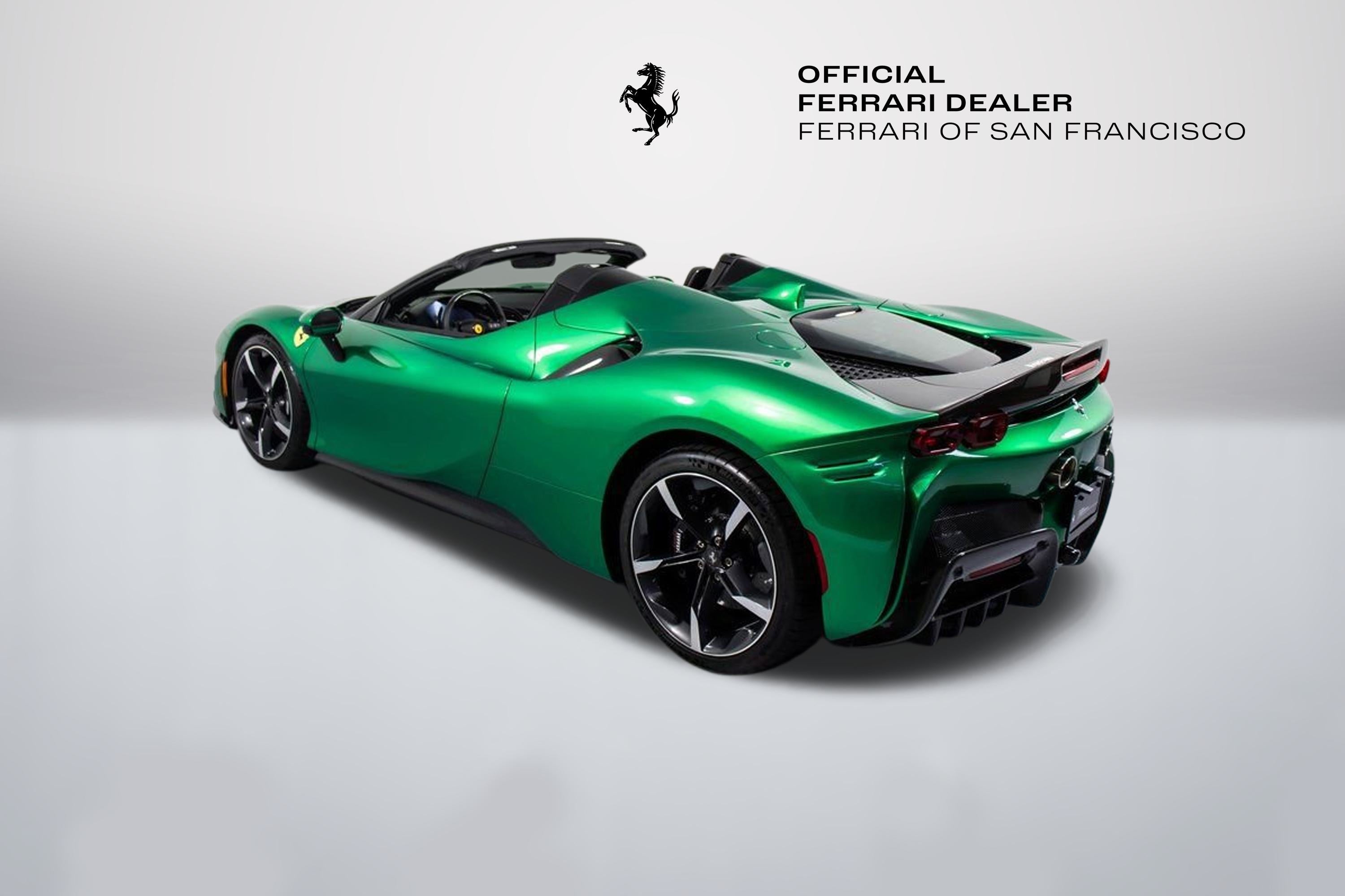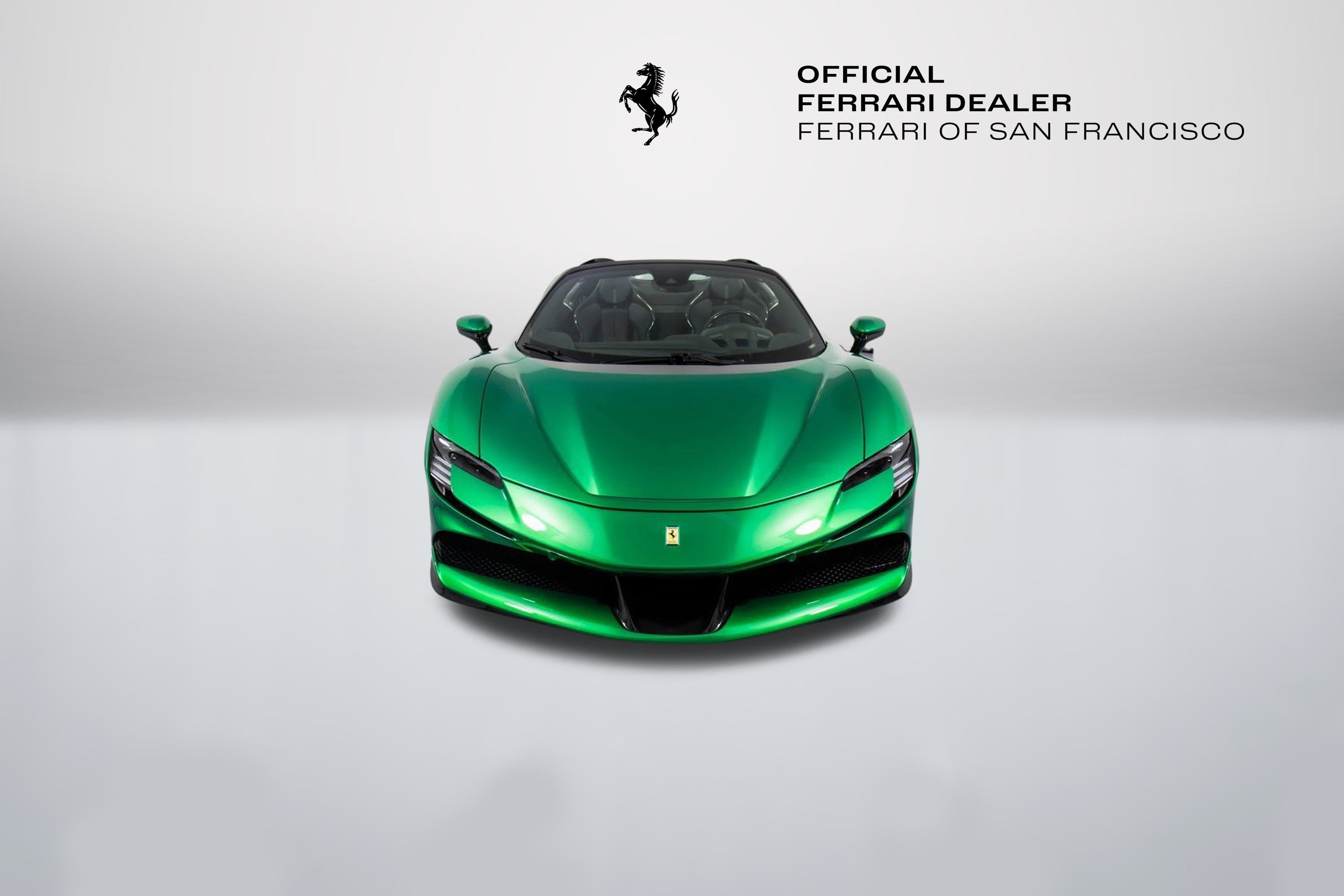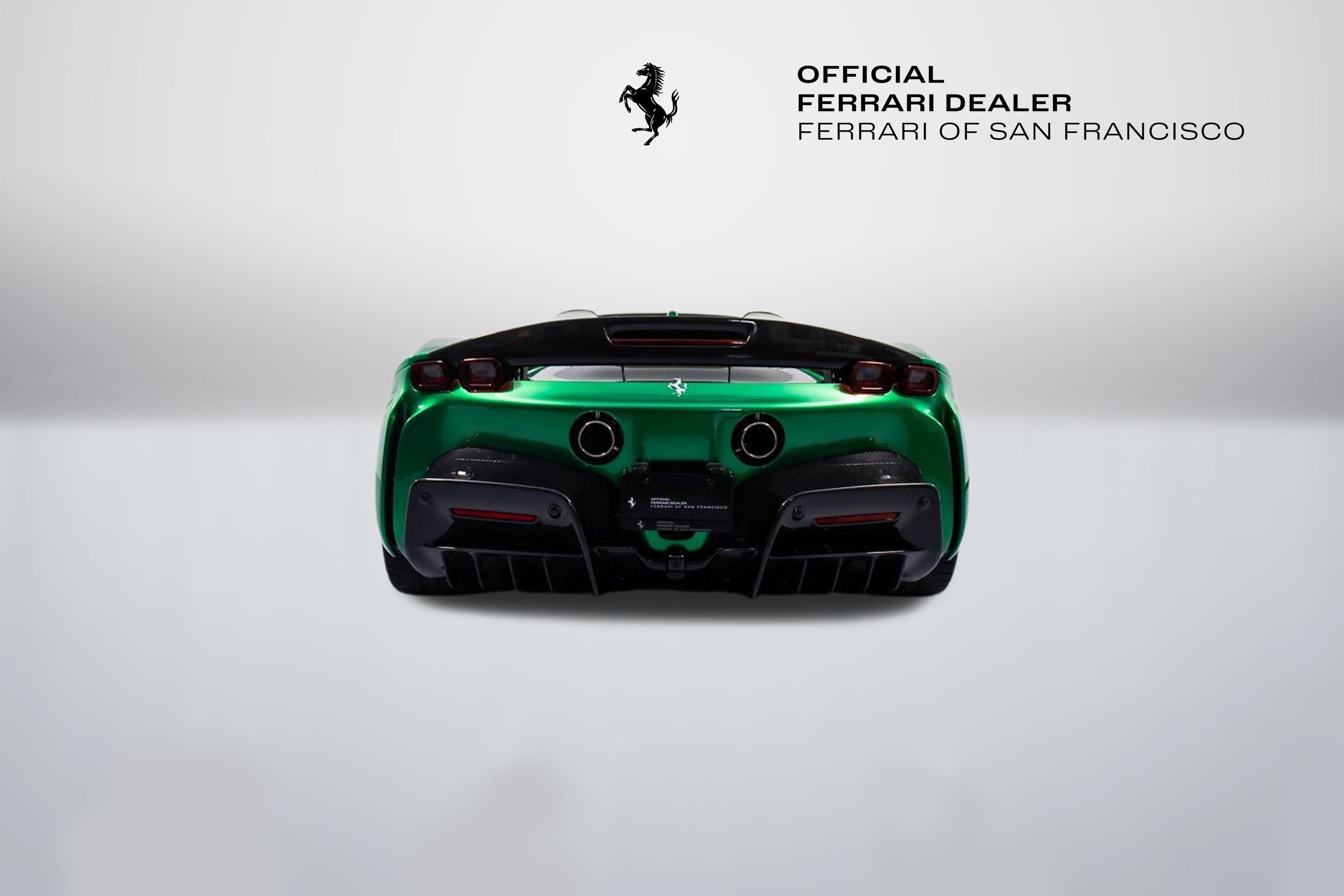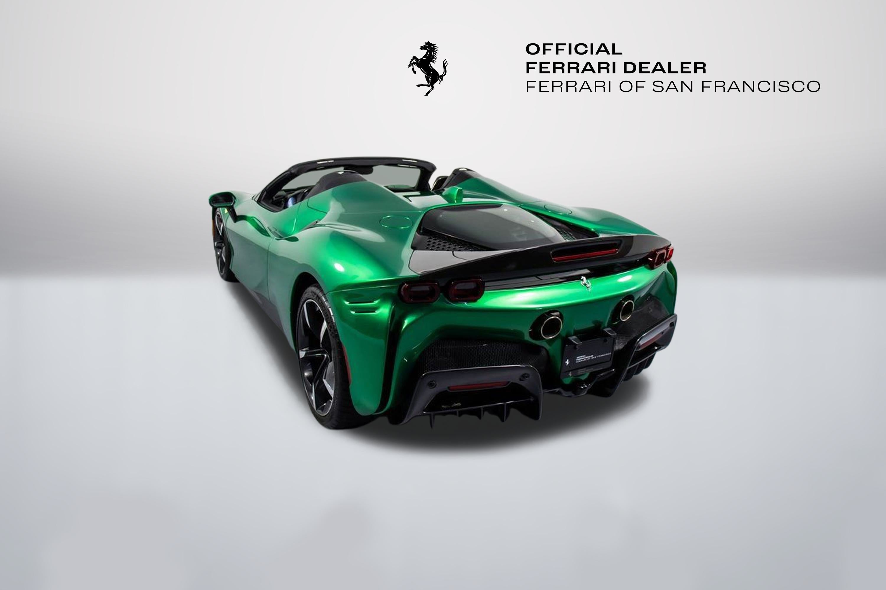 290026 Exterior: Green Jewel Interior: Nero Mats: Nero 2023 Ferrari SF90 Spider Options: Apple CarPlay Sistema AFS America Carrozzeria Bicolore in Nero Back Radar Caliper Freni Nero Lucido Splitter Aria Lat.In Carbonio Parte Cofano Post. In Carbonio Estrattore Post. in Carbonio Rivest.Sottoporta in Carbonio Carbon Fiber Wheel Cups Zona Guida in Carbonio + LEDS Dettagli Abitacolo Colorati CLDT in Pelle Extracampionario in Verde Inesrti Plancia in Carbonio Advanced Front Driving Camera Spoiler Anteriore in Carbonio Pacchetto Fiorano Pacchetto Fiorano Esteso Home Link HW Readiness MyFerrari Connect Scudetti 'Scuderia Ferrari' Specchi Elettrocromici Esterni Sensori Parcheggio Ant. E Post Colori Speciali 4 Strati Sediu Racing in Carbonio in Sedili Racing Taglia Alzasedile Sportivo Cerchi Forgiati Diamantati Sistema HiFi Premium Allestimenti Speciali Colore Cuciture Spec Su Rich in Verde Colonnette Ruota in Titanio This 2023 Ferrari SF90 Spider is a breathtaking expression of hybrid performance and bespoke craftsmanship, finished in rare four-layer Green Jewel with a striking Nero two-tone bodywork treatment. The exterior is elevated by extensive carbon fiber detailing, including the front splitter, rear deck lid, diffuser, underdoor covers, and diamond-finished forged wheels secured by titanium wheel studs, underscoring its Fiorano and Extended Fiorano performance pedigree. Inside, the Nero cabin is accented with special Verde stitching and exclusive extra-range green leather details, complemented by carbon fiber racing seats, a carbon driver zone with LED steering wheel, and carbon dashboard inserts. Advanced technology features such as Apple CarPlay, surround safety systems, parking sensors, premium HiFi audio, and MyFerrari Connect readiness seamlessly blend luxury with innovation. As Ferraris open-top hybrid flagship, this SF90 Spider delivers extraordinary performance, cutting-edge engineering, and unmistakable presence in a truly one-of-a-kind specification.
