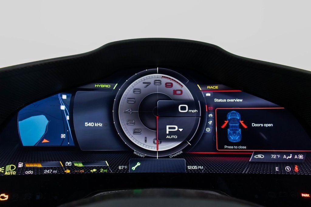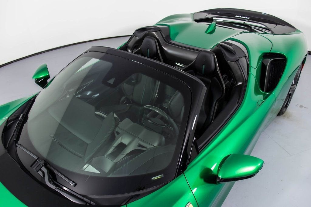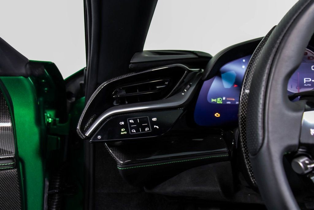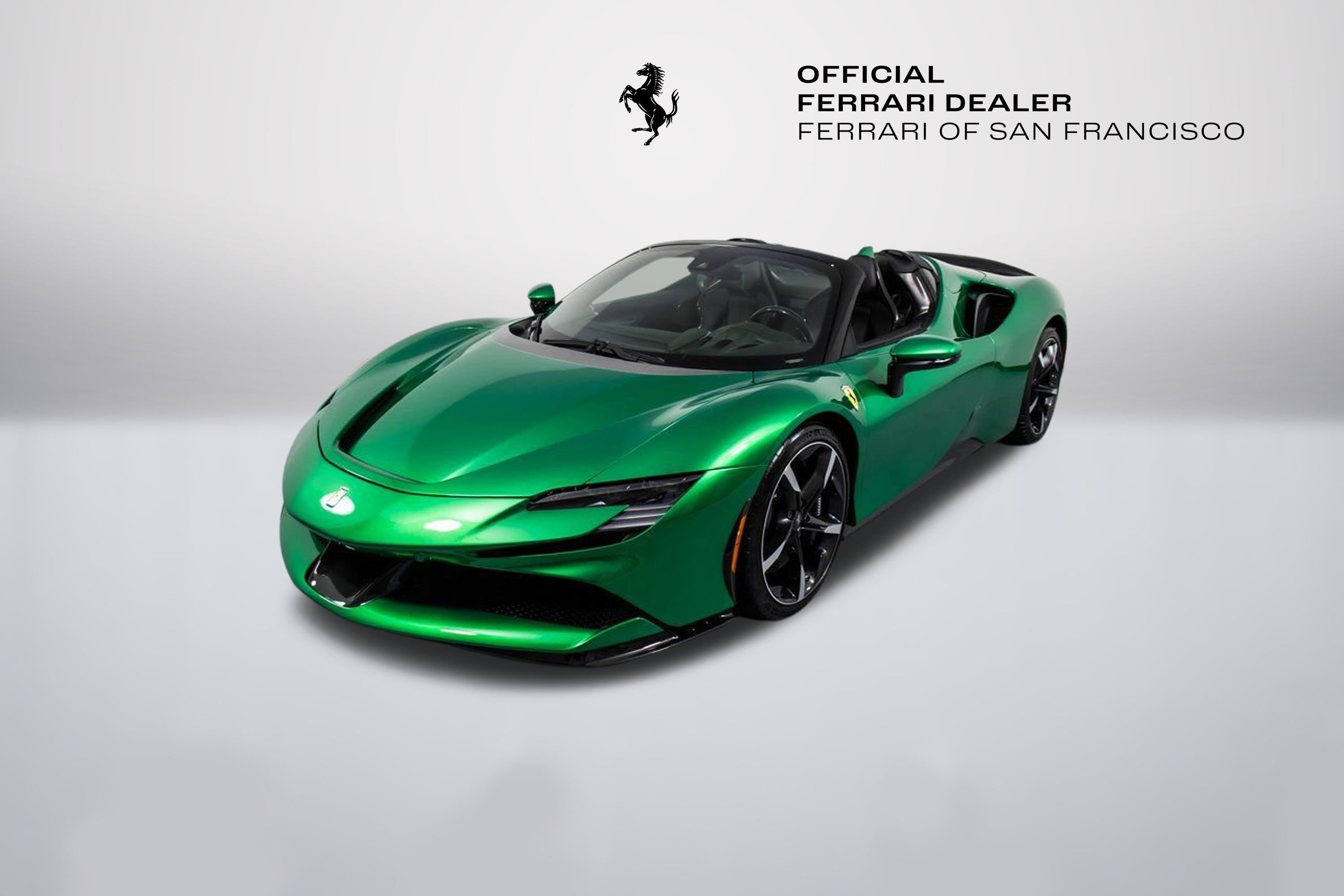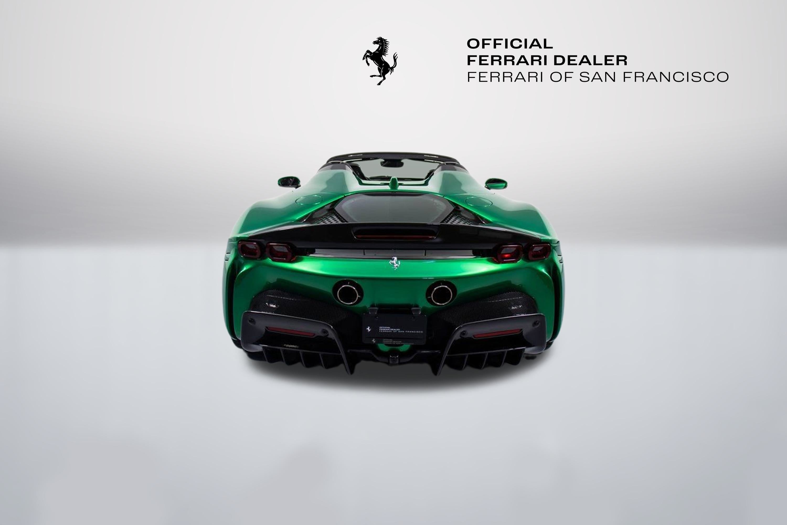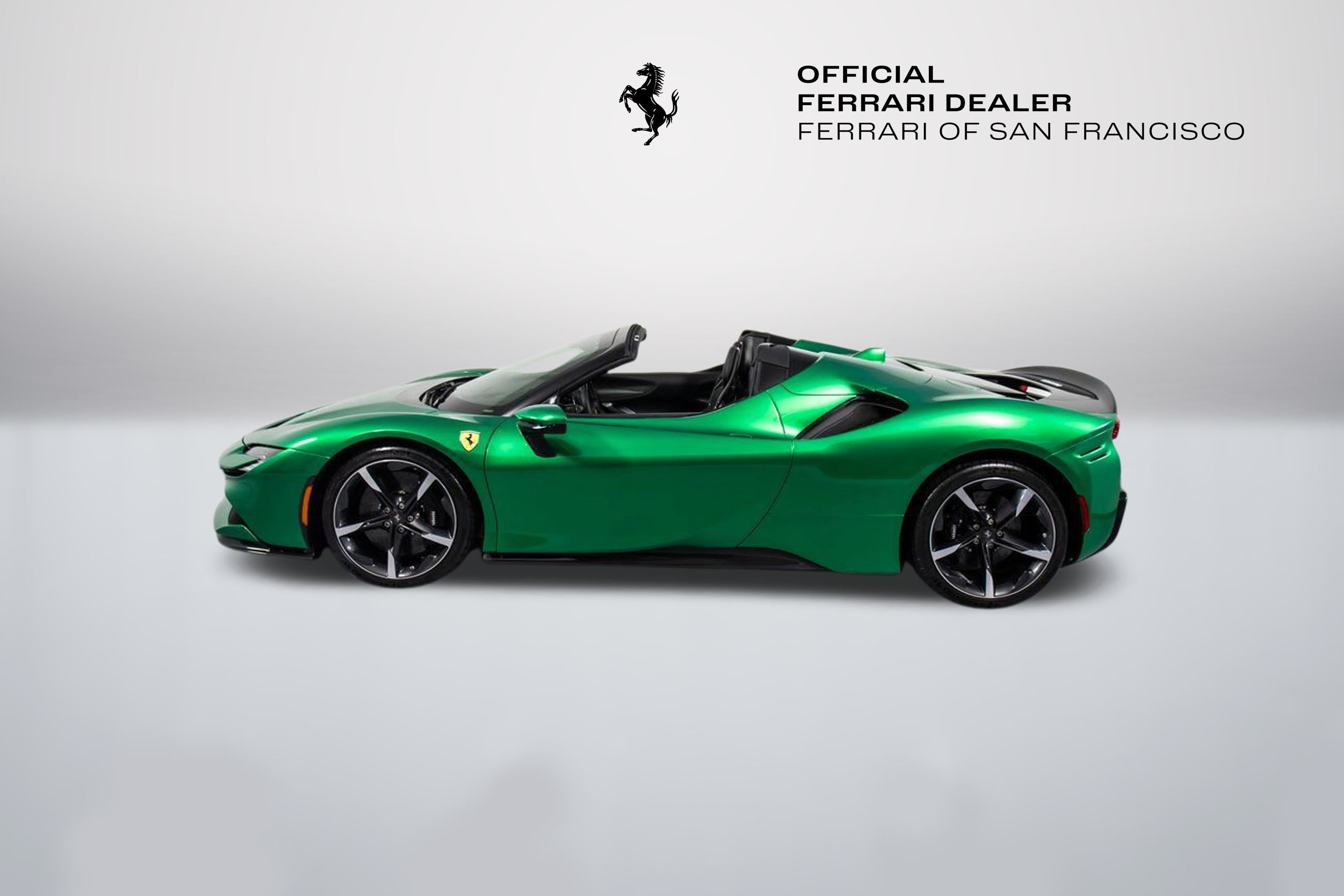 290026 Exterior: Green Jewel Interior: Nero Mats: Nero 2023 Ferrari SF90 Spider Options: Apple CarPlay Sistema AFS America Carrozzeria Bicolore in Nero Back Radar Caliper Freni Nero Lucido Splitter Aria Lat.In Carbonio Parte Cofano Post. In Carbonio Estrattore Post. in Carbonio Rivest.Sottoporta in Carbonio Carbon Fiber Wheel Cups Zona Guida in Carbonio + LEDS Dettagli Abitacolo Colorati CLDT in Pelle Extracampionario in Verde Inesrti Plancia in Carbonio Advanced Front Driving Camera Spoiler Anteriore in Carbonio Pacchetto Fiorano Pacchetto Fiorano Esteso Home Link HW Readiness MyFerrari Connect Scudetti 'Scuderia Ferrari' Specchi Elettrocromici Esterni Sensori Parcheggio Ant. E Post Colori Speciali 4 Strati Sediu Racing in Carbonio in Sedili Racing Taglia Alzasedile Sportivo Cerchi Forgiati Diamantati Sistema HiFi Premium Allestimenti Speciali Colore Cuciture Spec Su Rich in Verde Colonnette Ruota in Titanio This 2023 Ferrari SF90 Spider is a breathtaking expression of hybrid performance and bespoke craftsmanship, finished in rare four-layer Green Jewel with a striking Nero two-tone bodywork treatment. The exterior is elevated by extensive carbon fiber detailing, including the front splitter, rear deck lid, diffuser, underdoor covers, and diamond-finished forged wheels secured by titanium wheel studs, underscoring its Fiorano and Extended Fiorano performance pedigree. Inside, the Nero cabin is accented with special Verde stitching and exclusive extra-range green leather details, complemented by carbon fiber racing seats, a carbon driver zone with LED steering wheel, and carbon dashboard inserts. Advanced technology features such as Apple CarPlay, surround safety systems, parking sensors, premium HiFi audio, and MyFerrari Connect readiness seamlessly blend luxury with innovation. As Ferraris open-top hybrid flagship, this SF90 Spider delivers extraordinary performance, cutting-edge engineering, and unmistakable presence in a truly one-of-a-kind specification.