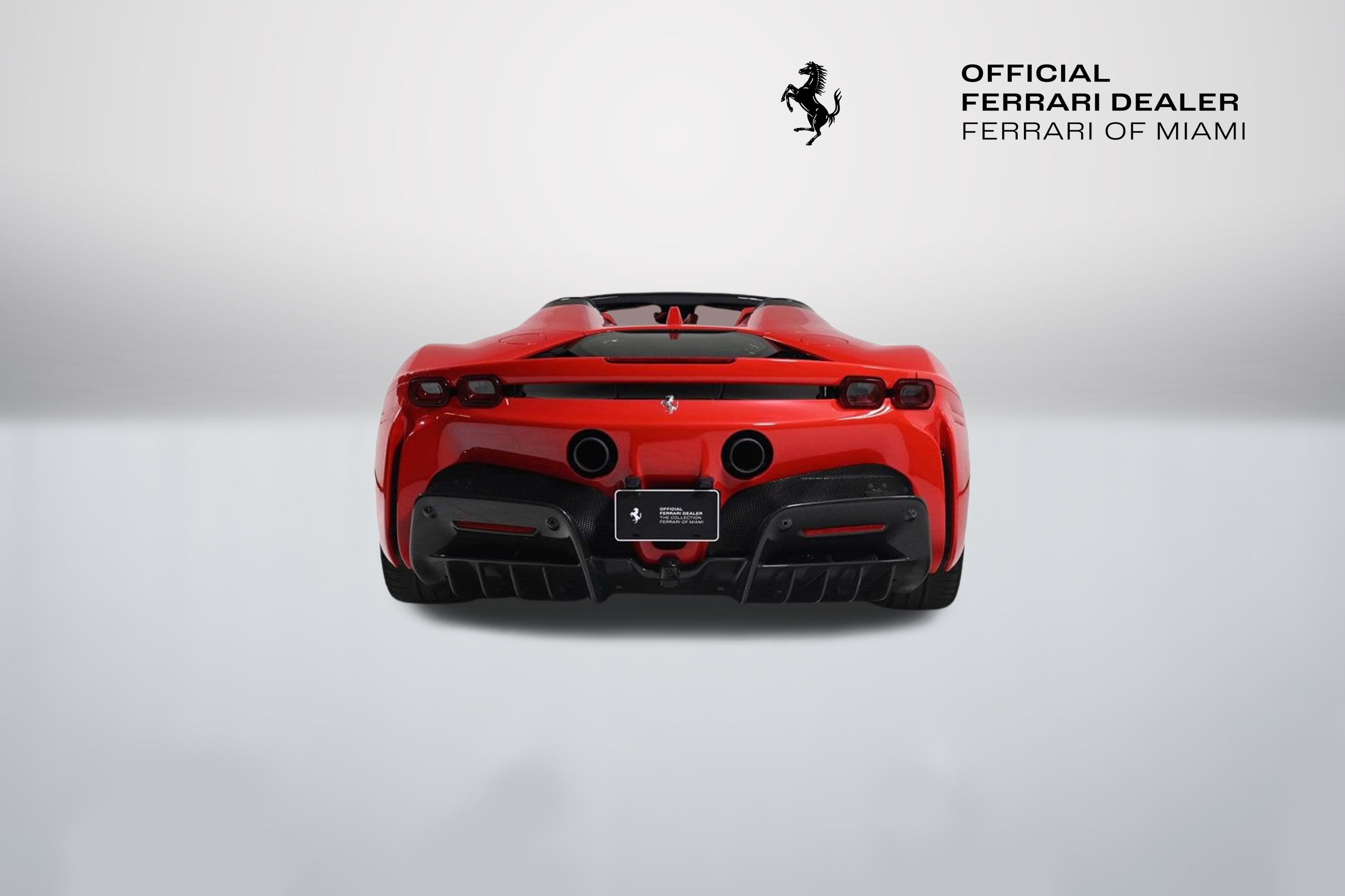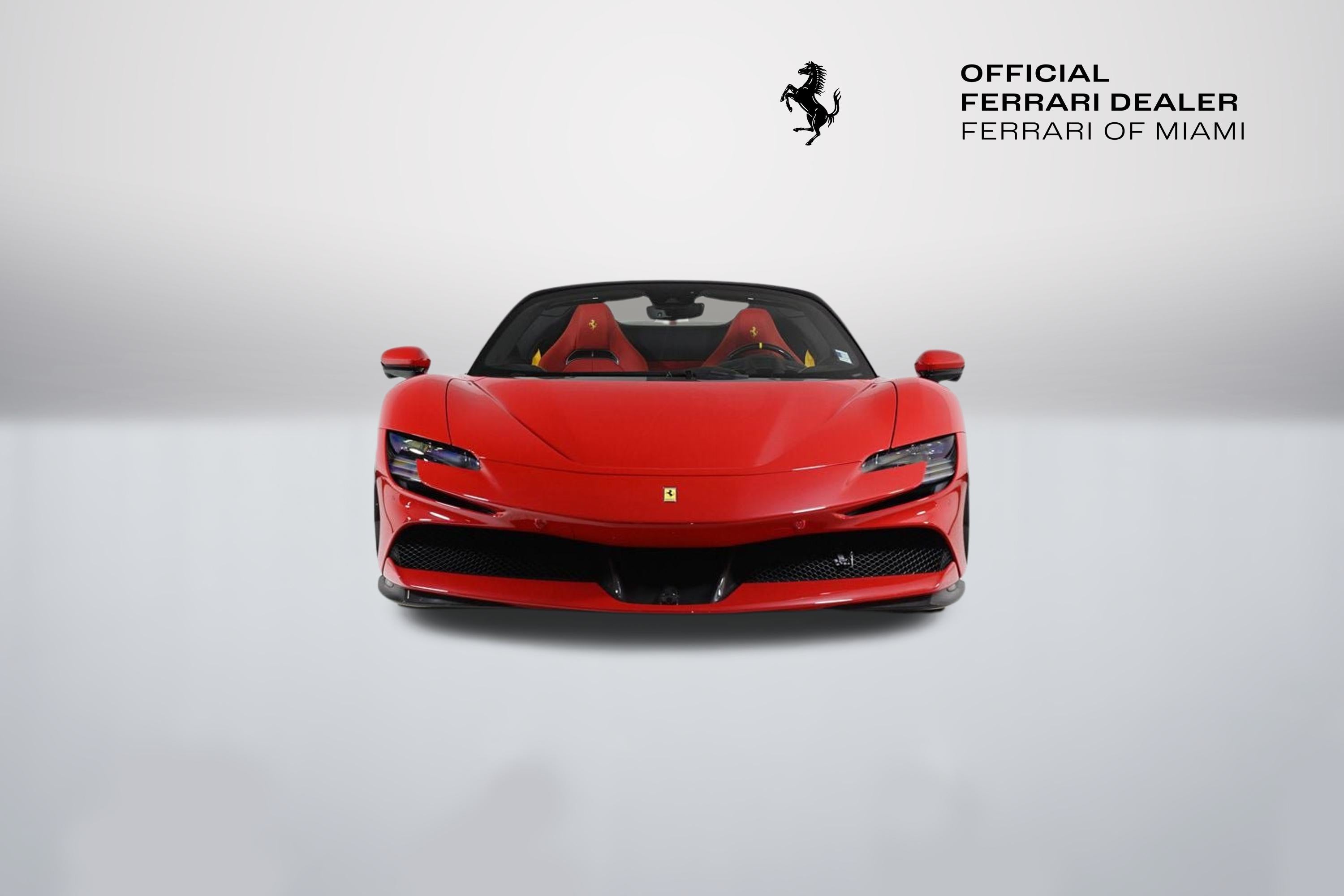 EXTREMELY LOW MILES! Get the best value from your vehicle purchase. This 2024 boasts an extremely low 712 miles! LOADED WITH VALUE! Comes equipped with: Air Conditioning, MP3, Navigation System. This Ferrari SF90 Spider also includes Clock, Climate Control, Power Passenger Seat, Tachometer, Memory Seat Position, Digital Info Center, Cruise Control, Tilt Steering Wheel, Power Steering, Telescoping Steering Wheel, Power Windows, Steering Radio Controls, Power Mirrors, Leather Steering Wheel, Leather Shifter, Driver Airbag, ABS Brakes, Fog Lights, Passenger Airbag, Traction Control, Intermittent Wipers, Side Airbags, Dynamic Stability, Keyless Entry, Rear Defogger, Security System, AM/FM, Rear Spoiler, Center Arm Rest, Cup Holders, Remote Fuel Door, Remote Trunk Lid, Heated Mirrors, Rear Fog Lamps, Daytime Running Lights, Parking Sensors, Reverse Camera, Roll Stability Control, Adaptive headlights, Heads Up Display, Tire Pressure Monitor, Premium Sound, Carpeted Floor Mats, Overhead Console, Aux. Audio Input, Onboard Hard Drive. Located on the corner of Biscayne and 16th Street. - Recent Arrival! Rosso Corsa 2024 Ferrari SF90 Spider Base AWD 8-Speed Manual V8 Difference From the moment you drive into our one-of-a-kind facility, you will feel a difference in the energy here. Simply put: we are not your ordinary car dealership. What truly differentiates us is the professional level of service we provide. When you acquire a new or pre-owned automobile from us, both you and your automobile are treated with the utmost care and attentiveness like a member of our own family. That is why so many of our clients return to THE COLLECTION time and again, and refer us time and time again. We have also amassed an extraordinary team of employees. Plus, we have created all-new positions with your needs in mind. Including a Client Delight Manager which oversees our concierge team and whose sole purpose is to surprise and delight our guests; and on-staff technologists available to assist and educate you on all the latest features available on your vehicle. THE COLLECTION family will exceed your expectations, making this an uniquely gratifying experience that you will want to revisit time and time again. CARFAX One-Owner. Odometer is 510 miles below market average! - This 2024 Ferrari SF90 Spider 2dr Convertible features a V8 8cyl engine. It is equipped with a 8 Speed Manual transmission. The vehicle is Rosso Corsa with a Rosso Ferrari Leather interior. It is offered As-Is, extended warranty is available. - Air Conditioning, Climate Control, Cruise Control, Power Steering, Power Windows, Power Mirrors, Leather Steering Wheel, Leather Shifter, Power Passenger Seat, Memory Seat Position, Clock, Tachometer, Digital Info Center, Tilt Steering Wheel, Telescoping Steering Wheel, Steering Wheel Radio Controls, Driver Airbag, Passenger Airbag, Side Airbags, Keyless Entry, Security System, ABS Brakes, Traction Control, Dynamic Stability, Rear Defogger, Fog Lights, Intermittent Wipers, AM/FM, Alloy Wheels, Leather Interior Surface, Navigation System, Convertible HardTop, 6 Speakers, Radio data system, Automatic temperature control, Heads-Up Display, Power driver seat, Adaptive suspension, Four wheel independent suspension, 4-Wheel Disc Brakes, Ceramic disc brakes: front and rear, Dual front impact airbags, Dual front side impact airbags, Front anti-roll bar, Integrated roll-over protection, Low tire pressure warning, Passenger cancellable airbag, Rear anti-roll bar, Brake assist, Exterior Parking Camera Rear, Rear Parking Sensors, Delay-off headlights, Fully automatic headlights, Bumpers: body-color, Convertible roof wind blocker, Heated door mirrors, Power door mirrors, Spoiler, Apple CarPlay, Compass, Convertible roof lining, Driver door bin, Front reading lights, Illuminated entry, Outside temperature display, Overhead console, Power convertible roof, Sport steering wheel, Standard Seats, Telescoping steering wheel, Voltmeter, Front Center Armrest, Leather Seat Trim, Sport Plus Seats, Passenger door bin, Wheels: 20 x 9.5 Fr & 20 x 11.5 Rr, Glass rear window, Rain sensing wipers Adaptive headlights, Aux.