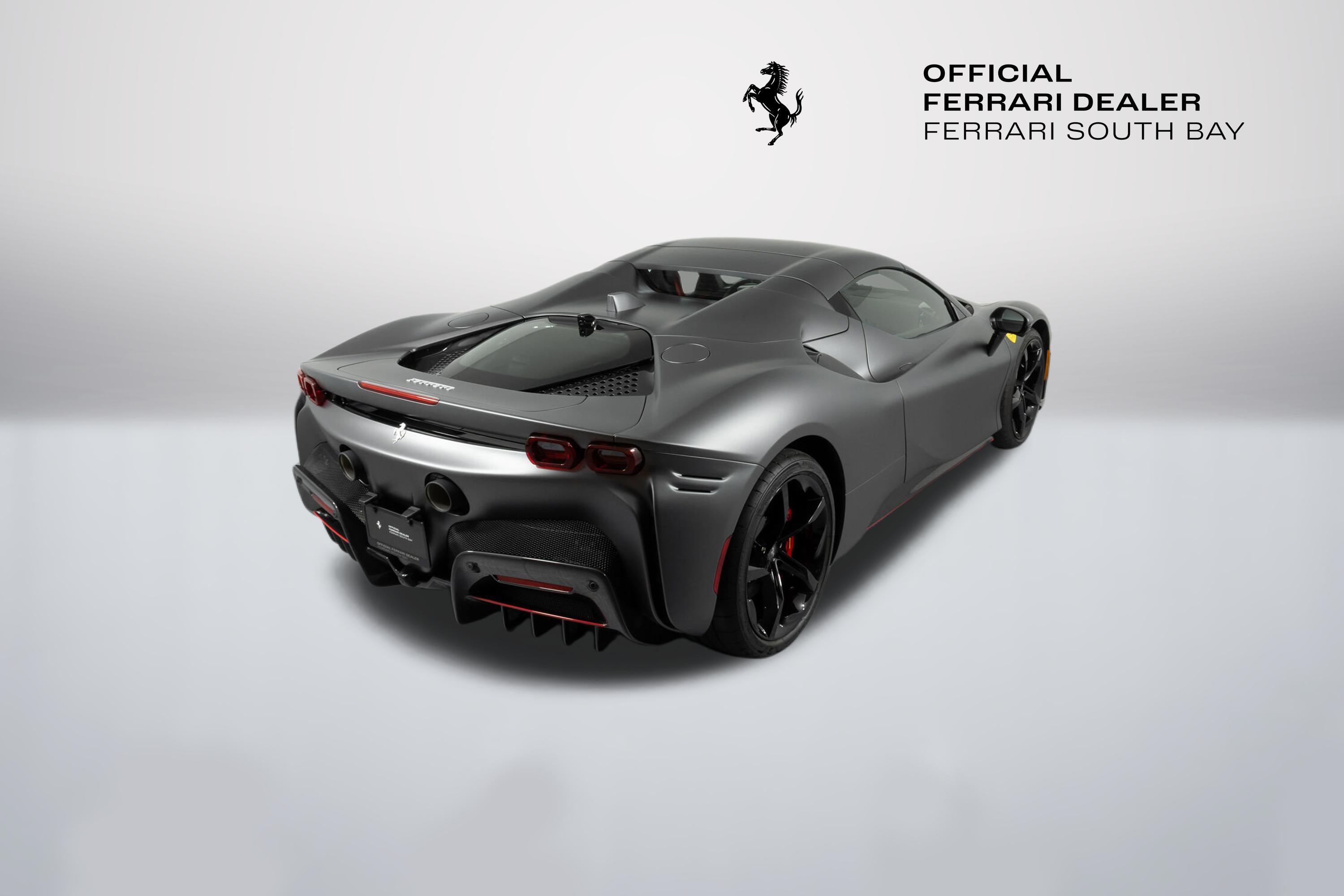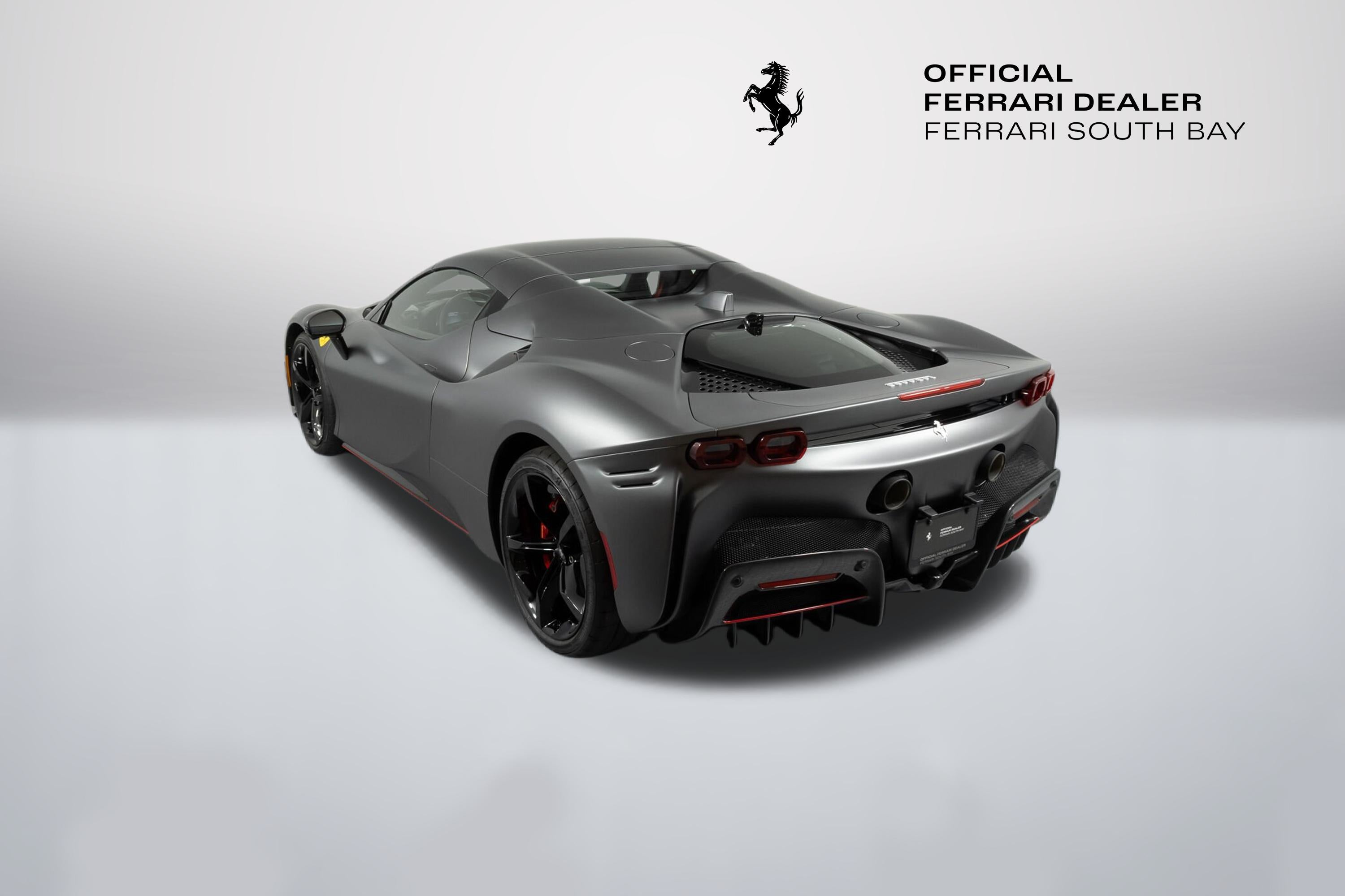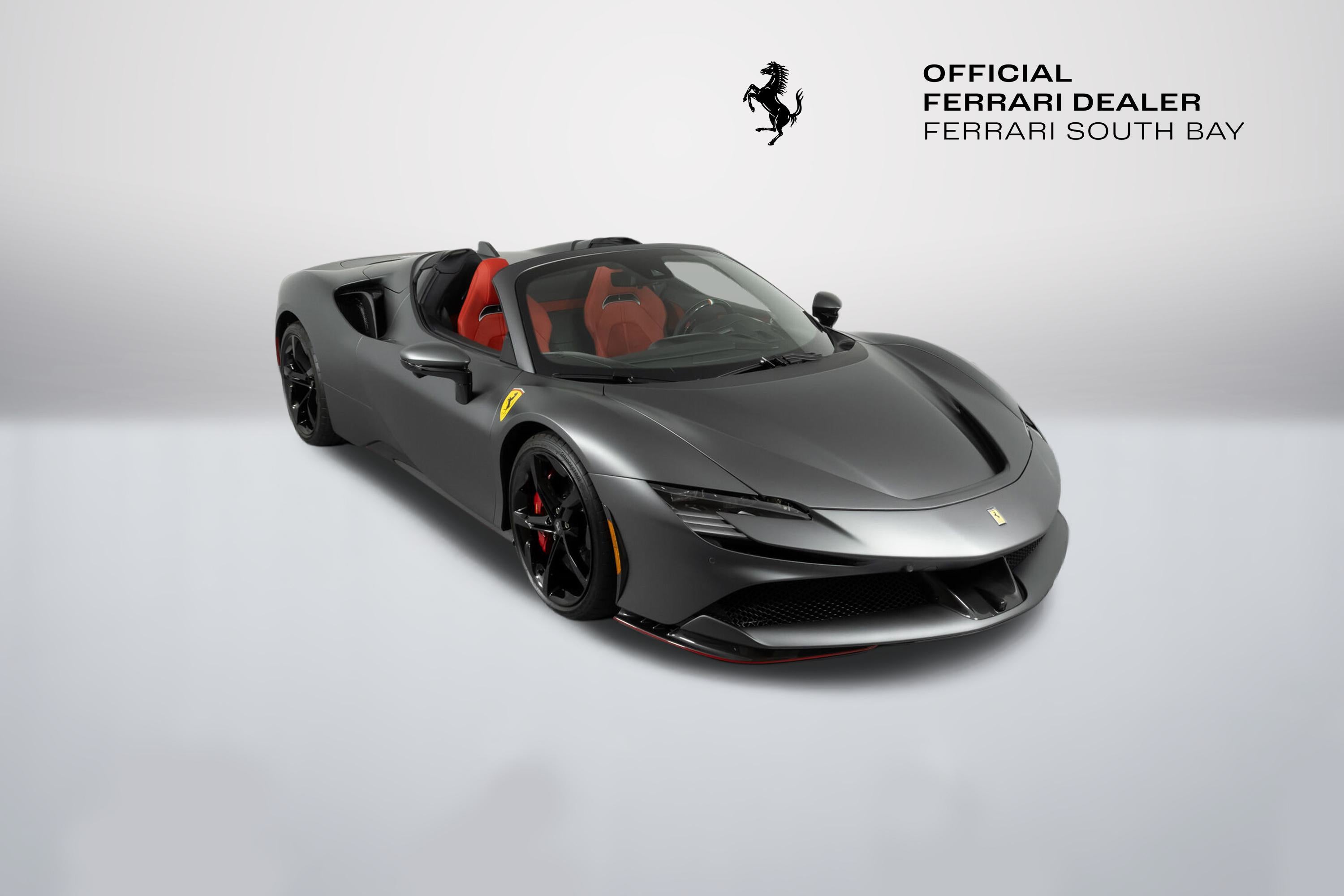 Ferrari South Bay is thrilled to offer this dramatic, stunning SF90 Spider finished in Grigio Silverstone Opaco accented with Bespoke Rosso Corsa Dreamlines which highlight the exquisite design of the SF90 Spider. The interior, finished in Rosso Ferrari and an array of Carbon Fiber, further emphasizes the technical, sporting nature of this 1,000 horsepower Twin-Turbo V8 Hybrid; there is no doubting the serious, performance intentions of this road-going missile. The exterior of this SF90 Spider is finished in very rare Grigio Silverstone Opaco (matte), and is accented with Rosso Corso Dreamlines on the Front Splitter, Side Underdoor Covers and Rear Diffuser. 20 Dark Forged Wheels surround Ceramic Brake Discs with Red Calipers. Glossy Carbon Fiber covers the Side Air Splitters, Rear Boot Trim, Rear Diffuser, Underdoor Covers, Wheel Cups, Exterior Sill Plates and Front Spoiler. Large painted Scuderia Ferrari Shields are Airbrushed by Hand on the front fenders. Inside, you'll find Rosso Ferrari and Nero Leather accented with Nero Stitching throughout, including the Cavallinos Embroidered on the Headrests of the Ventilated Fully Electric Seats. A very special feature of the interior is the Rosso Ferrari Leather Floor, which lends an opulent, luxurious air to the cabin. The floor is finished in red. The Driver's Zone is Carbon Fiber, yielding Carbon Fiber on the Steering Wheel (which is fitted with Ferrari's now-signature LED Shift Lights), F1 Shift Paddles, and Instrument Surround. In addition, the Instrument Cluster and Dashboard Inserts are also finished in Carbon Fiber. A very nice bespoke touch is the Tricolore Dreamline marking the 12 O'Clock position on the Steering Wheel. Front and Rear Parking Sensors, Back Radar with Blind Spot Protection, Advanced Front Driving Camera, Surround View Camera and Digital Rearview Mirror assist with tight maneuvers. Apple CarPlay will simplify interaction with your smart phone while the JBL Premium Sound System will provide the soundtrack when the driving calms down a little. This Certified Pre-Owned SF90 Spider is offered complete with both original keys, books, tools, Hybrid Charging Cable and car cover. The car is covered by the Original Ferrari Factory Warranty through August 27, 2027 (and can easily be extended by up to two years at the time of purchase). Ferrari Genuine Maintenance covers annual services through August 27, 2031. If you'd like to know more about this SF90 Spider or set up a viewing in our showroom, please reach out to one of our knowledgeable sales staff. Ferrari South Bay is proudly part of Holand Automotive Group, one of North America’s leading luxury automotive retailers. We offer nationwide shipping, trade-in opportunities, financing, client consignments, and world-class delivery service. Contact us today to explore ownership of this remarkable SF90 Spider. Please visit us at 23305 Hawthorne Blvd, Torrance, CA 90505, or call us at (888) 578-8767.