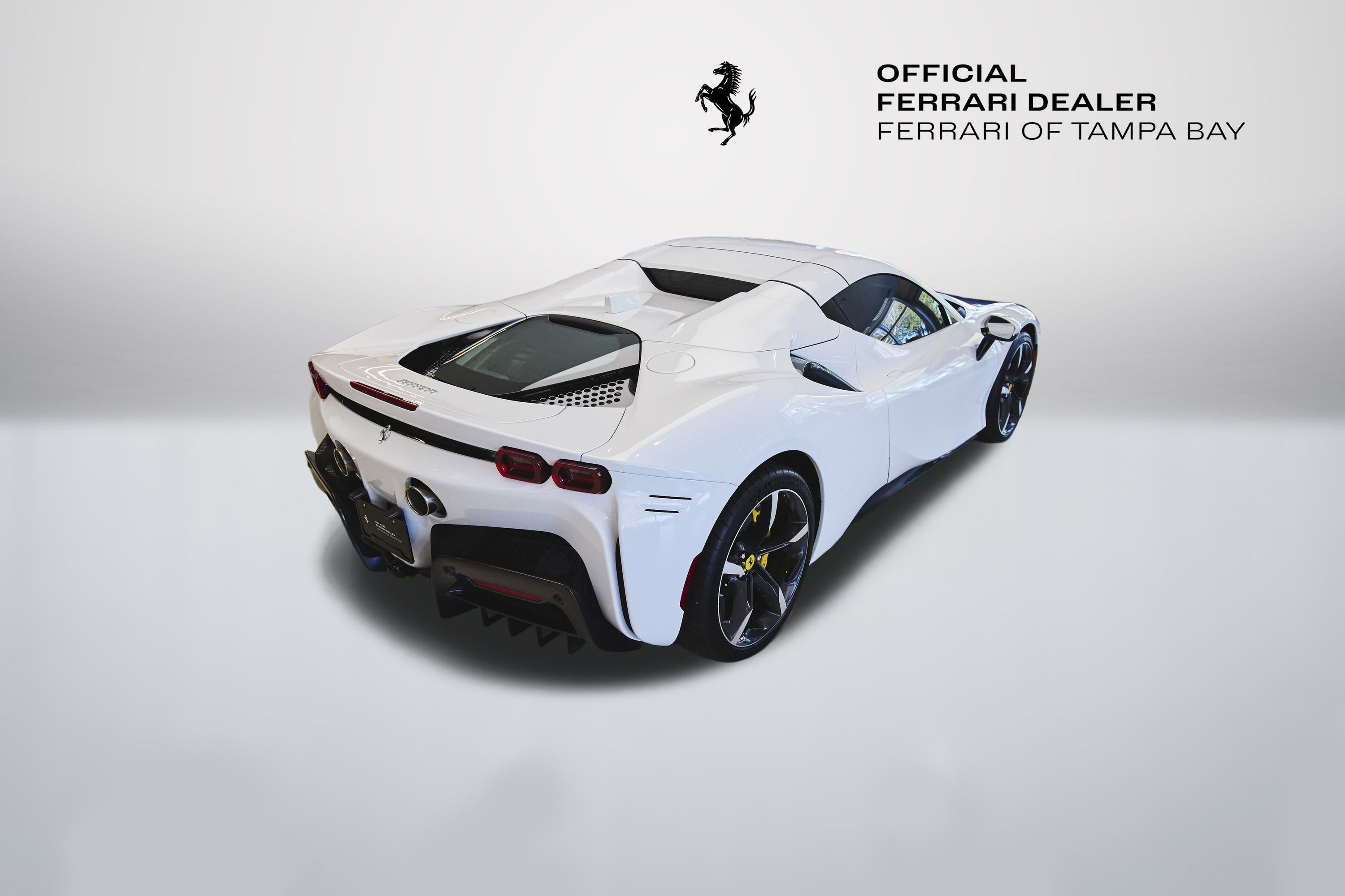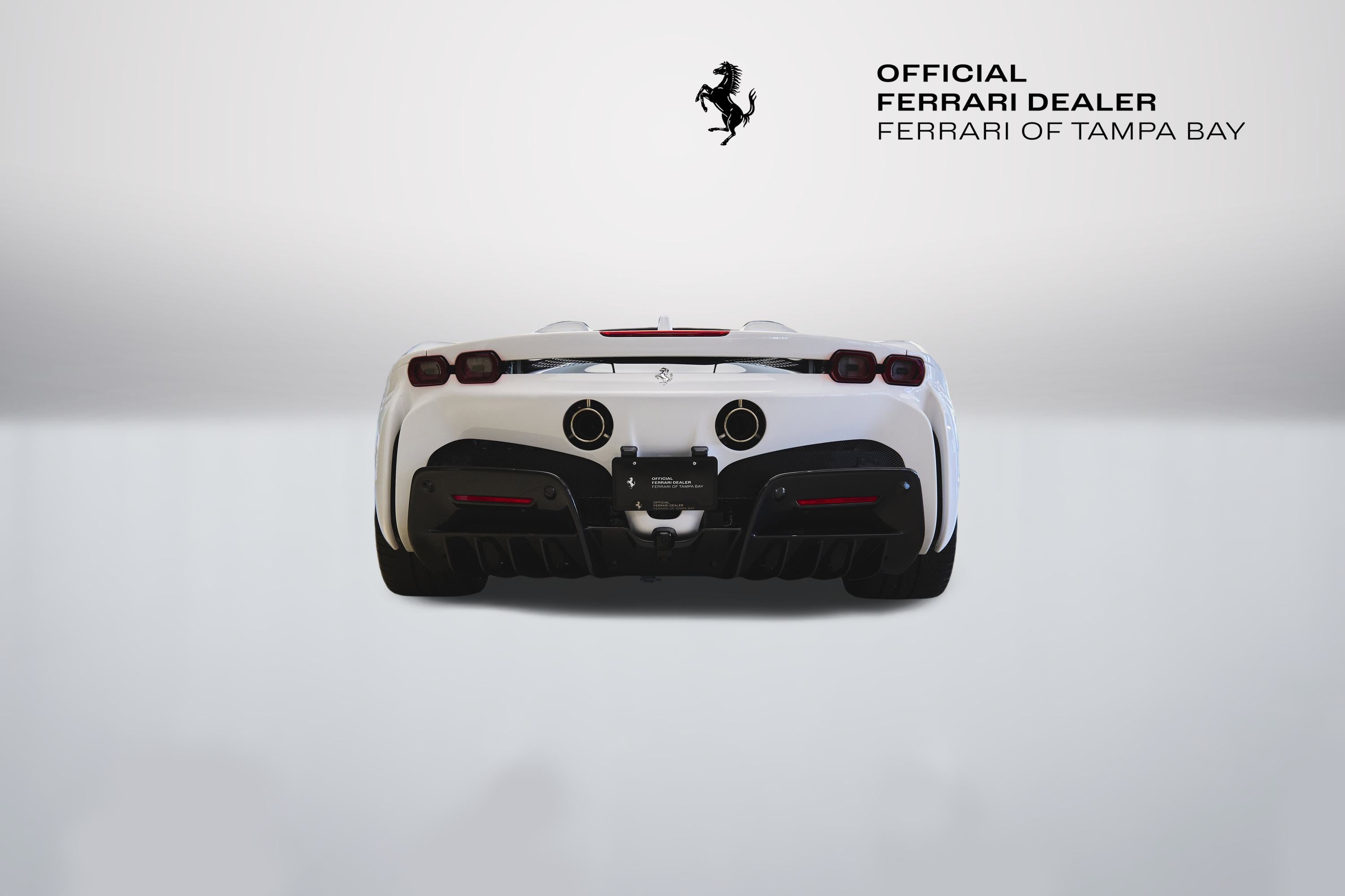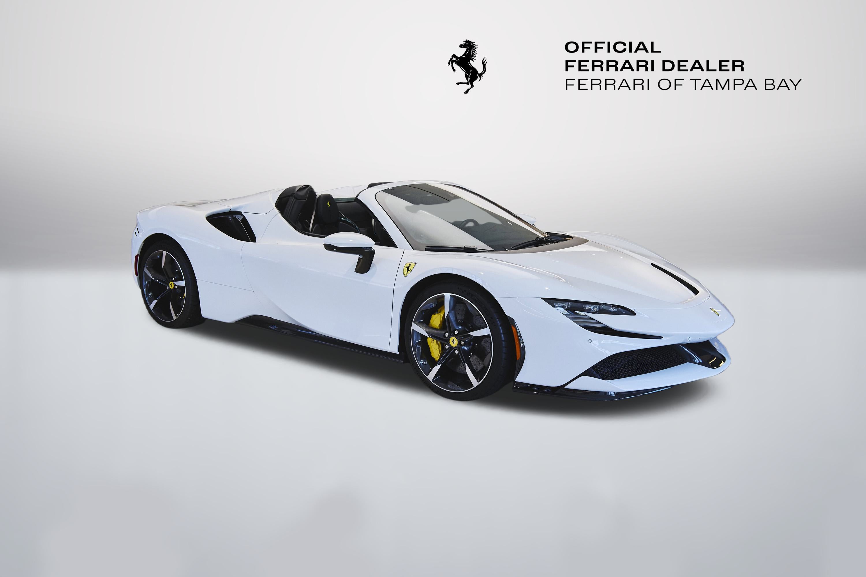 Now available at Ferrari of Tampa Bay an absolutely stunning 2024 Ferrari SF90 Spider finished in Extracampionario Bianco Cervino (White) and Nero (Black) Interior. Only 246 miles on the odometer and many upgraded features including the following: Carbon Fibre Diffuser, Carbon Fibre Gloss Finish Lateral Engine Air Intakes, Carbon Fibre Under-Door Trim, Carbon Fibre Gloss Finish Front Spoiler, Carbon Fibre Steering Wheel with LEDs, Giallo Modena (Yellow) Brake Calipers, Carbon Fibre Racing Seats, Embroidered Cavallino on Headrests in Giallo, Alcantara Center Seats, Nero Seat Piping, Giallo Seat Stitching, Apple CarPlay, Advanced Front Driving Camera, Electrochromic Rear View Mirrors, Front Parking Sensors, Ferrari Premium Hi-Fi Sound System, and Front and Rear Suspension Lifter! Warranty until November 2027 and Complimentary Maintenance until August 2031.