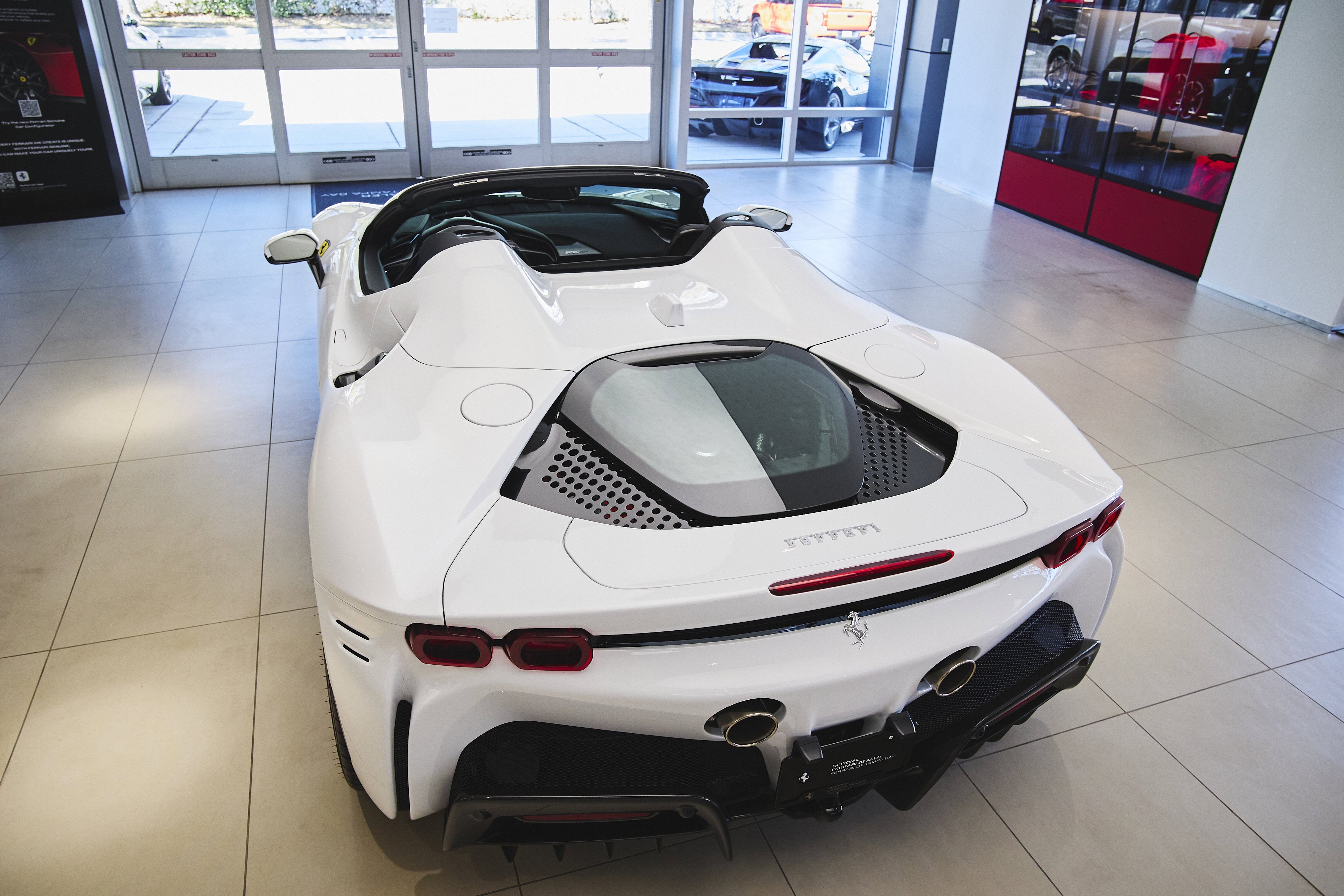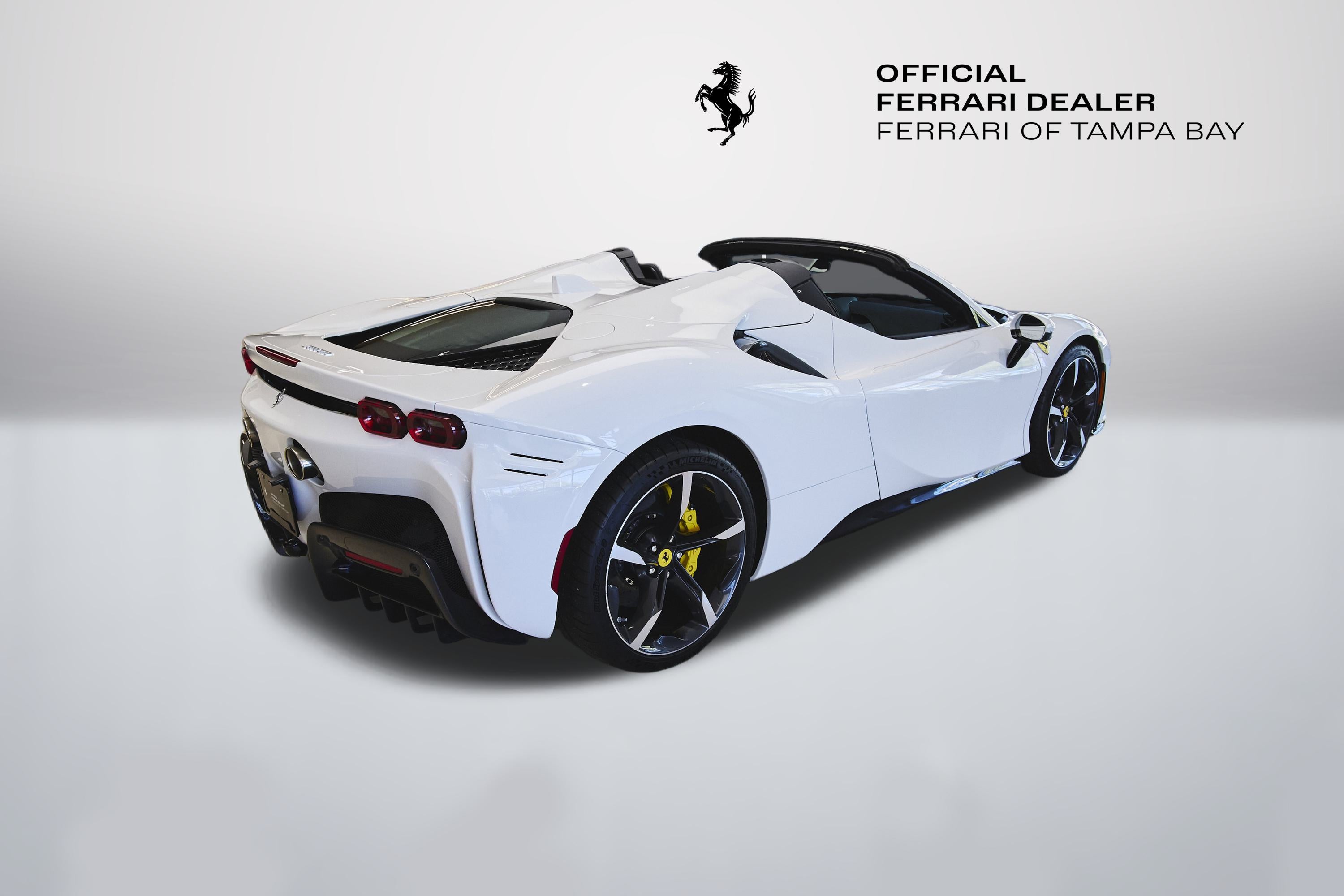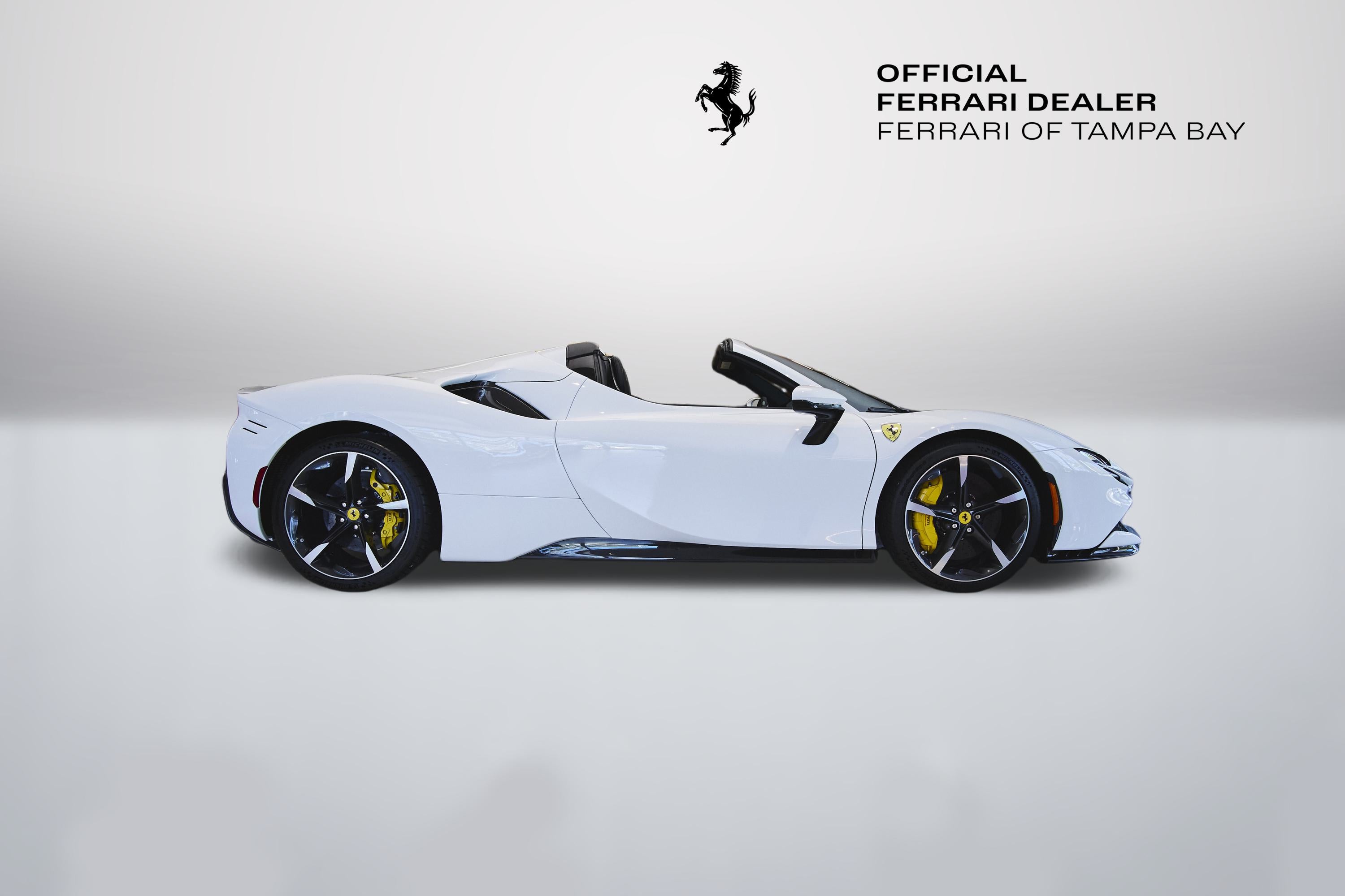 Now available at Ferrari of Tampa Bay an absolutely stunning 2024 Ferrari SF90 Spider finished in Extracampionario Bianco Cervino (White) and Nero (Black) Interior. Only 246 miles on the odometer and many upgraded features including the following: Carbon Fibre Diffuser, Carbon Fibre Gloss Finish Lateral Engine Air Intakes, Carbon Fibre Under-Door Trim, Carbon Fibre Gloss Finish Front Spoiler, Carbon Fibre Steering Wheel with LEDs, Giallo Modena (Yellow) Brake Calipers, Carbon Fibre Racing Seats, Embroidered Cavallino on Headrests in Giallo, Alcantara Center Seats, Nero Seat Piping, Giallo Seat Stitching, Apple CarPlay, Advanced Front Driving Camera, Electrochromic Rear View Mirrors, Front Parking Sensors, Ferrari Premium Hi-Fi Sound System, and Front and Rear Suspension Lifter! Warranty until November 2027 and Complimentary Maintenance until August 2031.