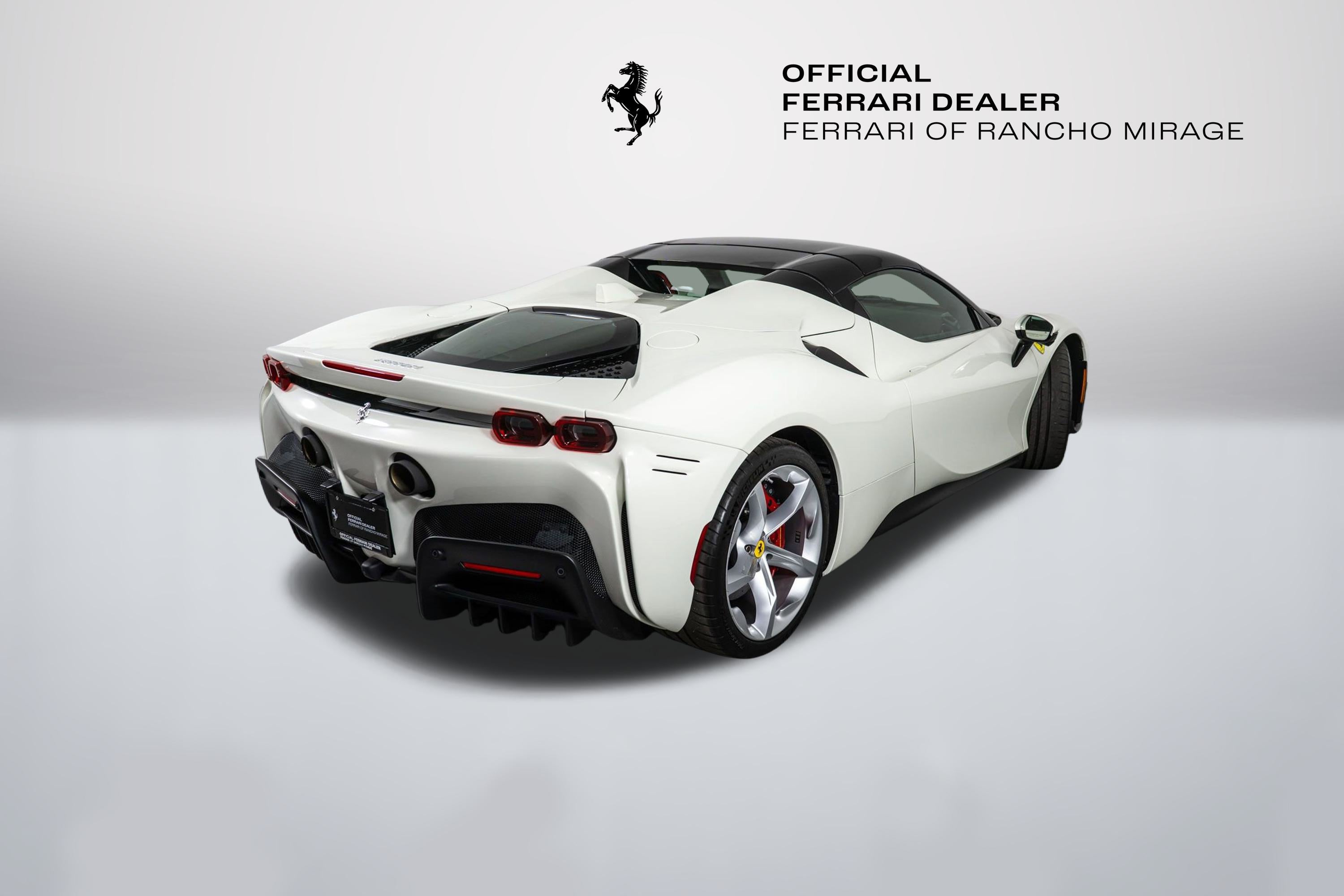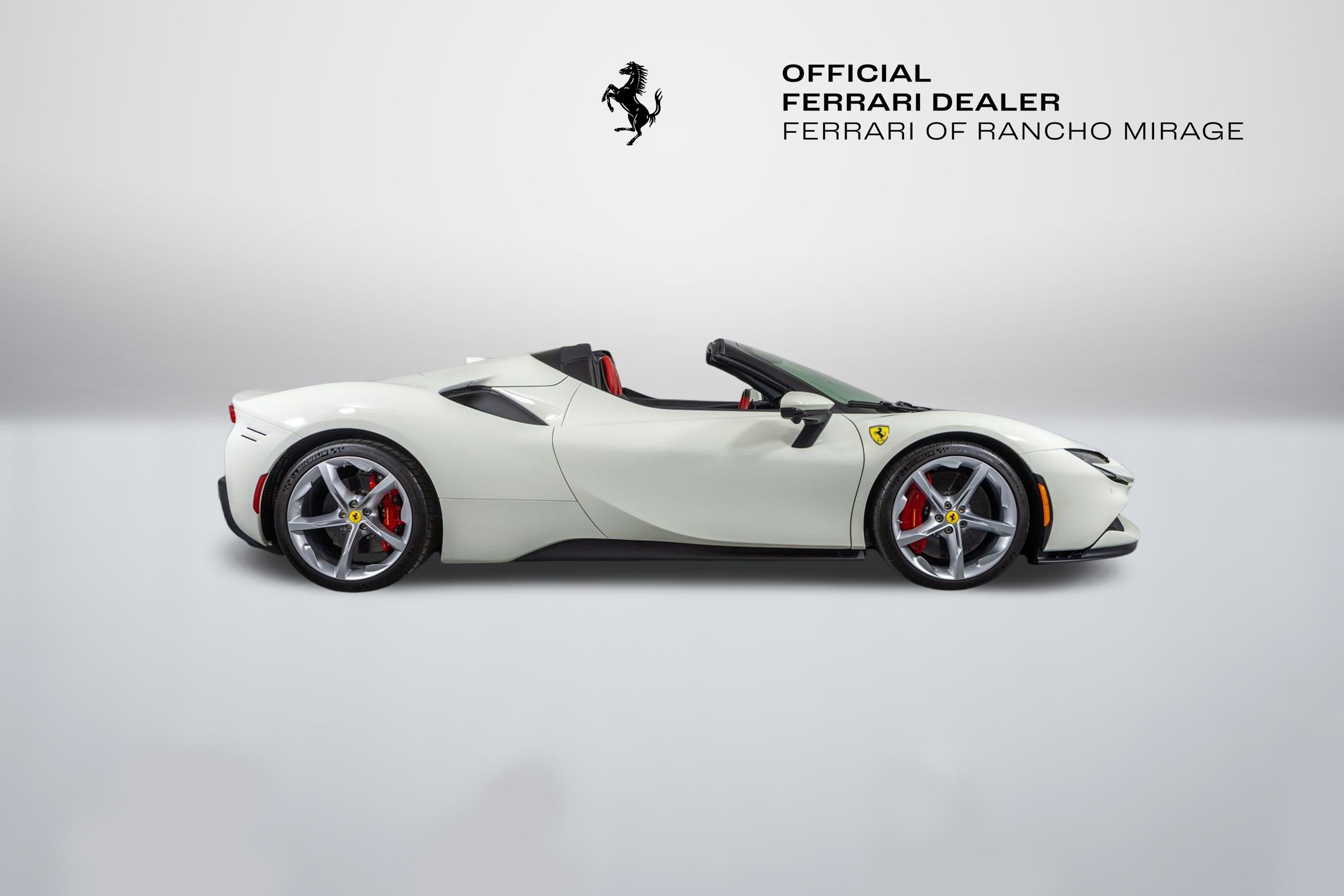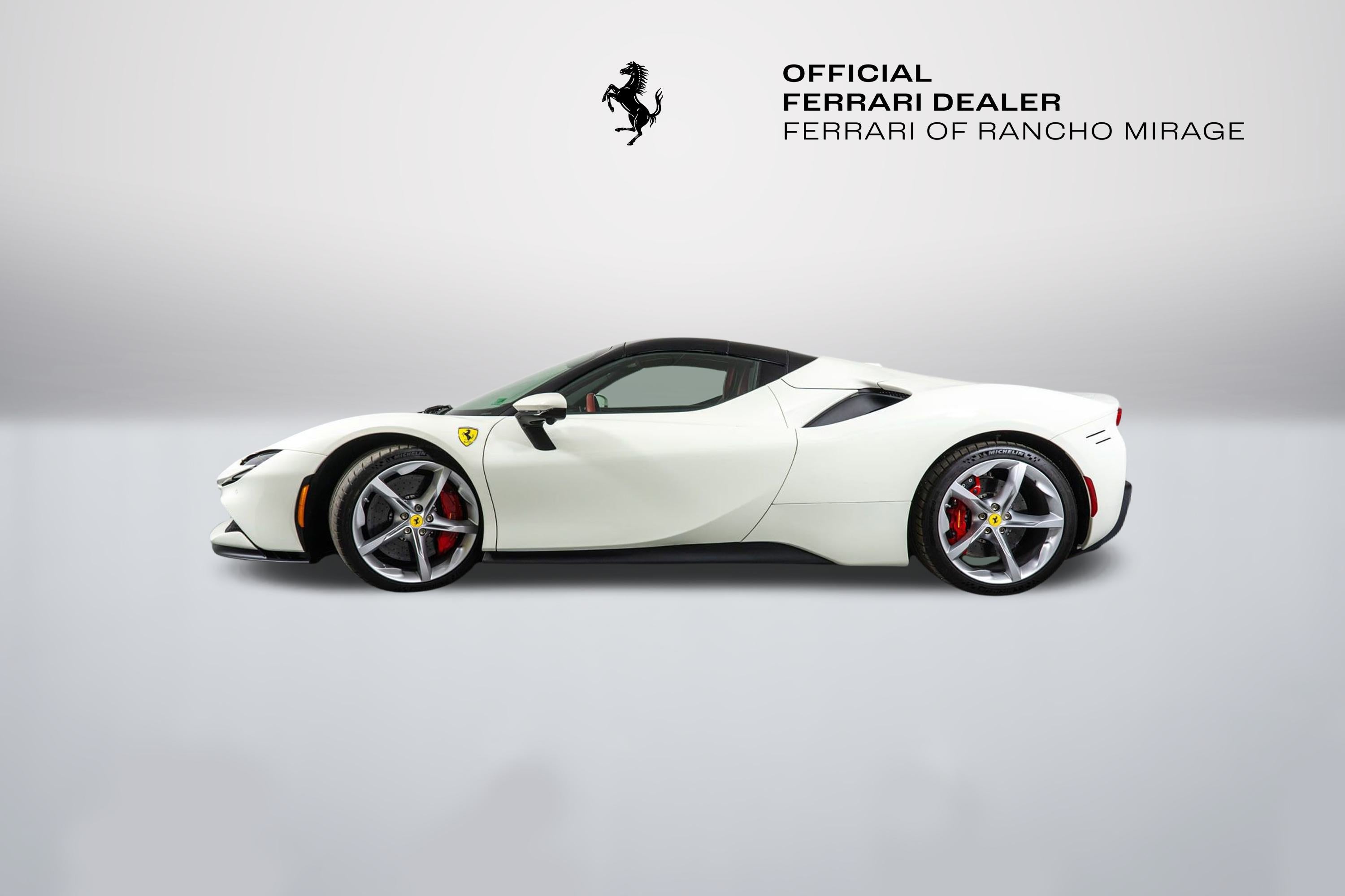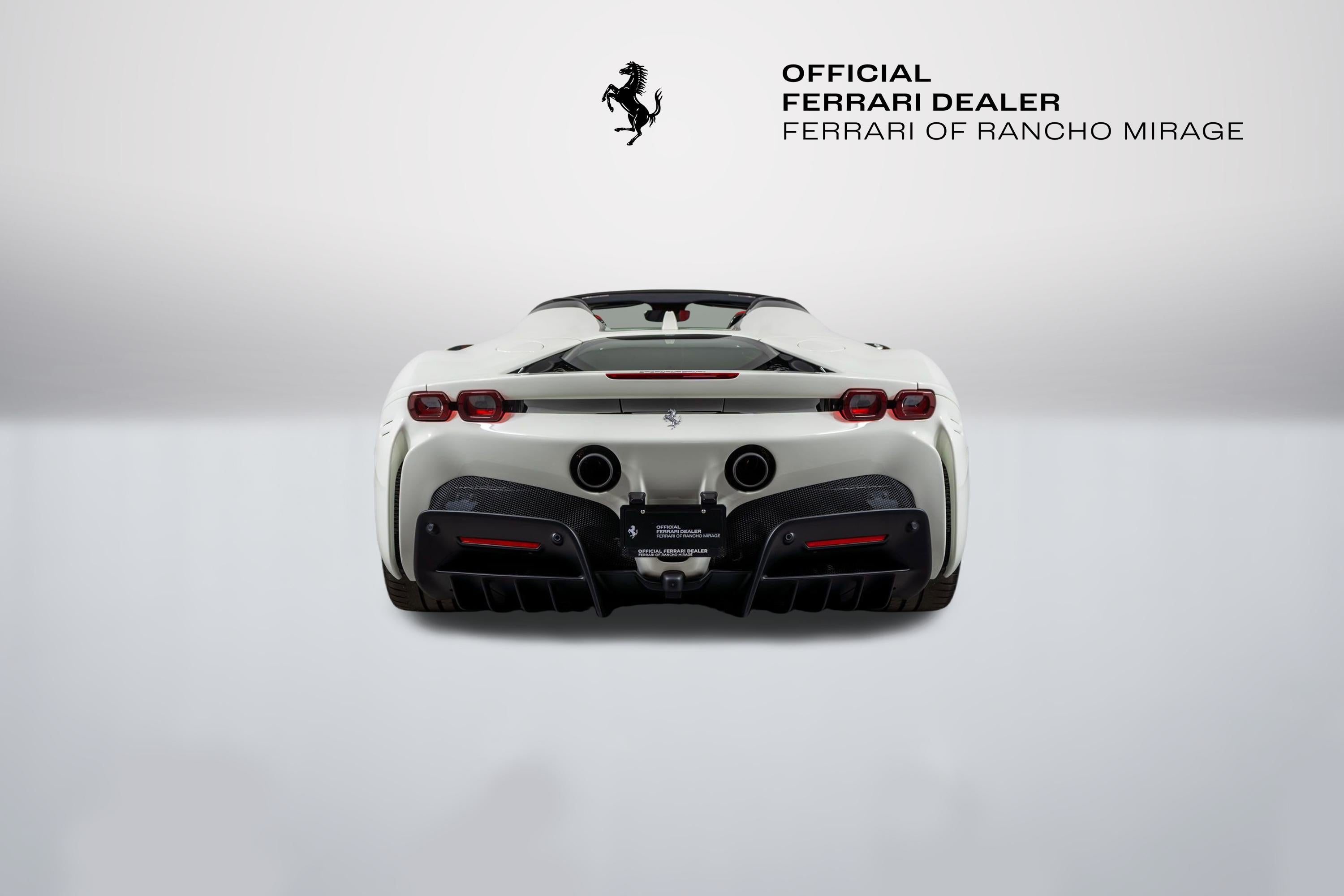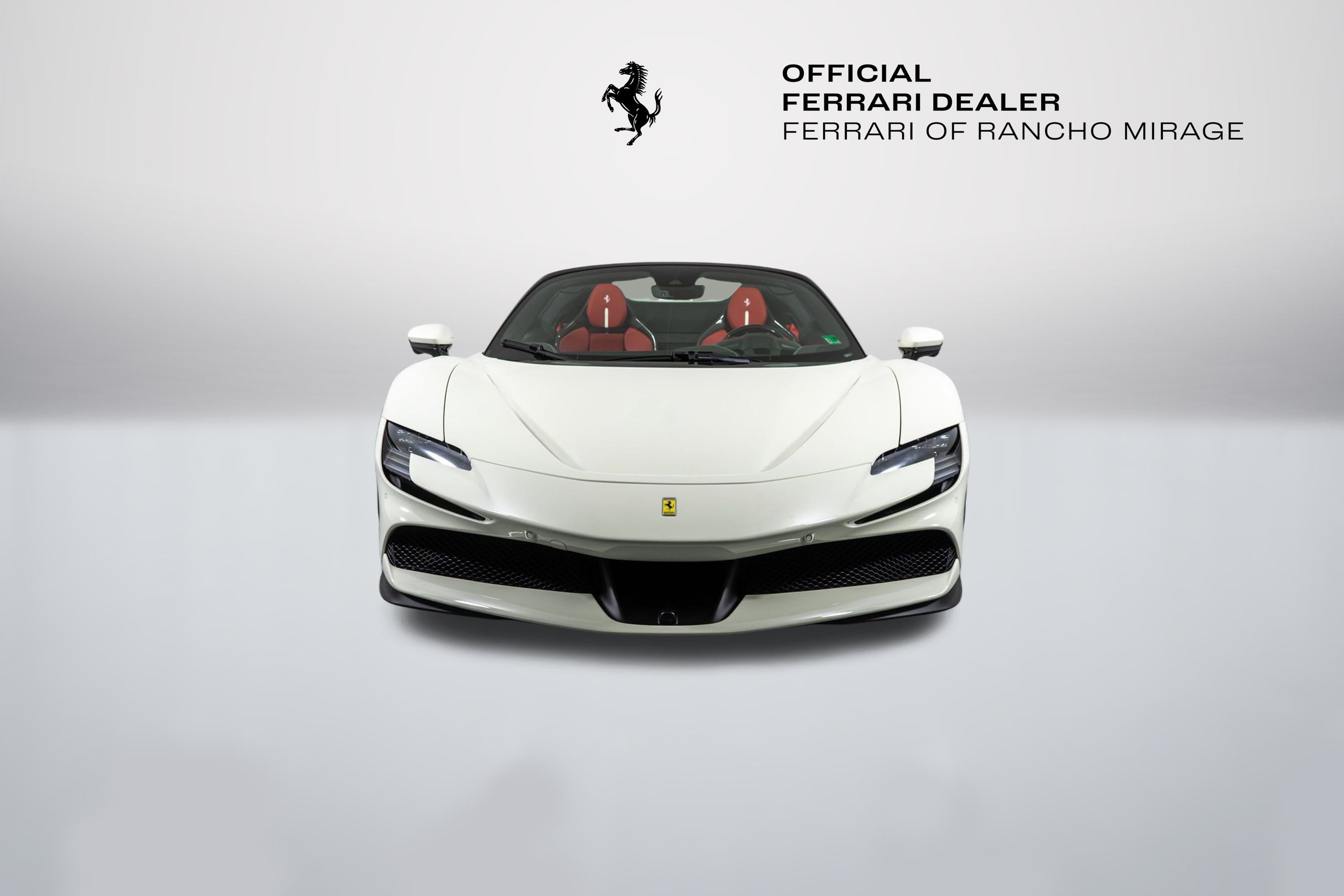 *Ferrari of Rancho Mirage* is thrilled to present this exceptional *Ferrari SF90 Spider*, finished in elegant *Bianco Avus* with striking *two-tone bodywork in Nero*, paired with a richly appointed *Rosso Ferrari leather interior* accented by bespoke details. As Ferraris flagship plug-in hybrid Spider, the SF90 delivers uncompromising performance with open-air exhilaration and cutting-edge innovation. This highly customized example showcases an extensive carbon fibre specification, racing-focused seating, and advanced driver assistance technology. Every element has been carefully selected to balance supercar intensity with refined luxury, making this SF90 Spider a truly standout configuration. ==== Performance & Engineering Highlights ==== * 986-hp Plug-In Hybrid V8 Powertrain with e-AWD capability * 8-Speed Dual-Clutch F1 Transmission for rapid, seamless gear changes * Front Lift System (ELEV) for improved usability * AFS Adaptive Frontlight System, USA Specification (AFSU) * Advanced Front Driving Camera (FCAM) with Back Radar (BRAD) * Surround View (SURR) with Front & Rear Parking Sensors (PAR2) * Red Brake Calipers (CALR) * Michelin Performance Tires (TYMX) ==== Exterior & Carbon Fibre Highlights ==== * Exterior Color: Bianco Avus * Two-Tone Bodywork (BIC2) with Nero DS 1250 Roof * 20" Painted Forged Wheels (RMSV) * Exterior Sill Kickplate in Carbon Fibre (OSK) * Carbon Fibre Door Panels (CIPZ) * Dashboard Inserts in Carbon Fibre (DATR) * Upper Centre Console in Carbon Fibre (CITZ) * Matte Black Front Bumper Insert (FBWS) * Scuderia Ferrari Shields on Fenders (LOGO) * Black Tailpipe Tips (EXAB) * Titanium Wheel Stud Bolts (TIWN) ==== Interior & Tailored Details ==== * Interior: Rosso Ferrari Leather with Extrarange White Leather Accents * Central Seat Panels in Alcantara (ALON) * Carbon Fibre Racing Seats, Size XL (RSCH) * Racing Seat Lifter (RSES) * Carbon Fibre Steering Wheel with LED Shift Lights (LEDS) * Carbon Fibre Driver Zone with LEDs (CIDL) * Leather Headliner in Nero (RUFT) * Coloured Passenger Compartment Details in Extrarange Leather (CLDT / CLDX) * Coloured Steering Wheel (STW1) * Coloured Special Stitching (STC2) * Coloured Seat Belts in Red (CSB1) * Cavallino Stitched on Headrests in Bianco Thread (EMPH) * Electrochromic Rear-View Mirror (MIR3) * Premium Hi-Fi Sound System (SNDH) * Apple CarPlay (ACPL) ==== Additional Details ==== * Model: Ferrari SF90 Spider * Serial Number: 317579 * Exterior Color: Bianco Avus * Interior Color: Rosso Ferrari with Extrarange Accents * Mats: Nero 152 * Specification: Ferrari Custom Specification (SPEC) * MyFerrari Connect Readiness Hardware (HWCO) * MyFerrari Connect: Not Activated (ZCOA) * VIN & Complete Option Sheet Available Upon Request The *Ferrari SF90 Spider* represents the pinnacle of Ferrari performancewhere electrified innovation meets breathtaking open-top design. Finished in Bianco Avus with a meticulously tailored Rosso Ferrari interior and extensive carbon fibre appointments, this example offers an extraordinary opportunity to own one of Maranellos most advanced and visually striking creations.
