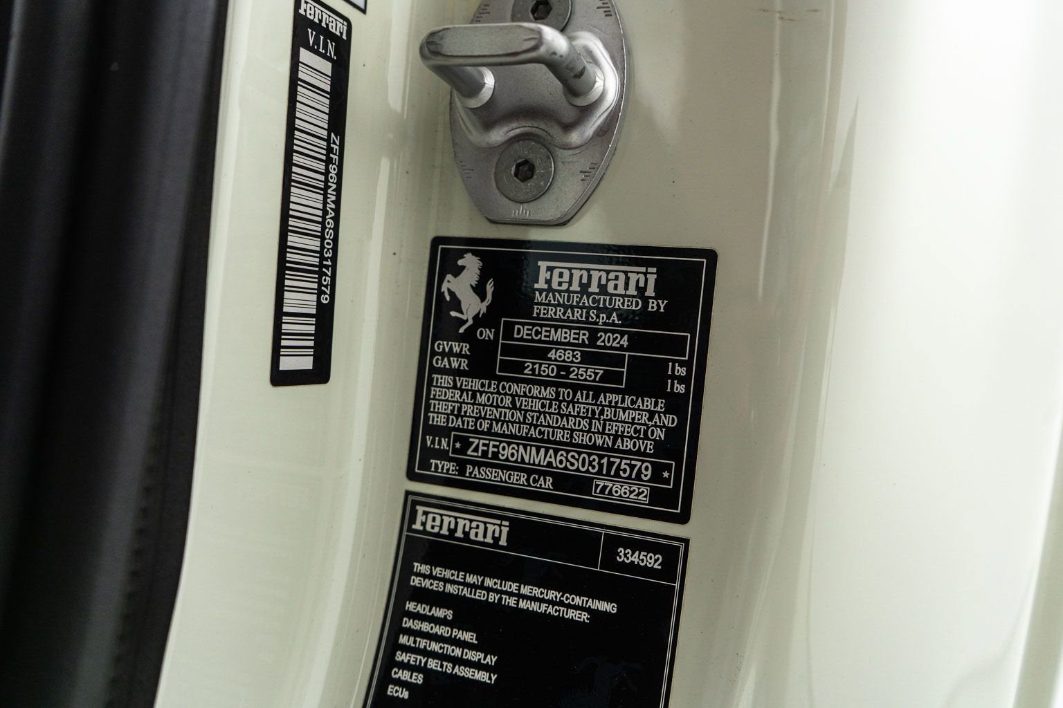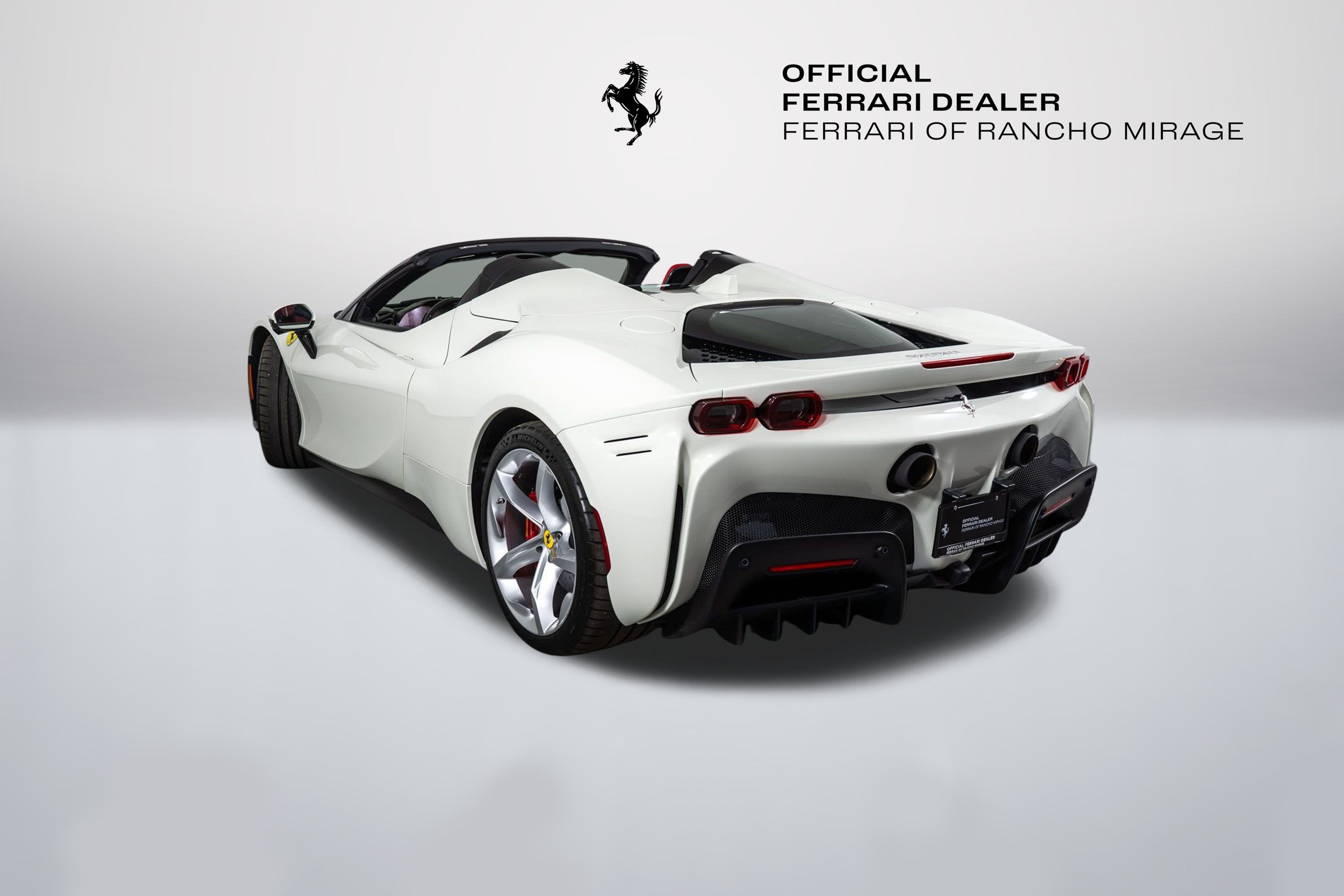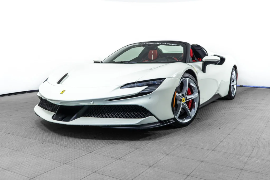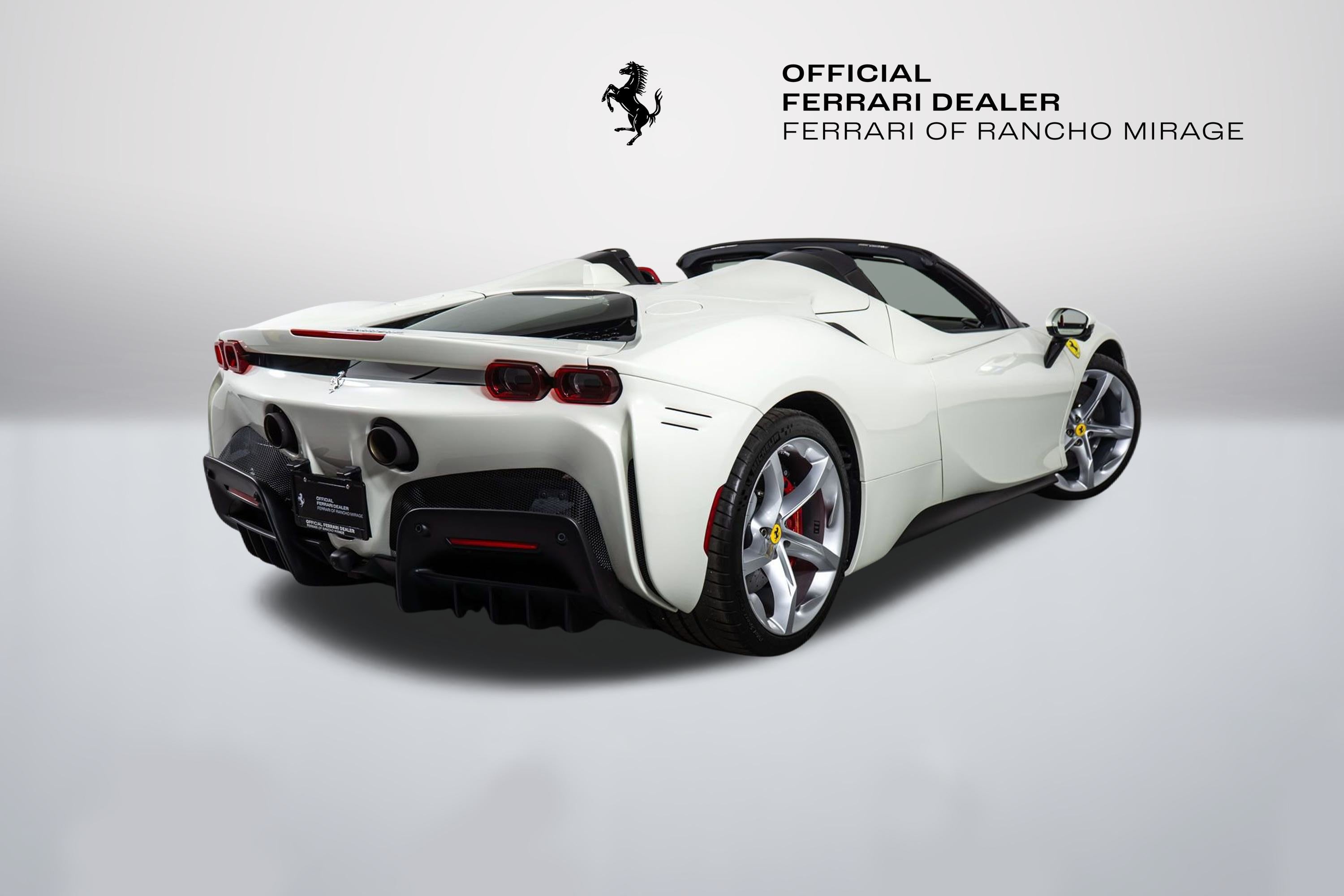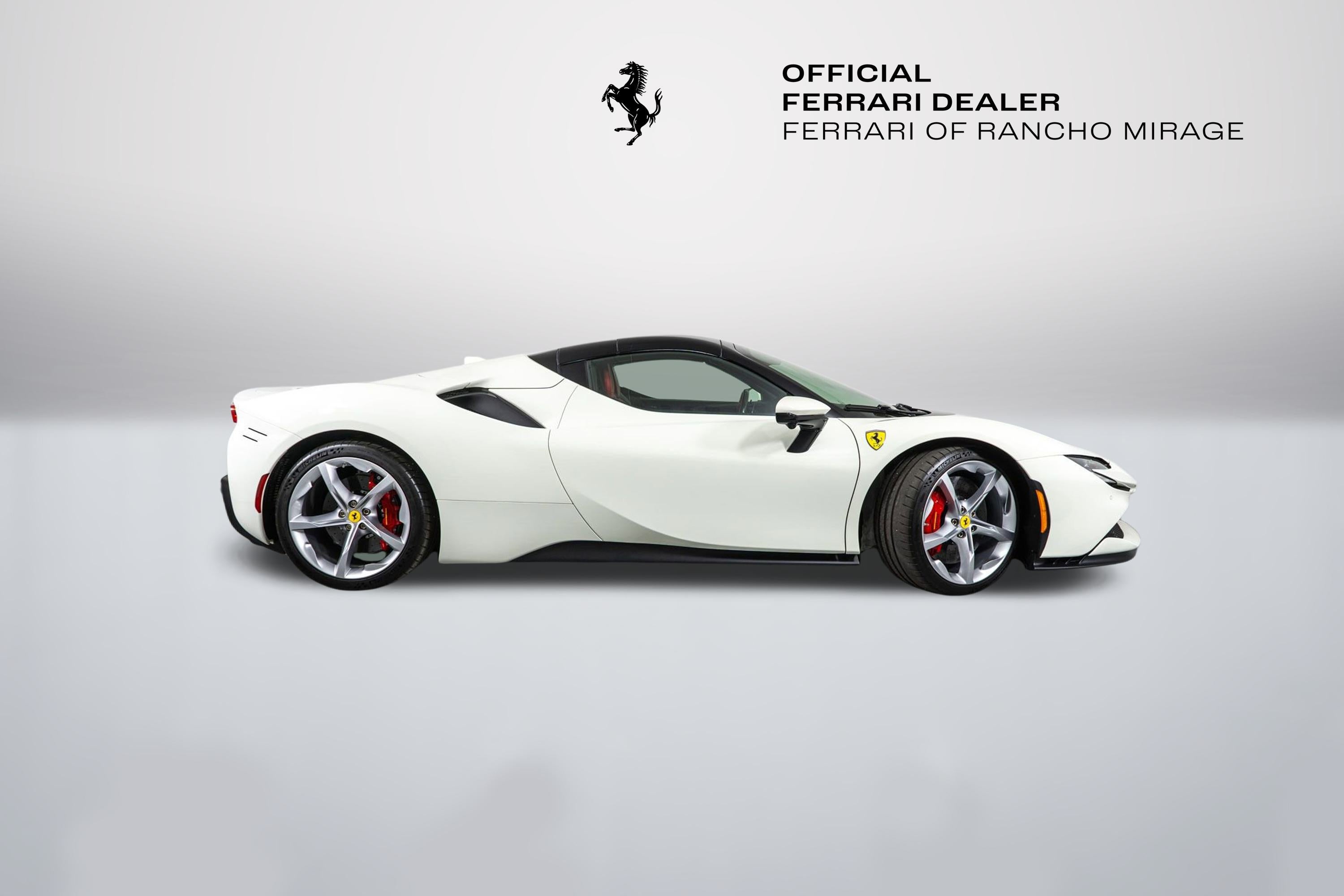 *Ferrari of Rancho Mirage* is thrilled to present this exceptional *Ferrari SF90 Spider*, finished in elegant *Bianco Avus* with striking *two-tone bodywork in Nero*, paired with a richly appointed *Rosso Ferrari leather interior* accented by bespoke details. As Ferraris flagship plug-in hybrid Spider, the SF90 delivers uncompromising performance with open-air exhilaration and cutting-edge innovation. This highly customized example showcases an extensive carbon fibre specification, racing-focused seating, and advanced driver assistance technology. Every element has been carefully selected to balance supercar intensity with refined luxury, making this SF90 Spider a truly standout configuration. ==== Performance & Engineering Highlights ==== * 986-hp Plug-In Hybrid V8 Powertrain with e-AWD capability * 8-Speed Dual-Clutch F1 Transmission for rapid, seamless gear changes * Front Lift System (ELEV) for improved usability * AFS Adaptive Frontlight System, USA Specification (AFSU) * Advanced Front Driving Camera (FCAM) with Back Radar (BRAD) * Surround View (SURR) with Front & Rear Parking Sensors (PAR2) * Red Brake Calipers (CALR) * Michelin Performance Tires (TYMX) ==== Exterior & Carbon Fibre Highlights ==== * Exterior Color: Bianco Avus * Two-Tone Bodywork (BIC2) with Nero DS 1250 Roof * 20" Painted Forged Wheels (RMSV) * Exterior Sill Kickplate in Carbon Fibre (OSK) * Carbon Fibre Door Panels (CIPZ) * Dashboard Inserts in Carbon Fibre (DATR) * Upper Centre Console in Carbon Fibre (CITZ) * Matte Black Front Bumper Insert (FBWS) * Scuderia Ferrari Shields on Fenders (LOGO) * Black Tailpipe Tips (EXAB) * Titanium Wheel Stud Bolts (TIWN) ==== Interior & Tailored Details ==== * Interior: Rosso Ferrari Leather with Extrarange White Leather Accents * Central Seat Panels in Alcantara (ALON) * Carbon Fibre Racing Seats, Size XL (RSCH) * Racing Seat Lifter (RSES) * Carbon Fibre Steering Wheel with LED Shift Lights (LEDS) * Carbon Fibre Driver Zone with LEDs (CIDL) * Leather Headliner in Nero (RUFT) * Coloured Passenger Compartment Details in Extrarange Leather (CLDT / CLDX) * Coloured Steering Wheel (STW1) * Coloured Special Stitching (STC2) * Coloured Seat Belts in Red (CSB1) * Cavallino Stitched on Headrests in Bianco Thread (EMPH) * Electrochromic Rear-View Mirror (MIR3) * Premium Hi-Fi Sound System (SNDH) * Apple CarPlay (ACPL) ==== Additional Details ==== * Model: Ferrari SF90 Spider * Serial Number: 317579 * Exterior Color: Bianco Avus * Interior Color: Rosso Ferrari with Extrarange Accents * Mats: Nero 152 * Specification: Ferrari Custom Specification (SPEC) * MyFerrari Connect Readiness Hardware (HWCO) * MyFerrari Connect: Not Activated (ZCOA) * VIN & Complete Option Sheet Available Upon Request The *Ferrari SF90 Spider* represents the pinnacle of Ferrari performancewhere electrified innovation meets breathtaking open-top design. Finished in Bianco Avus with a meticulously tailored Rosso Ferrari interior and extensive carbon fibre appointments, this example offers an extraordinary opportunity to own one of Maranellos most advanced and visually striking creations.