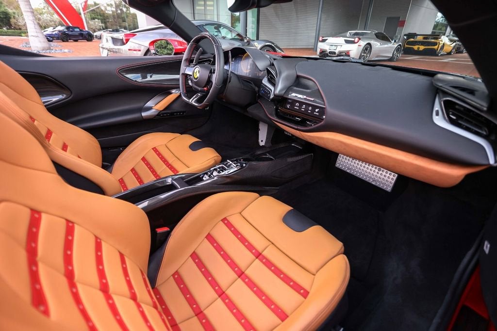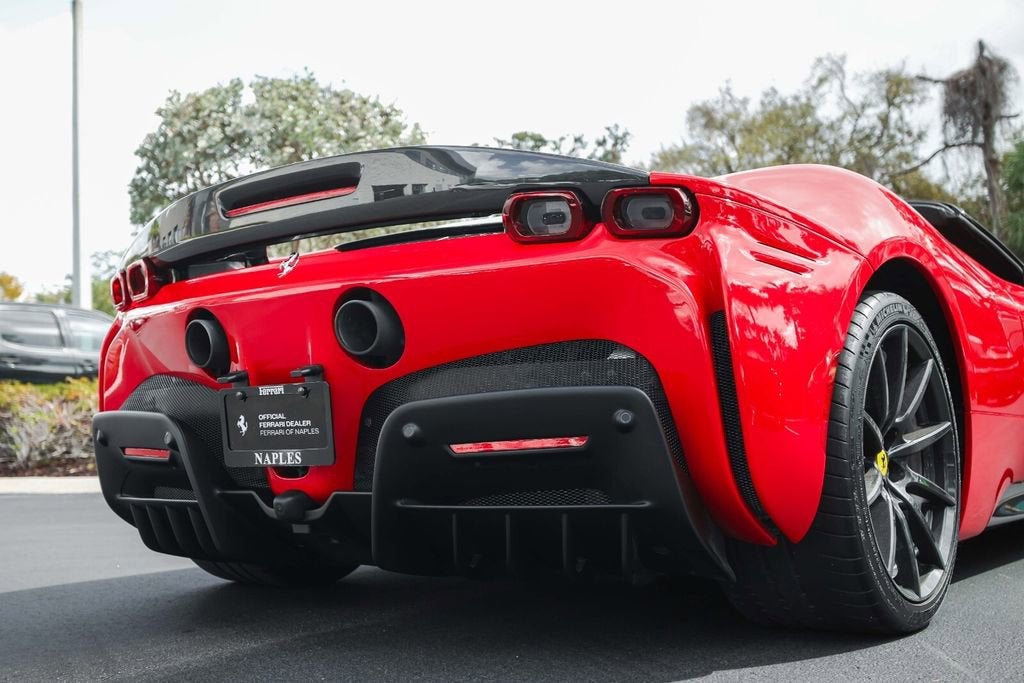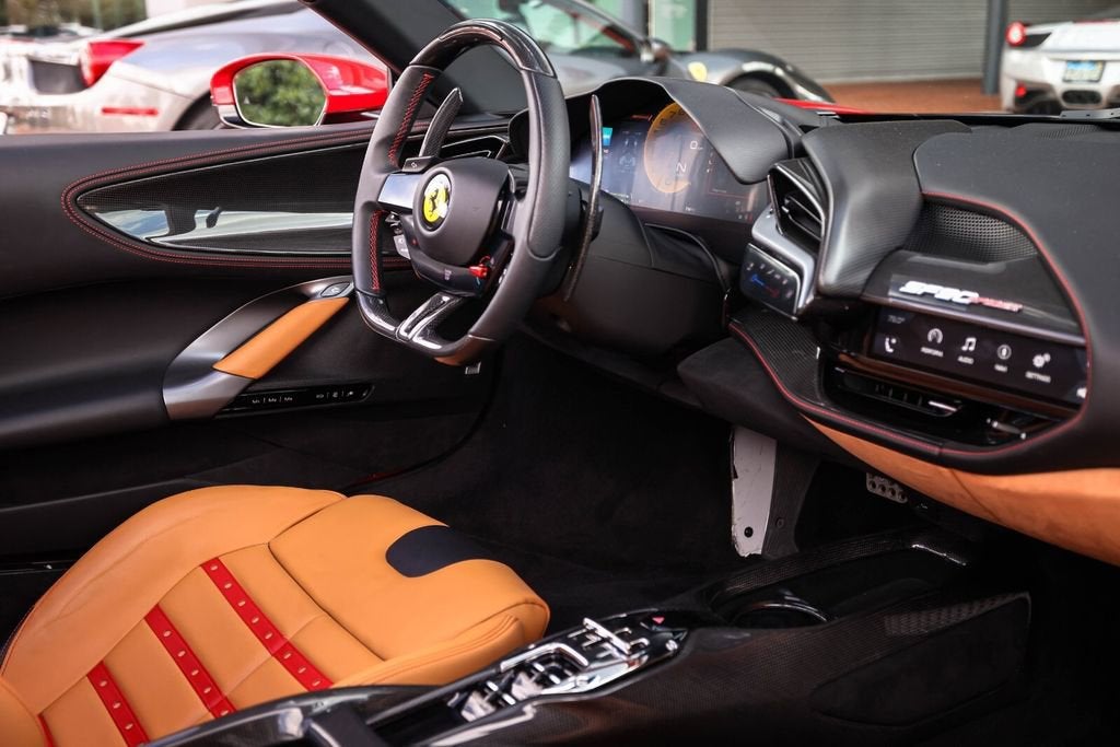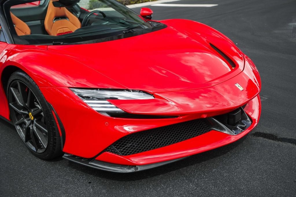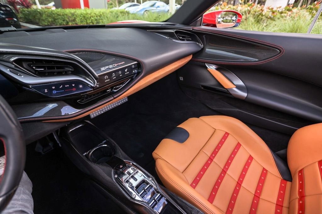 Ferrari of Naples is proud to present this 2023 Ferrari SF90 Spider Assetto Fiorano, finished in the iconic Rosso Corsa over Beige Tradizione leather, showing just 1,903 miles from new. This stunning example combines Ferraris most advanced hybrid technology with the track-focused enhancements of the Assetto Fiorano Package, creating one of the most extreme open-top Ferraris ever produced. This example is equipped with the highly desirable Assetto Fiorano Package, which brings significant track-oriented upgrades including weight reduction measures, advanced suspension calibration, and enhanced aerodynamics for maximum performance. The specification is further enhanced by extensive carbon fibre exterior and interior components, titanium wheel studs, and a dramatic two-tone Rosso Corsa/Nero body configuration. Inside, the cabin is finished in the elegant Beige Tradizione leather, contrasted with Rosso accents and Daytona seat inserts, creating a striking and classic Ferrari interior. With its low mileage, Assetto Fiorano specification, and exceptional factory options, this SF90 Spider represents a rare opportunity to own Ferraris most technologically advanced open-top supercar. Exterior Rosso Corsa Exterior with Nero Two-Tone Bodywork Assetto Fiorano Package Extended Fiorano Package Rosso Corsa Brake Calipers Carbon Fibre Lateral Engine Air Intakes Carbon Fibre Rear Screen Accents Carbon Fibre Under-Door Trim Carbon Fibre Front Tunnel Carbon Fibre Front & Lateral Spoilers Black Ceramic Tailpipes Titanium Wheel Studs Interior Beige Tradizione Leather Interior Daytona Style Seats Rosso Ferrari Daytona Seat Inserts Carbon Fibre Driver Zone with LED Shift Indicators Matte Carbon Fibre Upper Dashboard Carbon Fibre Dashboard Accents Rosso Contrast Stitching Embroidered Cavallino Headrests Full Electric Seats Black Carpets Equipment & Features Adaptive Cruise Control with Front Radar Apple CarPlay Blind Spot Detection Surround View Camera System Advanced Front Driving Camera Front Parking Sensors Electrochromic Exterior Mirrors Premium Hi-Fi Audio System MyFerrari Connect Readiness As the official Ferrari dealer of Southwest Florida, Ferrari of Naples offers an exclusive selection of Ferrari models, backed by unparalleled service and expertise. Our commitment to excellence ensures that each vehicle meets the highest standards of quality and performance. To schedule a private viewing or request a personalized video tour of this 2023 Ferrari SF90 Spider, please contact us: Phone: (239) 256-1400 Email: smora@newcountry.