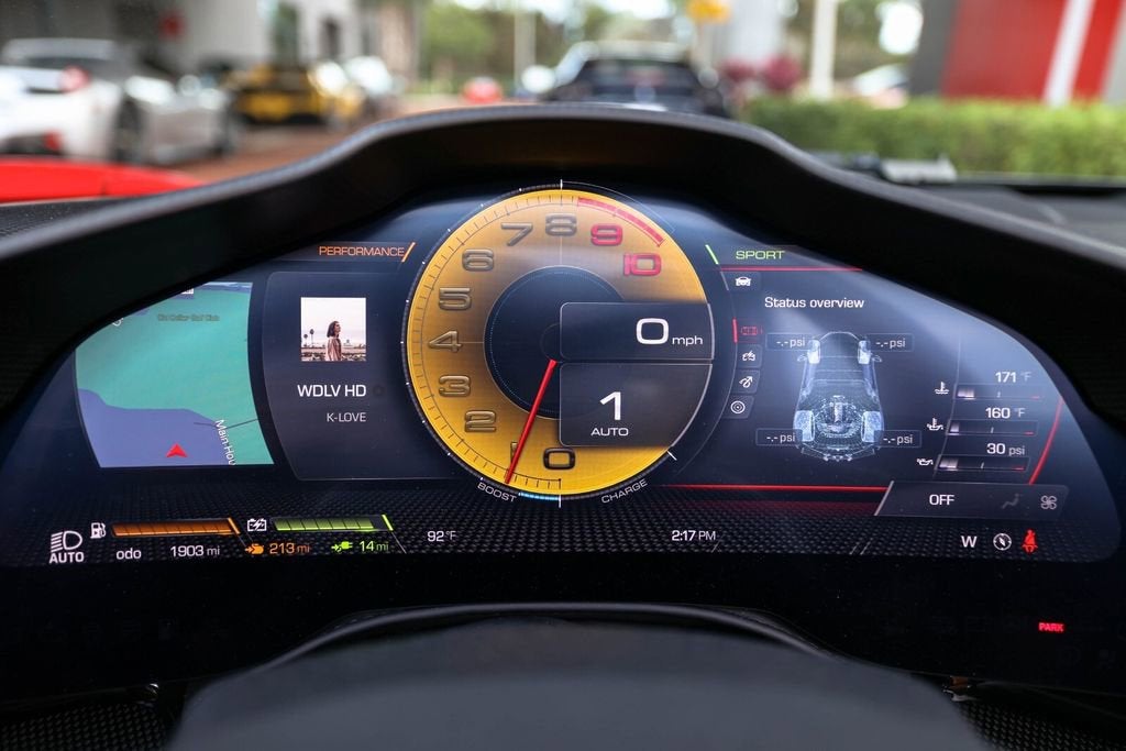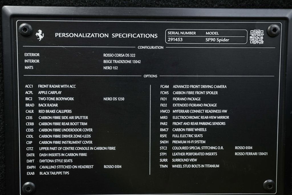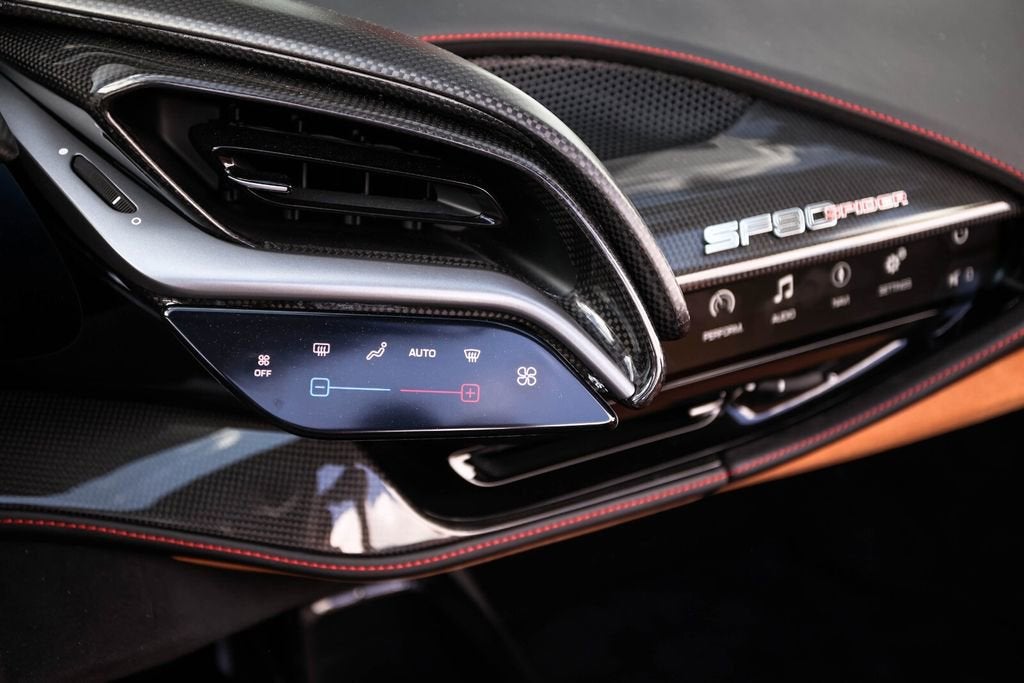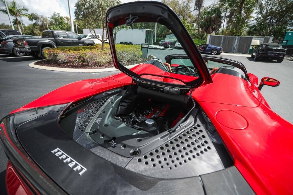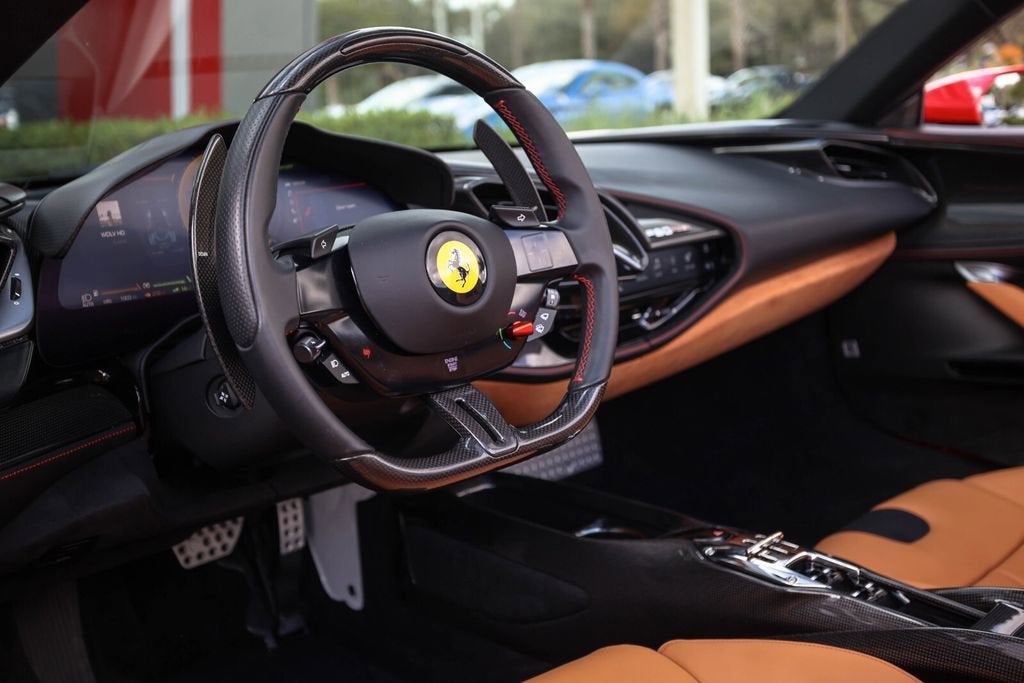 Ferrari of Naples is proud to present this 2023 Ferrari SF90 Spider Assetto Fiorano, finished in the iconic Rosso Corsa over Beige Tradizione leather, showing just 1,903 miles from new. This stunning example combines Ferraris most advanced hybrid technology with the track-focused enhancements of the Assetto Fiorano Package, creating one of the most extreme open-top Ferraris ever produced. This example is equipped with the highly desirable Assetto Fiorano Package, which brings significant track-oriented upgrades including weight reduction measures, advanced suspension calibration, and enhanced aerodynamics for maximum performance. The specification is further enhanced by extensive carbon fibre exterior and interior components, titanium wheel studs, and a dramatic two-tone Rosso Corsa/Nero body configuration. Inside, the cabin is finished in the elegant Beige Tradizione leather, contrasted with Rosso accents and Daytona seat inserts, creating a striking and classic Ferrari interior. With its low mileage, Assetto Fiorano specification, and exceptional factory options, this SF90 Spider represents a rare opportunity to own Ferraris most technologically advanced open-top supercar. Exterior Rosso Corsa Exterior with Nero Two-Tone Bodywork Assetto Fiorano Package Extended Fiorano Package Rosso Corsa Brake Calipers Carbon Fibre Lateral Engine Air Intakes Carbon Fibre Rear Screen Accents Carbon Fibre Under-Door Trim Carbon Fibre Front Tunnel Carbon Fibre Front & Lateral Spoilers Black Ceramic Tailpipes Titanium Wheel Studs Interior Beige Tradizione Leather Interior Daytona Style Seats Rosso Ferrari Daytona Seat Inserts Carbon Fibre Driver Zone with LED Shift Indicators Matte Carbon Fibre Upper Dashboard Carbon Fibre Dashboard Accents Rosso Contrast Stitching Embroidered Cavallino Headrests Full Electric Seats Black Carpets Equipment & Features Adaptive Cruise Control with Front Radar Apple CarPlay Blind Spot Detection Surround View Camera System Advanced Front Driving Camera Front Parking Sensors Electrochromic Exterior Mirrors Premium Hi-Fi Audio System MyFerrari Connect Readiness As the official Ferrari dealer of Southwest Florida, Ferrari of Naples offers an exclusive selection of Ferrari models, backed by unparalleled service and expertise. Our commitment to excellence ensures that each vehicle meets the highest standards of quality and performance. To schedule a private viewing or request a personalized video tour of this 2023 Ferrari SF90 Spider, please contact us: Phone: (239) 256-1400 Email: smora@newcountry.