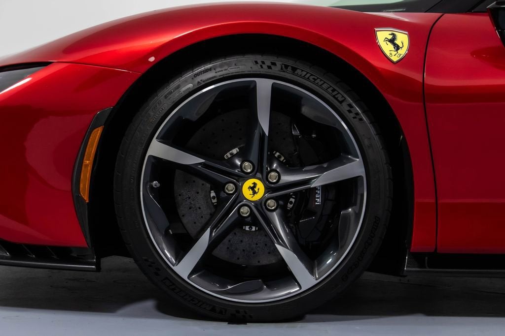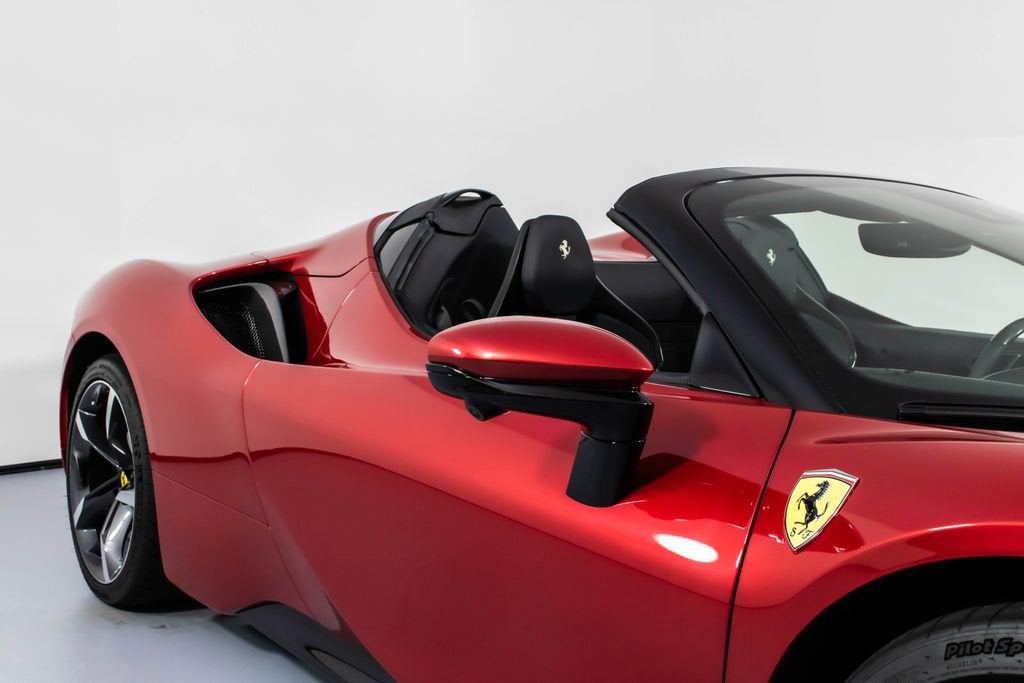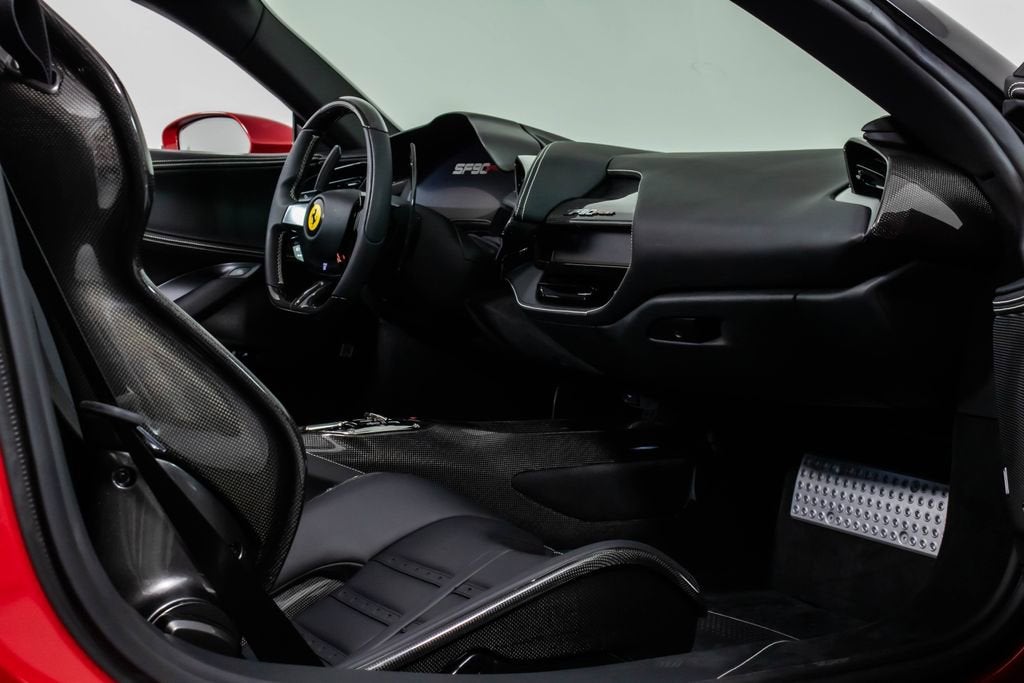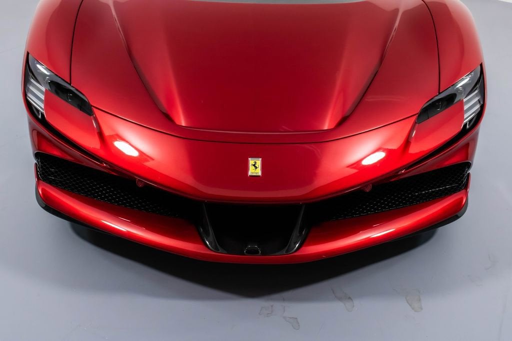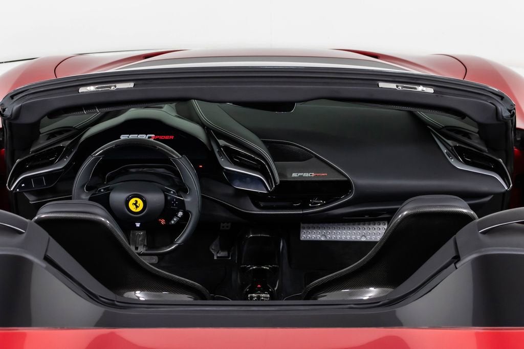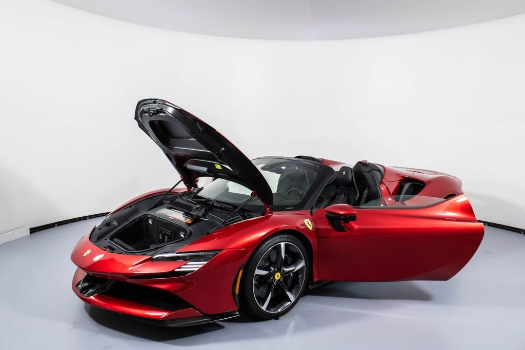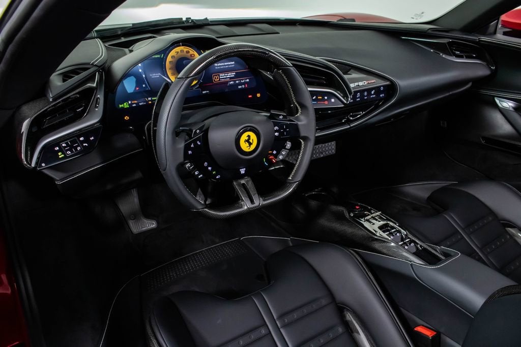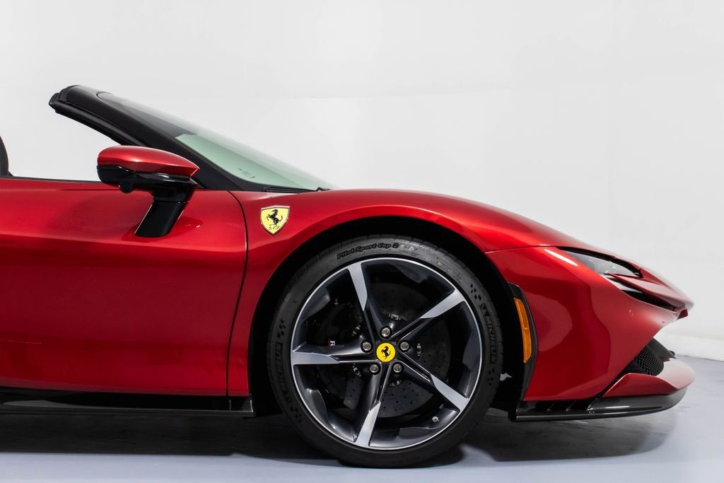 290005 Exterior: Rosso Magma Interior: Nero Mats: Nero 2023 Ferrari SF90 Spider Options: Apple CarPlay Sistema AFS America Carrozzeria Bicolore in Nero Back Radar Caliper Freni Nero Lucido Splitter Aria Lat. In Carbonio Allest.Vano Motore in Carbonio Estrattore Post. in Carbonio Rivest. Sottoporta in Carbonio Zona Guida in Carbonio + LEDS Battitacco Esterno in Carbonio Tunnel Superiore in Carbonio Tappeti Pelle/Alcantara Stile1 Inserti Plancia in Carbonio Sollevatore Di Disimpegno Cavall Cuciti Su Poggiatesta in Grigio Chiaro Codini Di Scarico in Titanio Advanced Front Driving Camera Spoiler Anteriore in Carbonio Home Link Hw Readiness MyFerrari Connect Scudetti 'Scuderia Ferrari' Specchi Elettrocromici Esterni Sensori Parcheggio Ant.E Post Inserti Abitacolo Pelle Color in Nero Colori Speciali 4 Strati Sedili Racing Daytona Alzasedil Sportivo Cerchi Forgiati Diamantati Sistema HiFi Premium Allestimenti Speciali Colore Cuciture Spe Su Rich. Grigio Chiaro Surround View Colonnette Ruota in Titanio This 2023 Ferrari SF90 Spider is a breathtaking open-top hybrid supercar finished in a stunning four-layer Rosso Magma with Nero two-tone bodywork, delivering an unmistakable presence on the road. The Nero interior is refined with Grigio Chiaro contrast stitching and a matching Cavallino embroidered on the headrests, while Daytona racing seats with a seat lifter ensure both comfort and track-focused support. Extensive carbon fiber elementsincluding the side air splitters, engine bay, rear diffuser, underdoor covers, driver zone with LED steering wheel, dashboard inserts, upper tunnel, and front spoilerhighlight the cars cutting-edge engineering and lightweight construction. Titanium tailpipe tips and forged diamond wheels further enhance its aggressive stance. Equipped with advanced features such as Apple CarPlay, AFS system, surround view, front lift system, advanced front driving camera, electrochromic mirrors, and front and rear parking sensors, this SF90 Spider blends everyday usability with extreme performance. Finished with Scuderia Ferrari shields, a premium Hi-Fi system, and titanium wheel bolts, this highly optioned example represents the pinnacle of Ferraris hybrid innovation and open-air driving exhilaration.