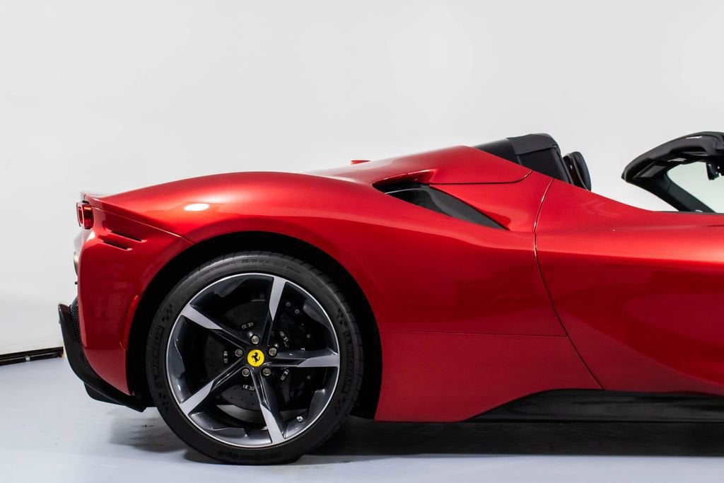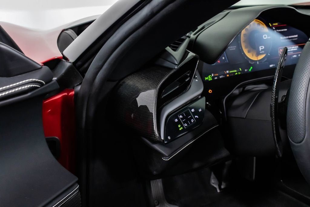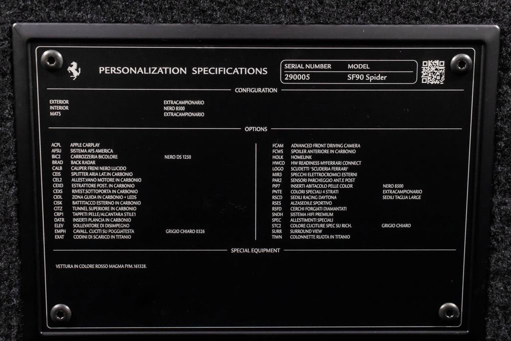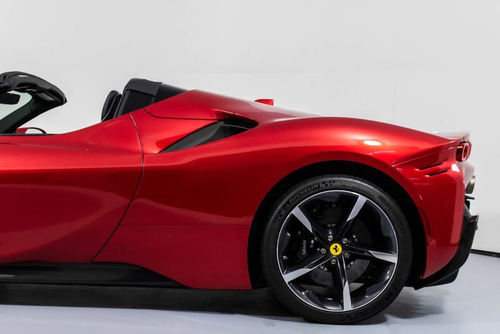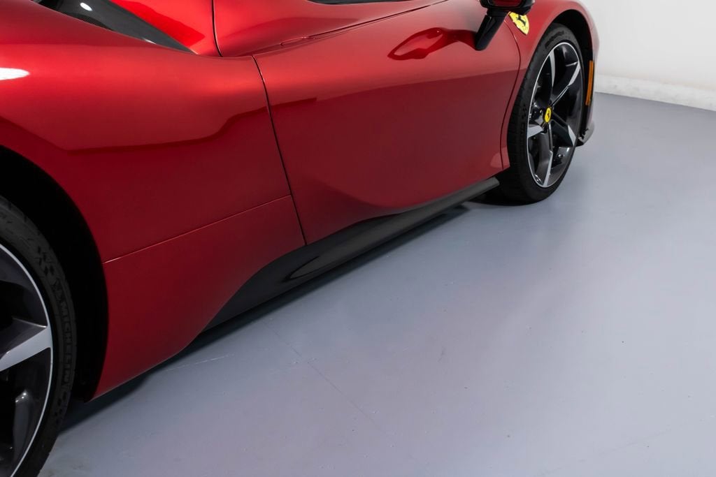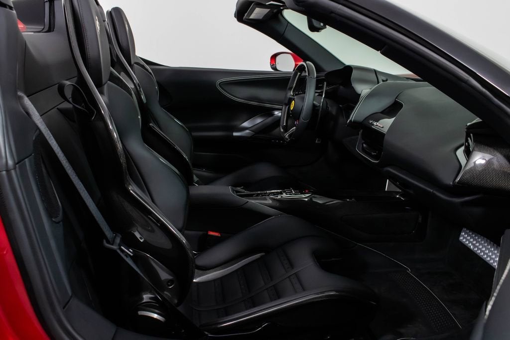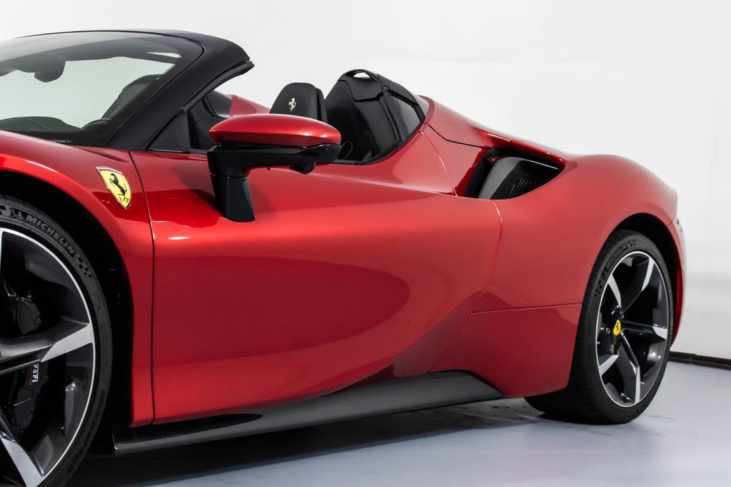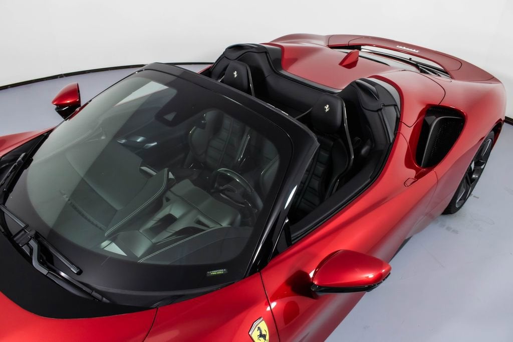 290005 Exterior: Rosso Magma Interior: Nero Mats: Nero 2023 Ferrari SF90 Spider Options: Apple CarPlay Sistema AFS America Carrozzeria Bicolore in Nero Back Radar Caliper Freni Nero Lucido Splitter Aria Lat. In Carbonio Allest.Vano Motore in Carbonio Estrattore Post. in Carbonio Rivest. Sottoporta in Carbonio Zona Guida in Carbonio + LEDS Battitacco Esterno in Carbonio Tunnel Superiore in Carbonio Tappeti Pelle/Alcantara Stile1 Inserti Plancia in Carbonio Sollevatore Di Disimpegno Cavall Cuciti Su Poggiatesta in Grigio Chiaro Codini Di Scarico in Titanio Advanced Front Driving Camera Spoiler Anteriore in Carbonio Home Link Hw Readiness MyFerrari Connect Scudetti 'Scuderia Ferrari' Specchi Elettrocromici Esterni Sensori Parcheggio Ant.E Post Inserti Abitacolo Pelle Color in Nero Colori Speciali 4 Strati Sedili Racing Daytona Alzasedil Sportivo Cerchi Forgiati Diamantati Sistema HiFi Premium Allestimenti Speciali Colore Cuciture Spe Su Rich. Grigio Chiaro Surround View Colonnette Ruota in Titanio This 2023 Ferrari SF90 Spider is a breathtaking open-top hybrid supercar finished in a stunning four-layer Rosso Magma with Nero two-tone bodywork, delivering an unmistakable presence on the road. The Nero interior is refined with Grigio Chiaro contrast stitching and a matching Cavallino embroidered on the headrests, while Daytona racing seats with a seat lifter ensure both comfort and track-focused support. Extensive carbon fiber elementsincluding the side air splitters, engine bay, rear diffuser, underdoor covers, driver zone with LED steering wheel, dashboard inserts, upper tunnel, and front spoilerhighlight the cars cutting-edge engineering and lightweight construction. Titanium tailpipe tips and forged diamond wheels further enhance its aggressive stance. Equipped with advanced features such as Apple CarPlay, AFS system, surround view, front lift system, advanced front driving camera, electrochromic mirrors, and front and rear parking sensors, this SF90 Spider blends everyday usability with extreme performance. Finished with Scuderia Ferrari shields, a premium Hi-Fi system, and titanium wheel bolts, this highly optioned example represents the pinnacle of Ferraris hybrid innovation and open-air driving exhilaration.