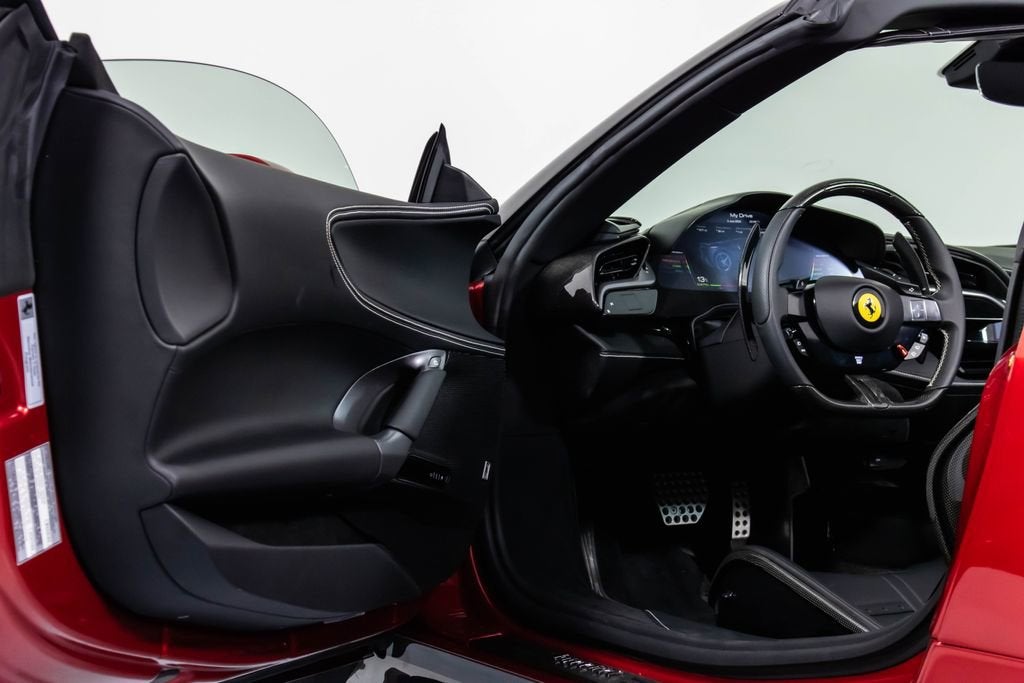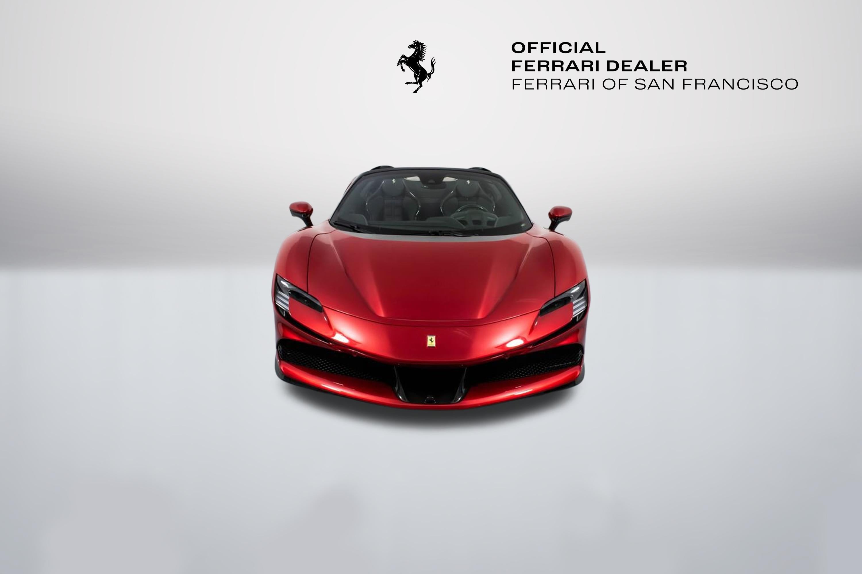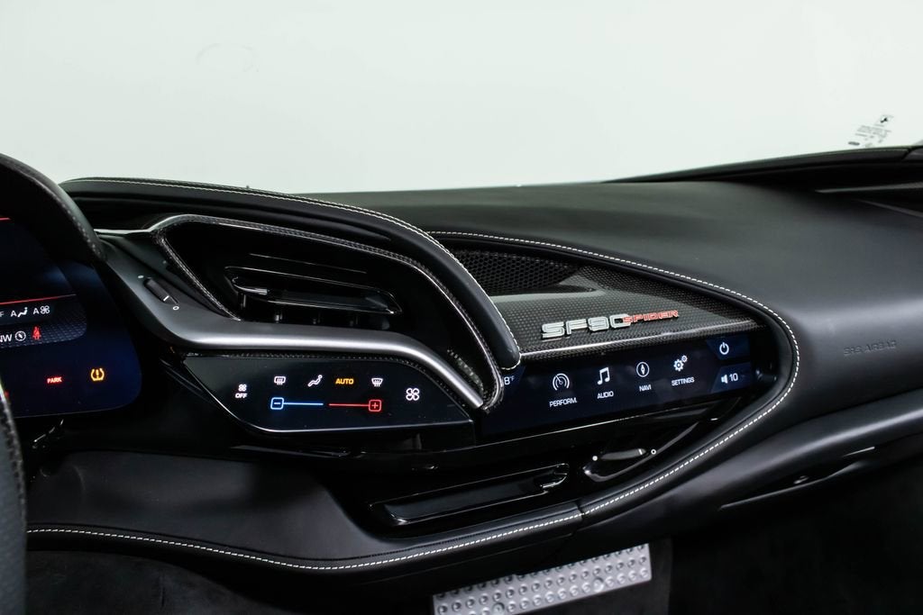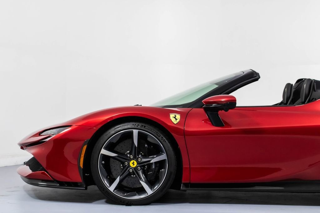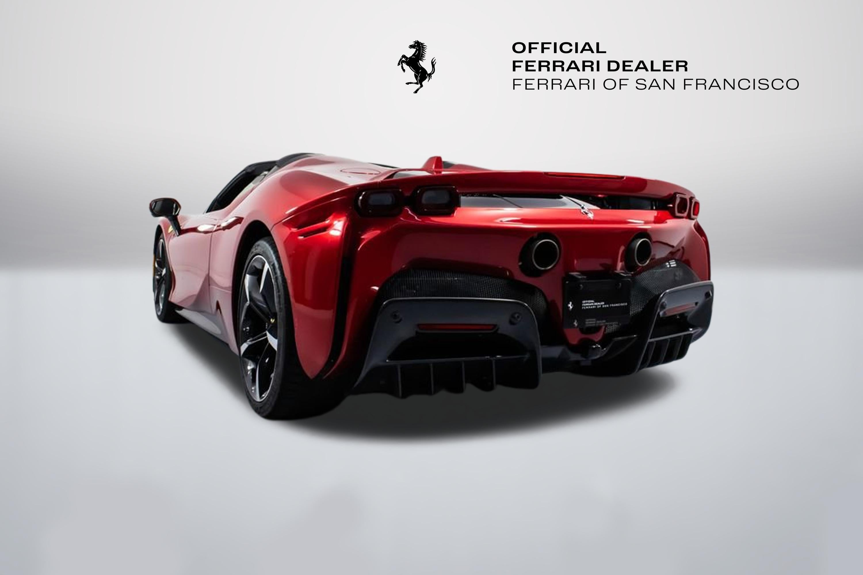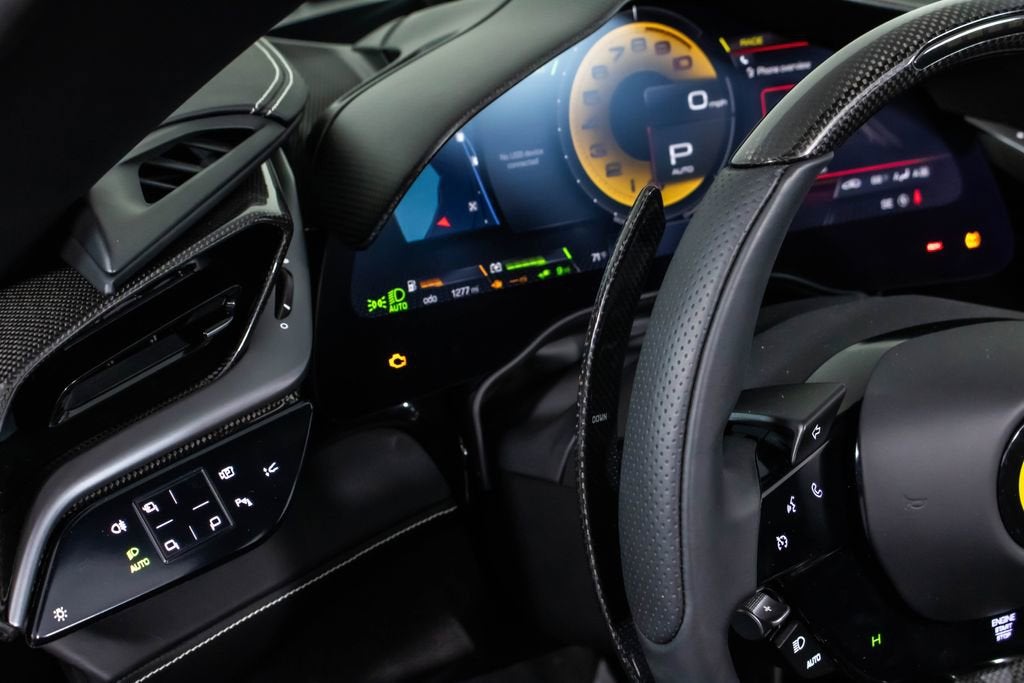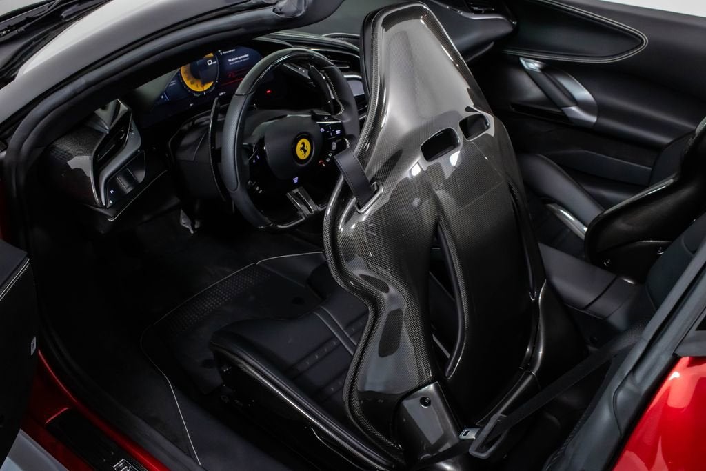 290005 Exterior: Rosso Magma Interior: Nero Mats: Nero 2023 Ferrari SF90 Spider Options: Apple CarPlay Sistema AFS America Carrozzeria Bicolore in Nero Back Radar Caliper Freni Nero Lucido Splitter Aria Lat. In Carbonio Allest.Vano Motore in Carbonio Estrattore Post. in Carbonio Rivest. Sottoporta in Carbonio Zona Guida in Carbonio + LEDS Battitacco Esterno in Carbonio Tunnel Superiore in Carbonio Tappeti Pelle/Alcantara Stile1 Inserti Plancia in Carbonio Sollevatore Di Disimpegno Cavall Cuciti Su Poggiatesta in Grigio Chiaro Codini Di Scarico in Titanio Advanced Front Driving Camera Spoiler Anteriore in Carbonio Home Link Hw Readiness MyFerrari Connect Scudetti 'Scuderia Ferrari' Specchi Elettrocromici Esterni Sensori Parcheggio Ant.E Post Inserti Abitacolo Pelle Color in Nero Colori Speciali 4 Strati Sedili Racing Daytona Alzasedil Sportivo Cerchi Forgiati Diamantati Sistema HiFi Premium Allestimenti Speciali Colore Cuciture Spe Su Rich. Grigio Chiaro Surround View Colonnette Ruota in Titanio This 2023 Ferrari SF90 Spider is a breathtaking open-top hybrid supercar finished in a stunning four-layer Rosso Magma with Nero two-tone bodywork, delivering an unmistakable presence on the road. The Nero interior is refined with Grigio Chiaro contrast stitching and a matching Cavallino embroidered on the headrests, while Daytona racing seats with a seat lifter ensure both comfort and track-focused support. Extensive carbon fiber elementsincluding the side air splitters, engine bay, rear diffuser, underdoor covers, driver zone with LED steering wheel, dashboard inserts, upper tunnel, and front spoilerhighlight the cars cutting-edge engineering and lightweight construction. Titanium tailpipe tips and forged diamond wheels further enhance its aggressive stance. Equipped with advanced features such as Apple CarPlay, AFS system, surround view, front lift system, advanced front driving camera, electrochromic mirrors, and front and rear parking sensors, this SF90 Spider blends everyday usability with extreme performance. Finished with Scuderia Ferrari shields, a premium Hi-Fi system, and titanium wheel bolts, this highly optioned example represents the pinnacle of Ferraris hybrid innovation and open-air driving exhilaration.
