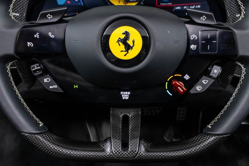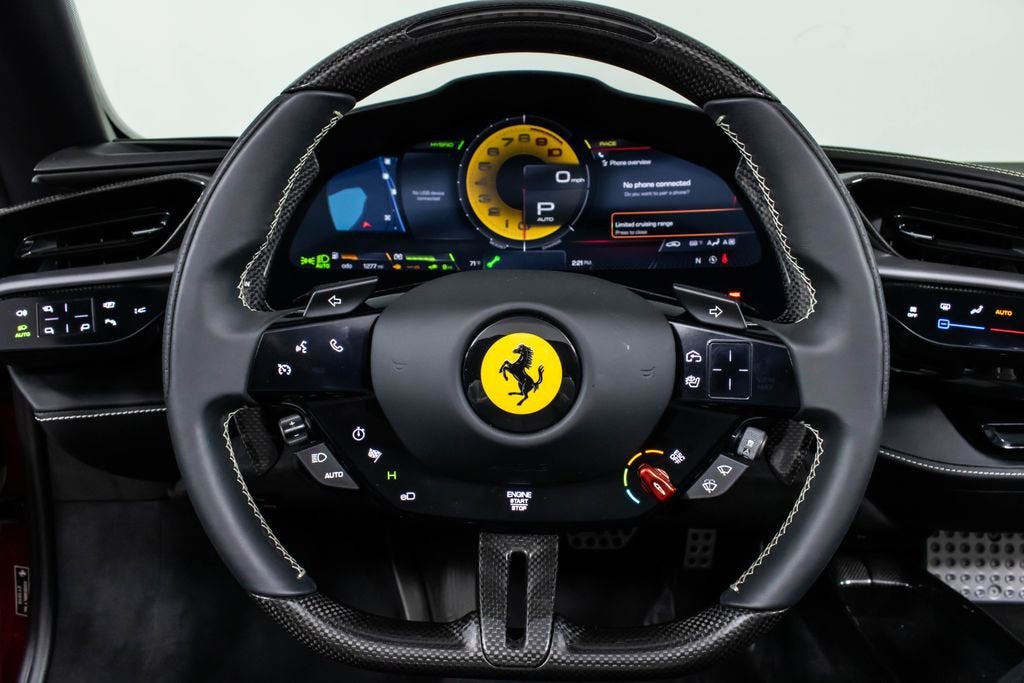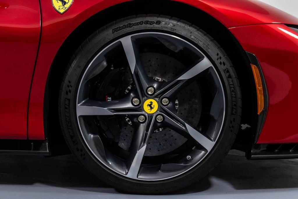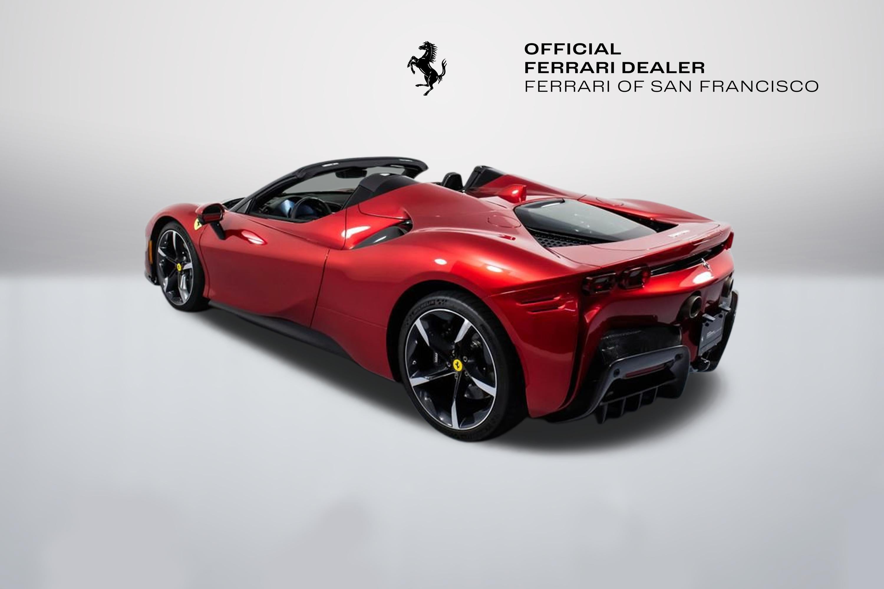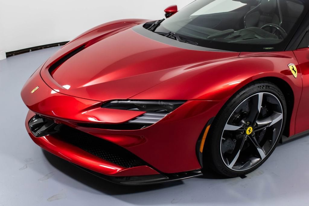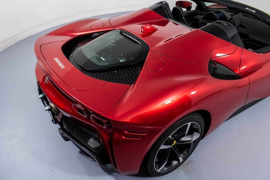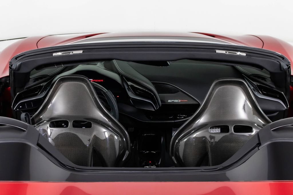 290005 Exterior: Rosso Magma Interior: Nero Mats: Nero 2023 Ferrari SF90 Spider Options: Apple CarPlay Sistema AFS America Carrozzeria Bicolore in Nero Back Radar Caliper Freni Nero Lucido Splitter Aria Lat. In Carbonio Allest.Vano Motore in Carbonio Estrattore Post. in Carbonio Rivest. Sottoporta in Carbonio Zona Guida in Carbonio + LEDS Battitacco Esterno in Carbonio Tunnel Superiore in Carbonio Tappeti Pelle/Alcantara Stile1 Inserti Plancia in Carbonio Sollevatore Di Disimpegno Cavall Cuciti Su Poggiatesta in Grigio Chiaro Codini Di Scarico in Titanio Advanced Front Driving Camera Spoiler Anteriore in Carbonio Home Link Hw Readiness MyFerrari Connect Scudetti 'Scuderia Ferrari' Specchi Elettrocromici Esterni Sensori Parcheggio Ant.E Post Inserti Abitacolo Pelle Color in Nero Colori Speciali 4 Strati Sedili Racing Daytona Alzasedil Sportivo Cerchi Forgiati Diamantati Sistema HiFi Premium Allestimenti Speciali Colore Cuciture Spe Su Rich. Grigio Chiaro Surround View Colonnette Ruota in Titanio This 2023 Ferrari SF90 Spider is a breathtaking open-top hybrid supercar finished in a stunning four-layer Rosso Magma with Nero two-tone bodywork, delivering an unmistakable presence on the road. The Nero interior is refined with Grigio Chiaro contrast stitching and a matching Cavallino embroidered on the headrests, while Daytona racing seats with a seat lifter ensure both comfort and track-focused support. Extensive carbon fiber elementsincluding the side air splitters, engine bay, rear diffuser, underdoor covers, driver zone with LED steering wheel, dashboard inserts, upper tunnel, and front spoilerhighlight the cars cutting-edge engineering and lightweight construction. Titanium tailpipe tips and forged diamond wheels further enhance its aggressive stance. Equipped with advanced features such as Apple CarPlay, AFS system, surround view, front lift system, advanced front driving camera, electrochromic mirrors, and front and rear parking sensors, this SF90 Spider blends everyday usability with extreme performance. Finished with Scuderia Ferrari shields, a premium Hi-Fi system, and titanium wheel bolts, this highly optioned example represents the pinnacle of Ferraris hybrid innovation and open-air driving exhilaration.